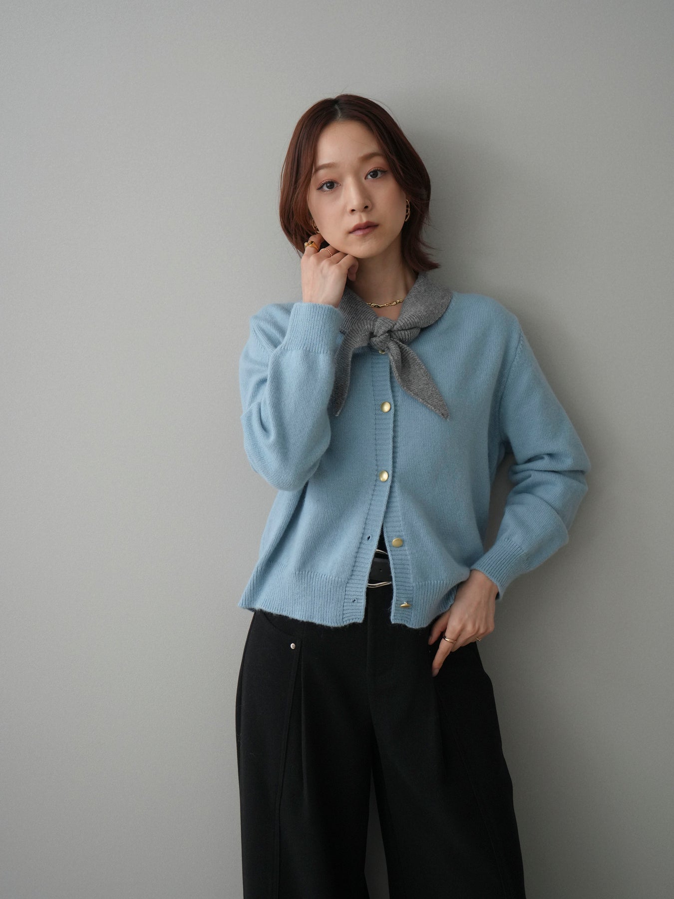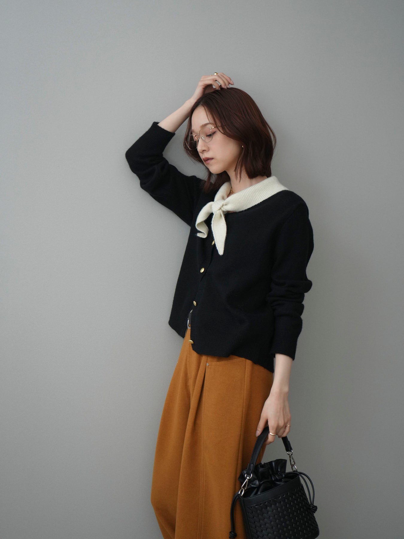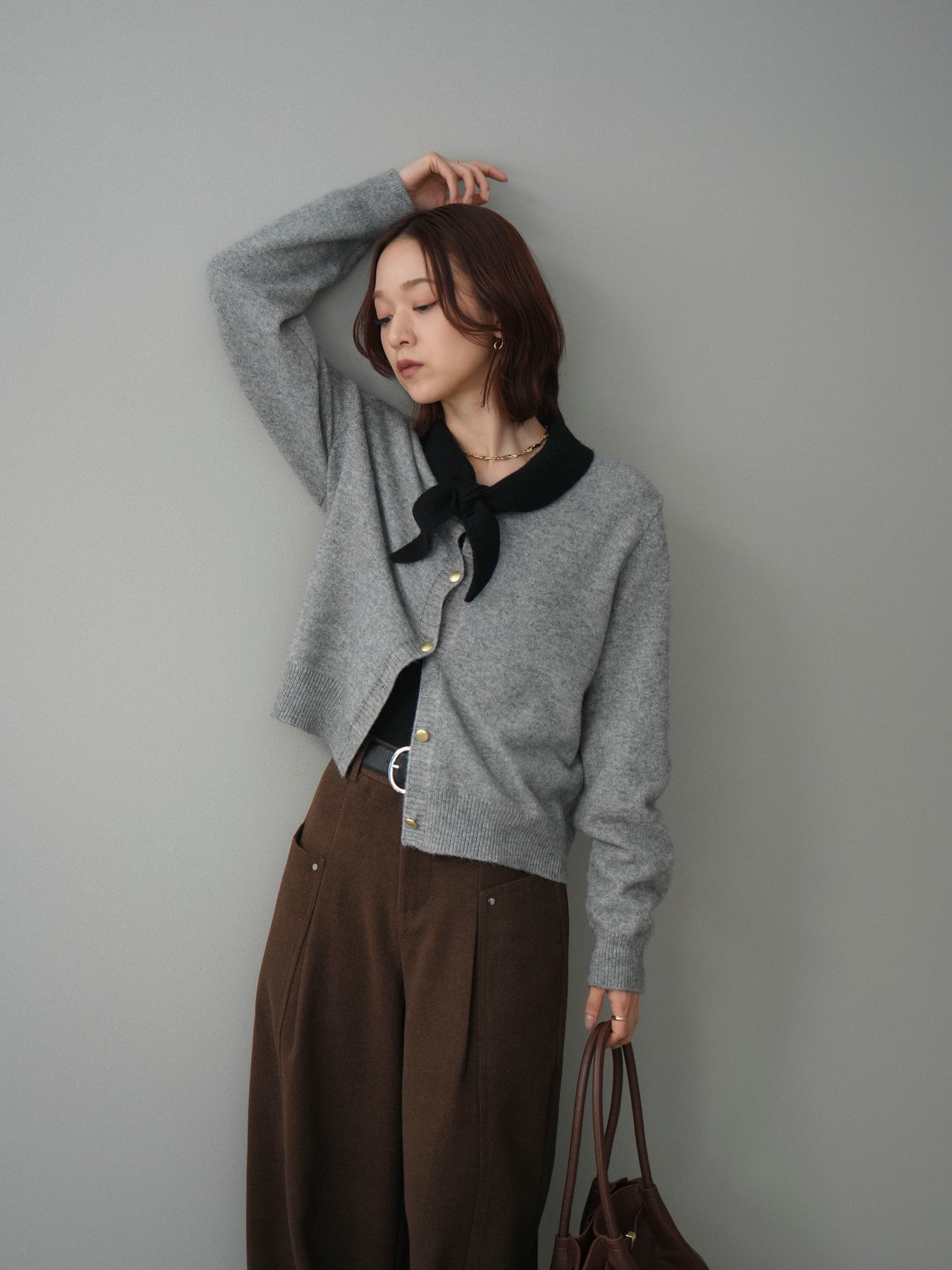 [SET]デザイン襟ニットカーディガン+選べるアクセセット(2set)