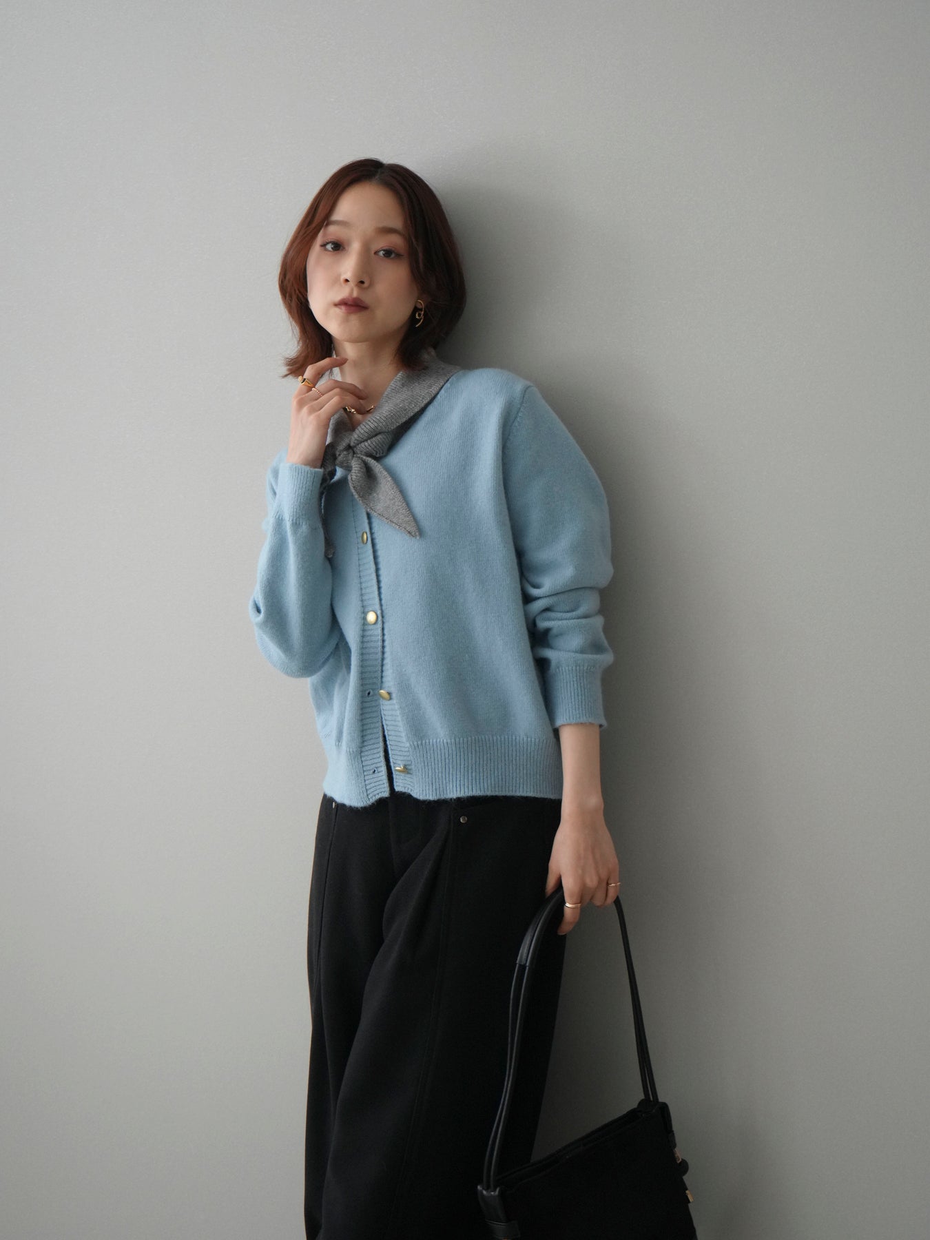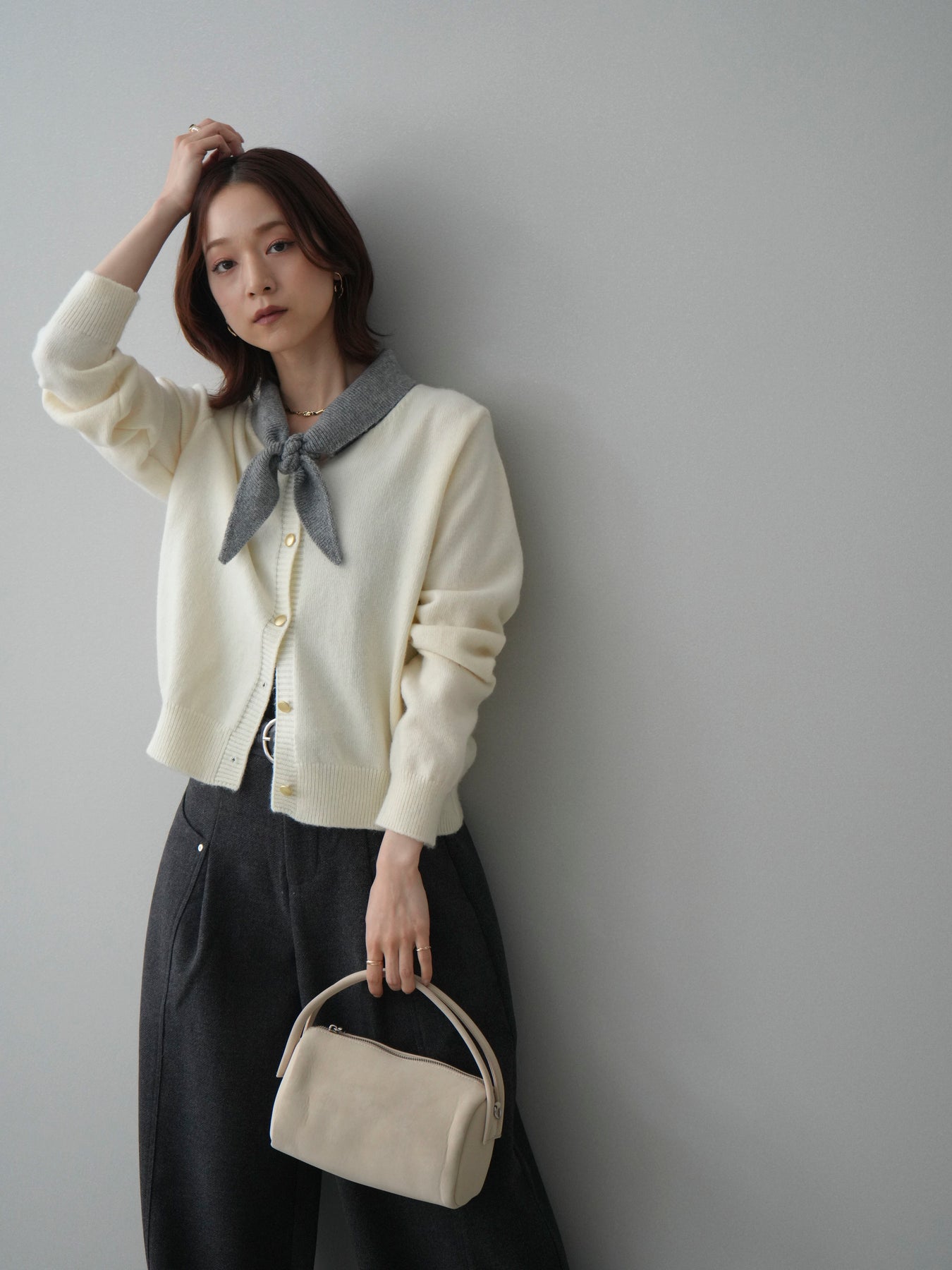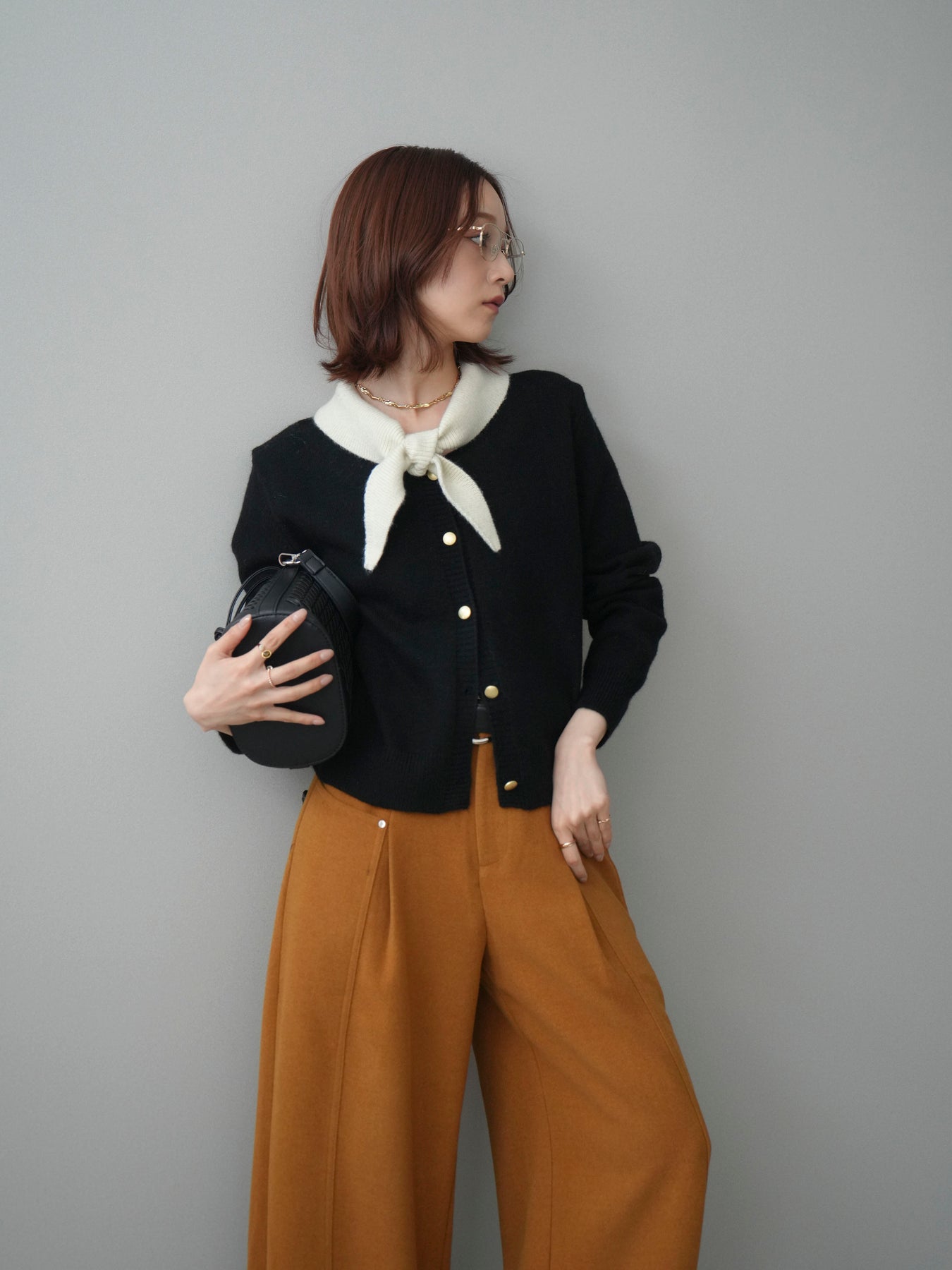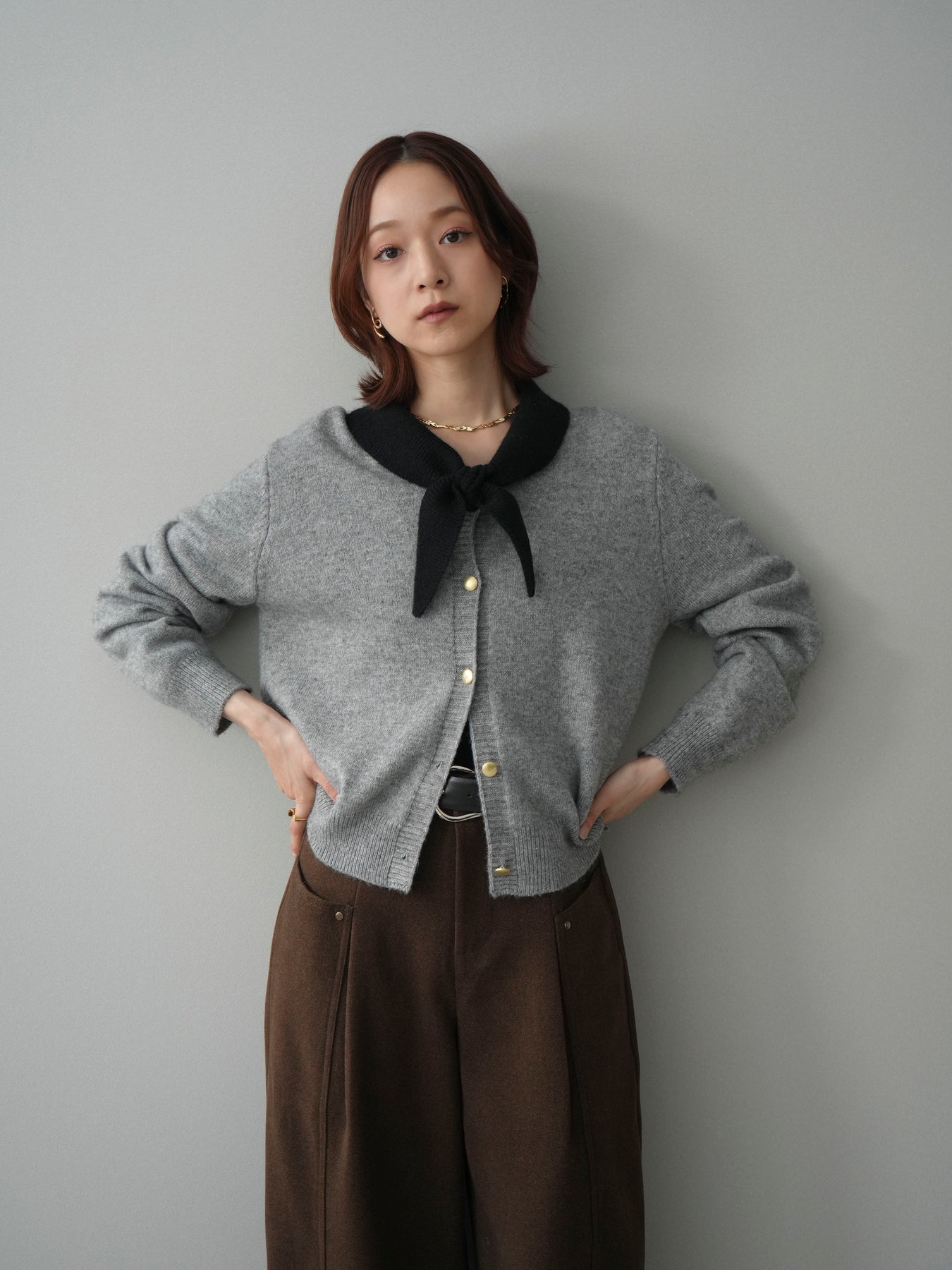 [SET]デザイン襟ニットカーディガン+選べるアクセセット(2set)