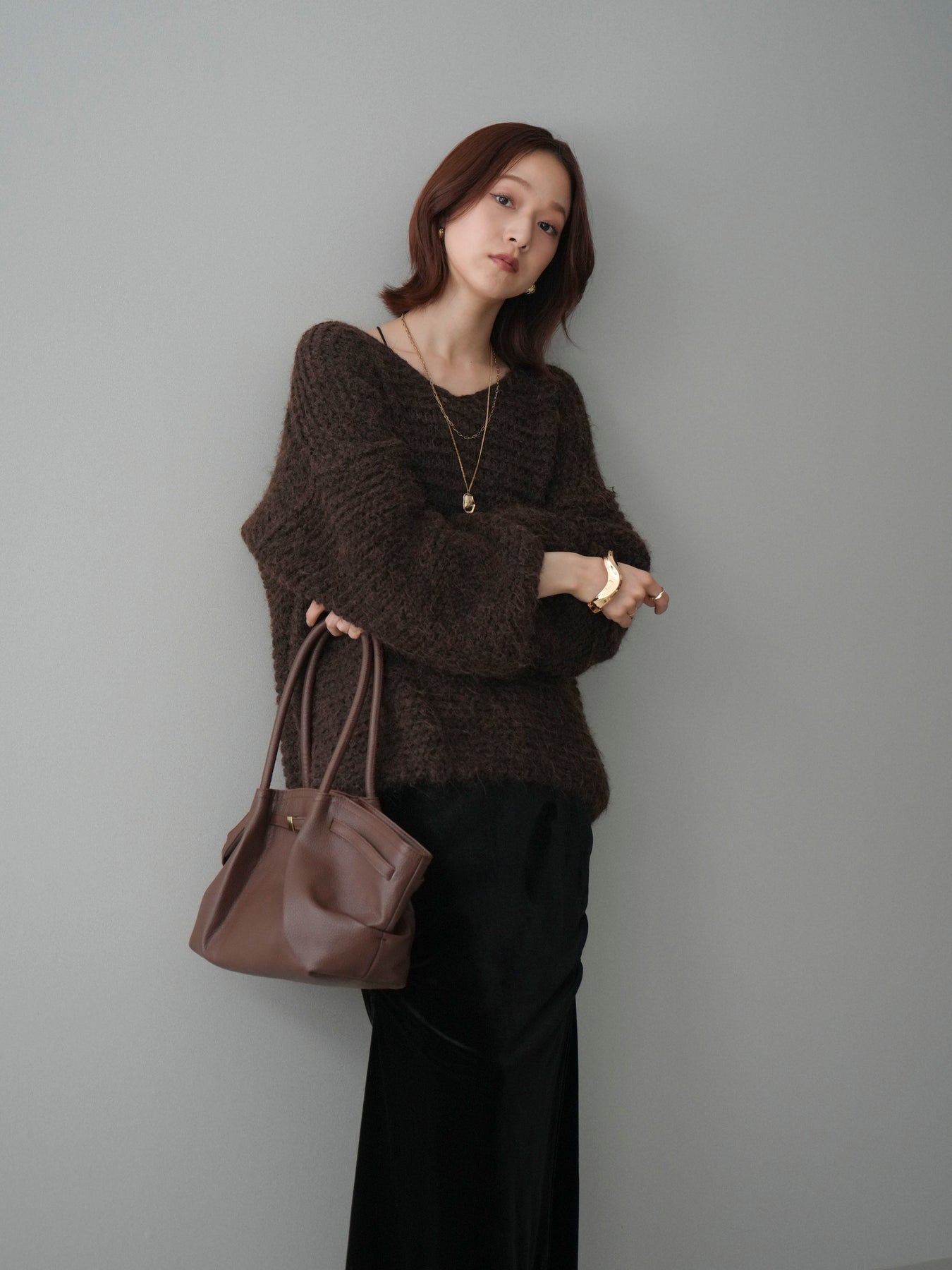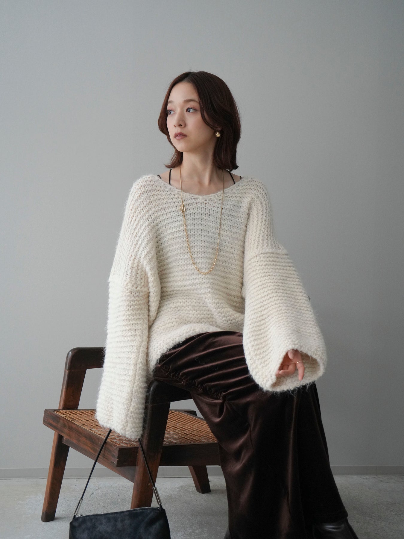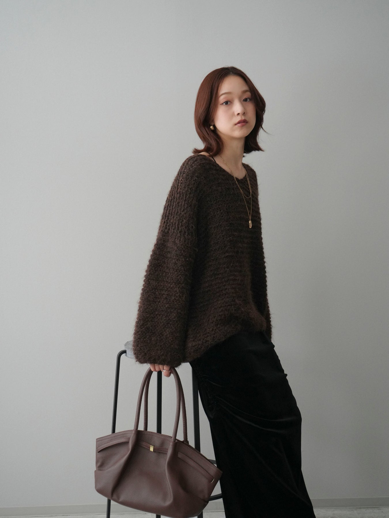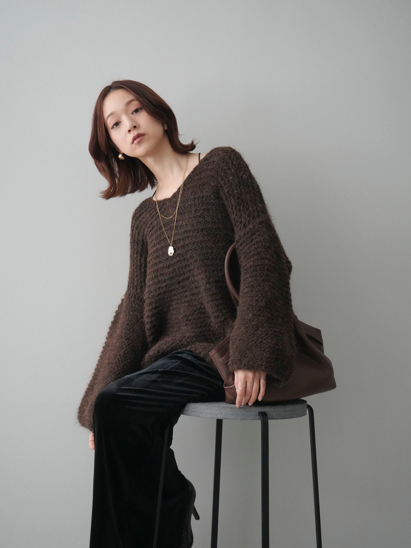 ふんわりとしたシャギー素材とワッフル編みの立体感が魅力のニットプルオーバー。 肌あたりのやさしい風合いで、着心地も抜群。ゆったりとしたルーズシルエットが抜け感を演出し、ナチュラルなムードに仕上げてくれます。 デコルテを美しく見せる絶妙なネックラインで女性らしさも忘れずに。 一枚着としても、シャツやワンピースとのレイヤードスタイルでも活躍する、着回し力の高いアイテムです。