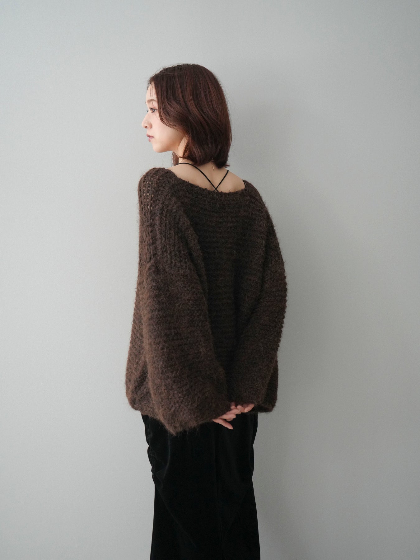 ・お手入れ方法:水温30℃以下手洗い優しく押し洗いでのお洗濯をお薦めします。素材の特性上、洗濯の際に毛抜け・色落ち・縮みが生じる恐れがありますので単独で・短時間でのお洗濯をお薦めします。裏返してネットに入れ手洗いコースで洗濯、洗濯後は形を整えてから干してください。※タンブラー乾燥は控えてください。 濡れたままの状態で擦れると、色落ち色移りすることがあります。つけ置き洗いや雨や汗で濡れたまま放置は避け、速やかに処理してください。着用中の摩擦や汗、水濡れ、濃淡差があるものとの重ね着にご注意ください。 また、素材の特性上伸びやすい為ハンガーの使用はお控えいただき畳んで保管ください。