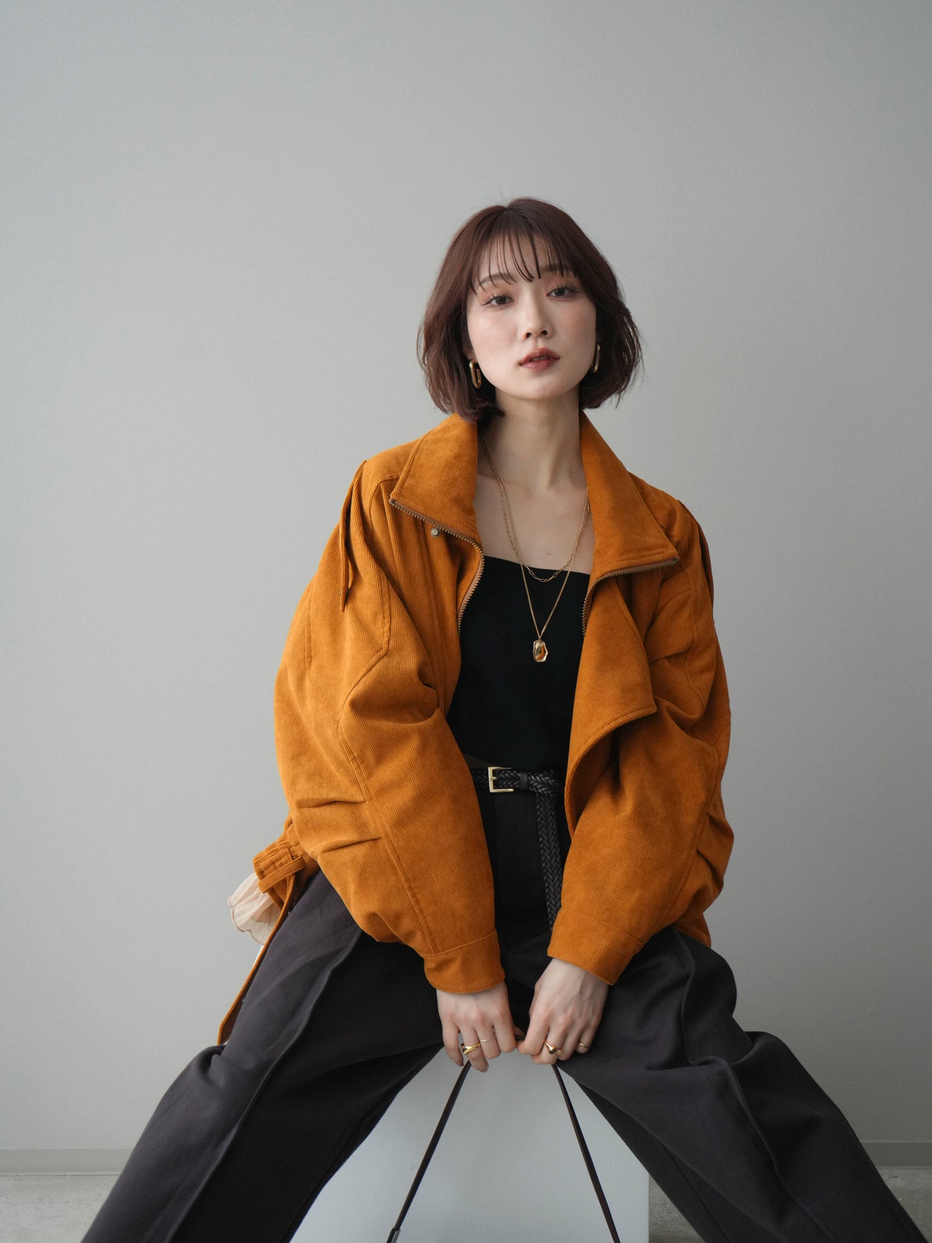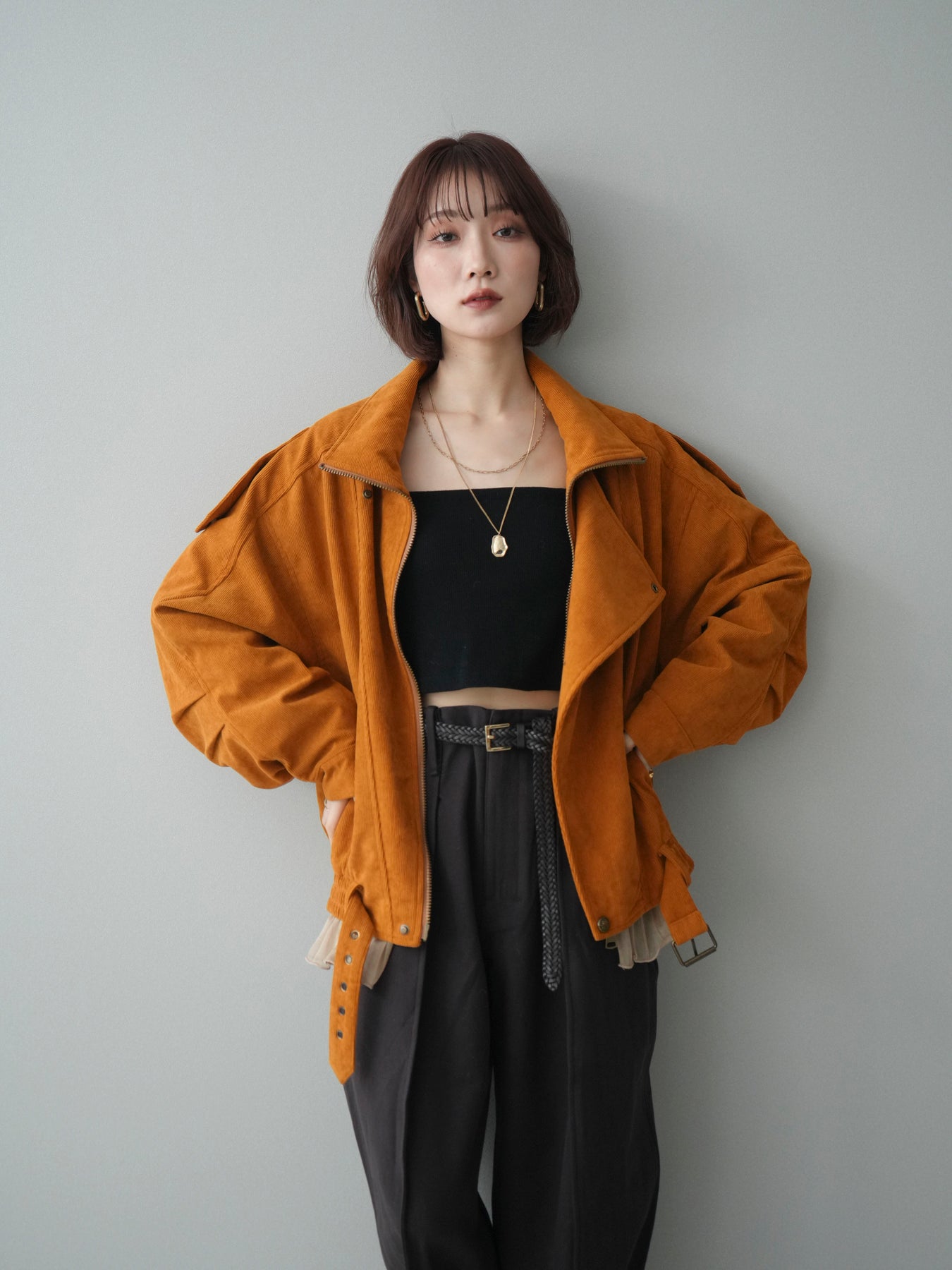 コーデュロイ素材の風合いがスタイリングに程よいアクセントを添えるライダースブルゾン。コンパクトな丈感に裾のレースディテールを組み合わせることで、ハードになりすぎず女性らしい印象に仕上げています。パンツにもスカートにも合わせやすく、羽織るだけでコーディネートがまとまる一着です。