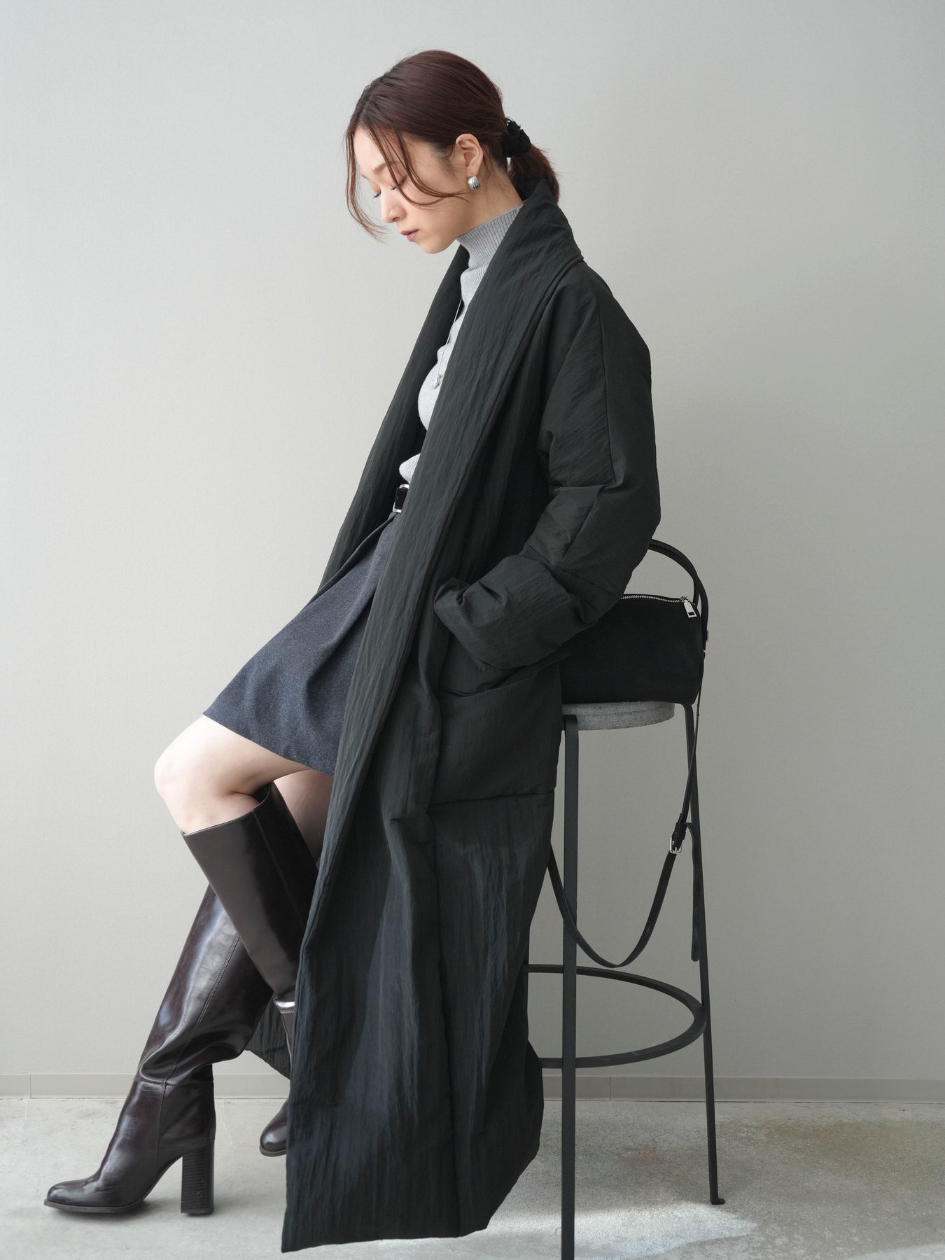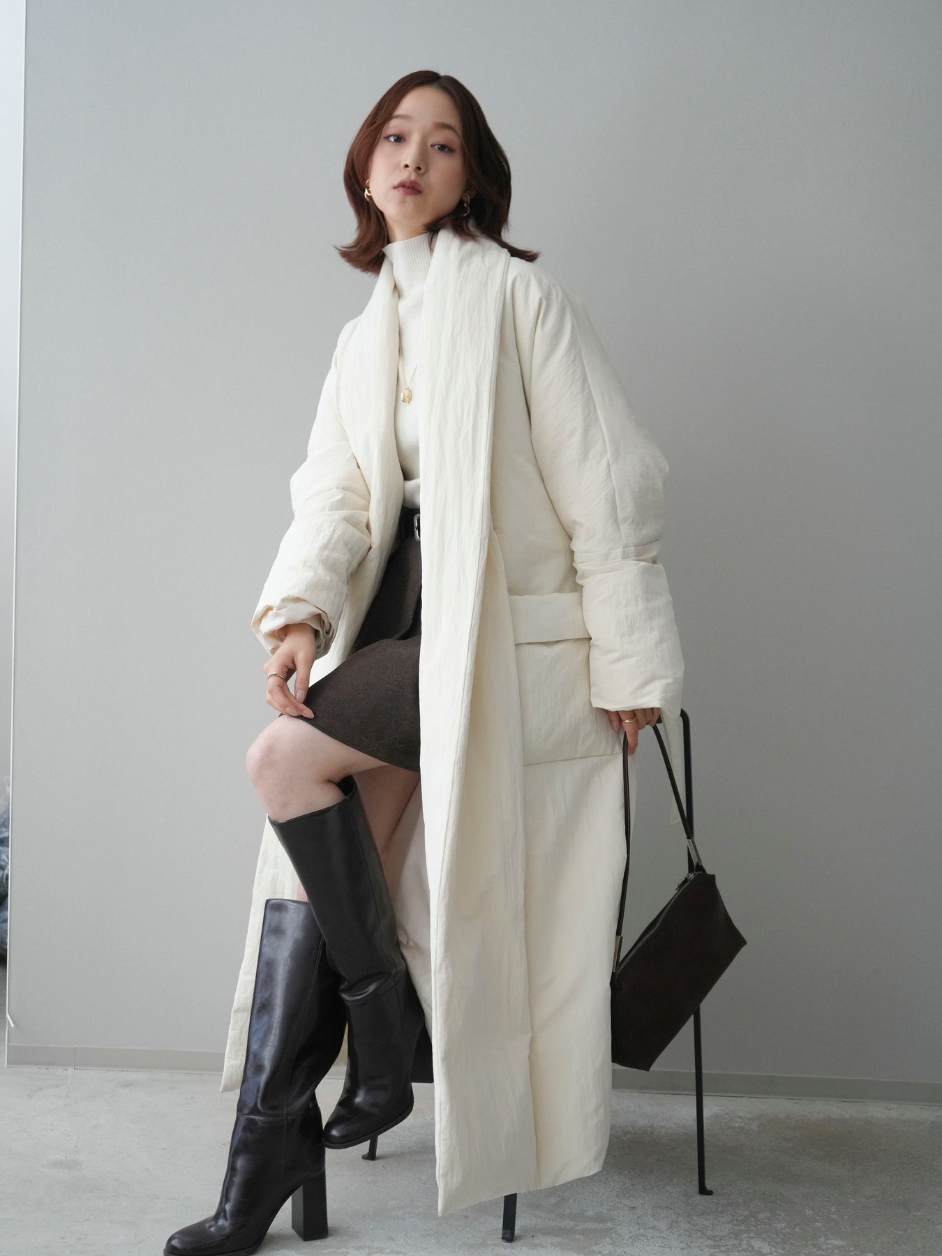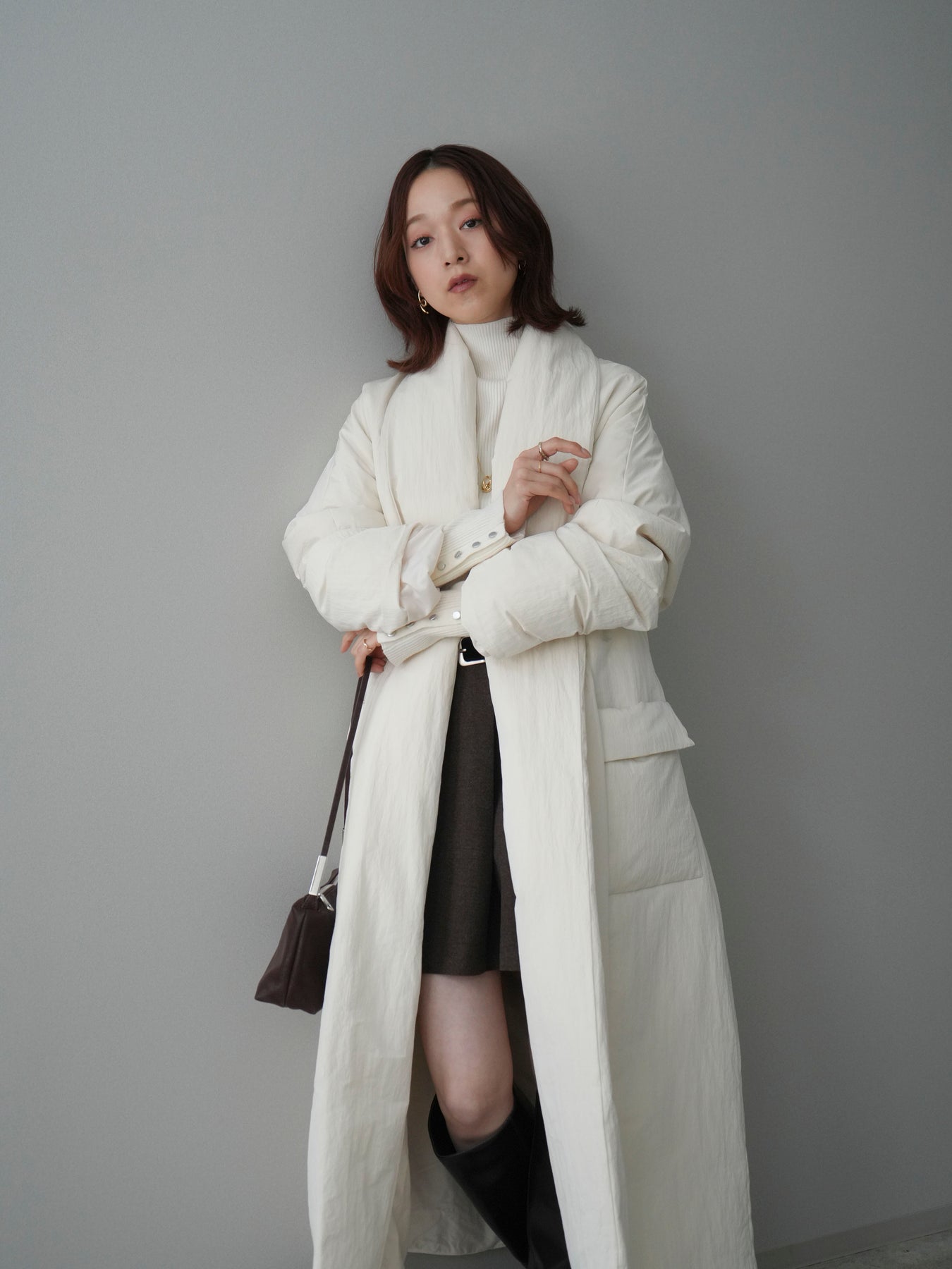 すっきりとした縦のラインが印象的なロング丈ダウンコート。程よくゆとりのあるシルエットで、厚手のトップスの上からも羽織りやすく、スタイリングを選ばず活躍します。軽やかな着心地ながら、シーズンムードを高めてくれる一着です。