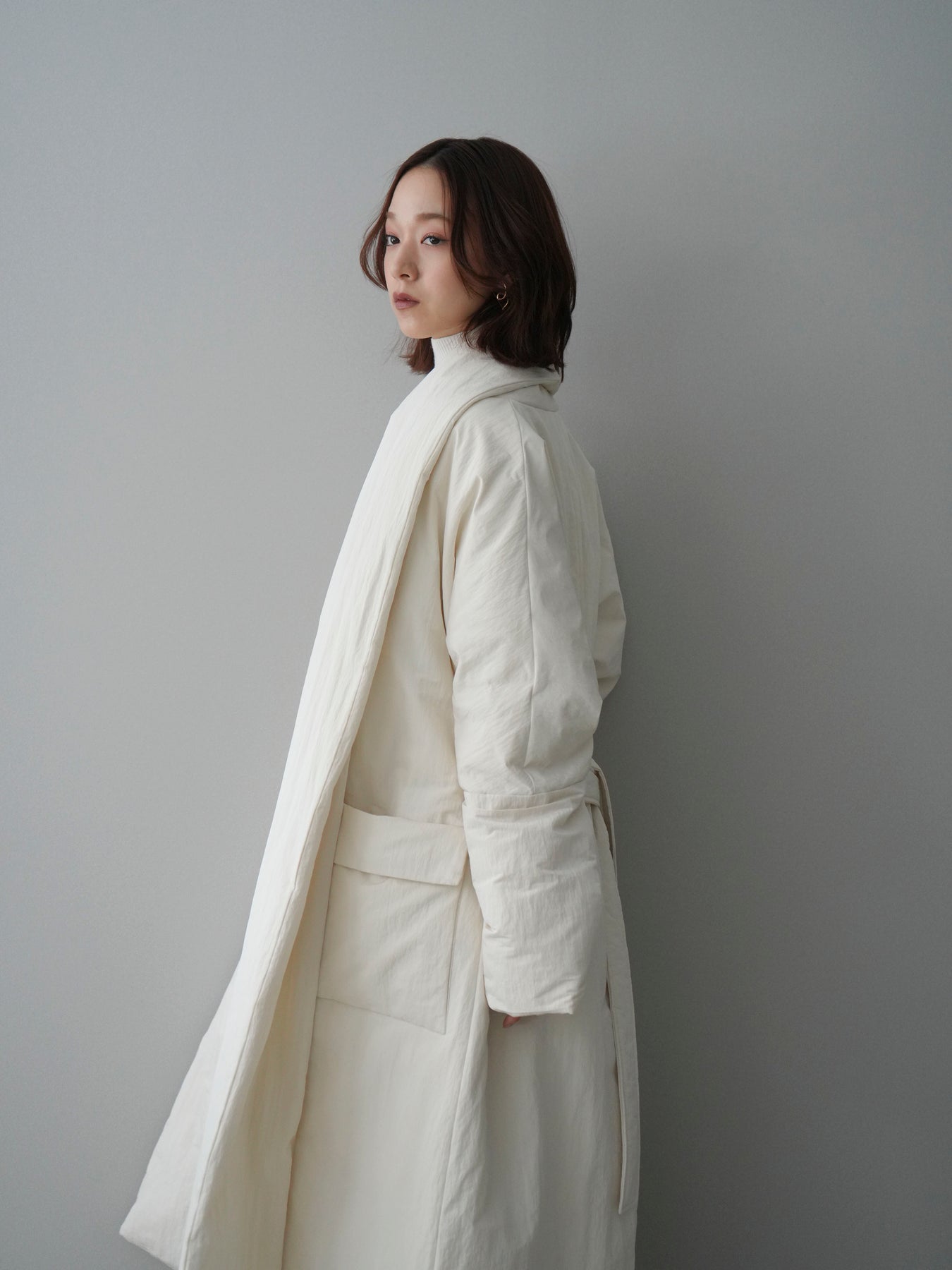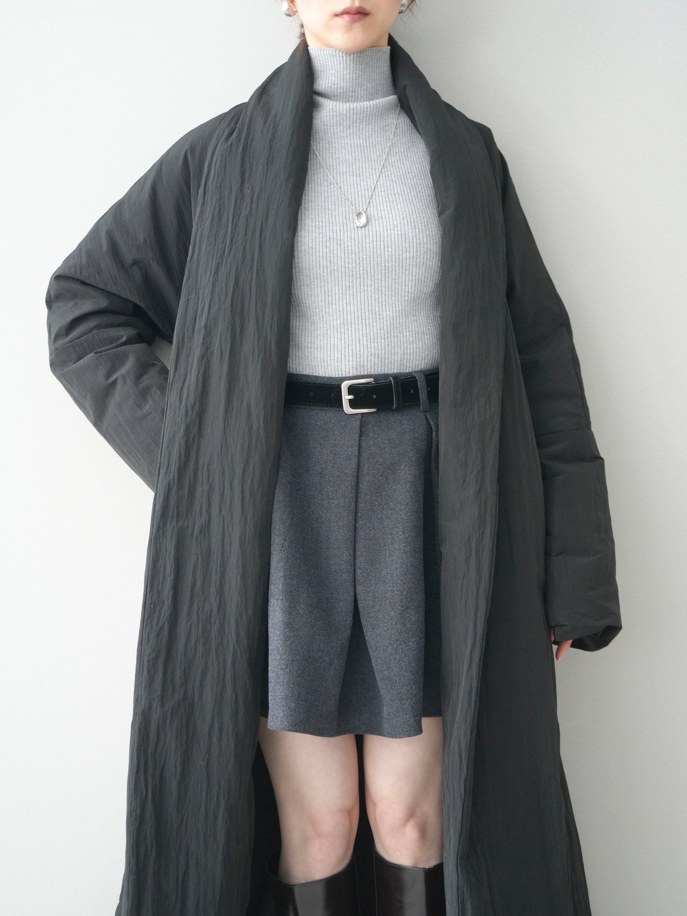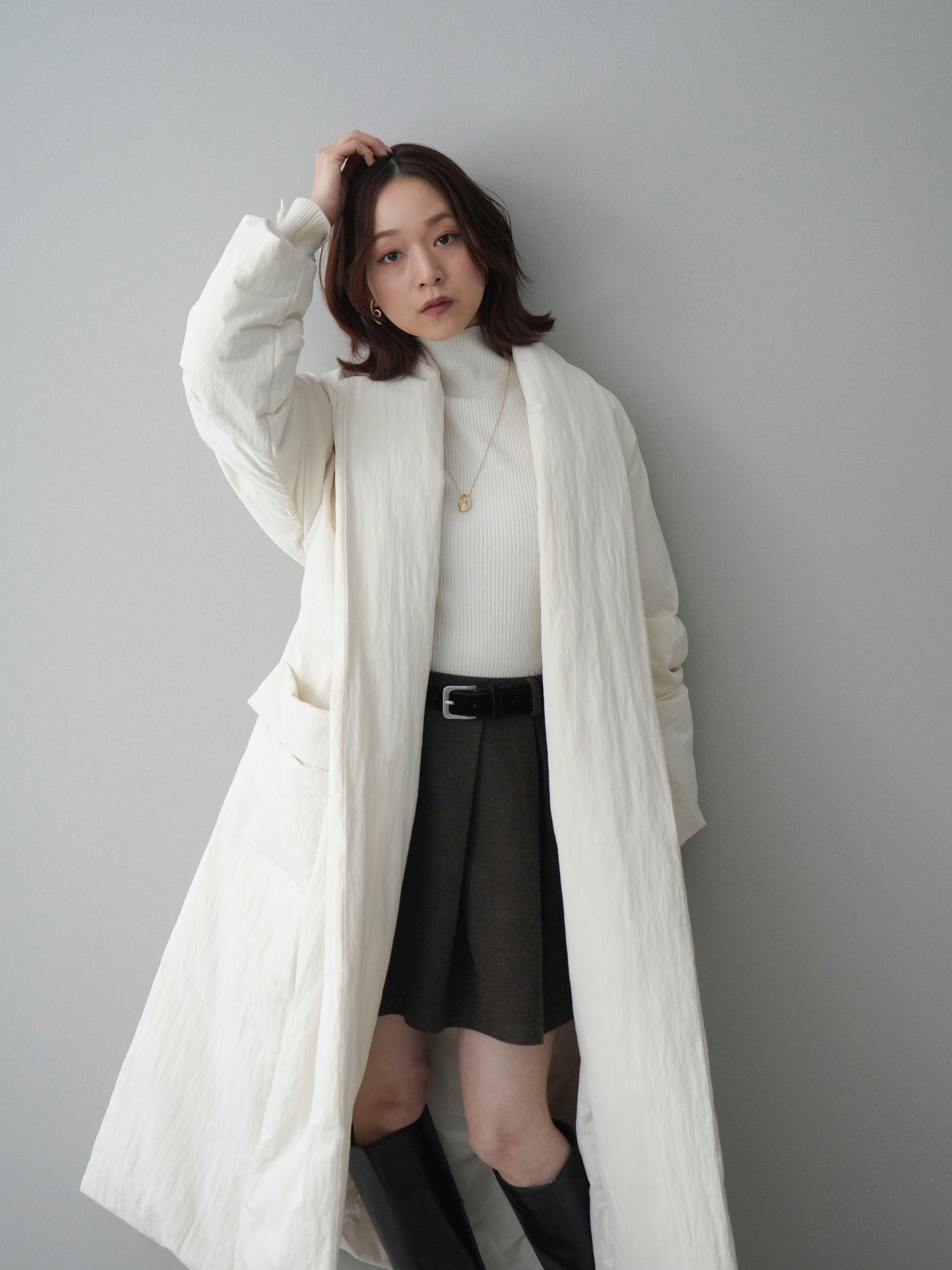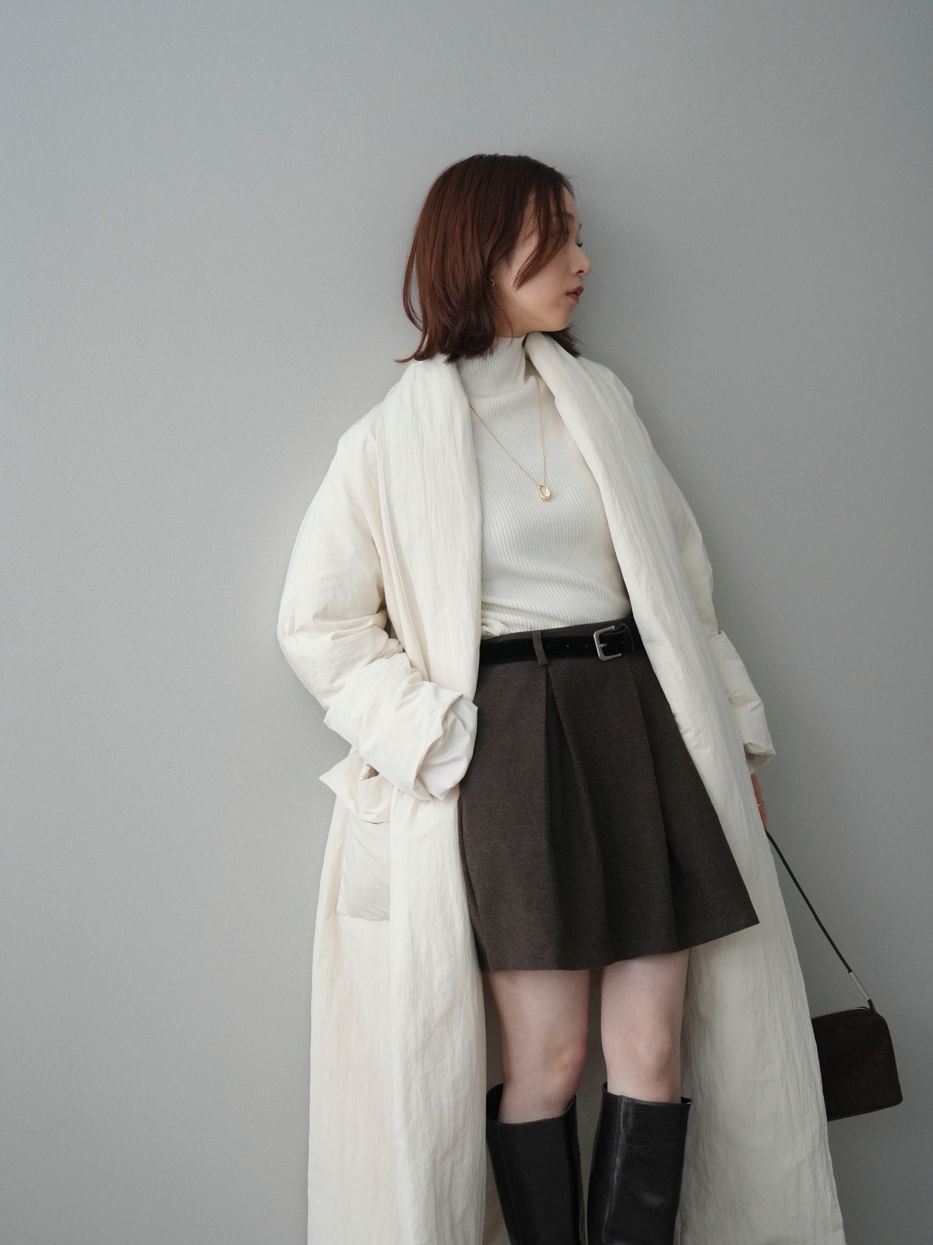 すっきりとした縦のラインが印象的なロング丈ダウンコート。程よくゆとりのあるシルエットで、厚手のトップスの上からも羽織りやすく、スタイリングを選ばず活躍します。軽やかな着心地ながら、シーズンムードを高めてくれる一着です。