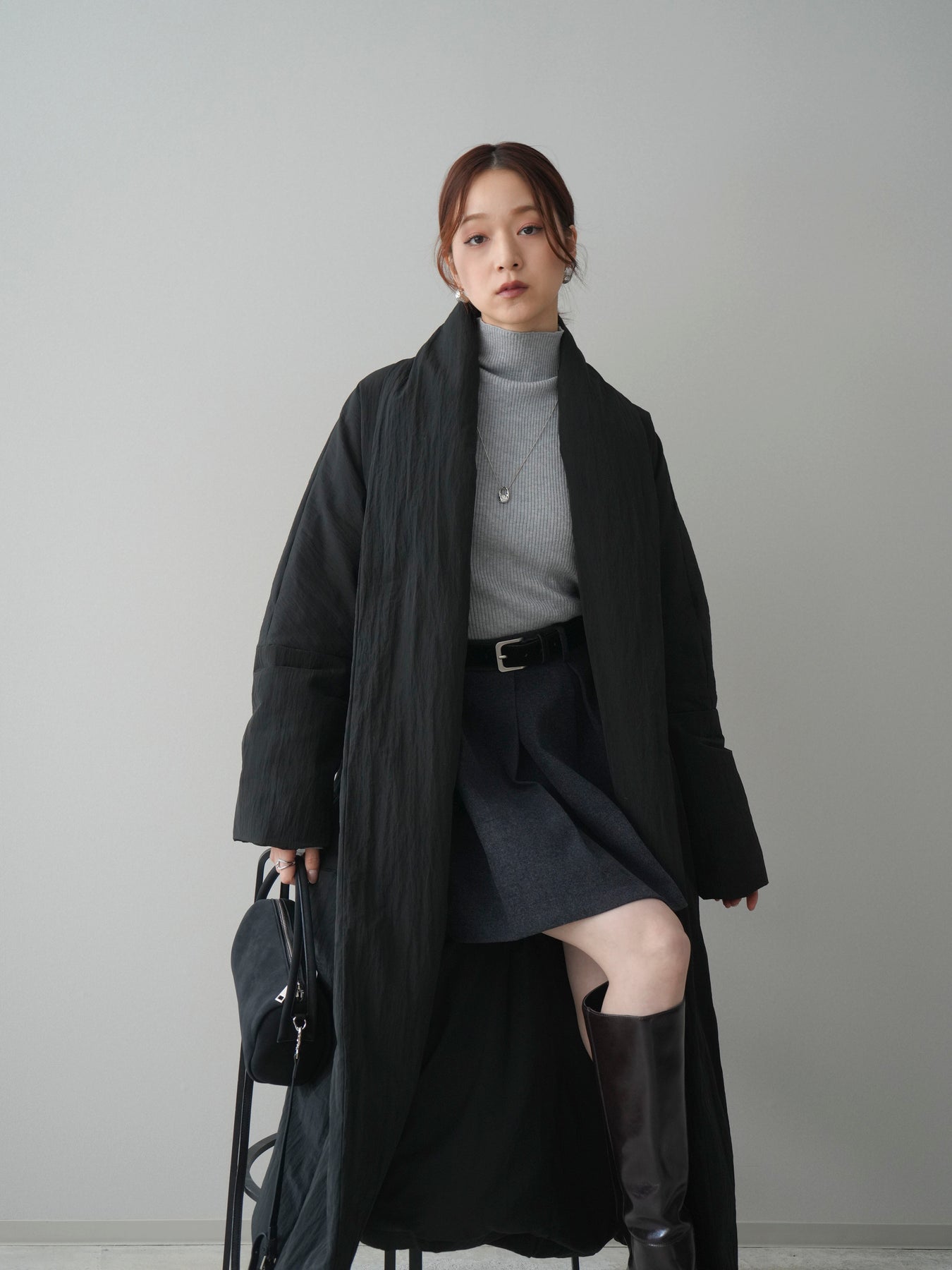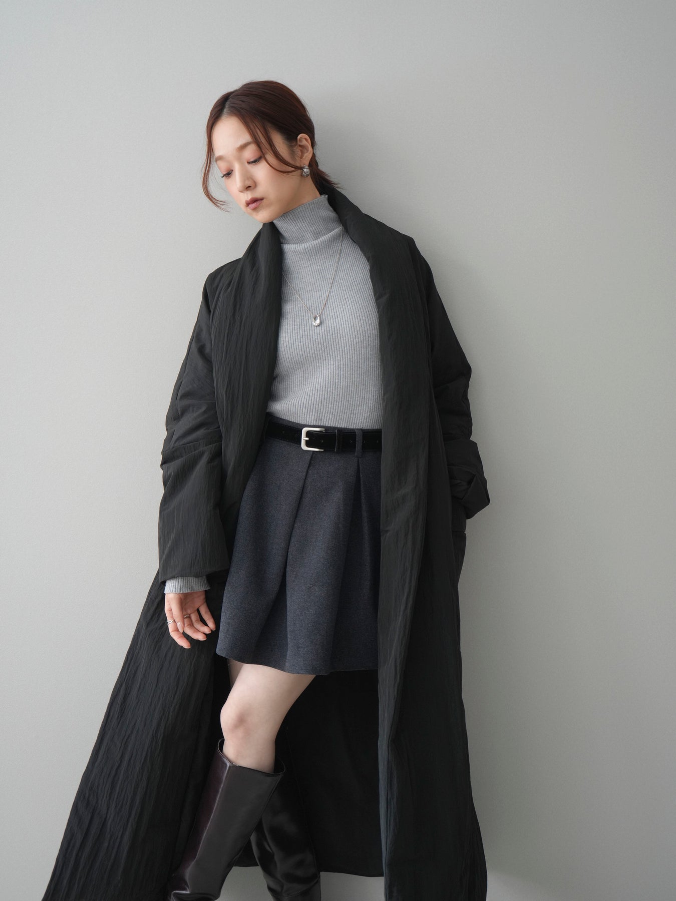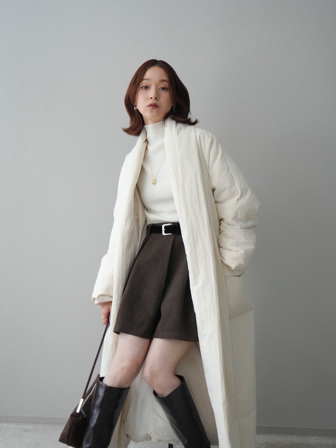 [SET]ロングダウンコート+袖ボタンボトルネックリブニットトップス(2set)