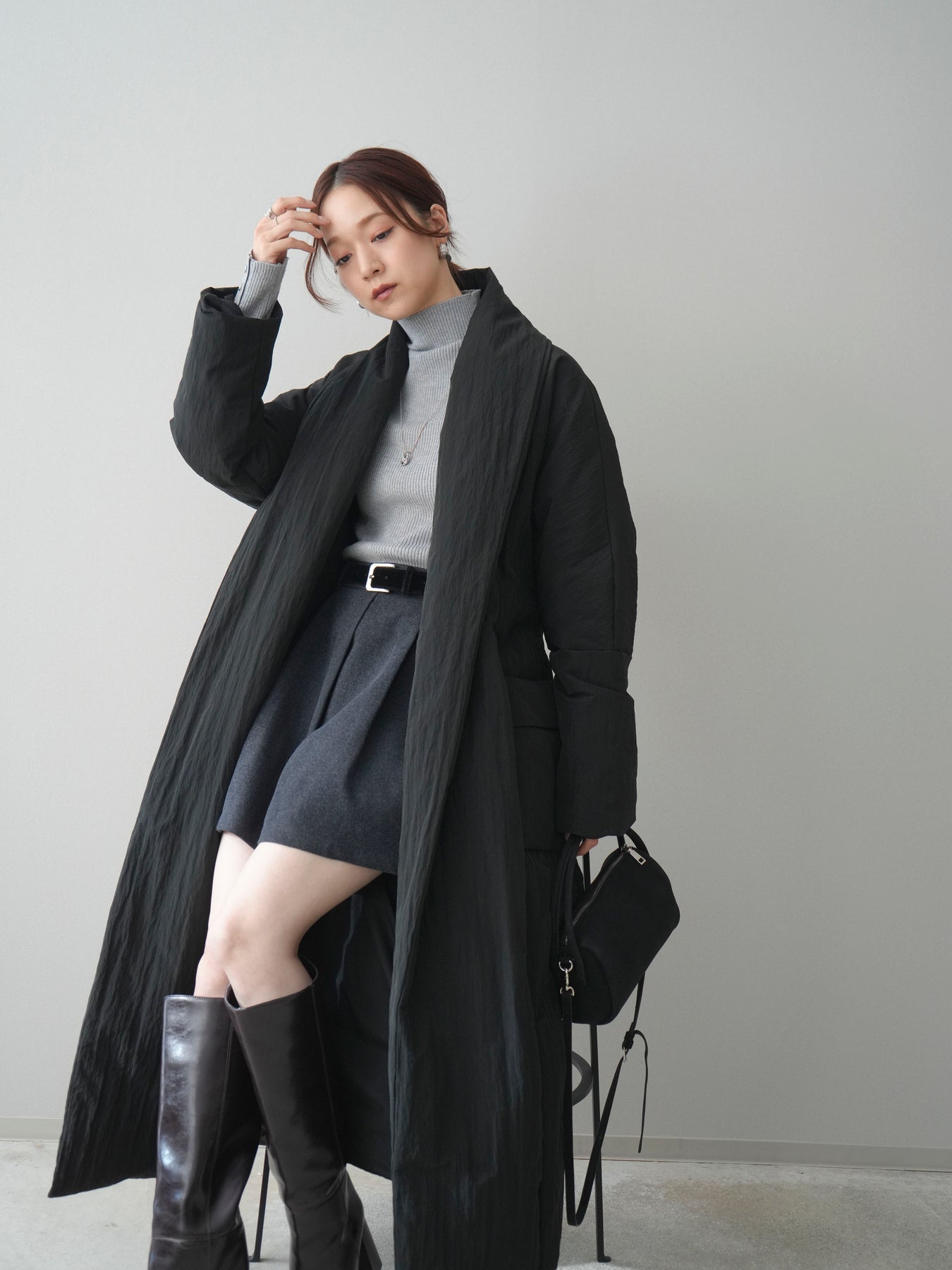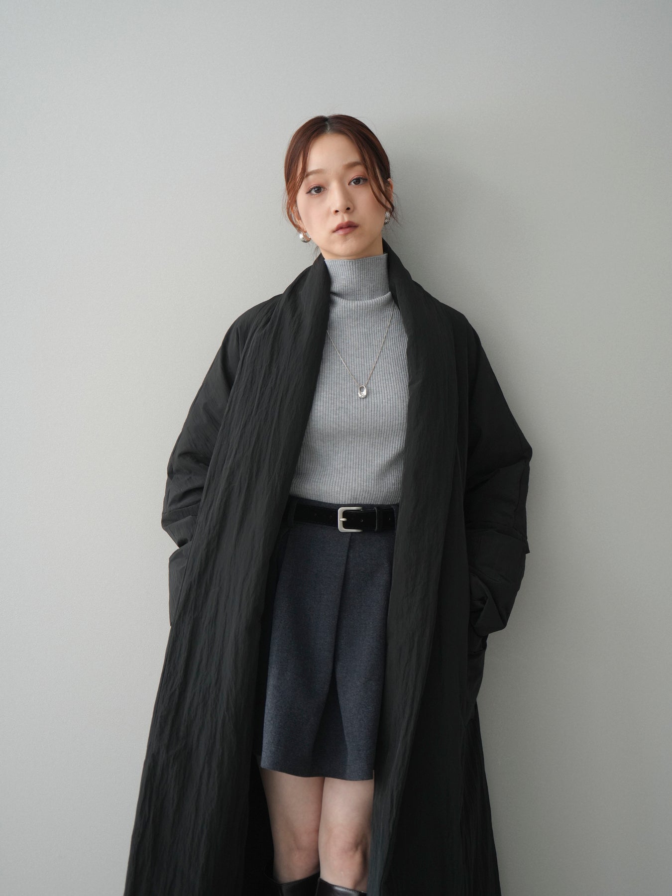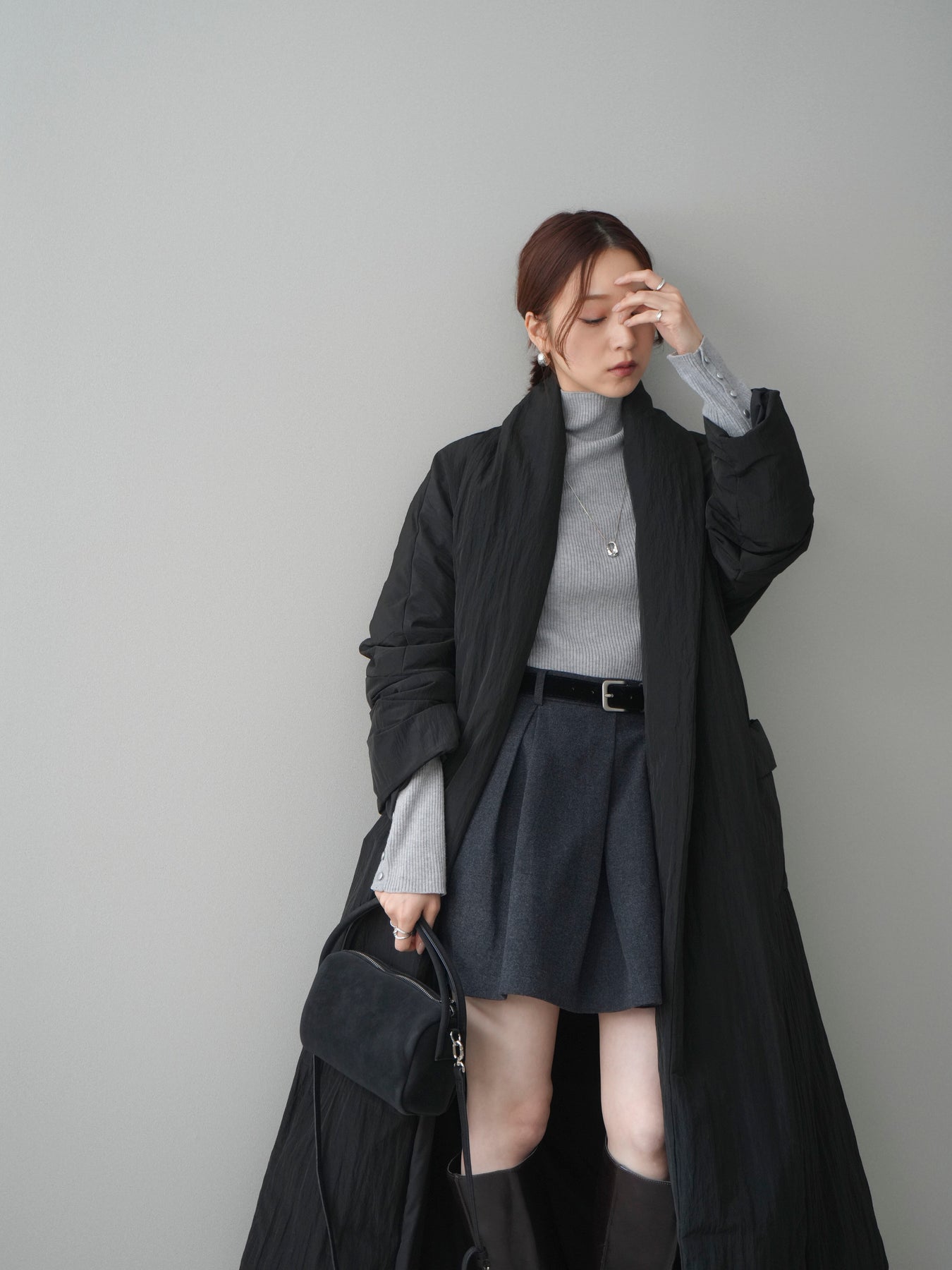 [SET]ロングダウンコート+袖ボタンボトルネックリブニットトップス(2set)