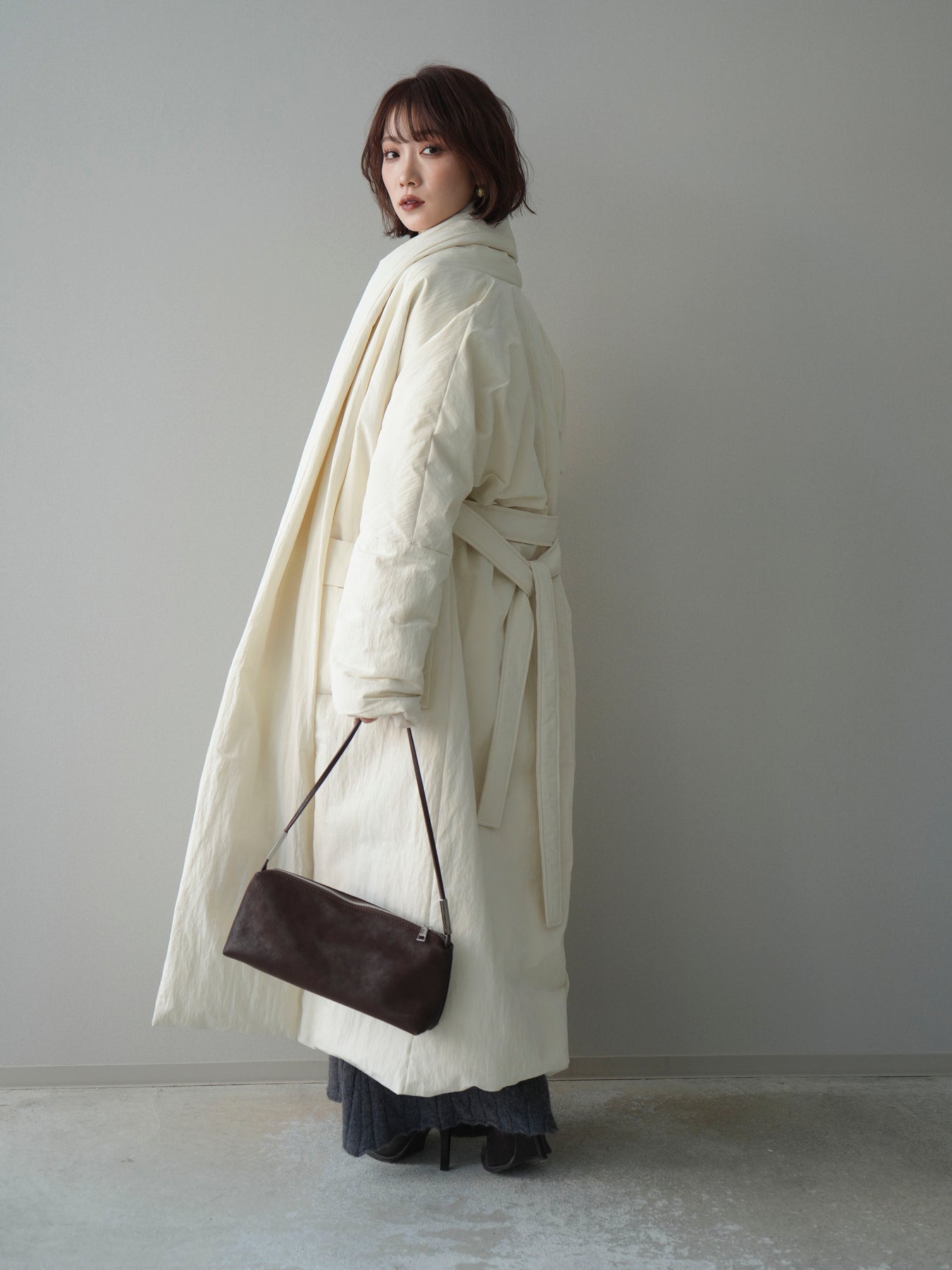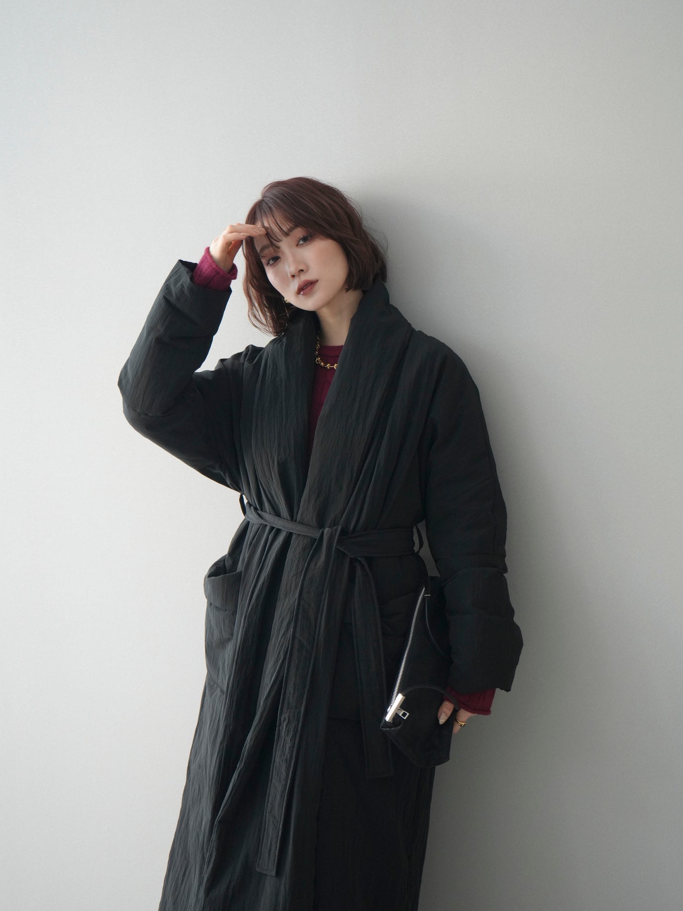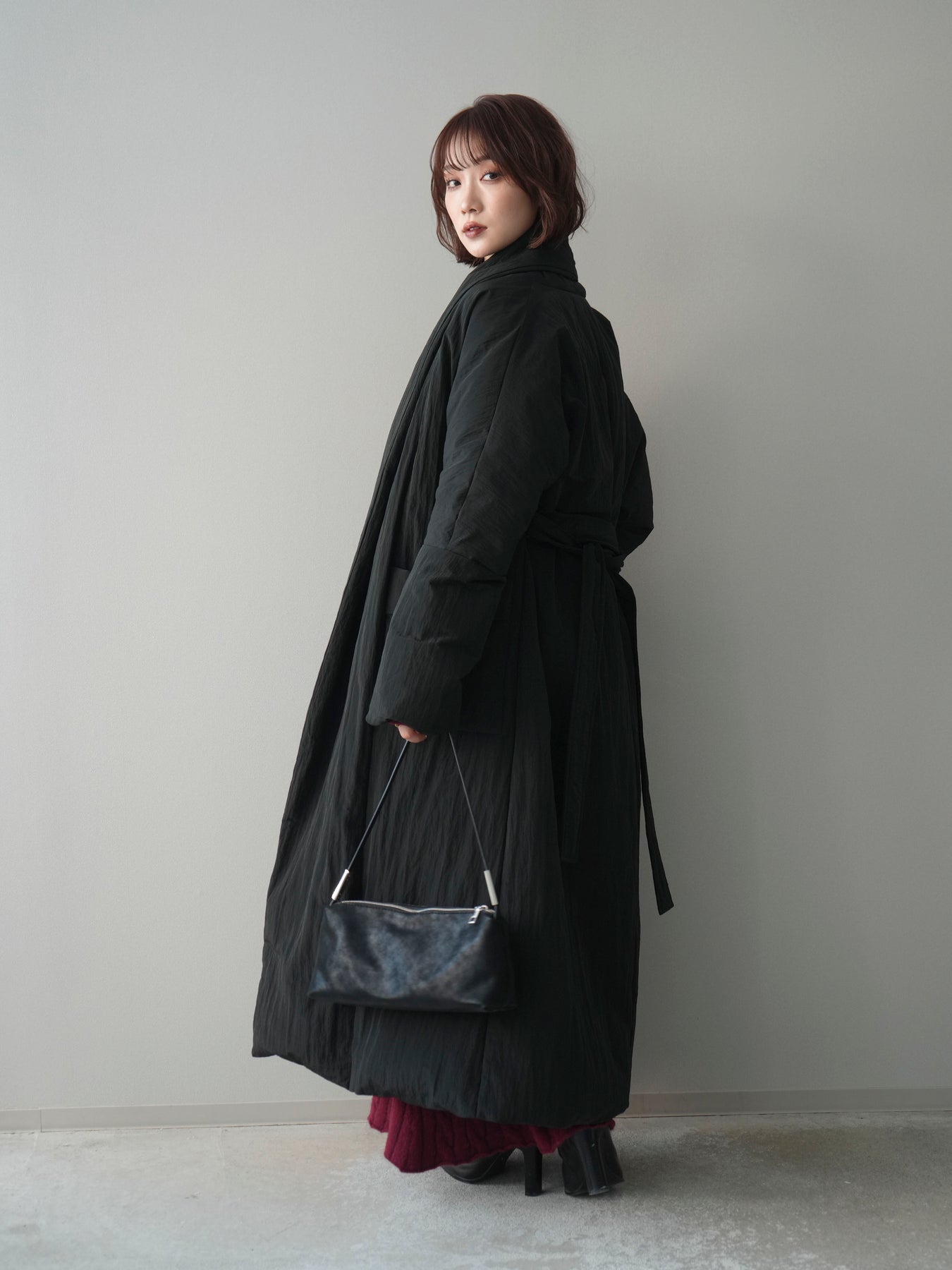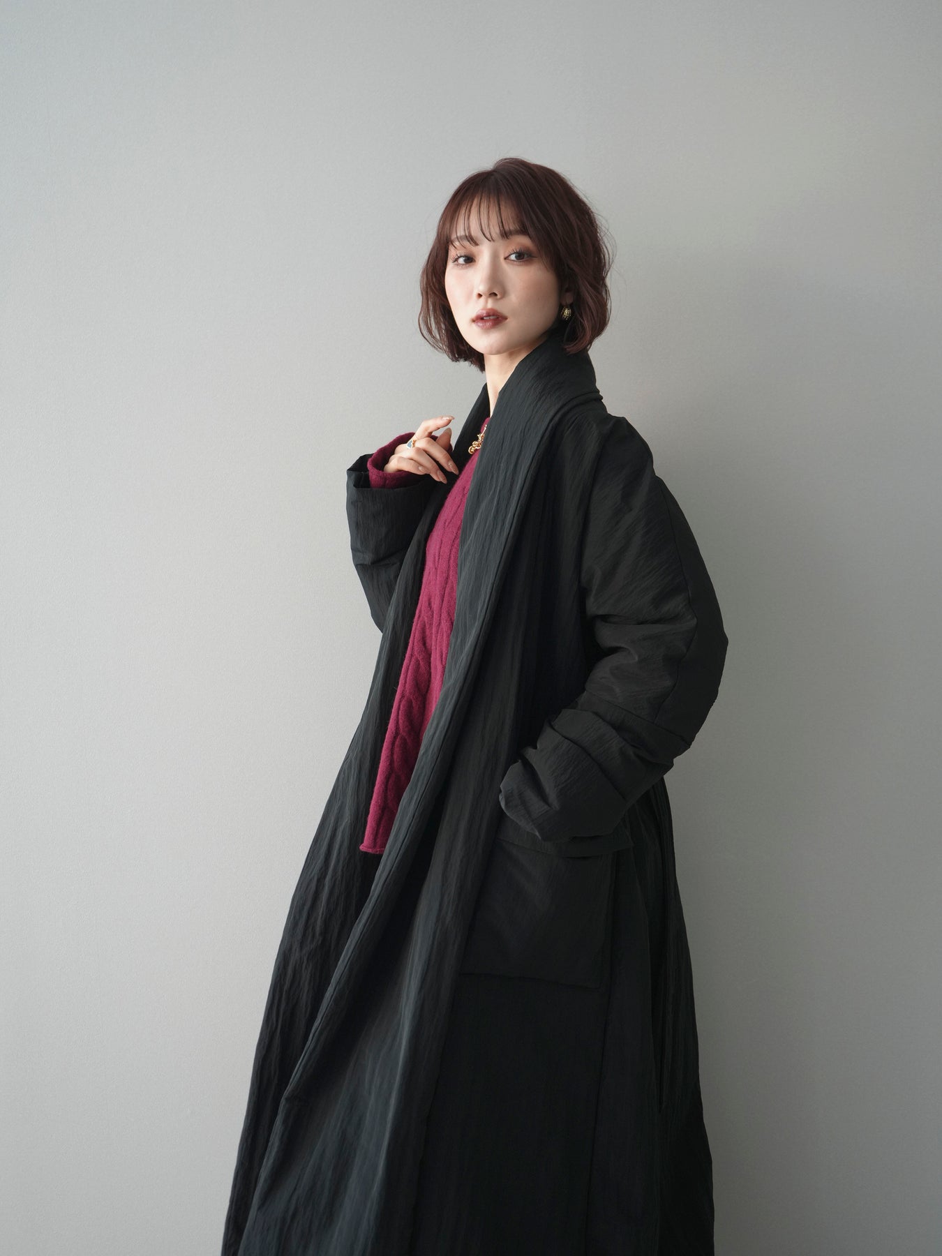 すっきりとした縦のラインが印象的なロング丈ダウンコート。程よくゆとりのあるシルエットで、厚手のトップスの上からも羽織りやすく、スタイリングを選ばず活躍します。軽やかな着心地ながら、シーズンムードを高めてくれる一着です。