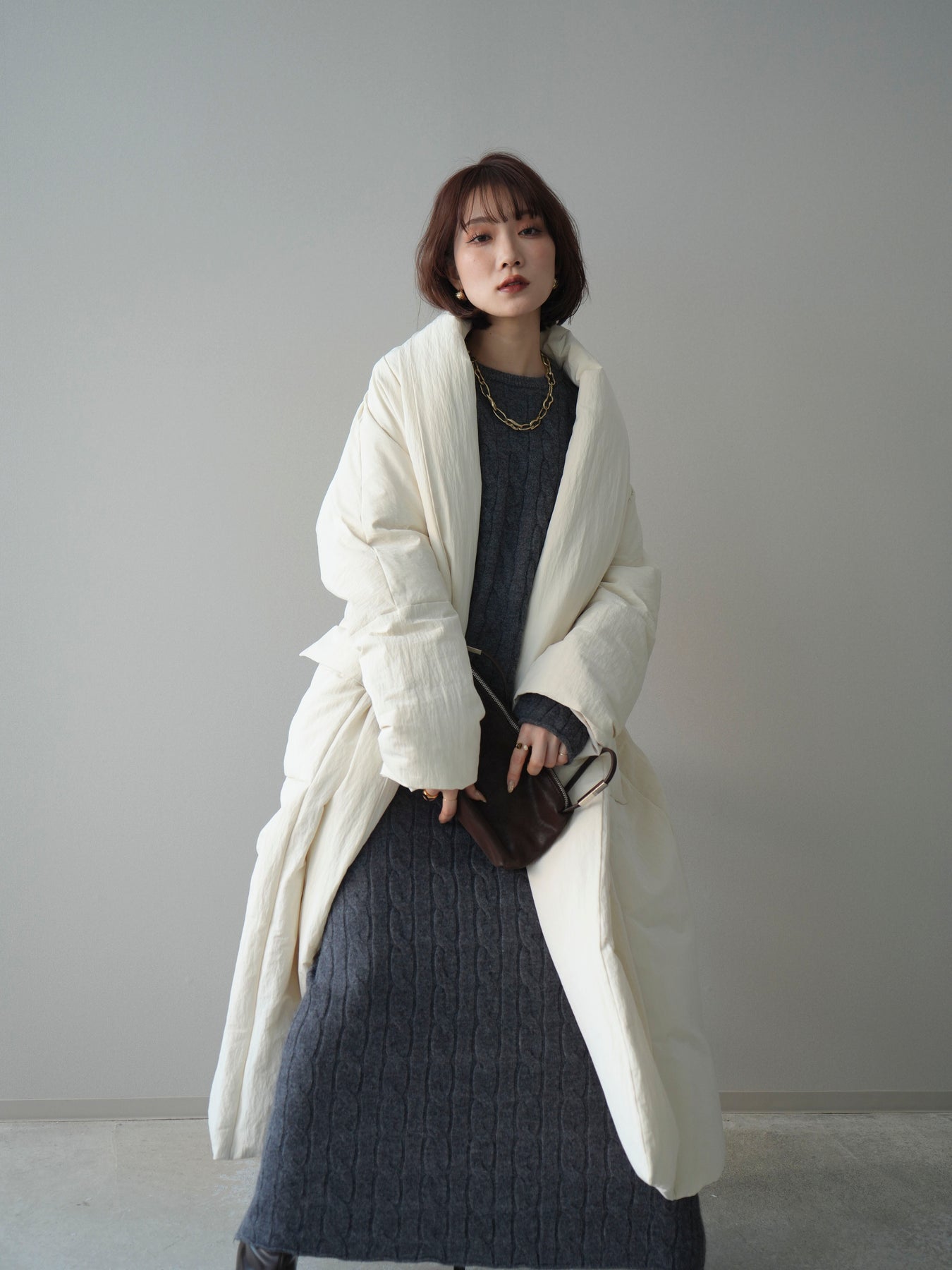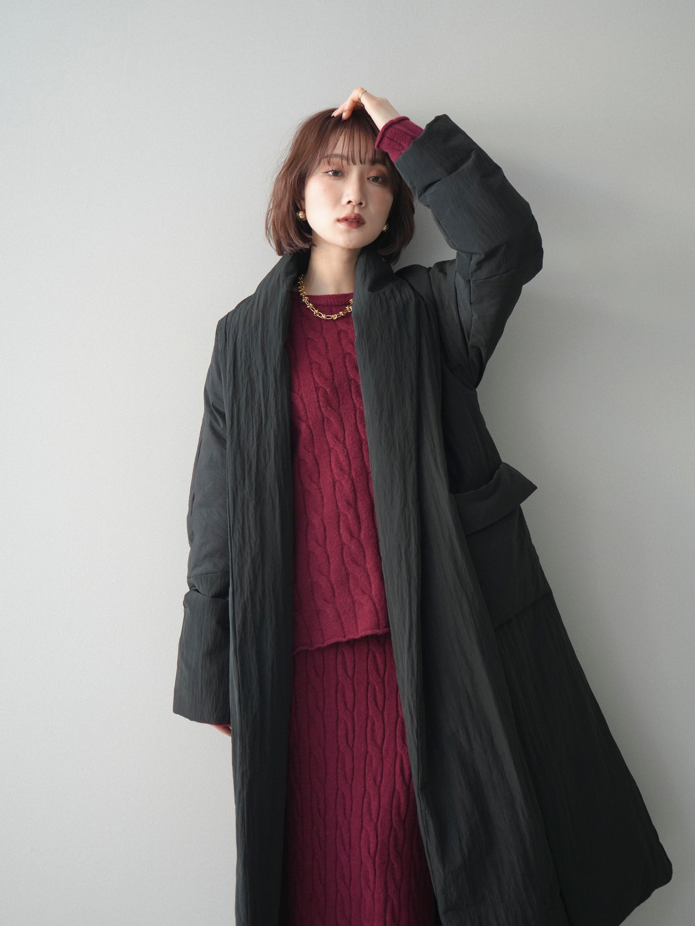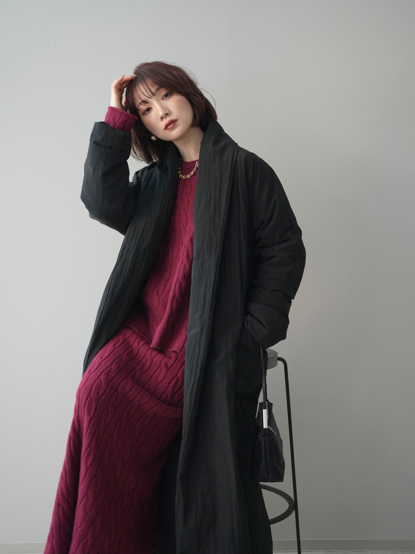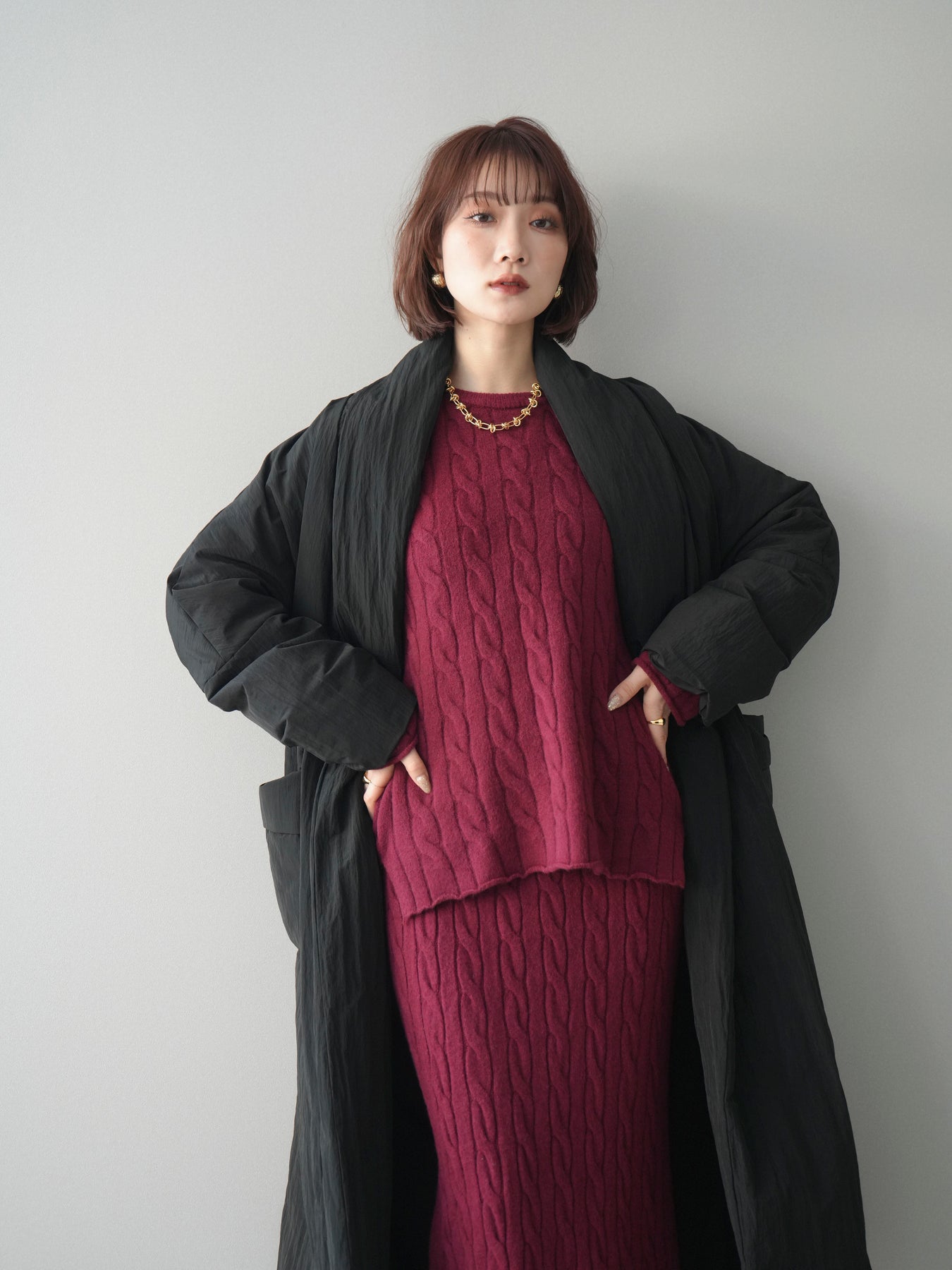 [SET]ストール付ケーブルニットプルオーバー&ロングスカートSET UP+ロングダウンコート(2set)