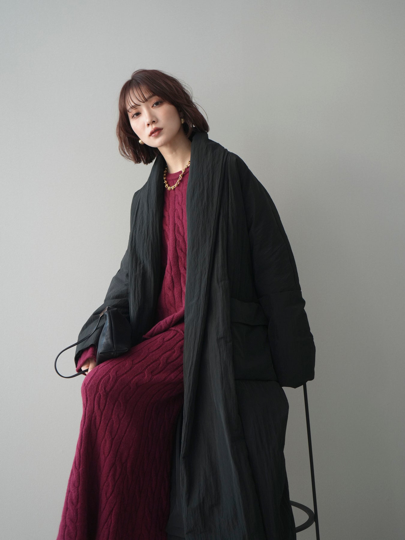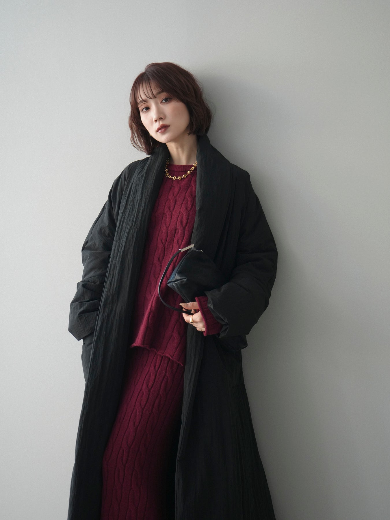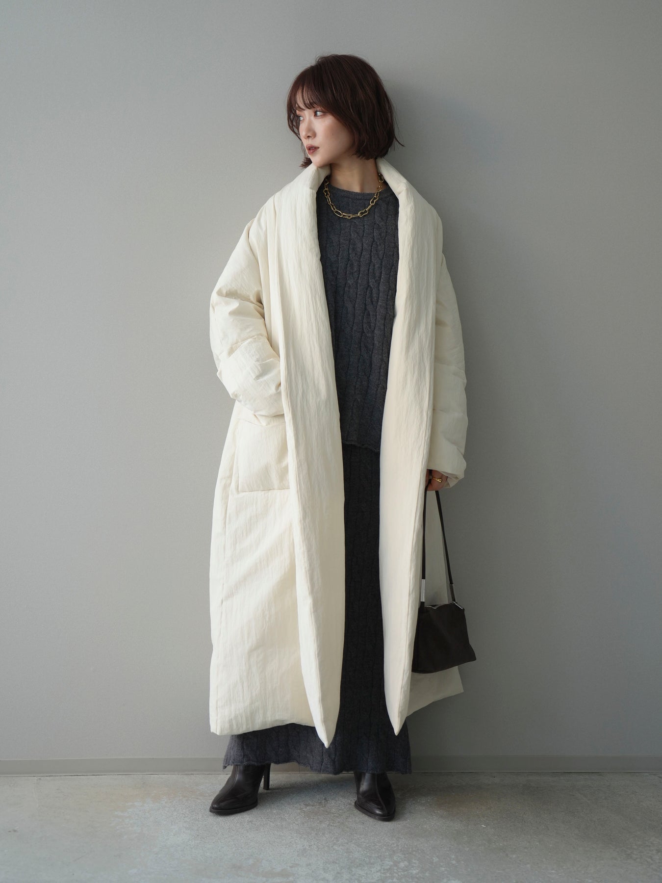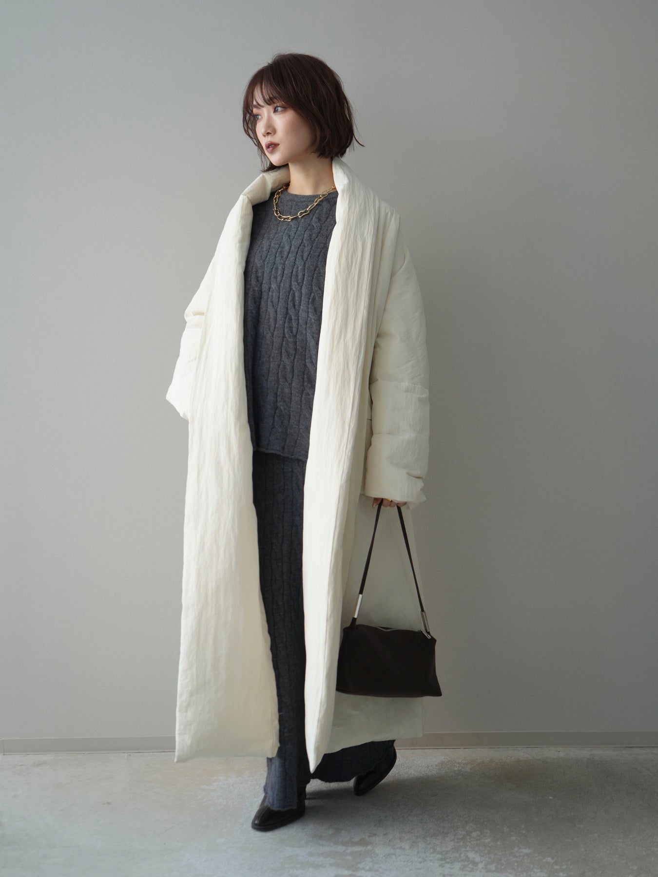 [SET]ストール付ケーブルニットプルオーバー&ロングスカートSET UP+ロングダウンコート(2set)