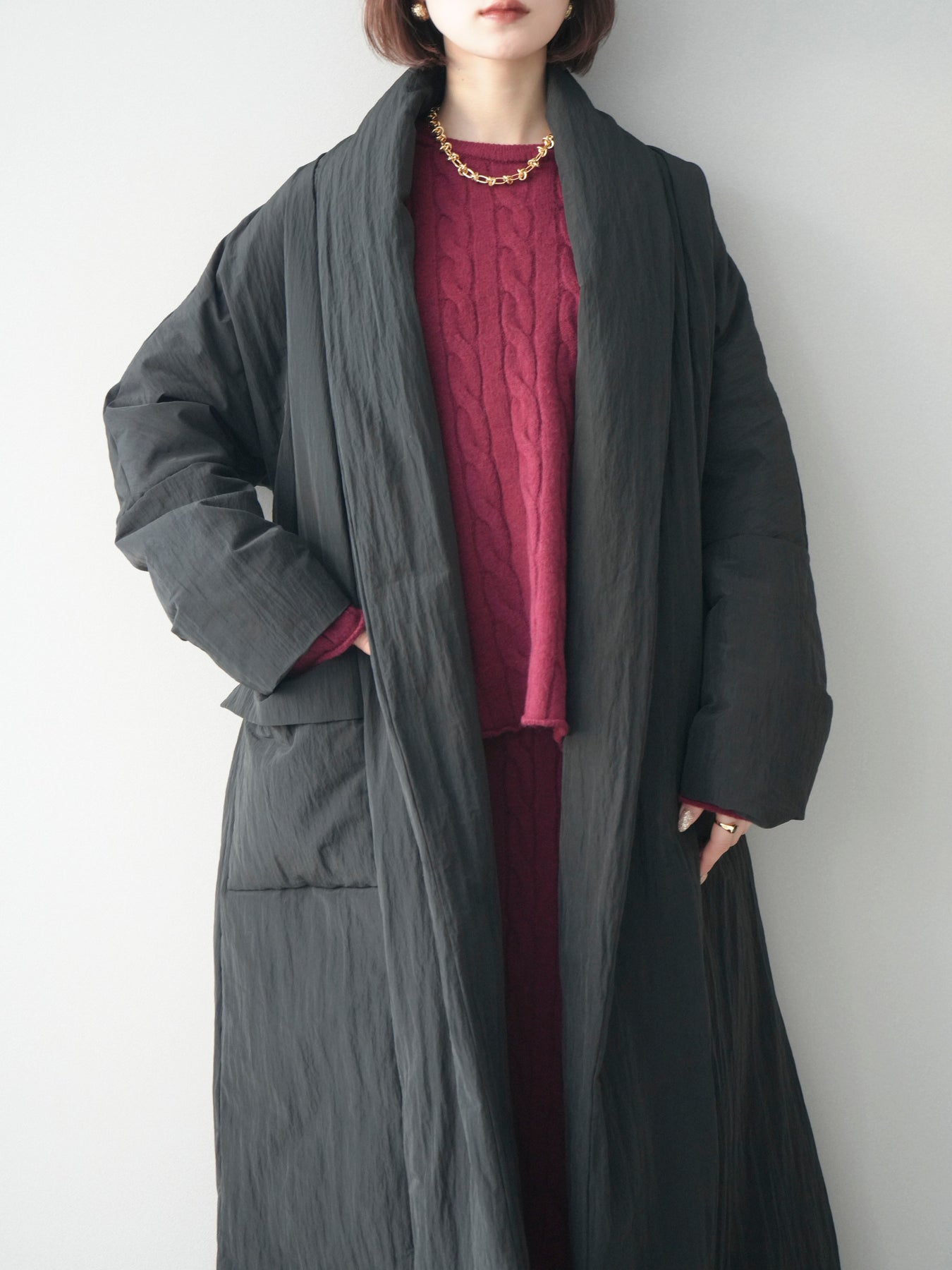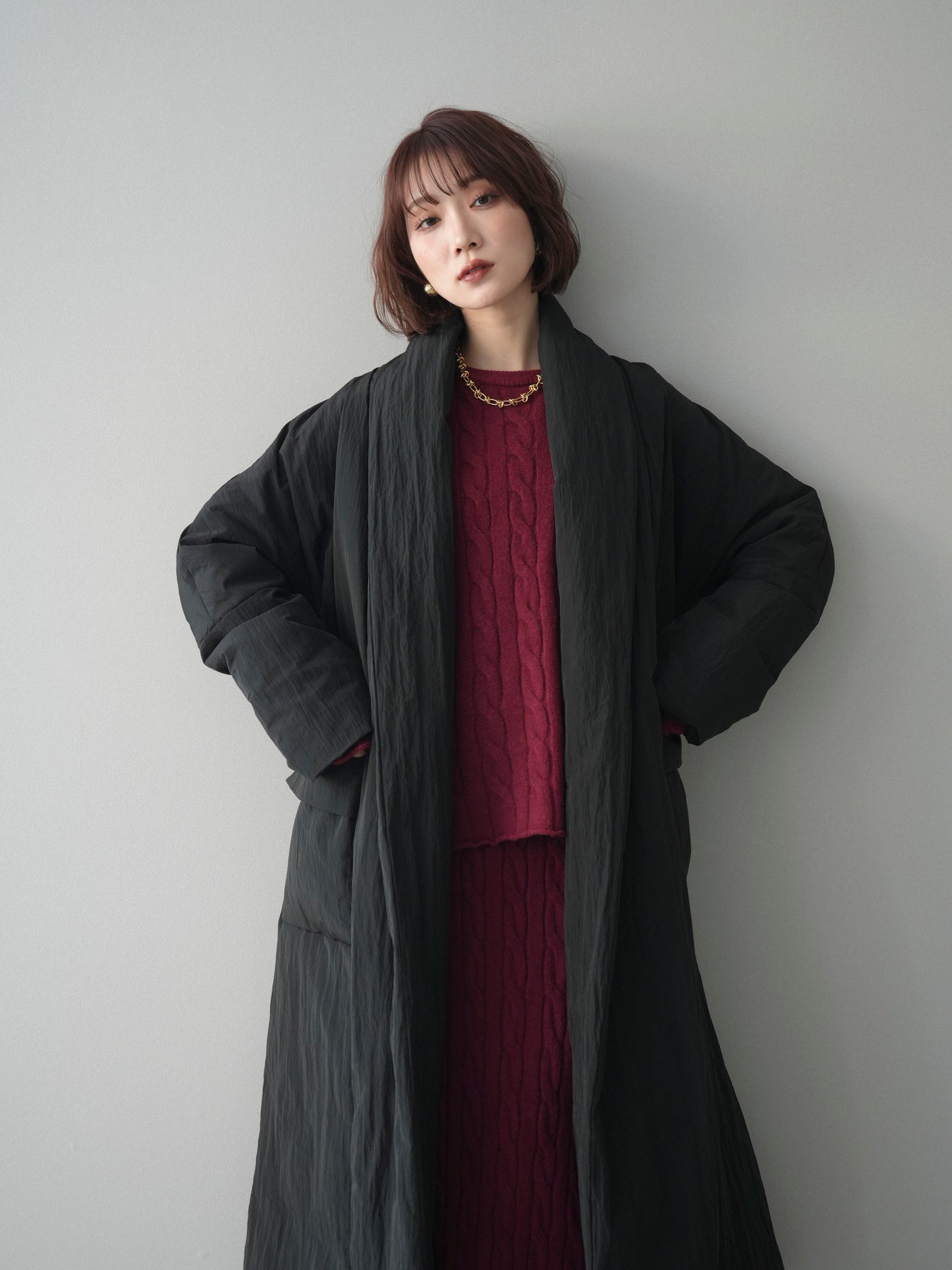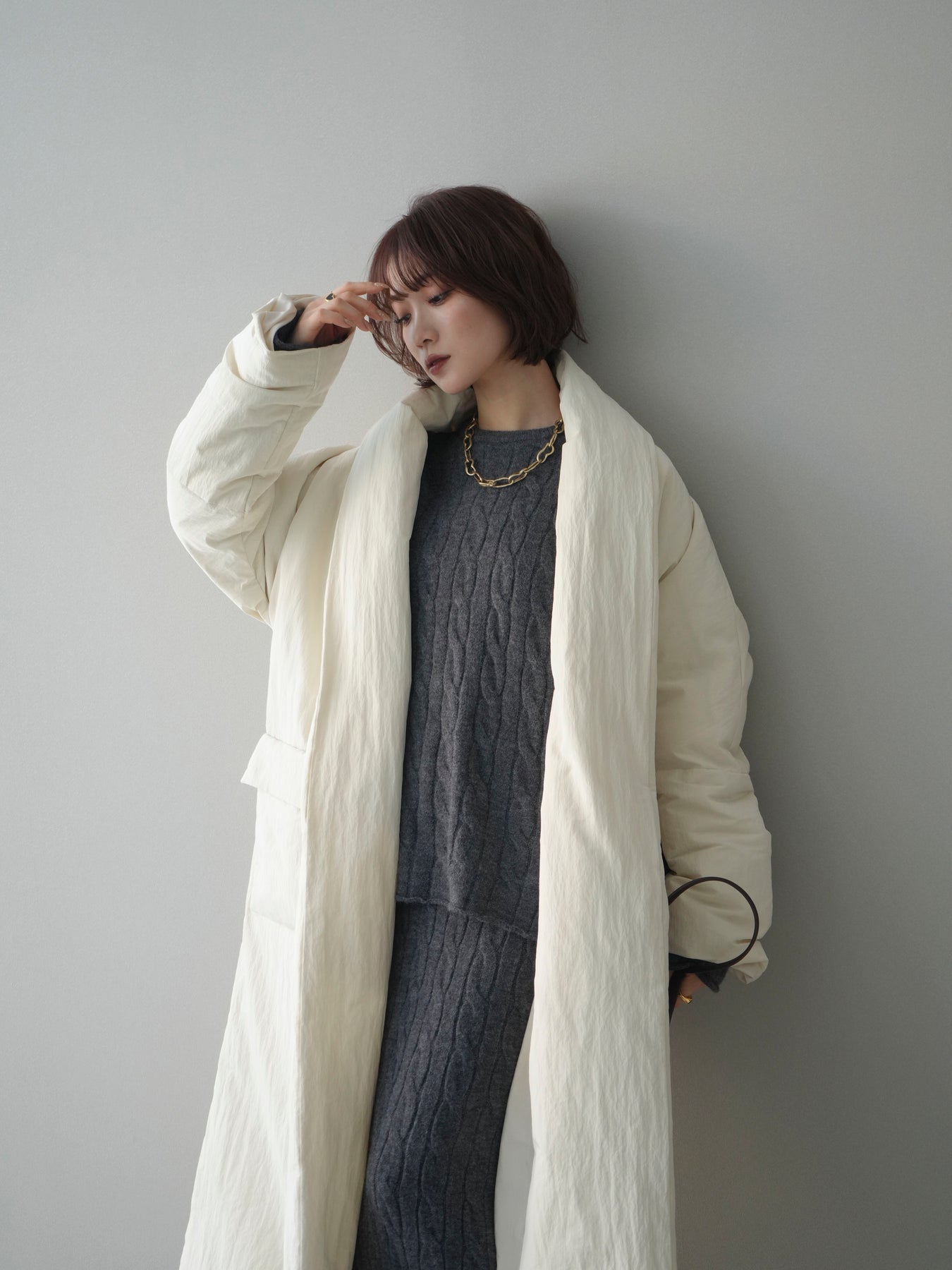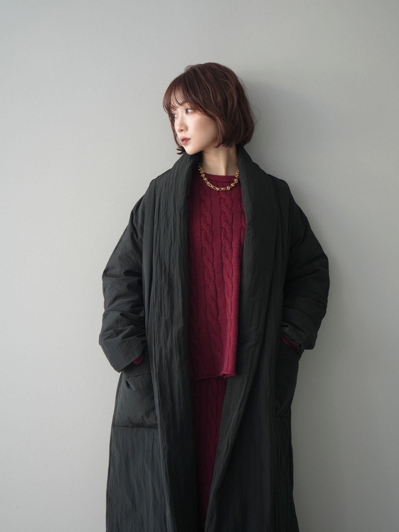 [SET]ストール付ケーブルニットプルオーバー&ロングスカートSET UP+ロングダウンコート(2set)