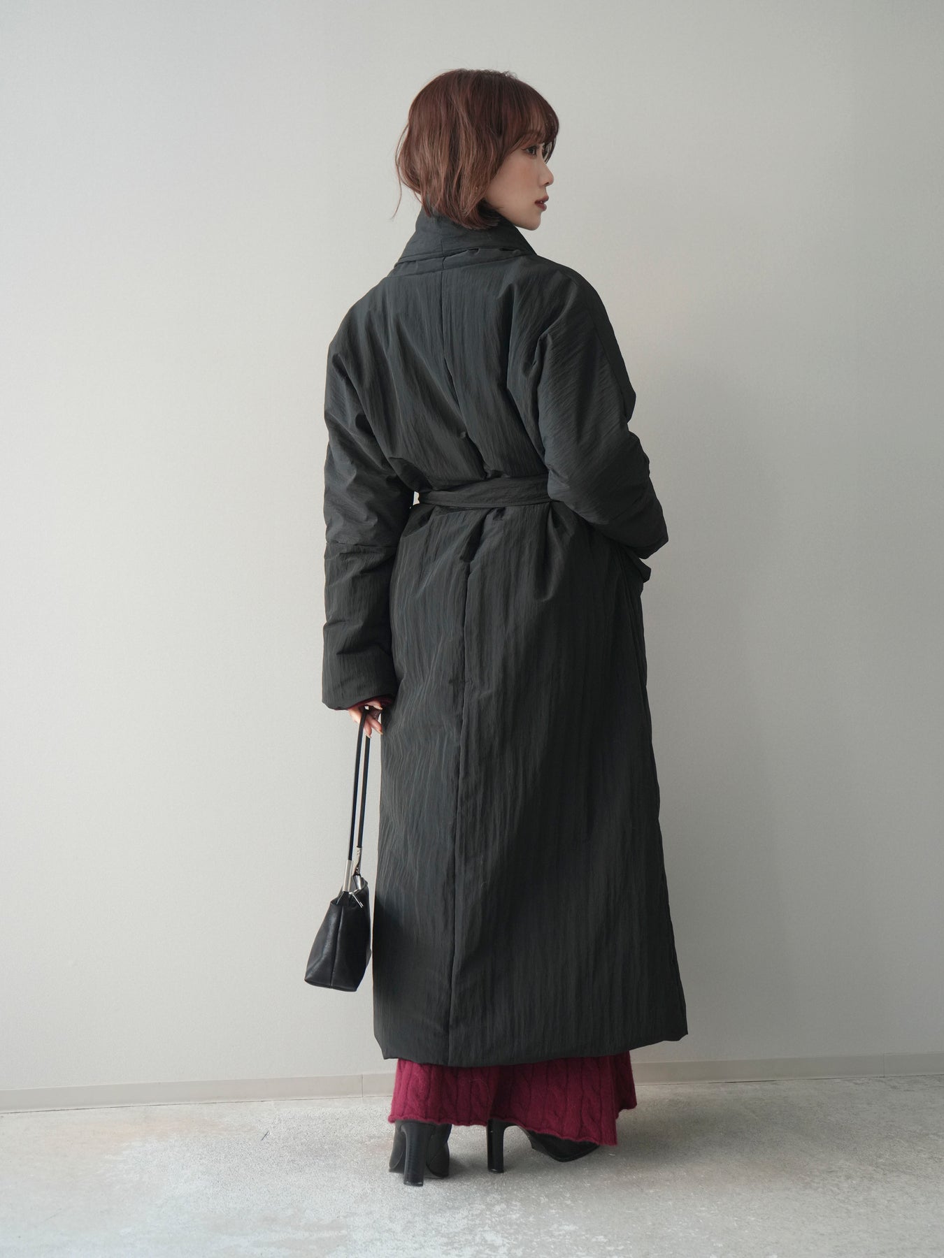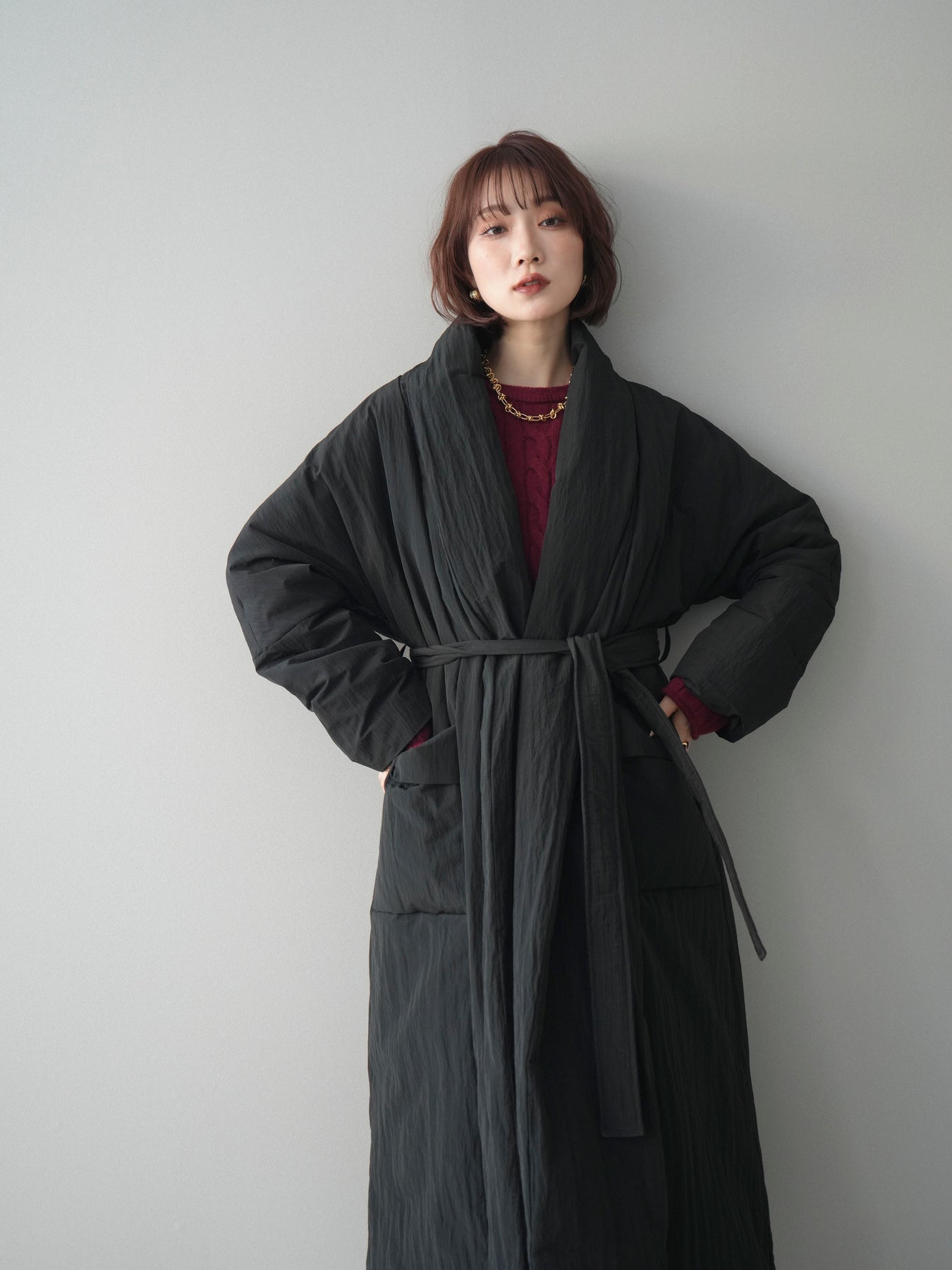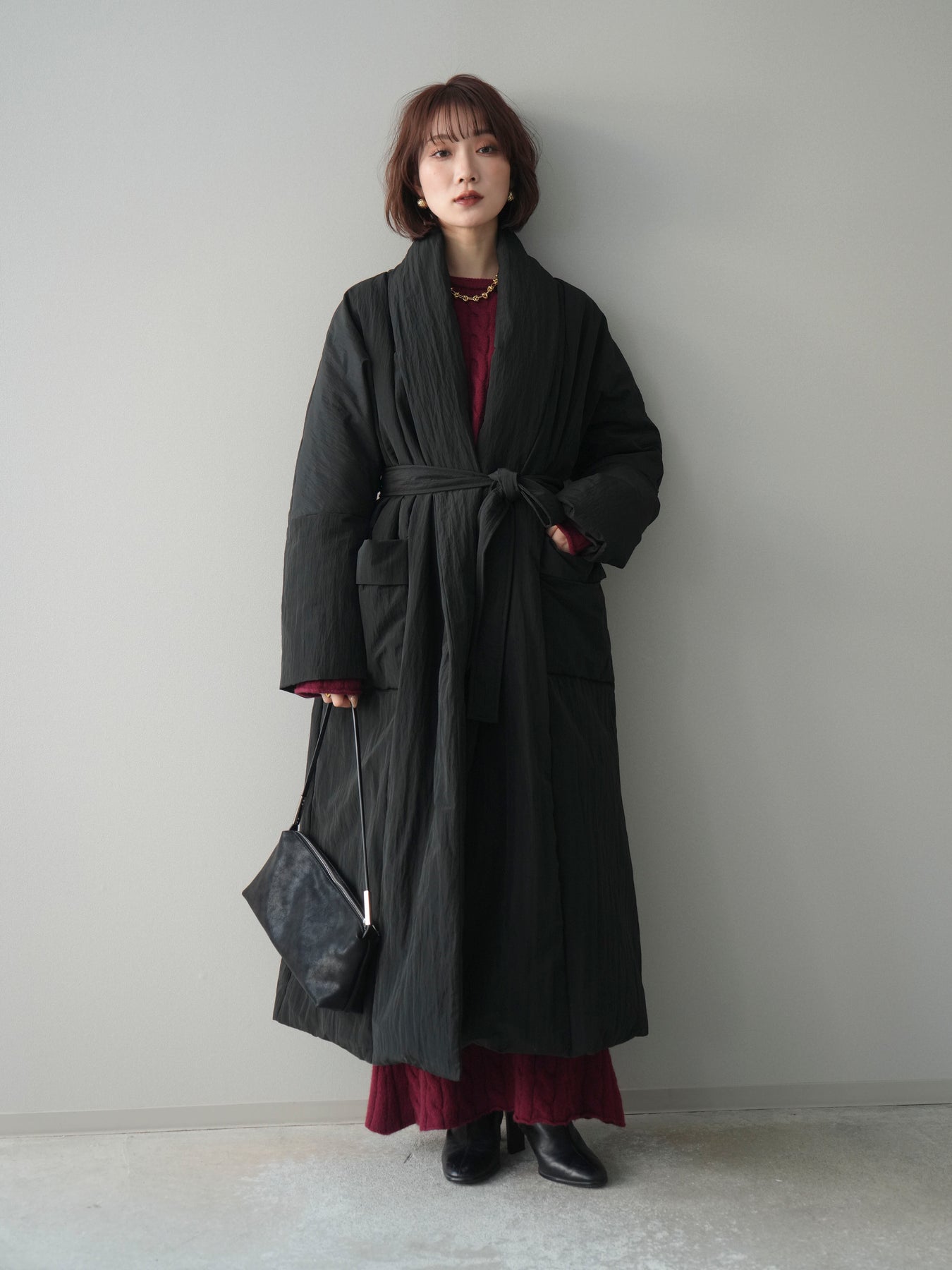 肩幅63cm バスト122cm アームホール44cm 袖丈45cm 袖口38cm 着丈136cm 裏地あり 透け感なし 伸縮性なし フロントポケットあり ベルト全長186cm