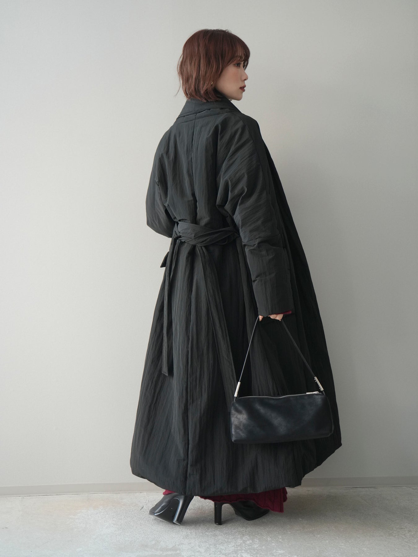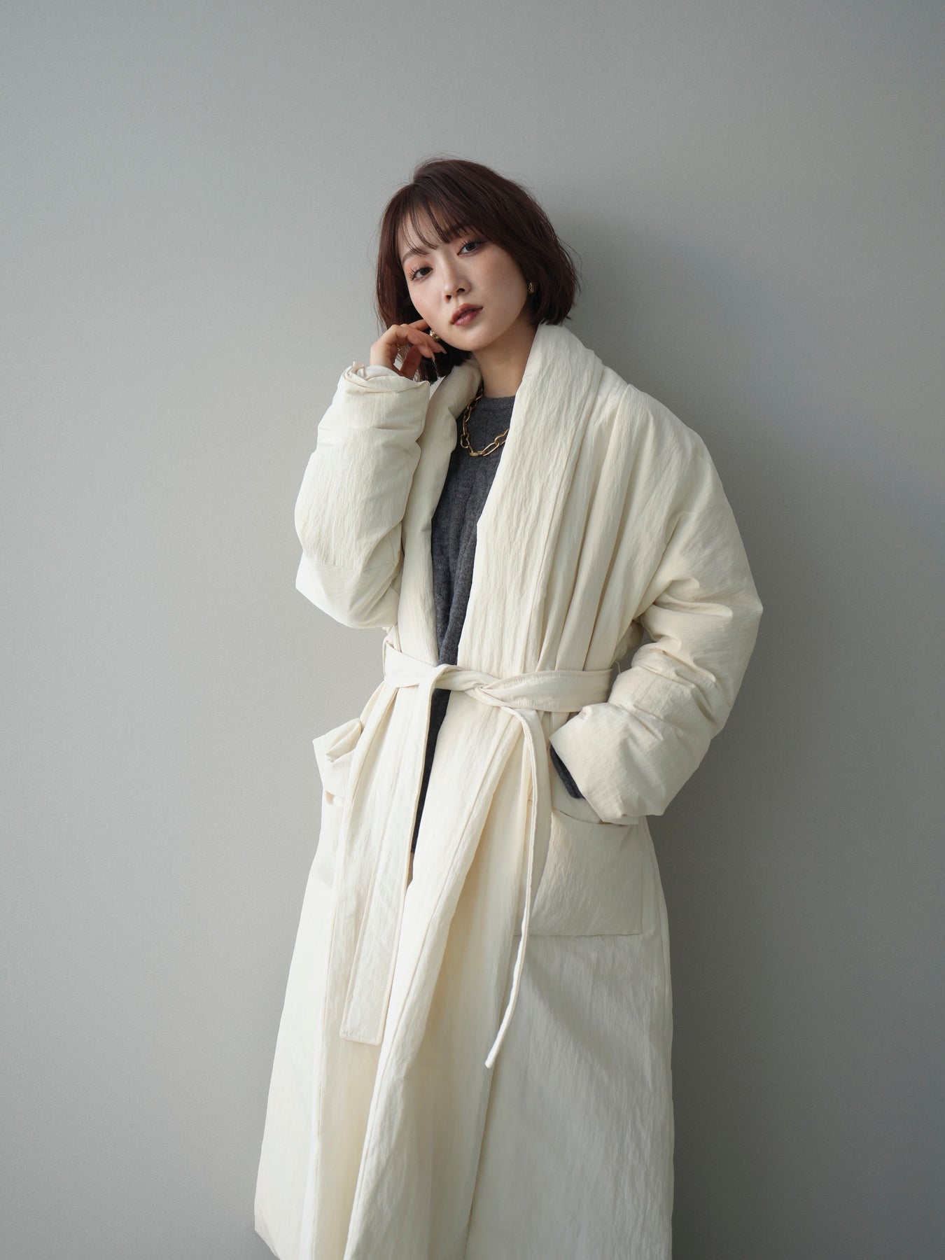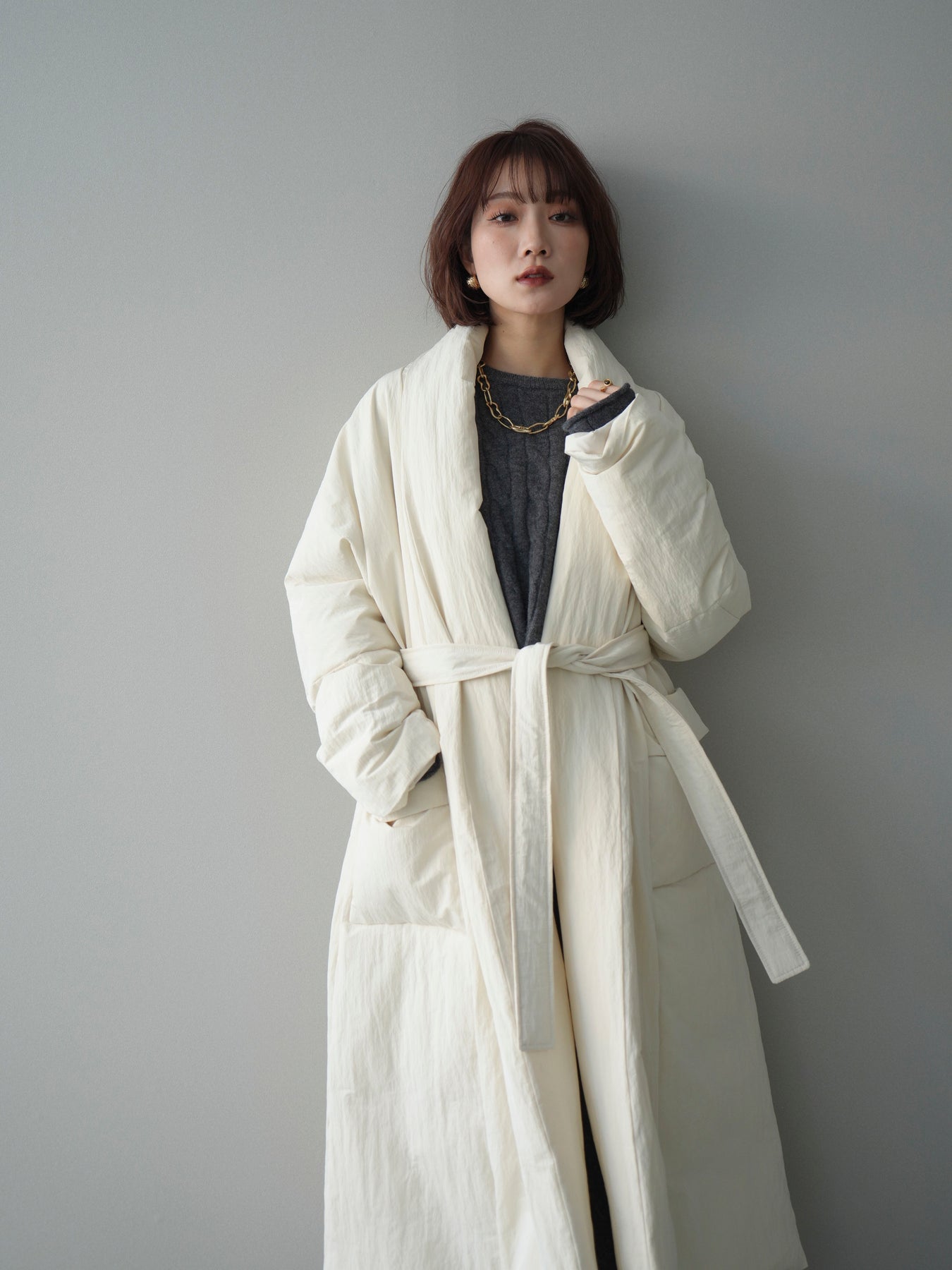 肩幅63cm バスト122cm アームホール44cm 袖丈45cm 袖口38cm 着丈136cm 裏地あり 透け感なし 伸縮性なし フロントポケットあり ベルト全長186cm