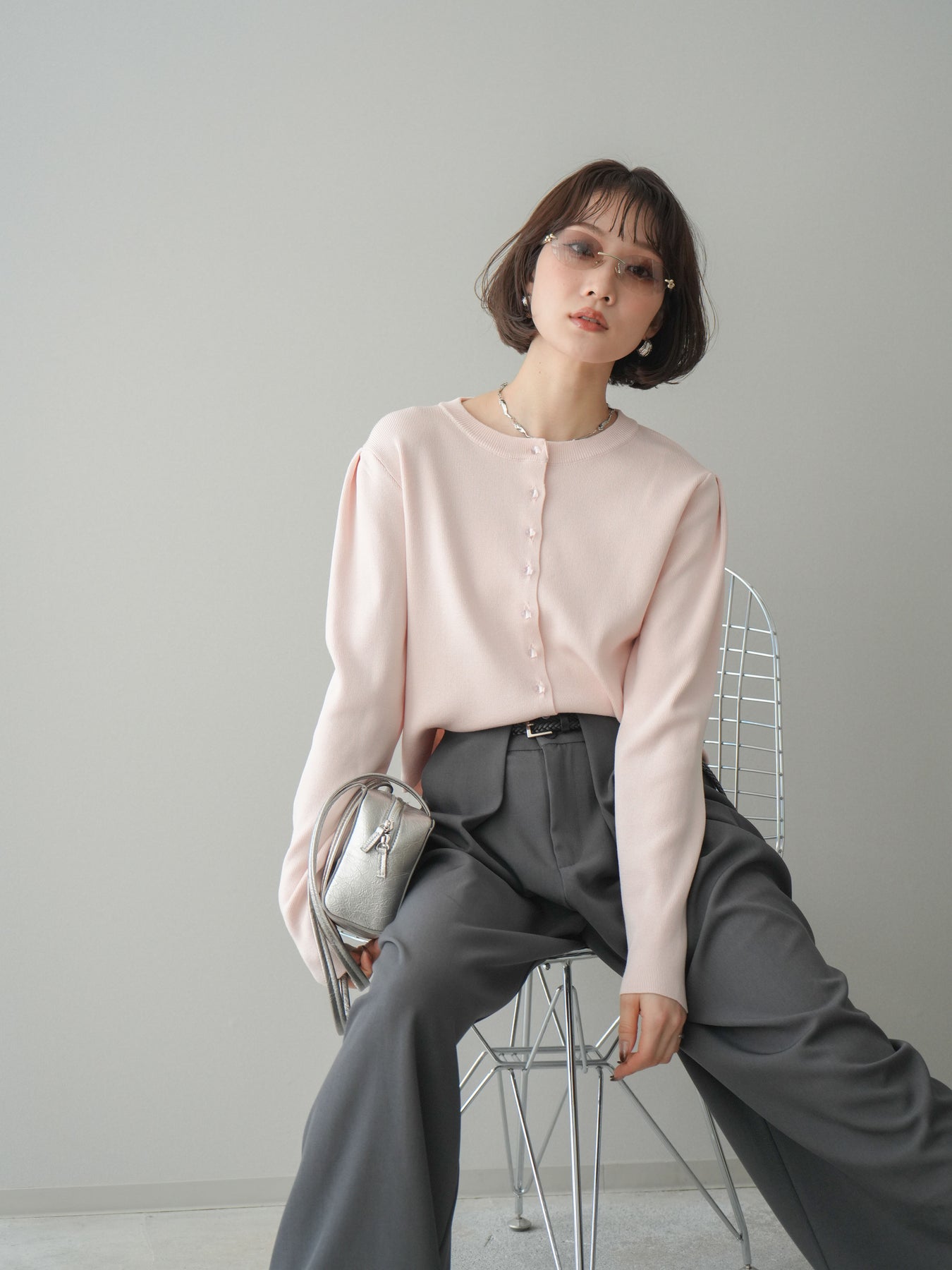 [予約]クリアボタンタックニットカーディガン