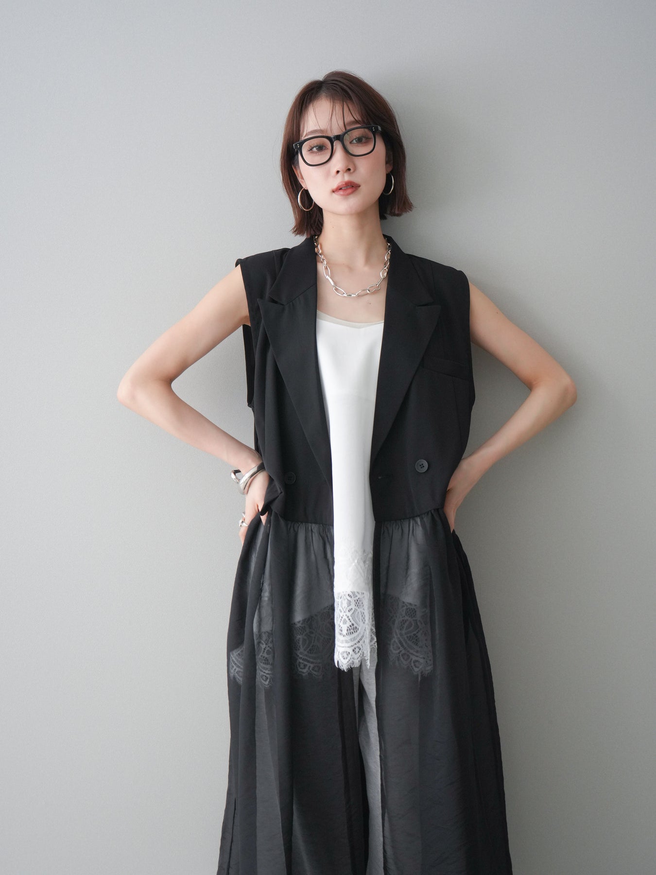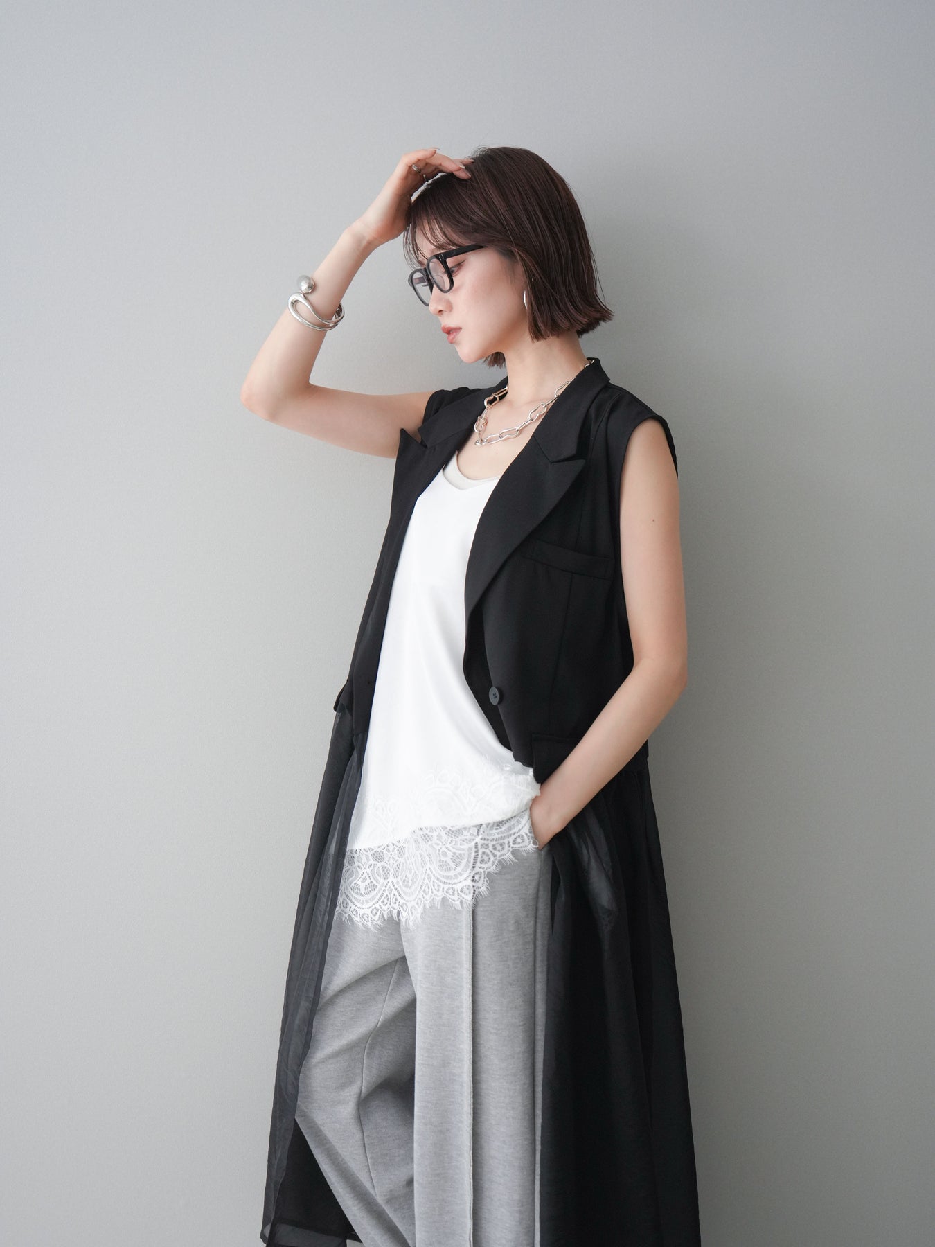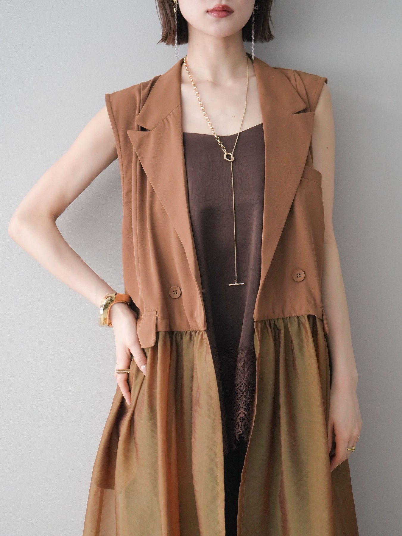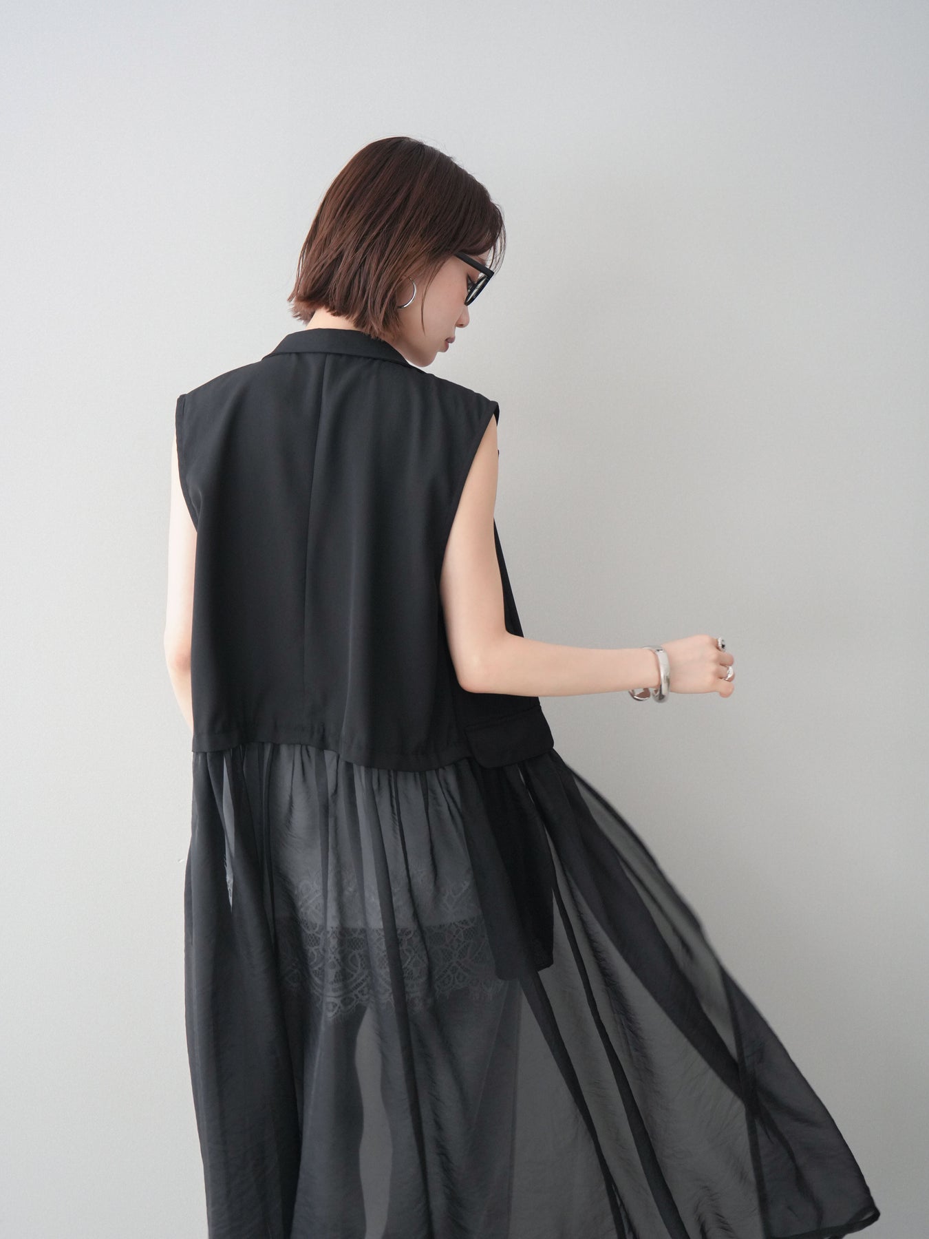 ◆ [予約]シアーレイヤードテーラードロングジレ