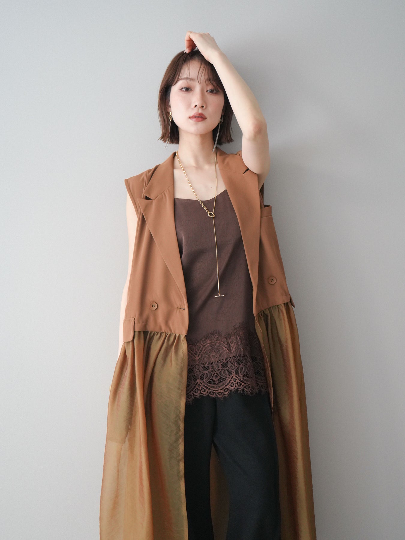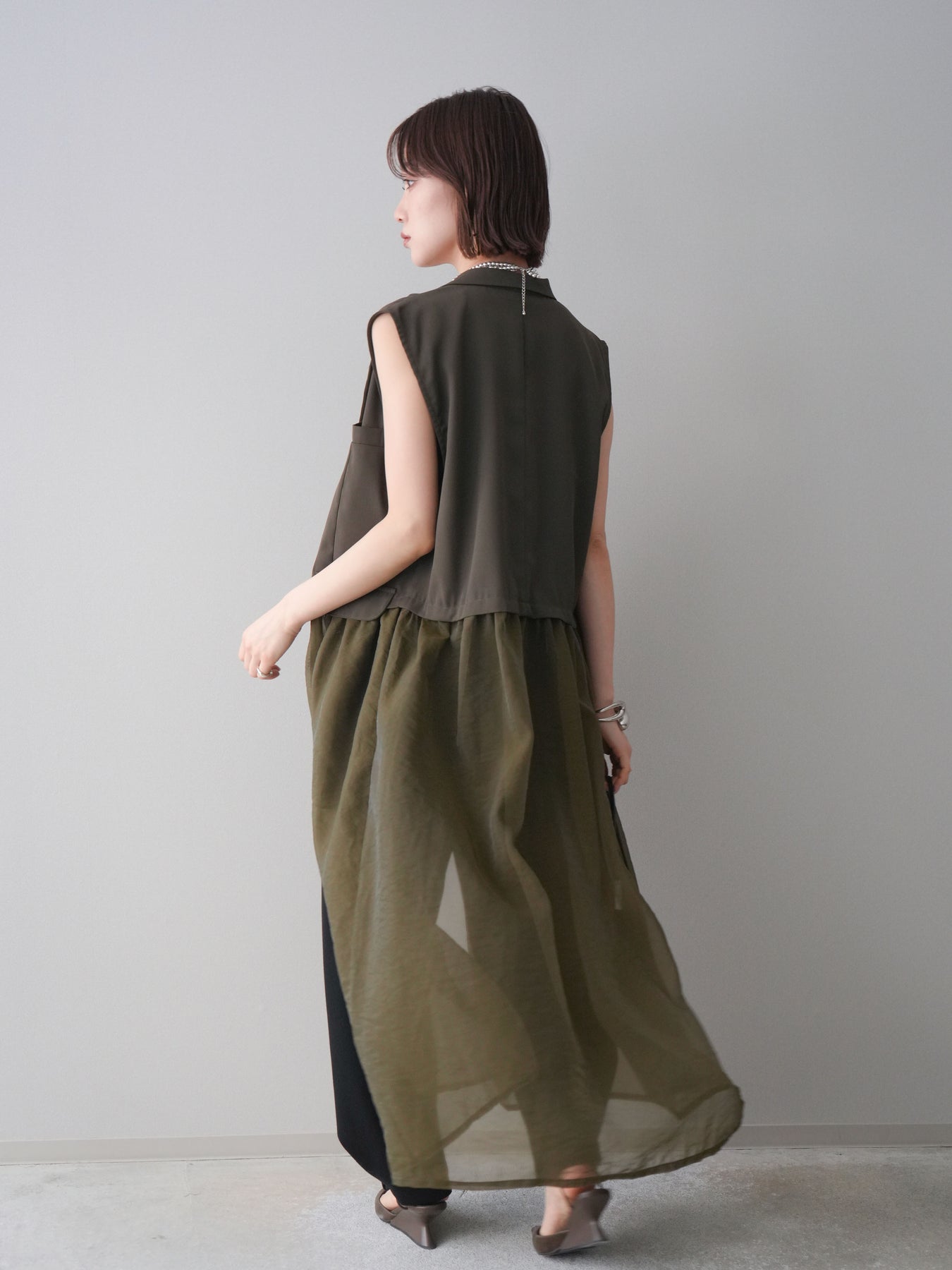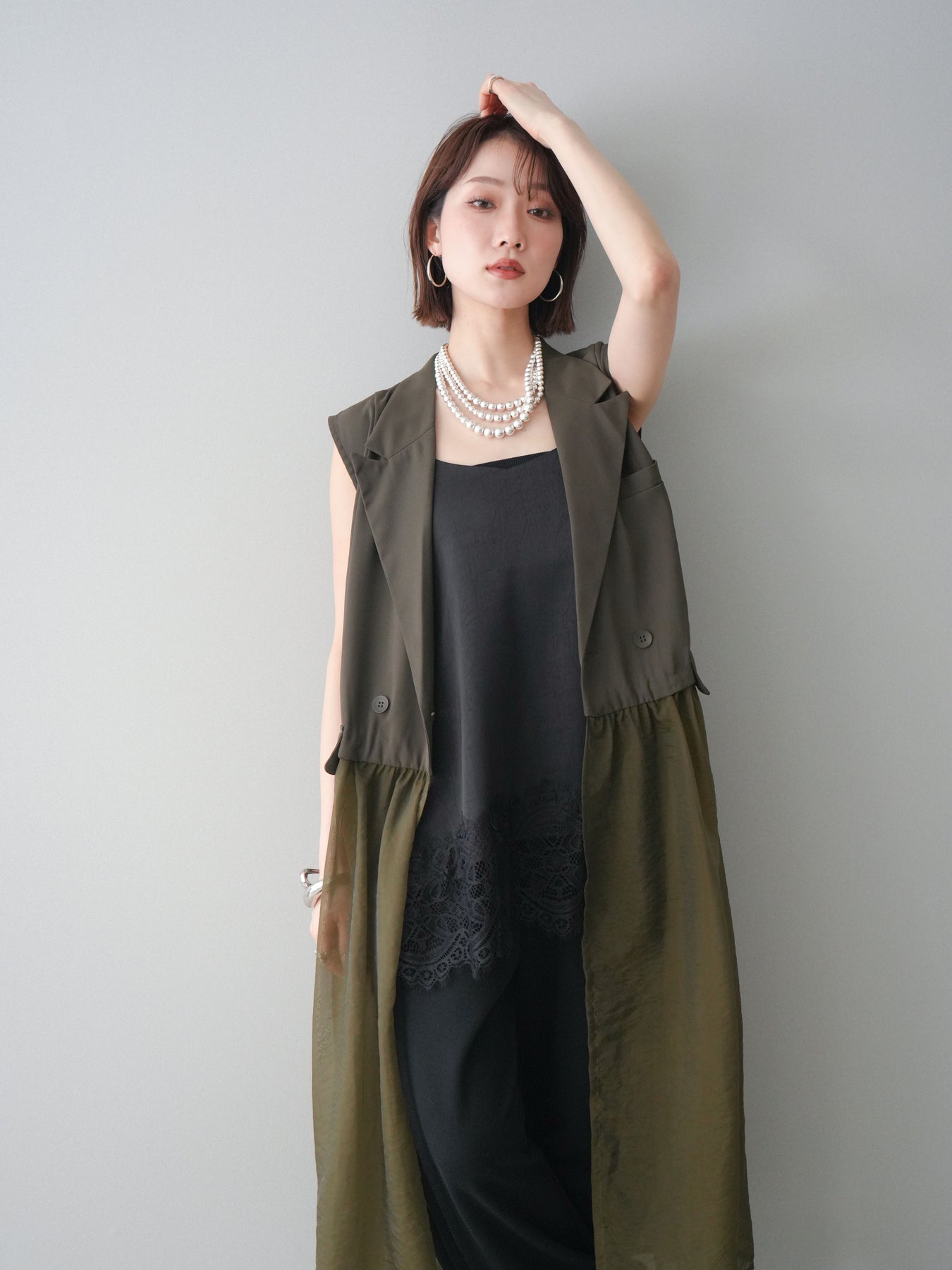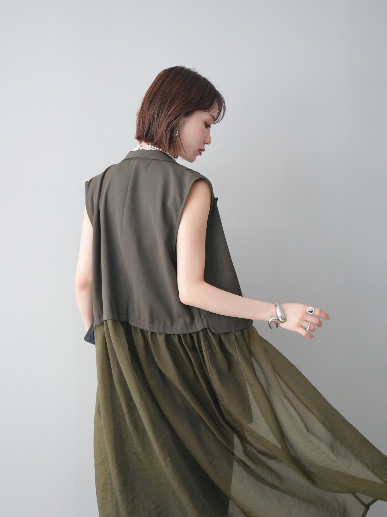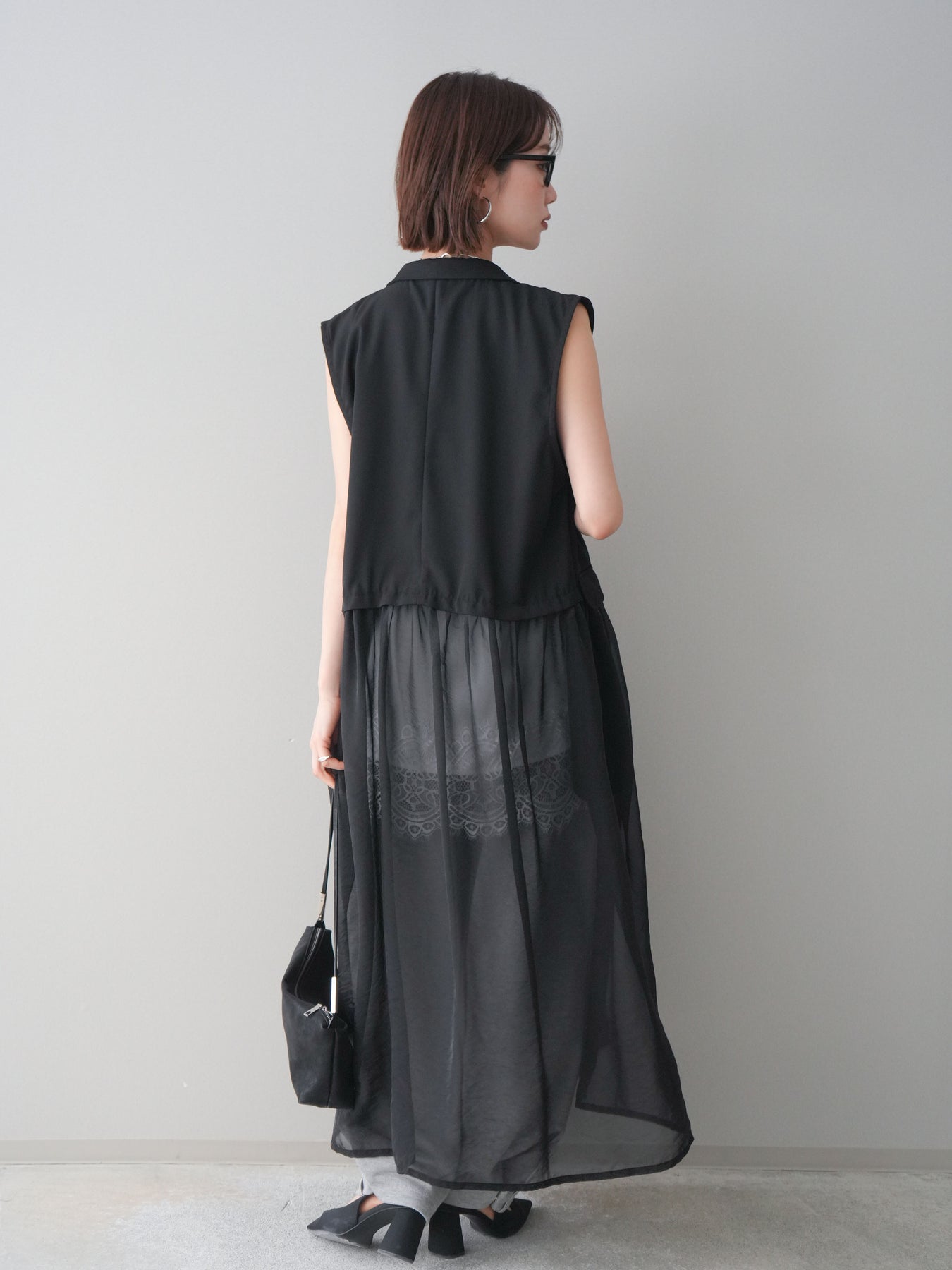 ◆ [予約]シアーレイヤードテーラードロングジレ