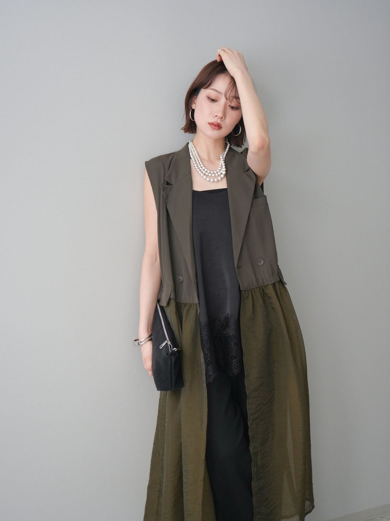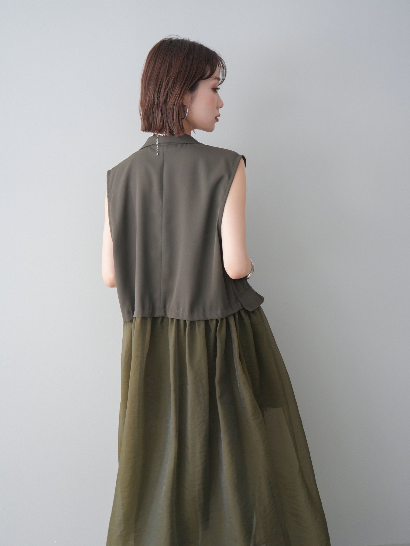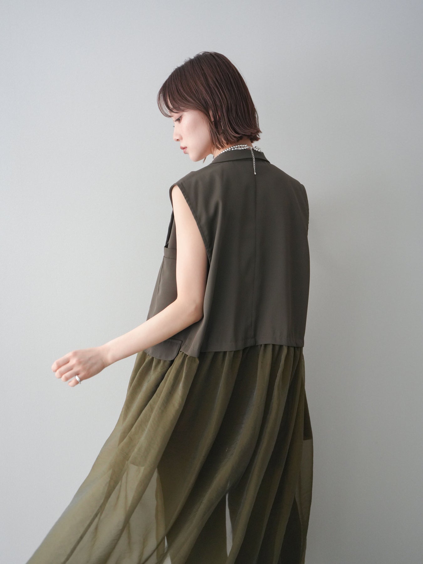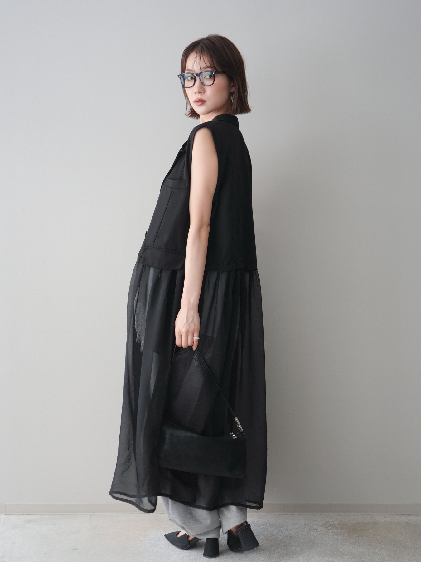 ◆ [予約]シアーレイヤードテーラードロングジレ