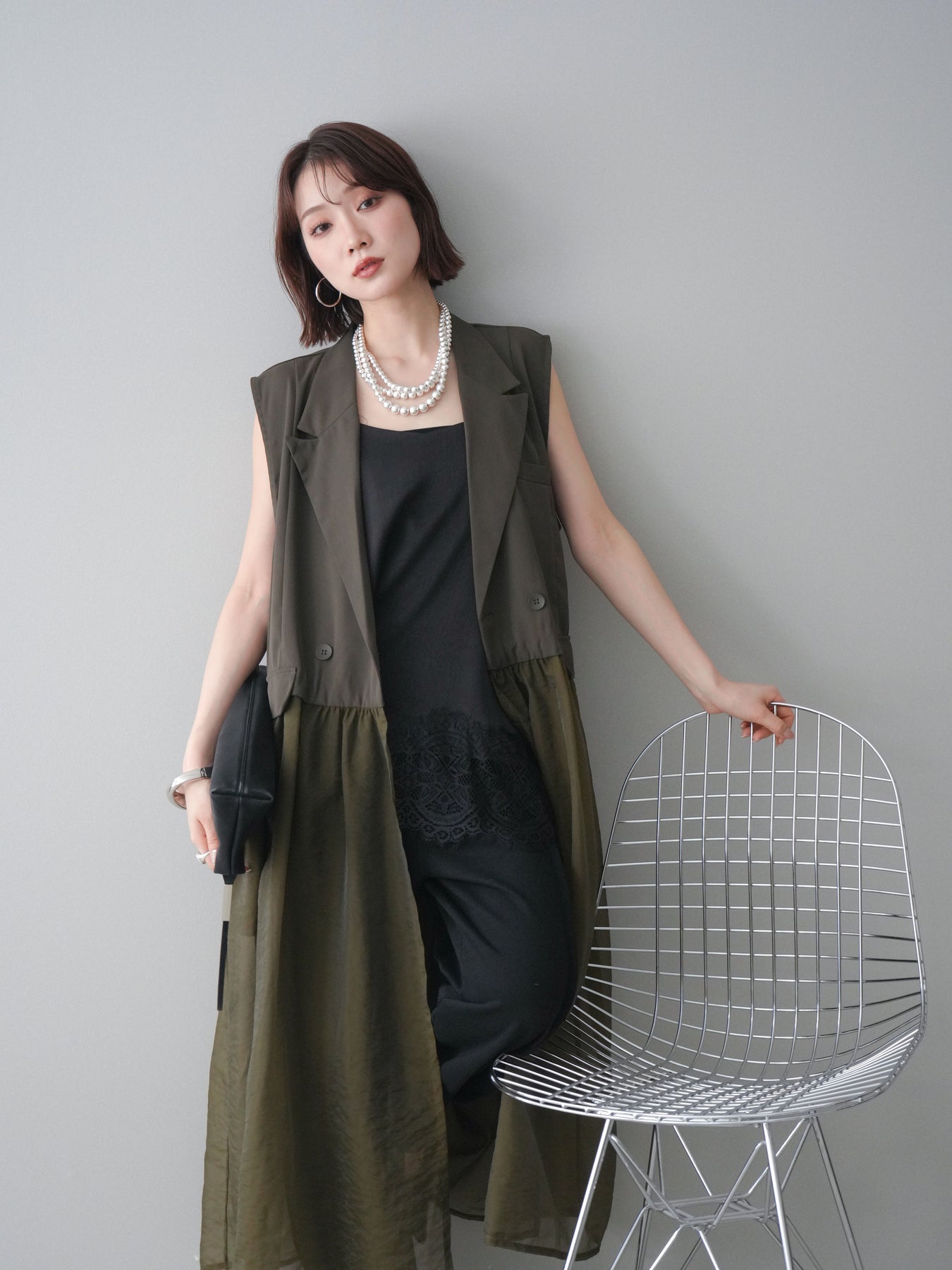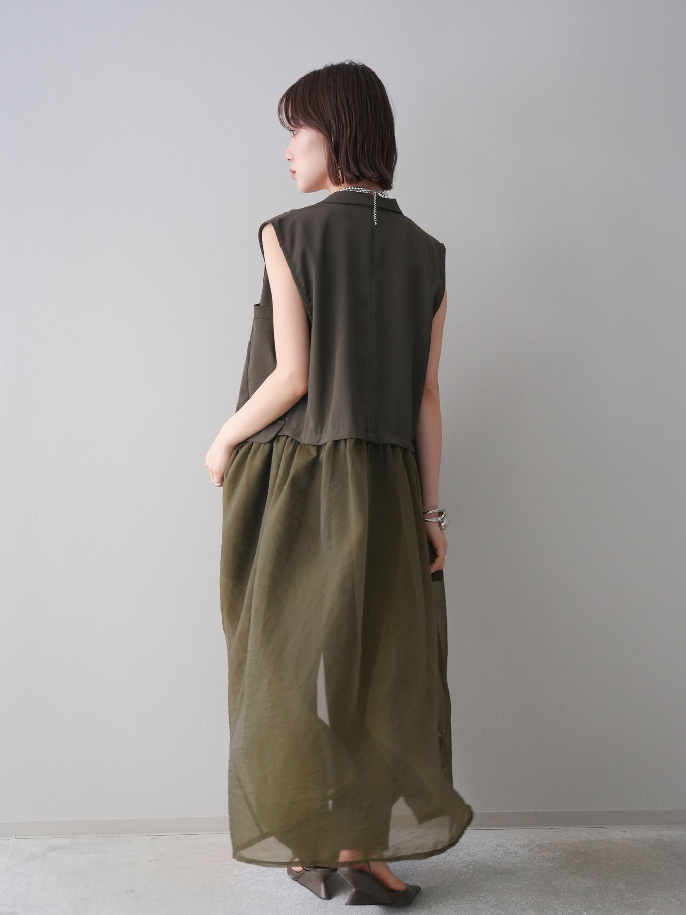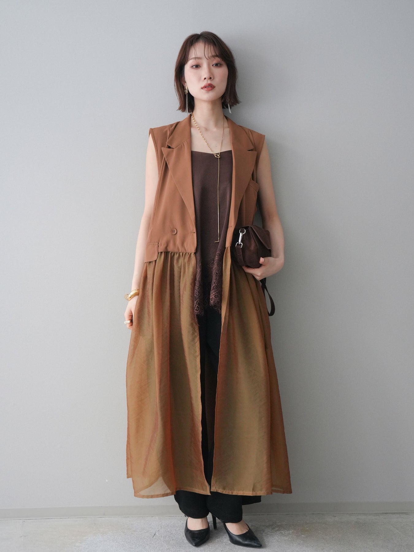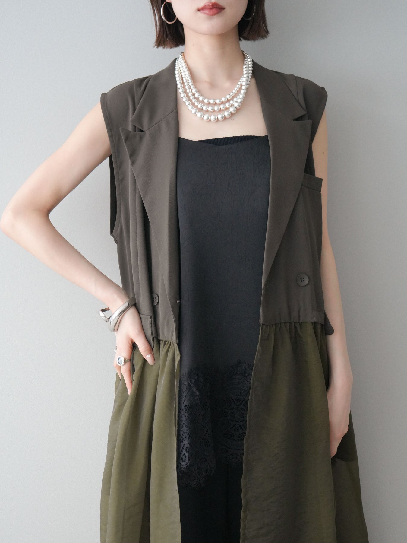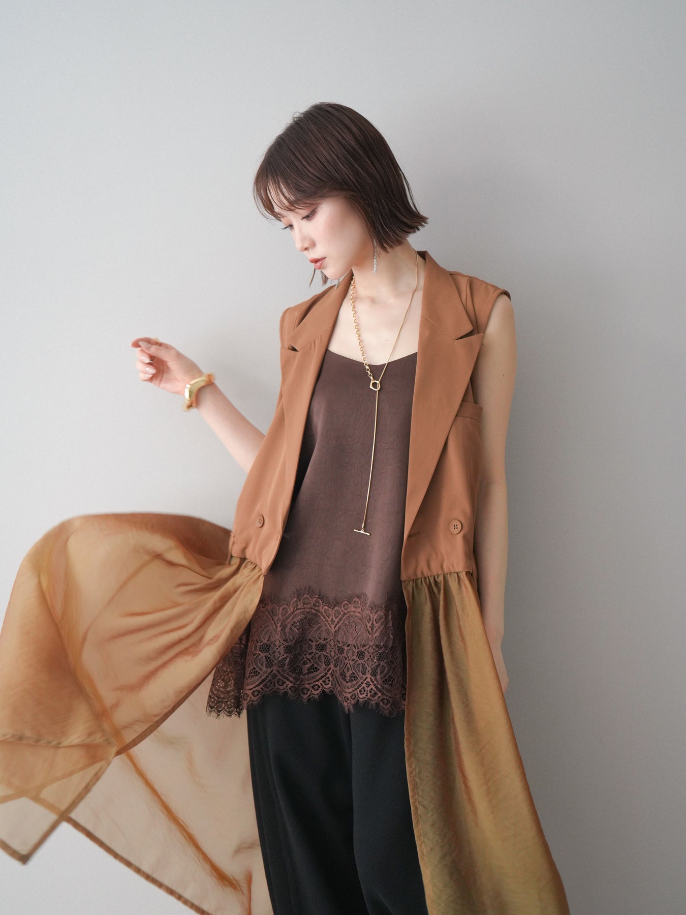◆ [予約]シアーレイヤードテーラードロングジレ