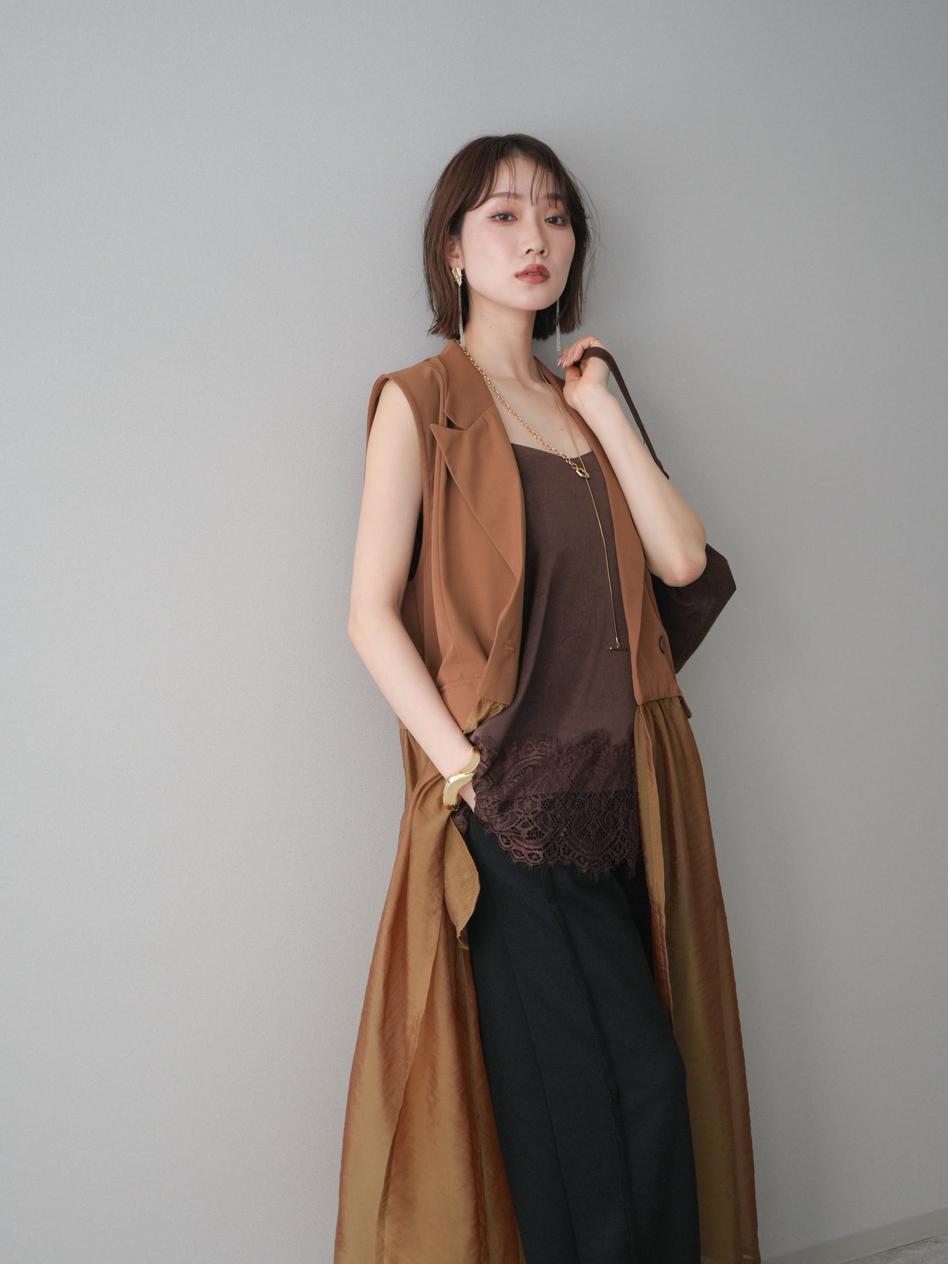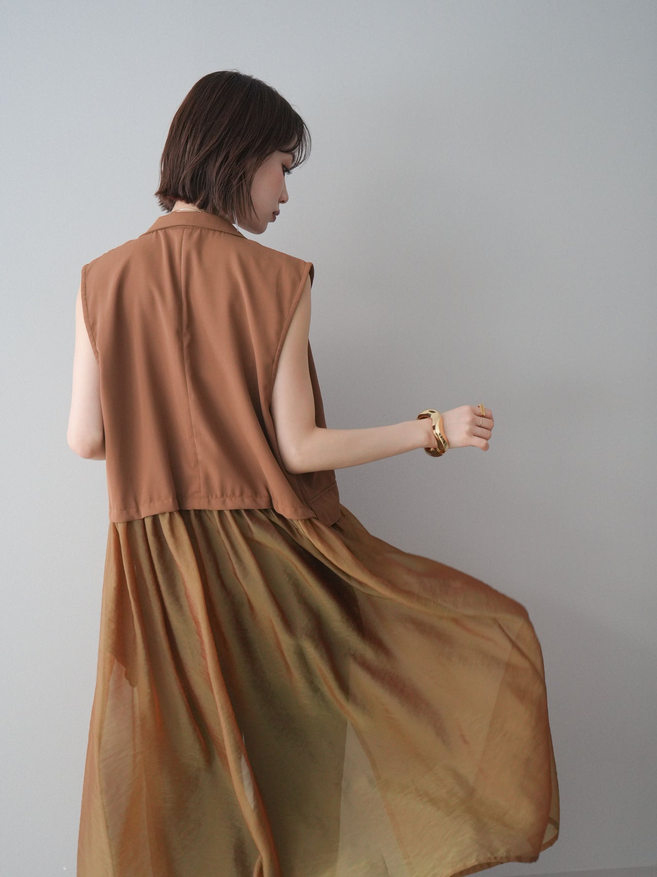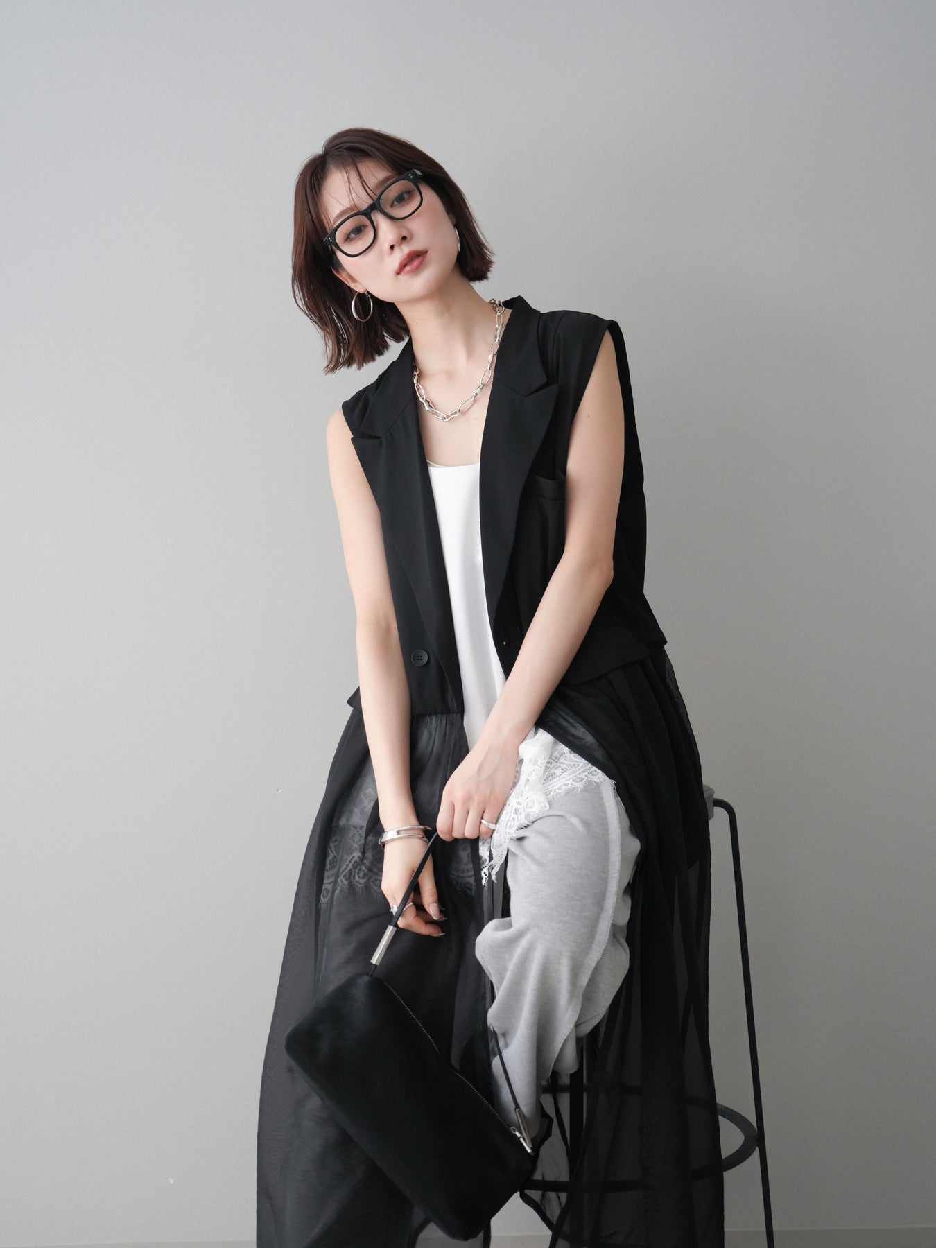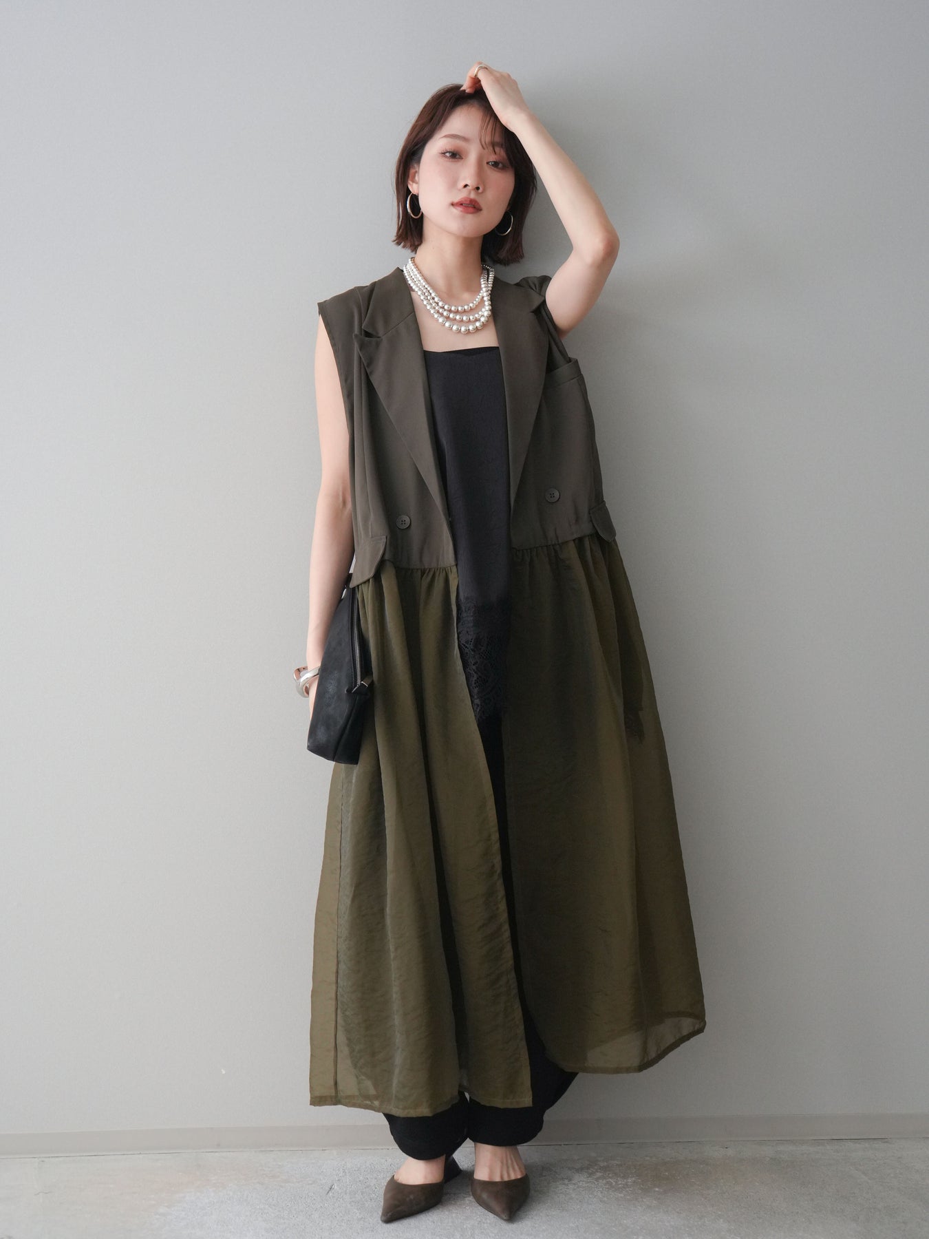 ◆ [予約]シアーレイヤードテーラードロングジレ