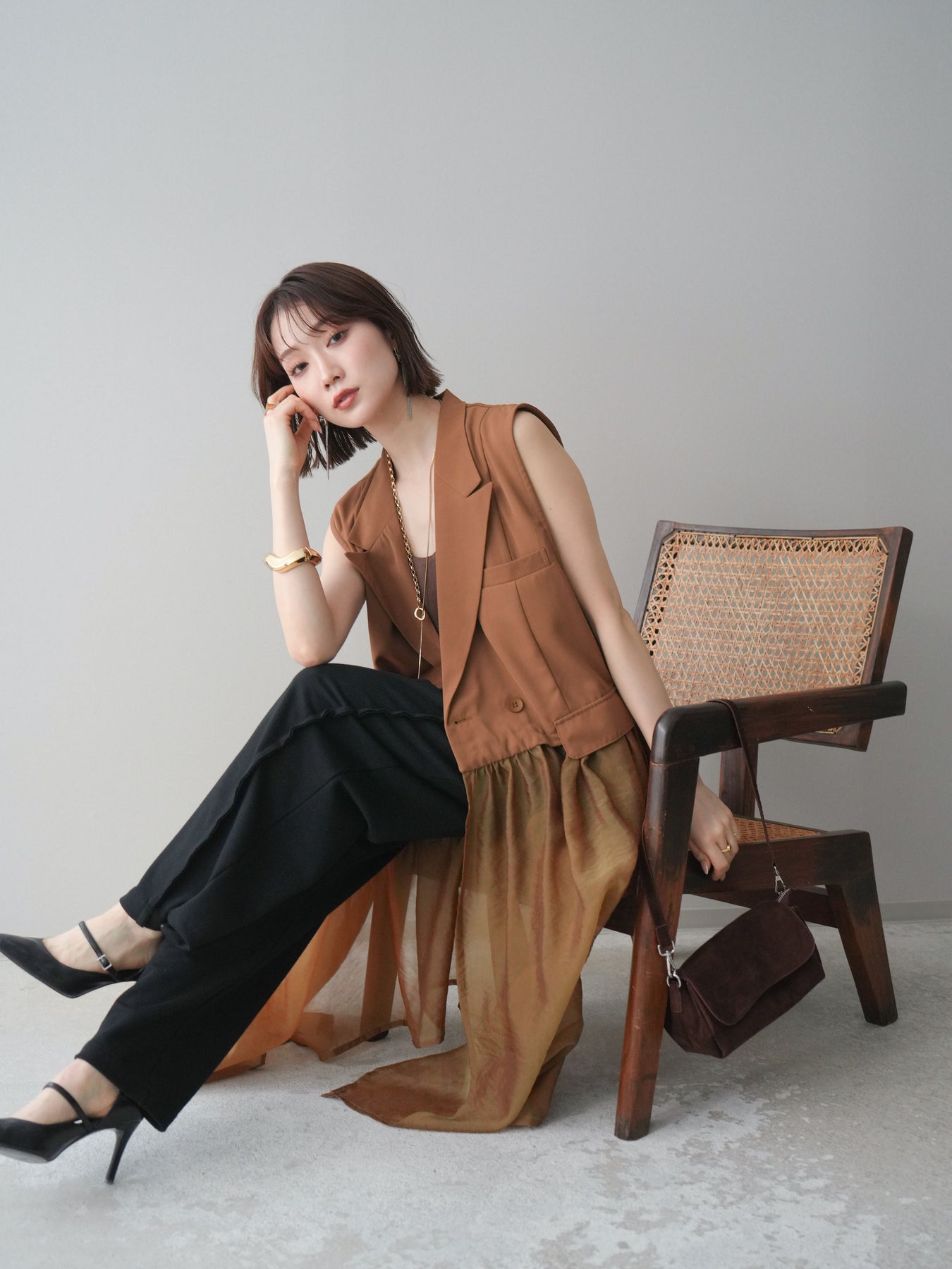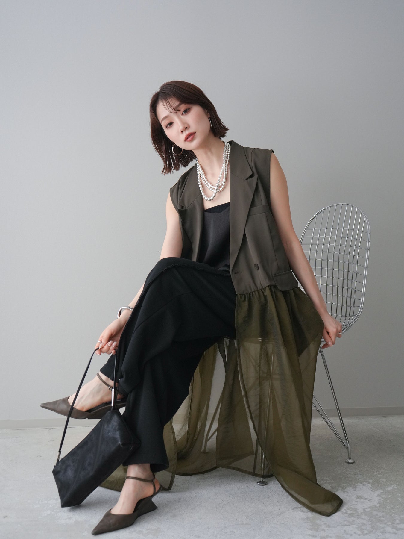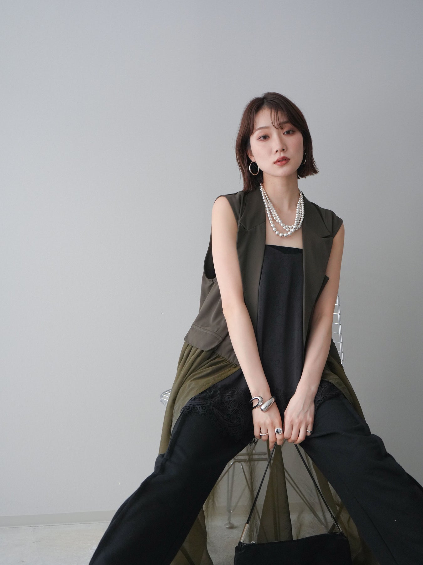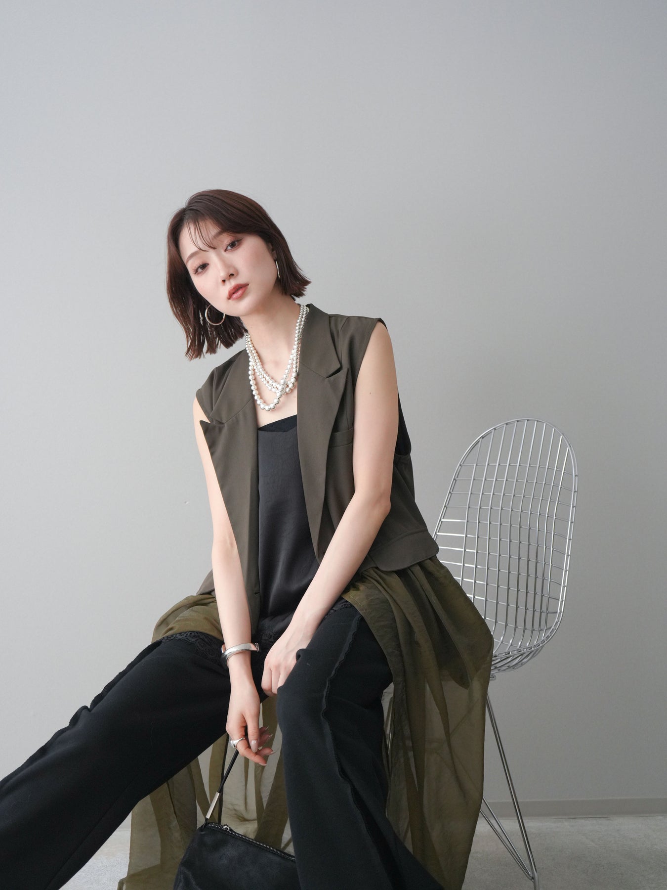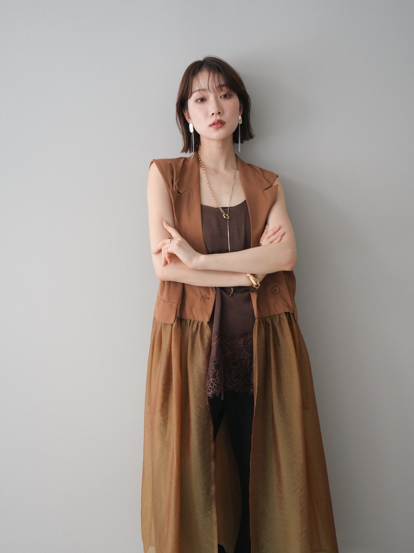 ◆ [予約]シアーレイヤードテーラードロングジレ