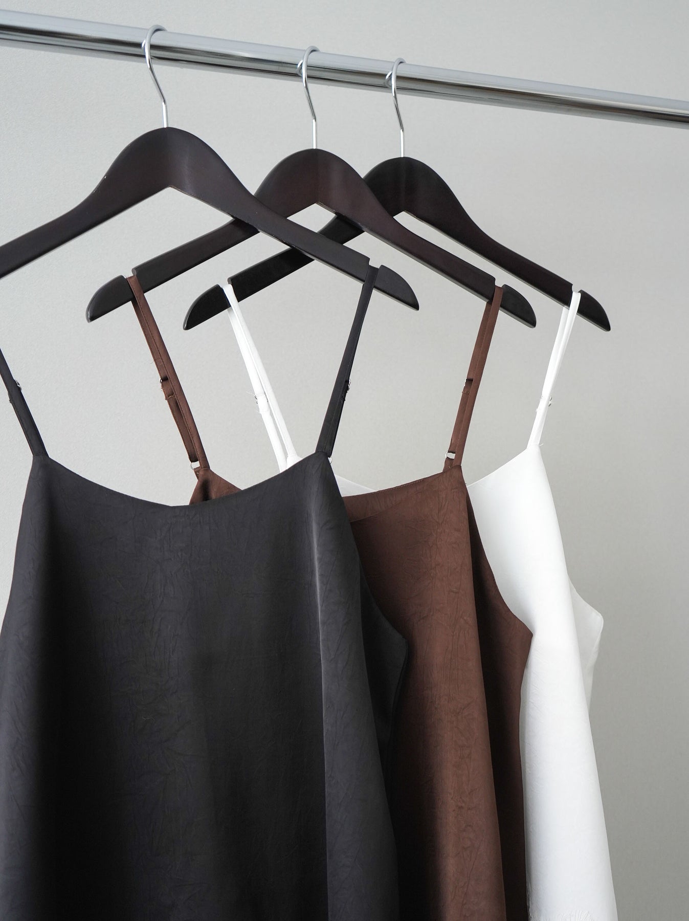 滑らかな落ち感のある素材に、裾へ繊細なレースをあしらったレーストリムキャミソール。シンプルなシルエットにレースの透け感がアクセントとなり、女性らしく上品な印象を演出します。肩紐は華奢なデザインでレイヤードしやすく、シャツやジャケット、ニットのインナーとしても活躍。主張しすぎないデザインながら、スタイリングに奥行きとニュアンスをプラスしてくれる、着回し力の高い一枚です。 ※ボトムス、キャミソール(インナー)以外の商品は一律でインナーは付属していません。