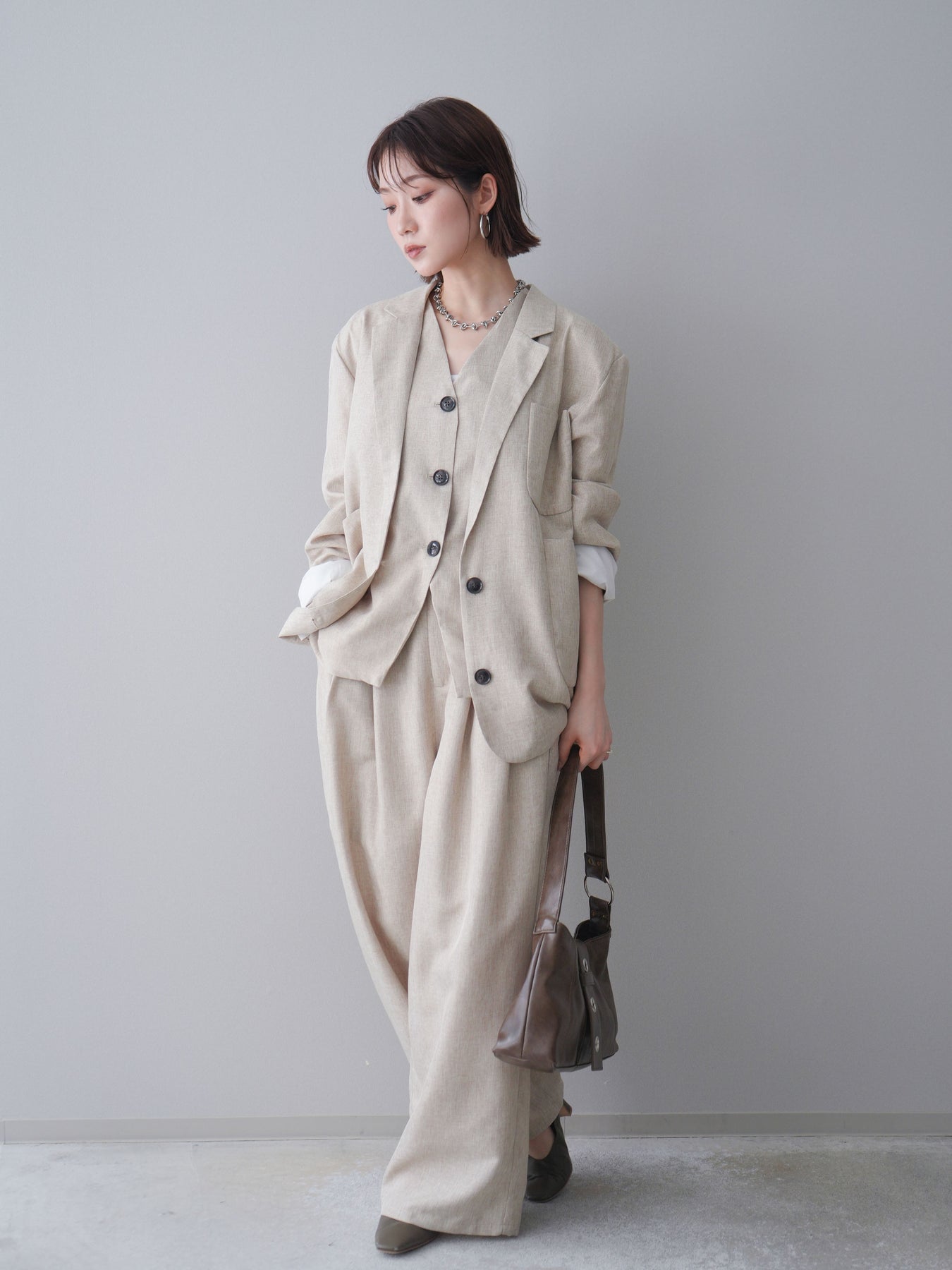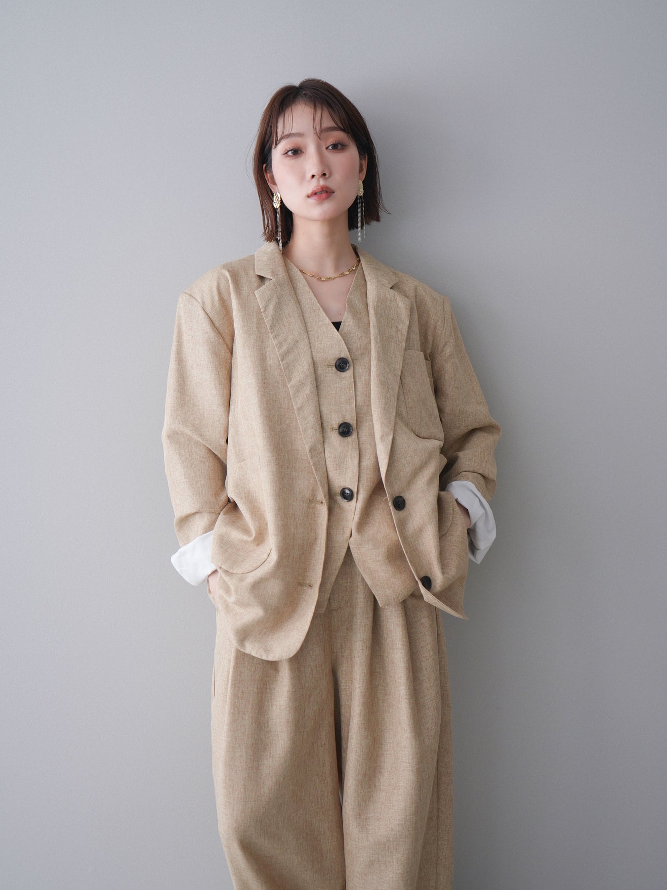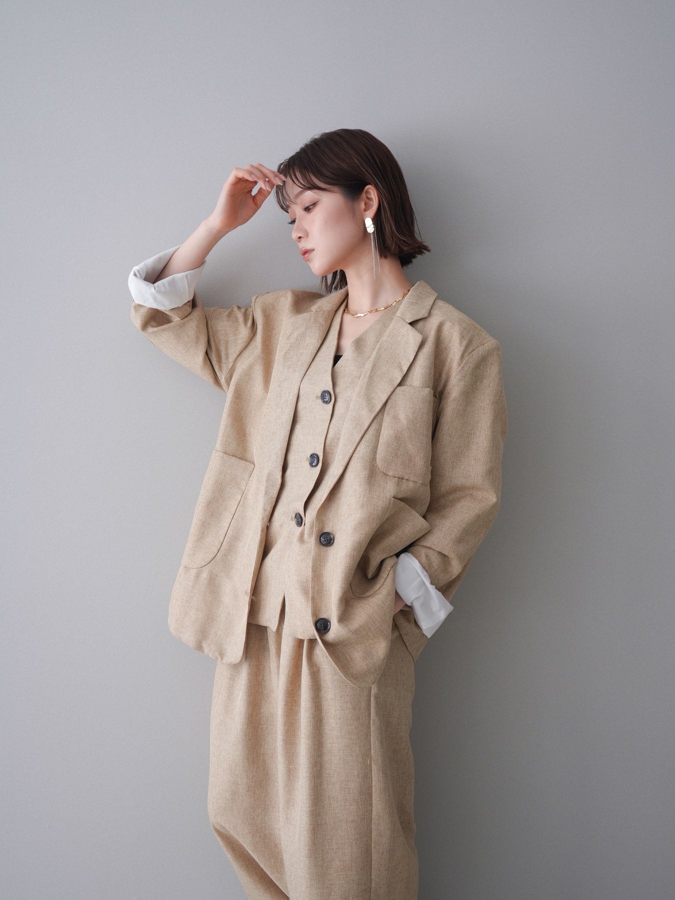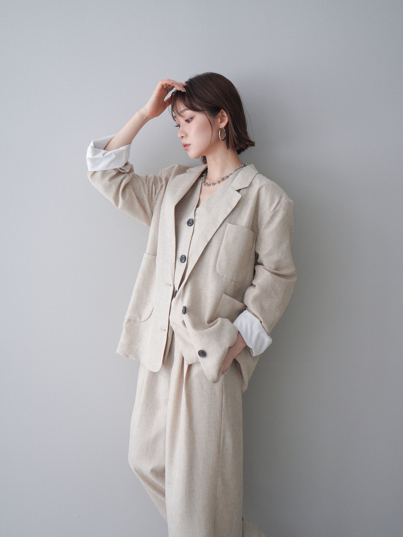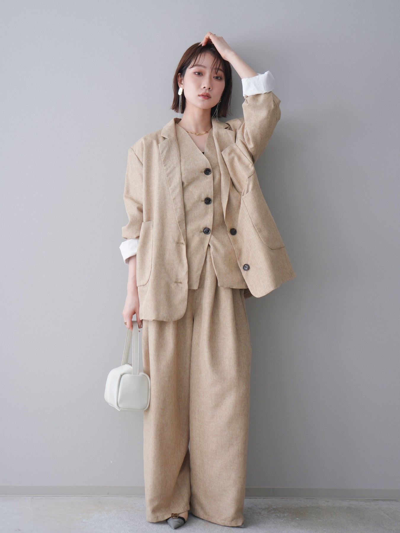 [SET]リネンライクテーラードジャケット+リネンライクバックオープンジレ+リネンライクタックワイドパンツ(3set)