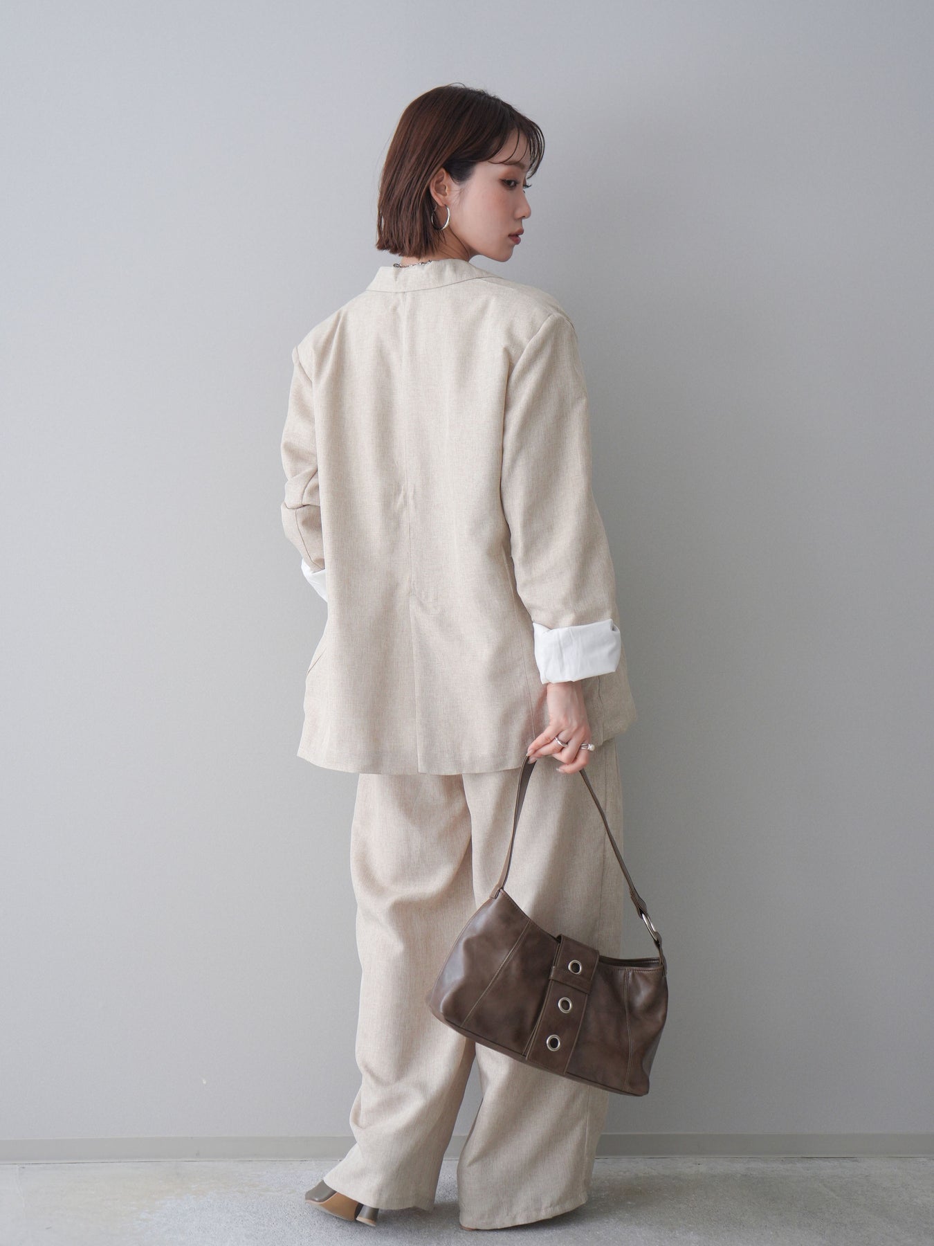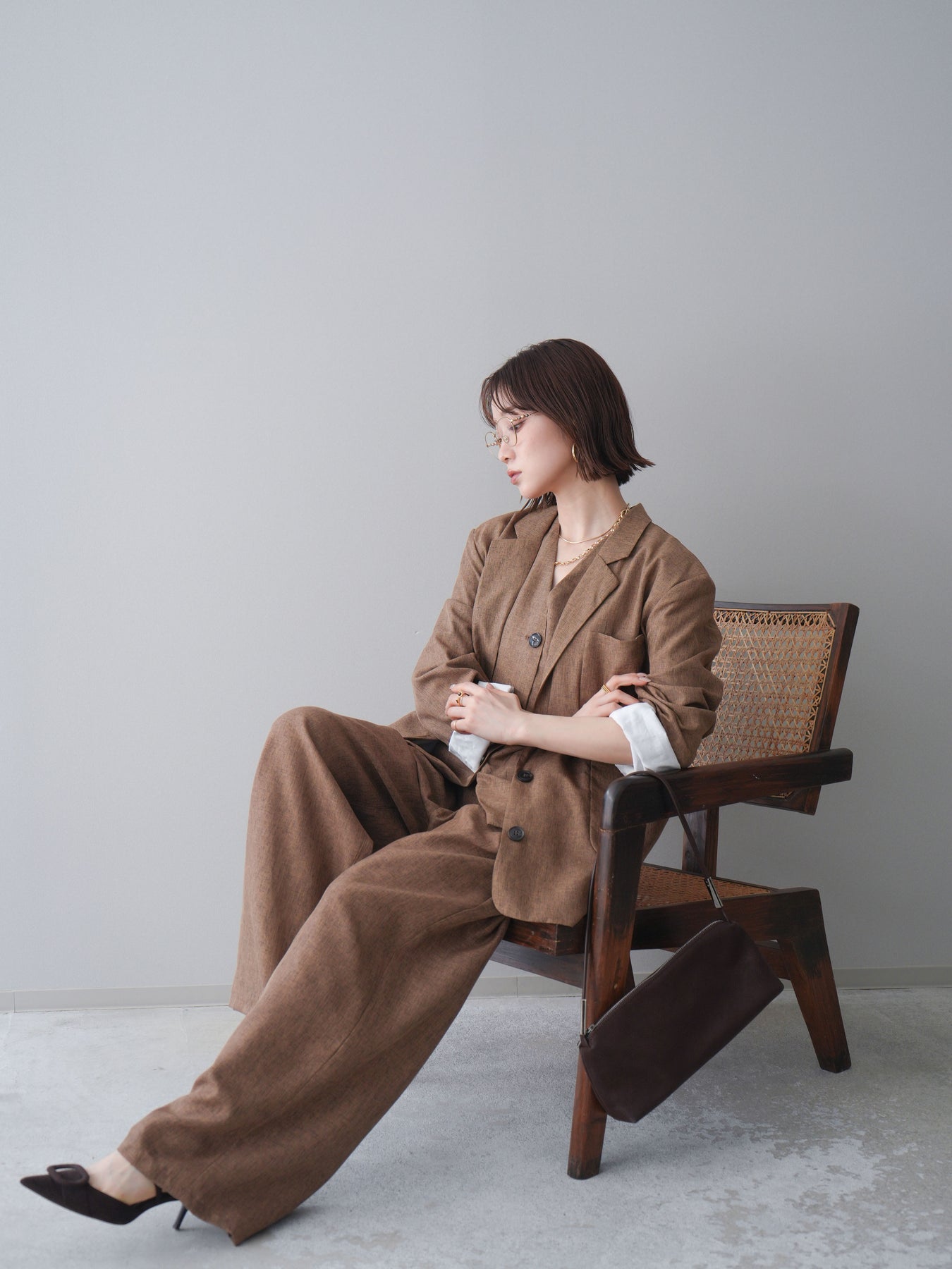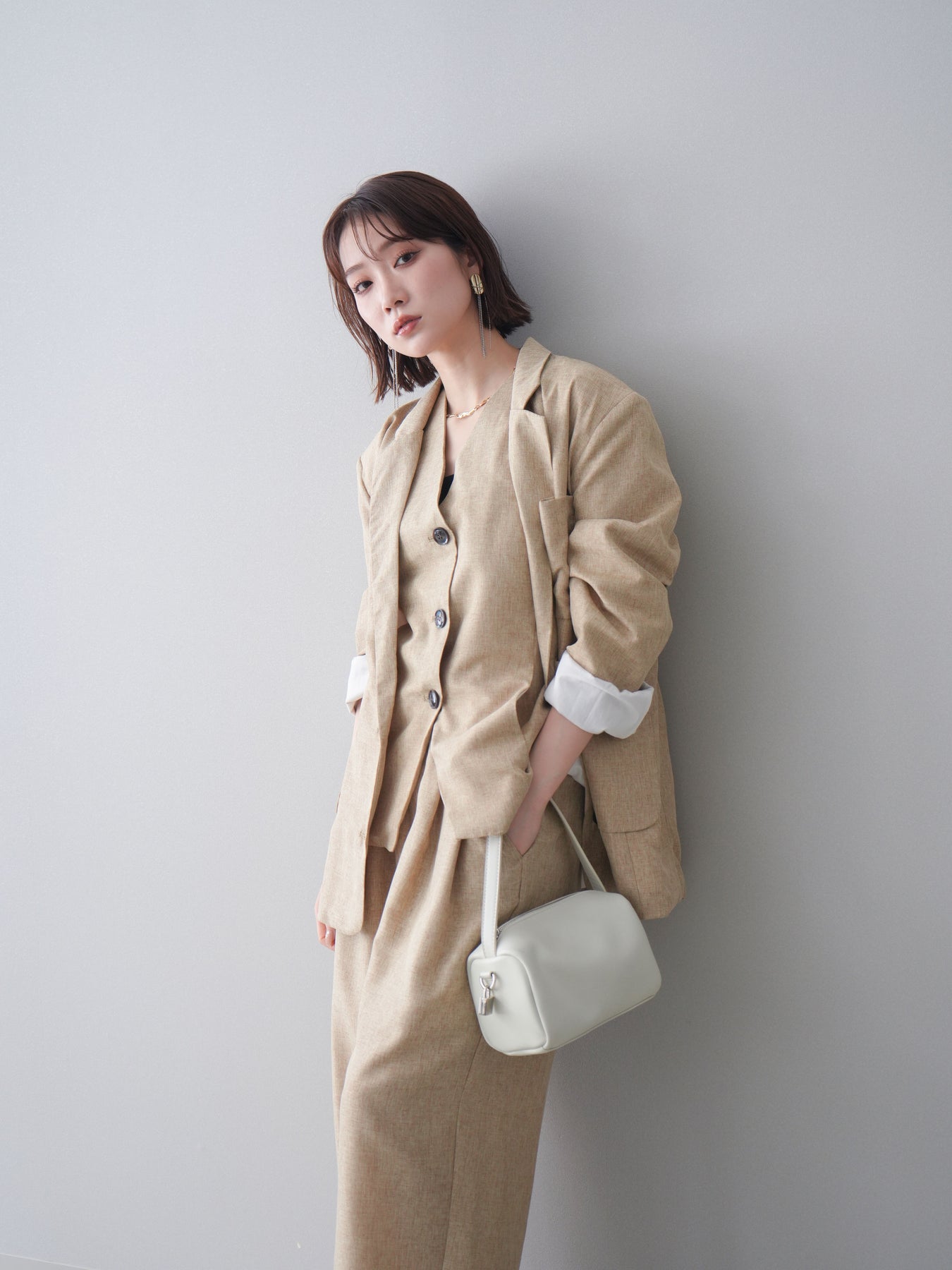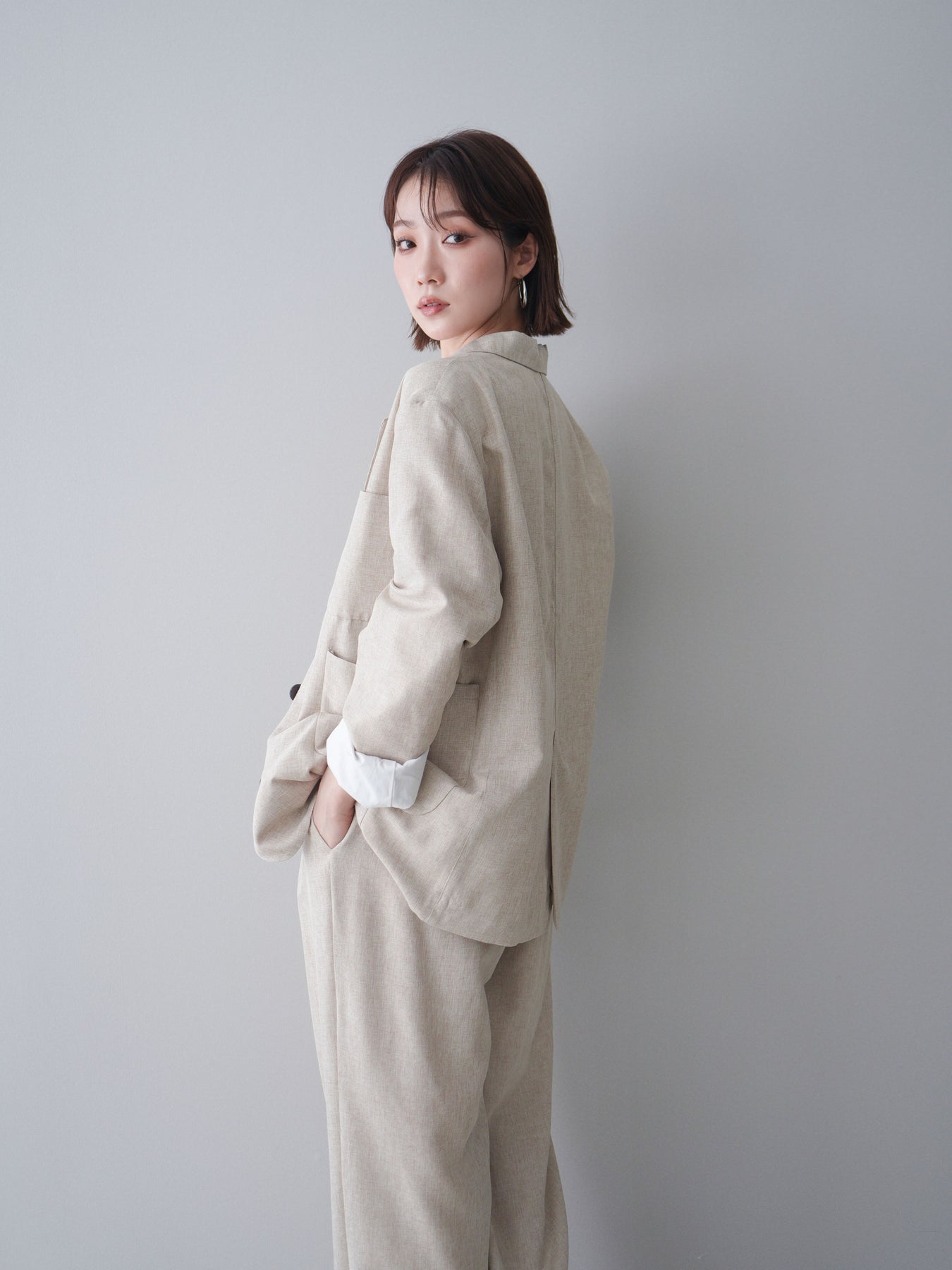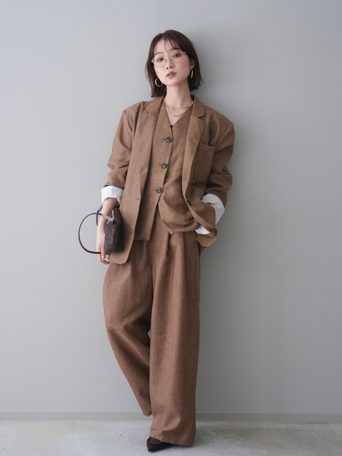 [SET]リネンライクテーラードジャケット+リネンライクバックオープンジレ+リネンライクタックワイドパンツ(3set)