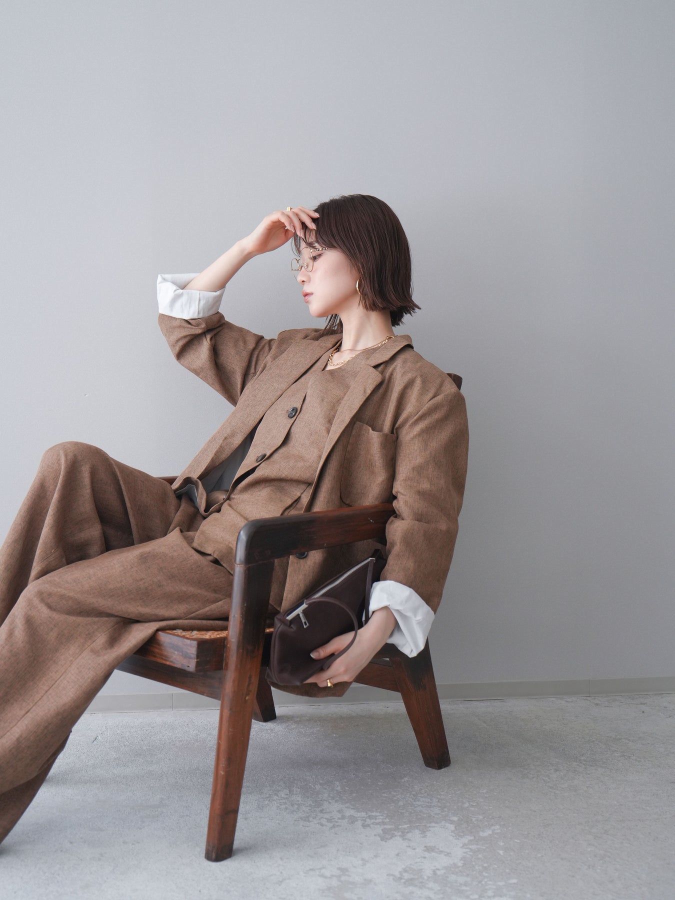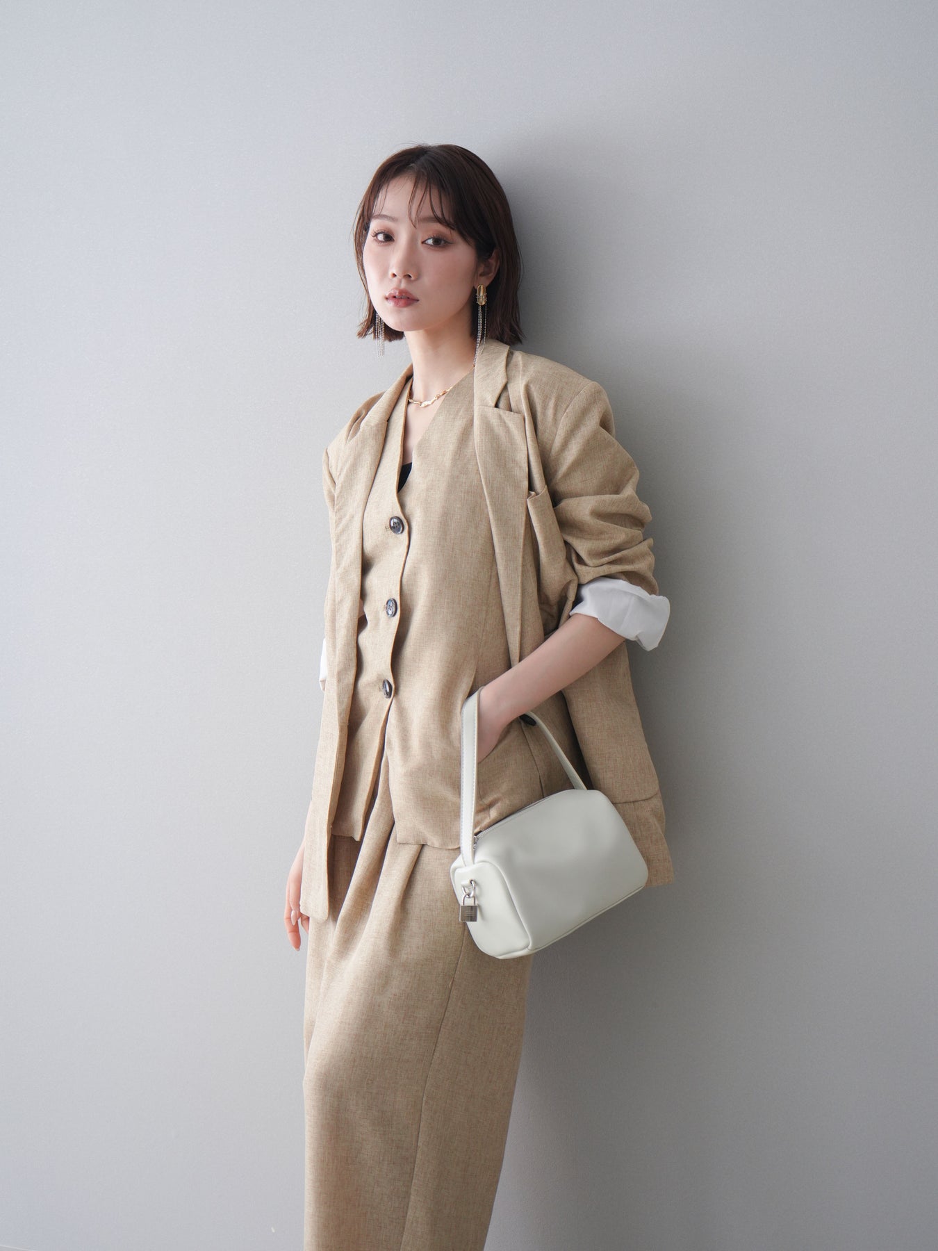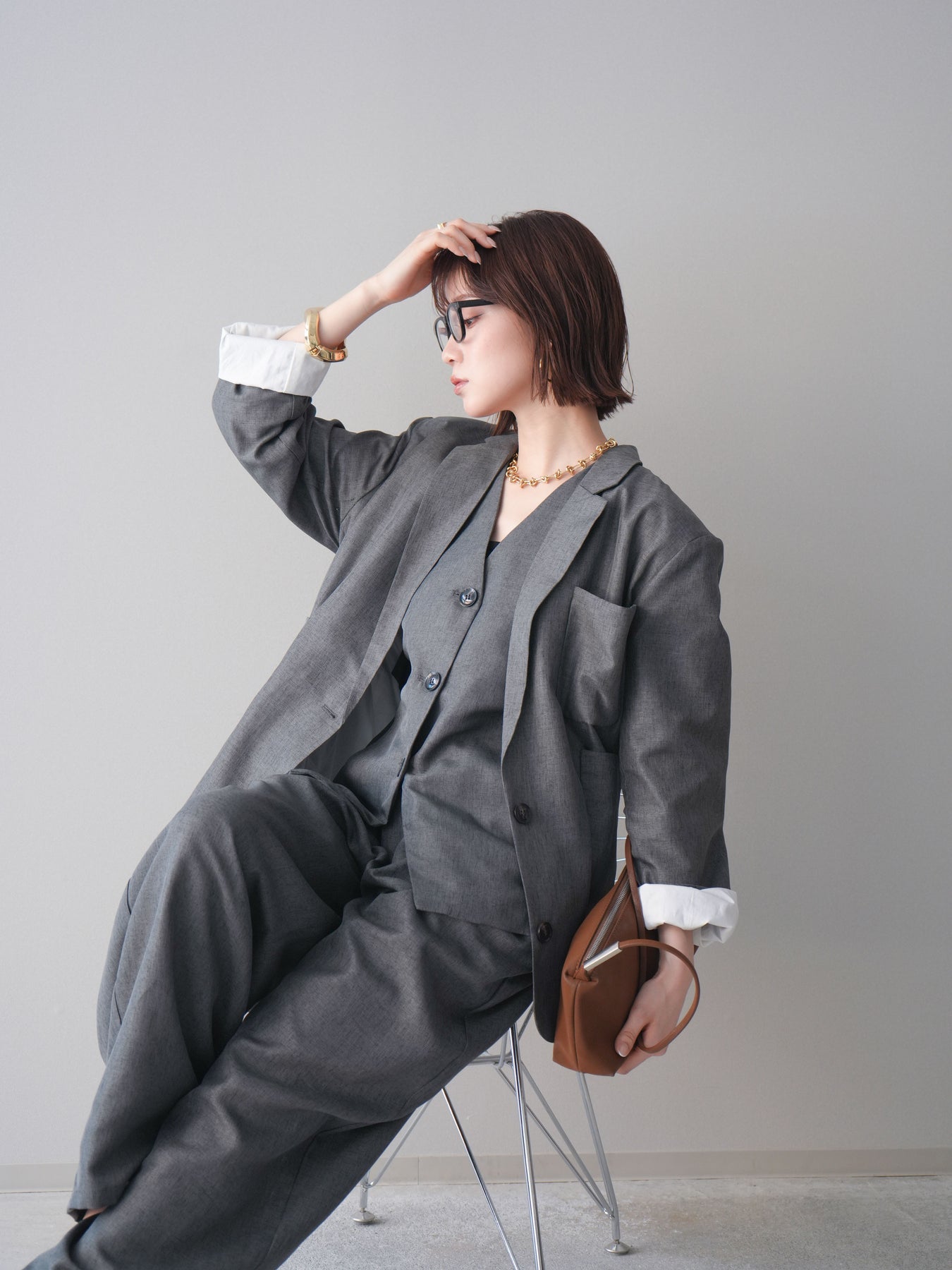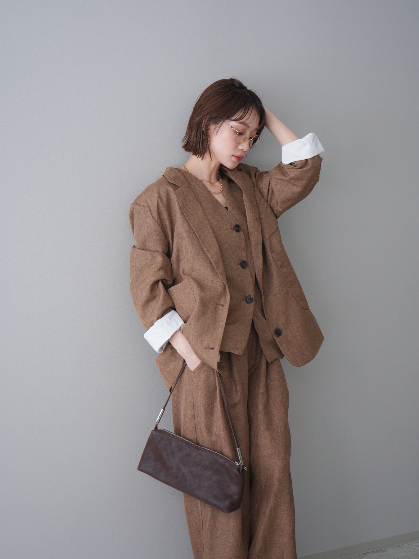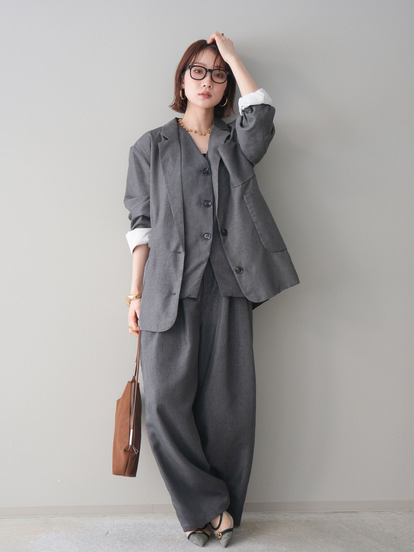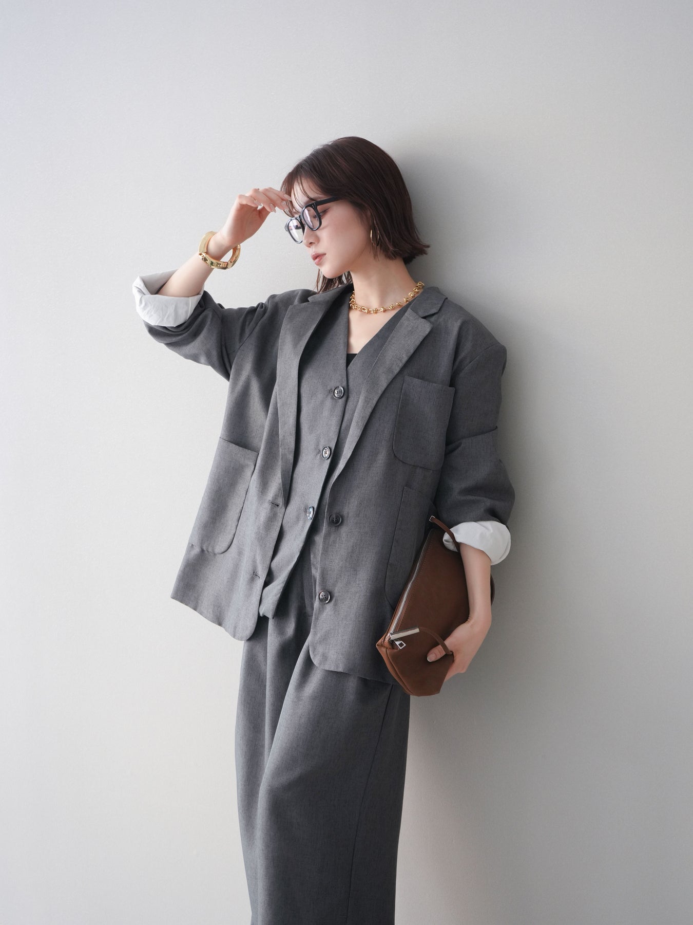 [SET]リネンライクテーラードジャケット+リネンライクバックオープンジレ+リネンライクタックワイドパンツ(3set)