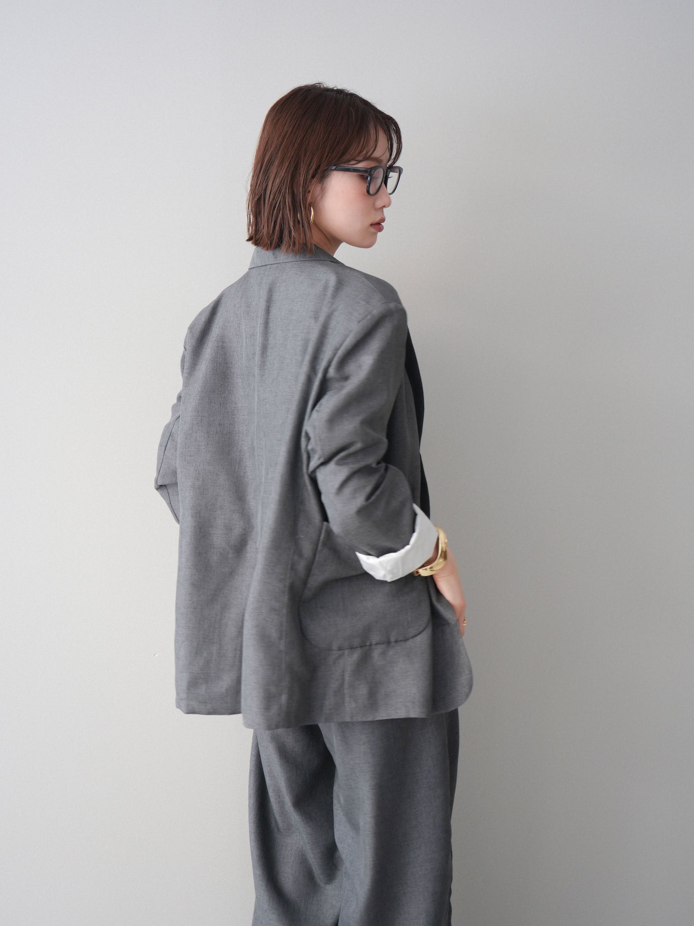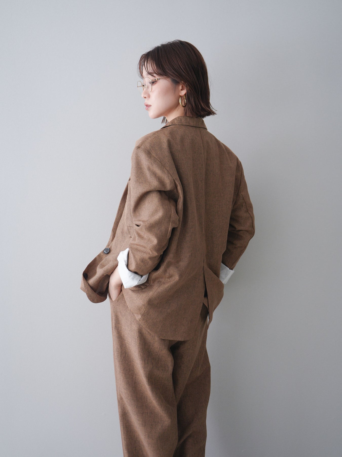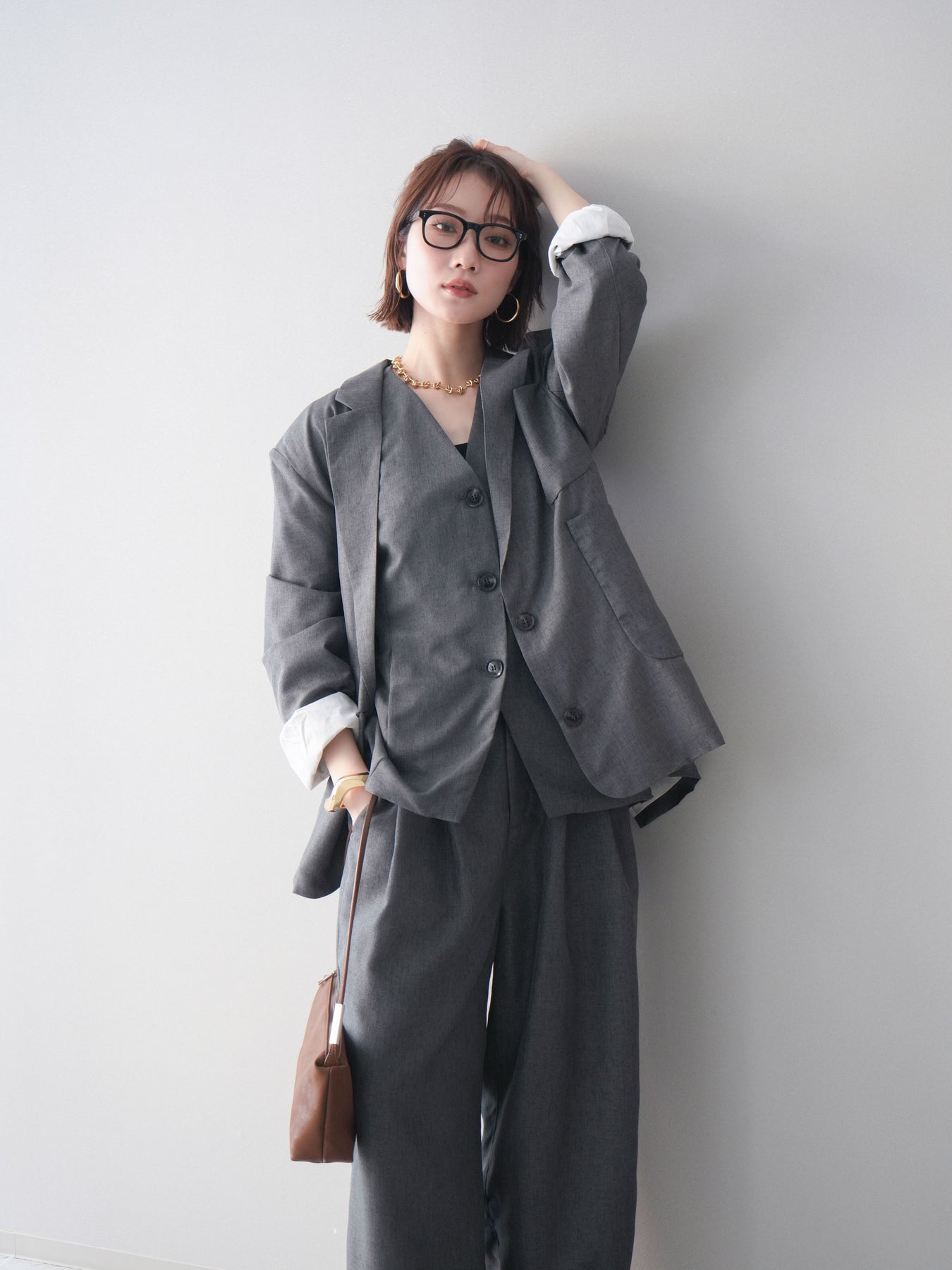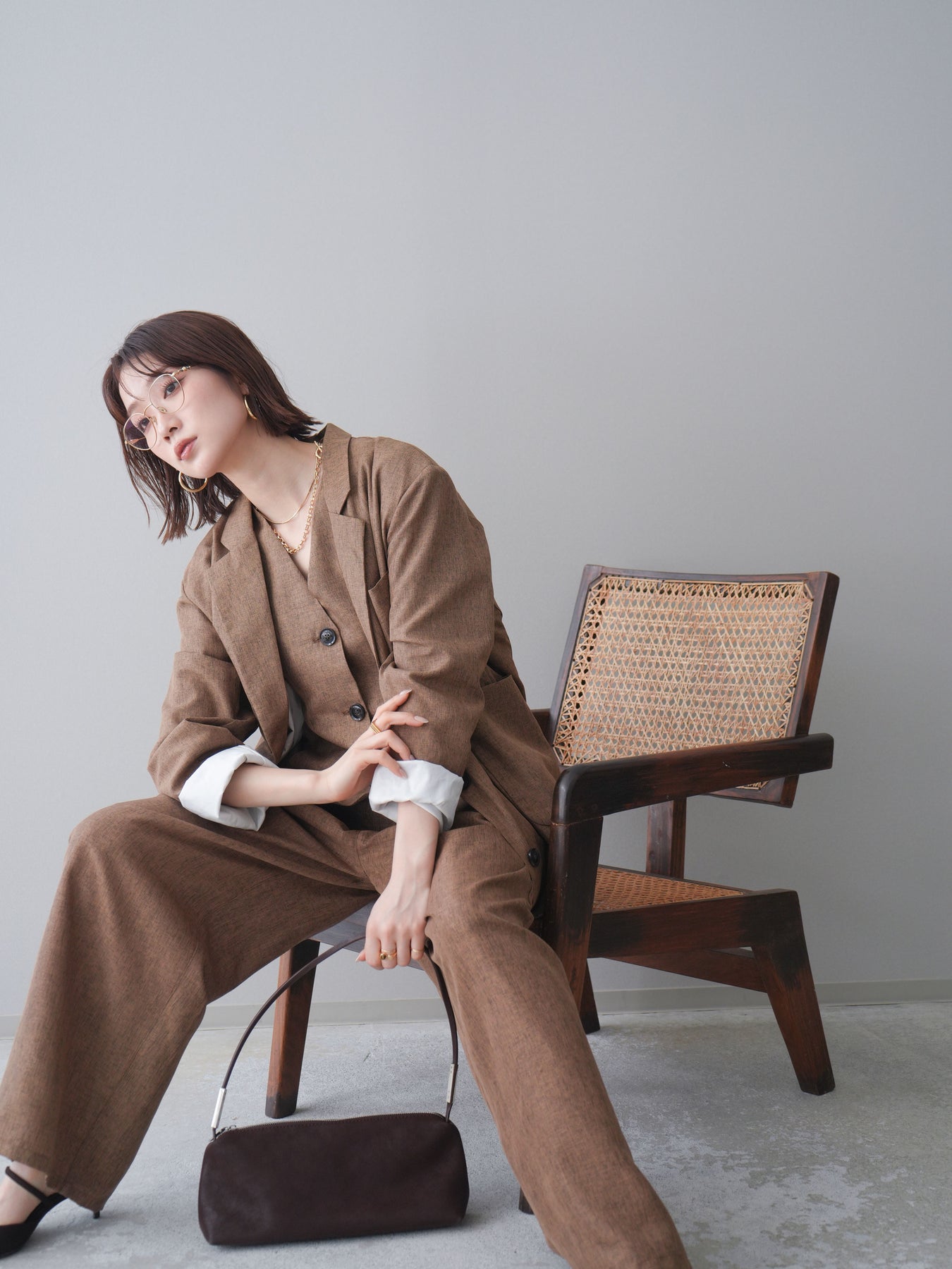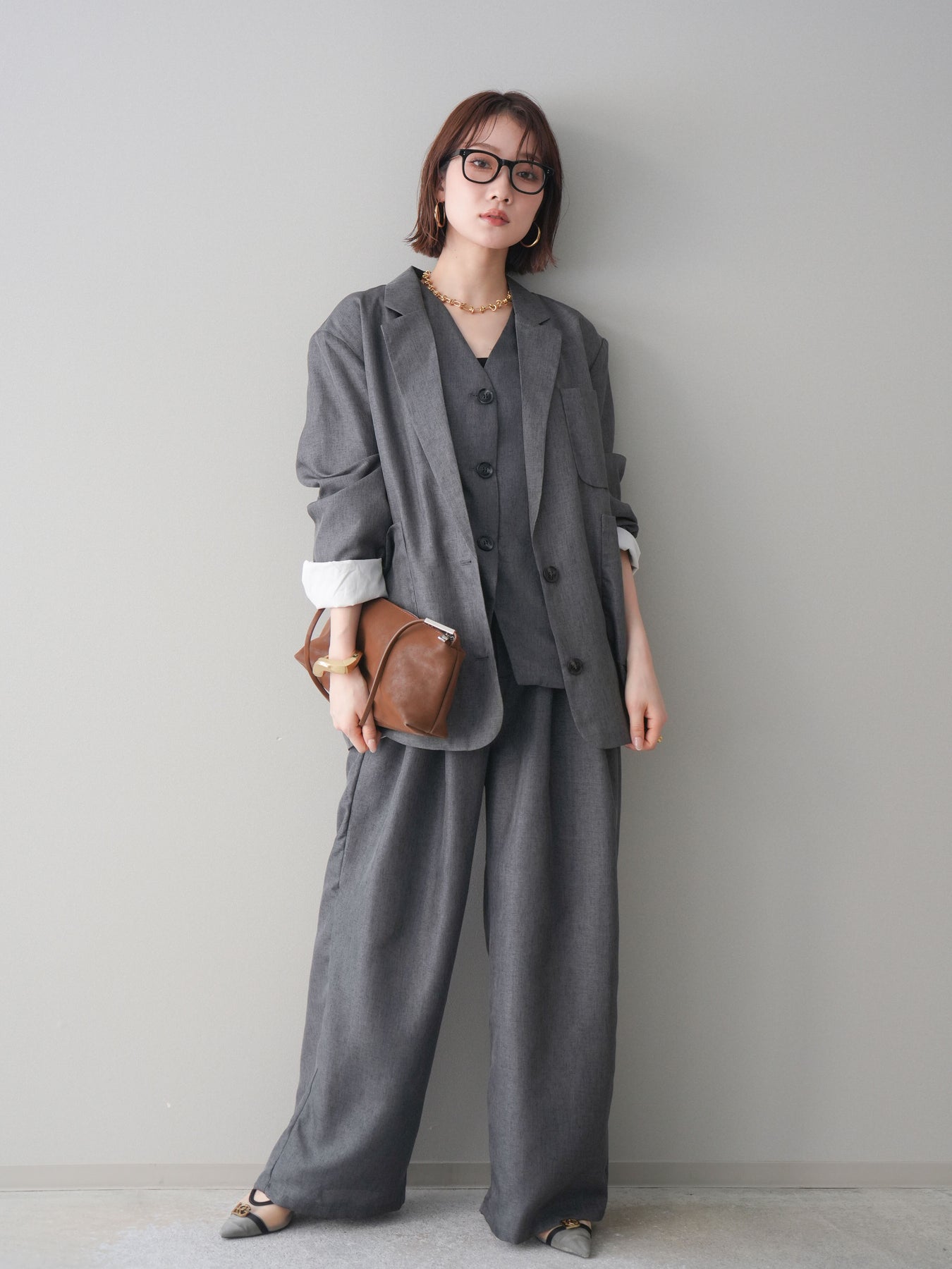 [SET]リネンライクテーラードジャケット+リネンライクバックオープンジレ+リネンライクタックワイドパンツ(3set)