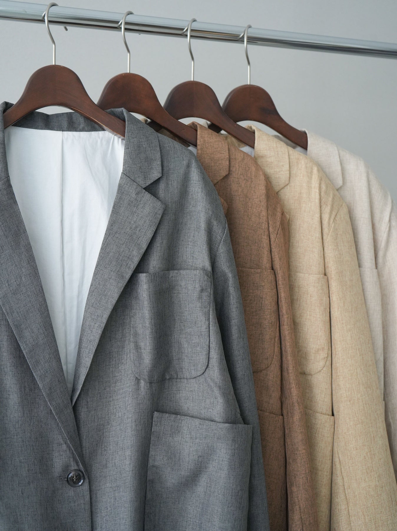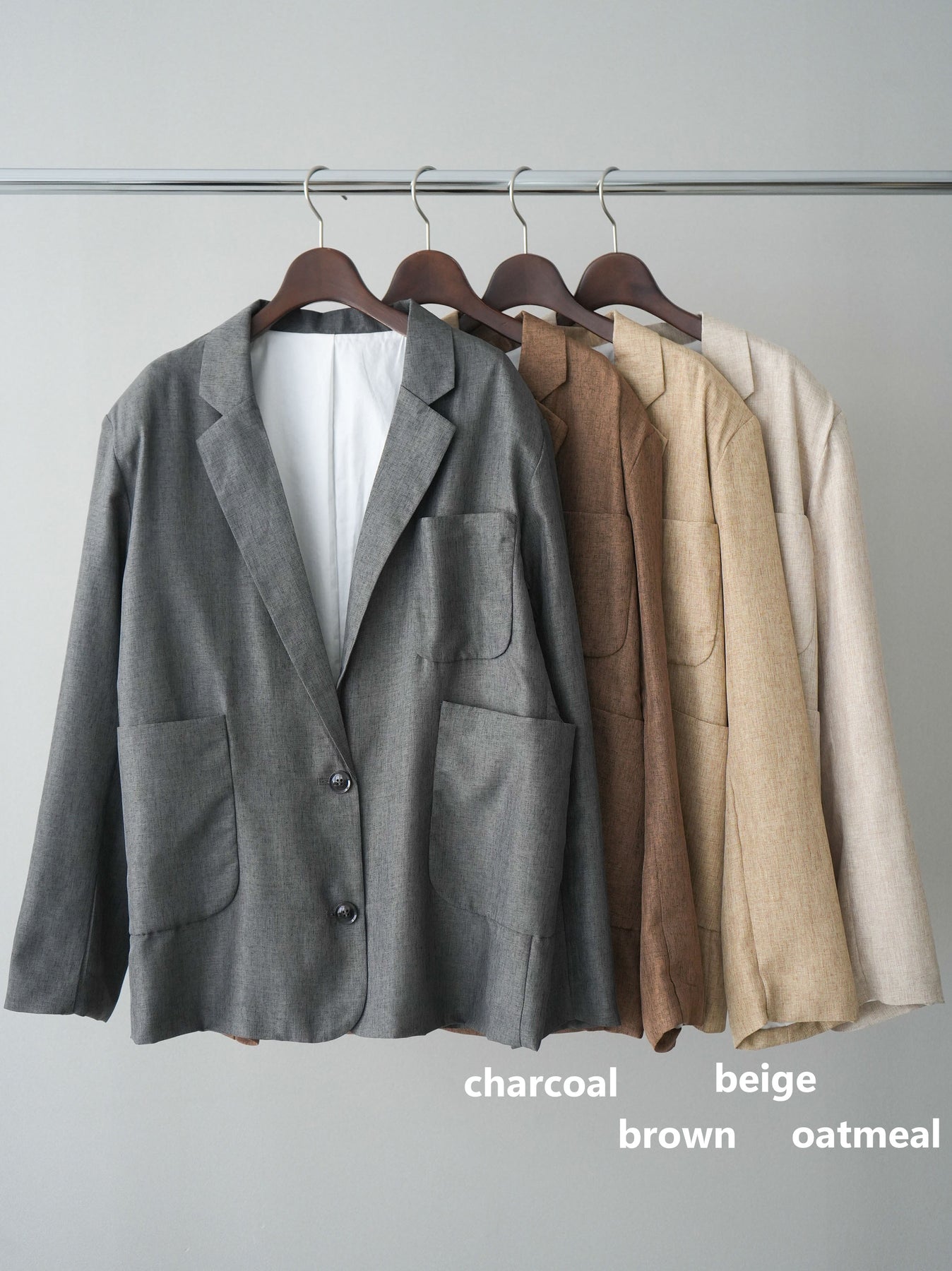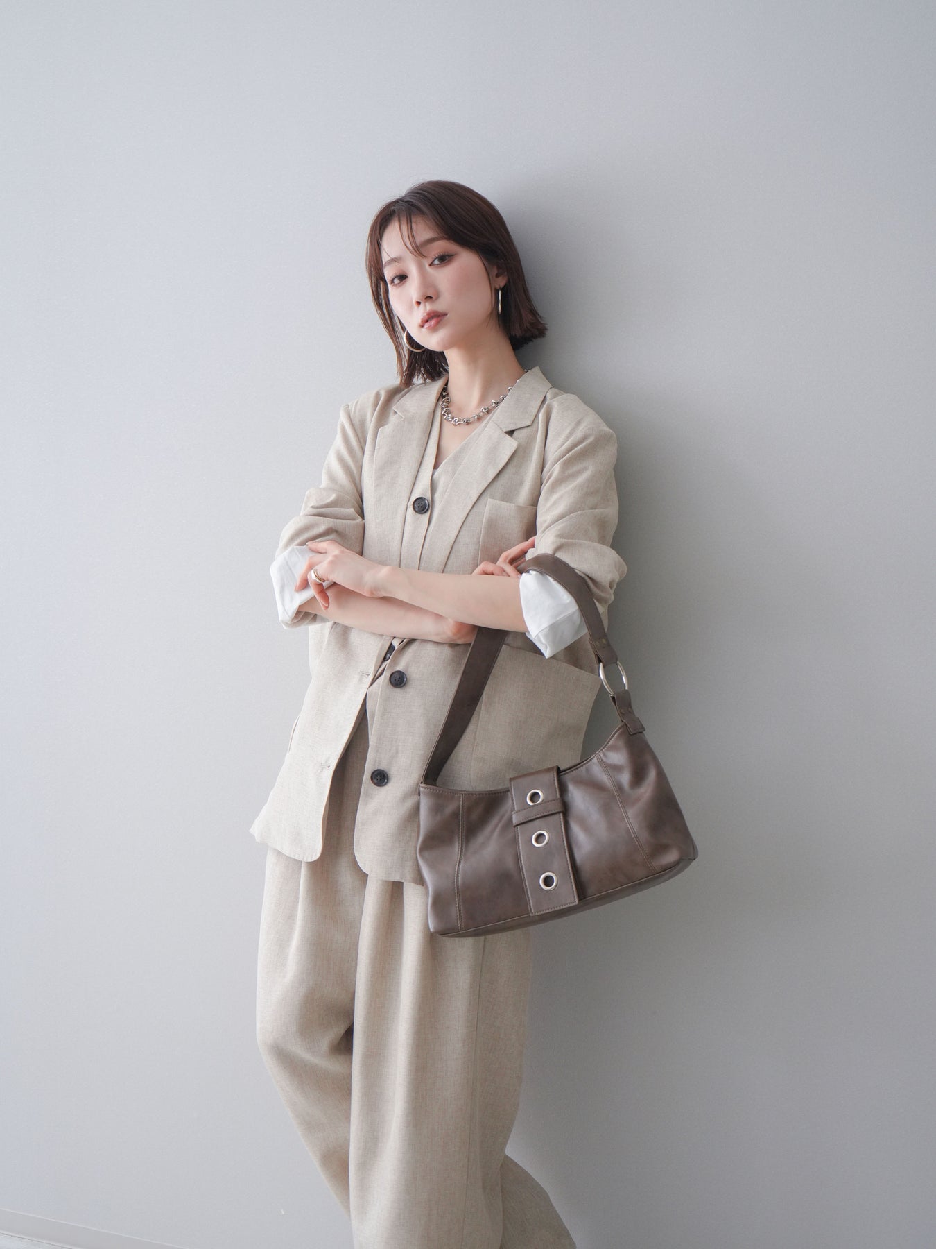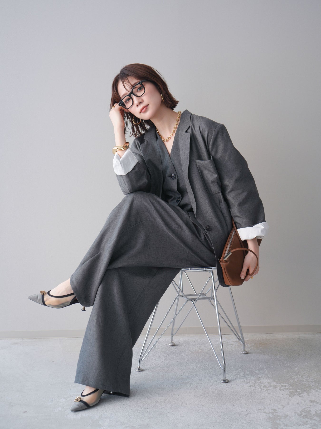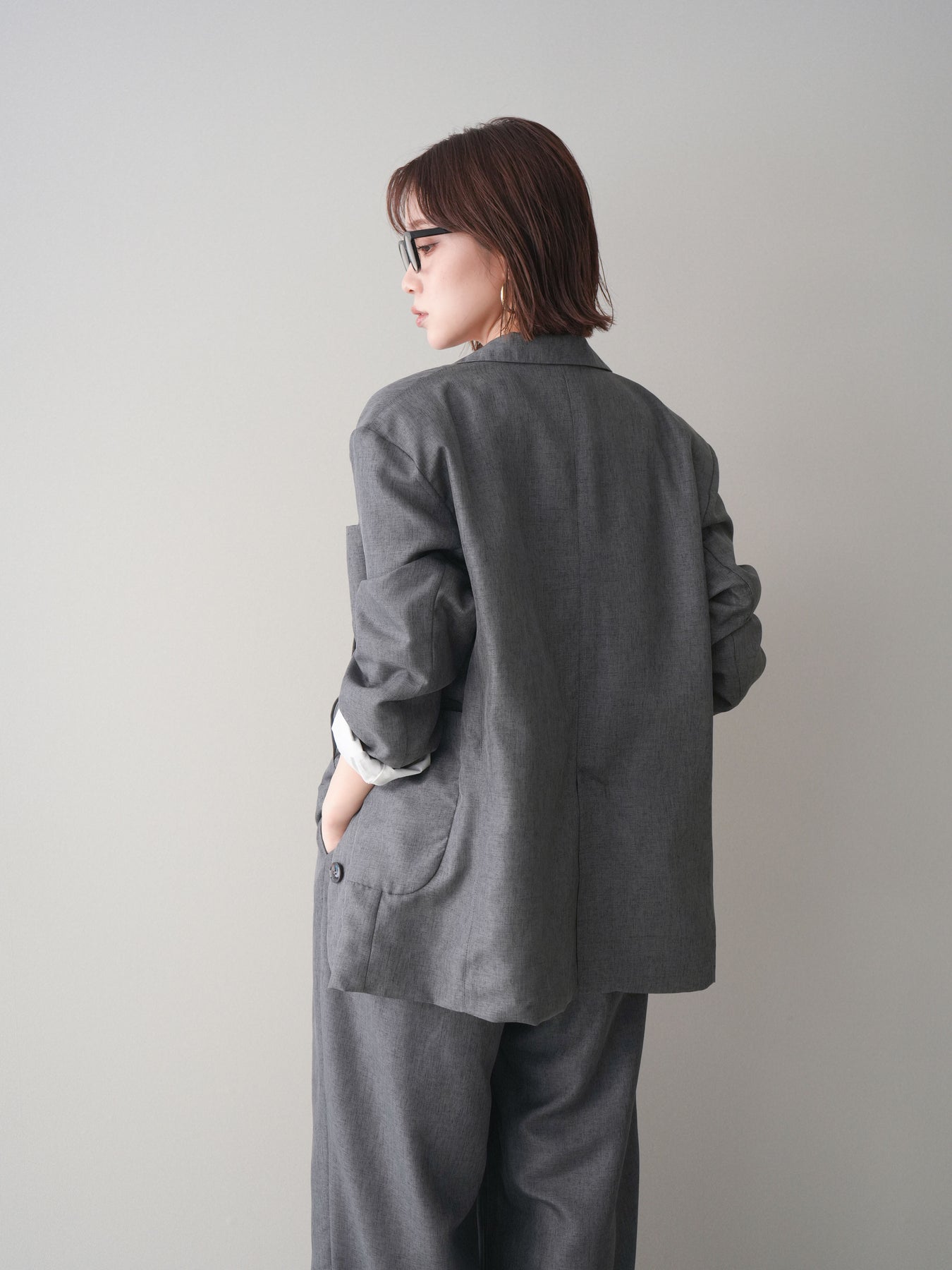 [SET]リネンライクテーラードジャケット+リネンライクバックオープンジレ+リネンライクタックワイドパンツ(3set)