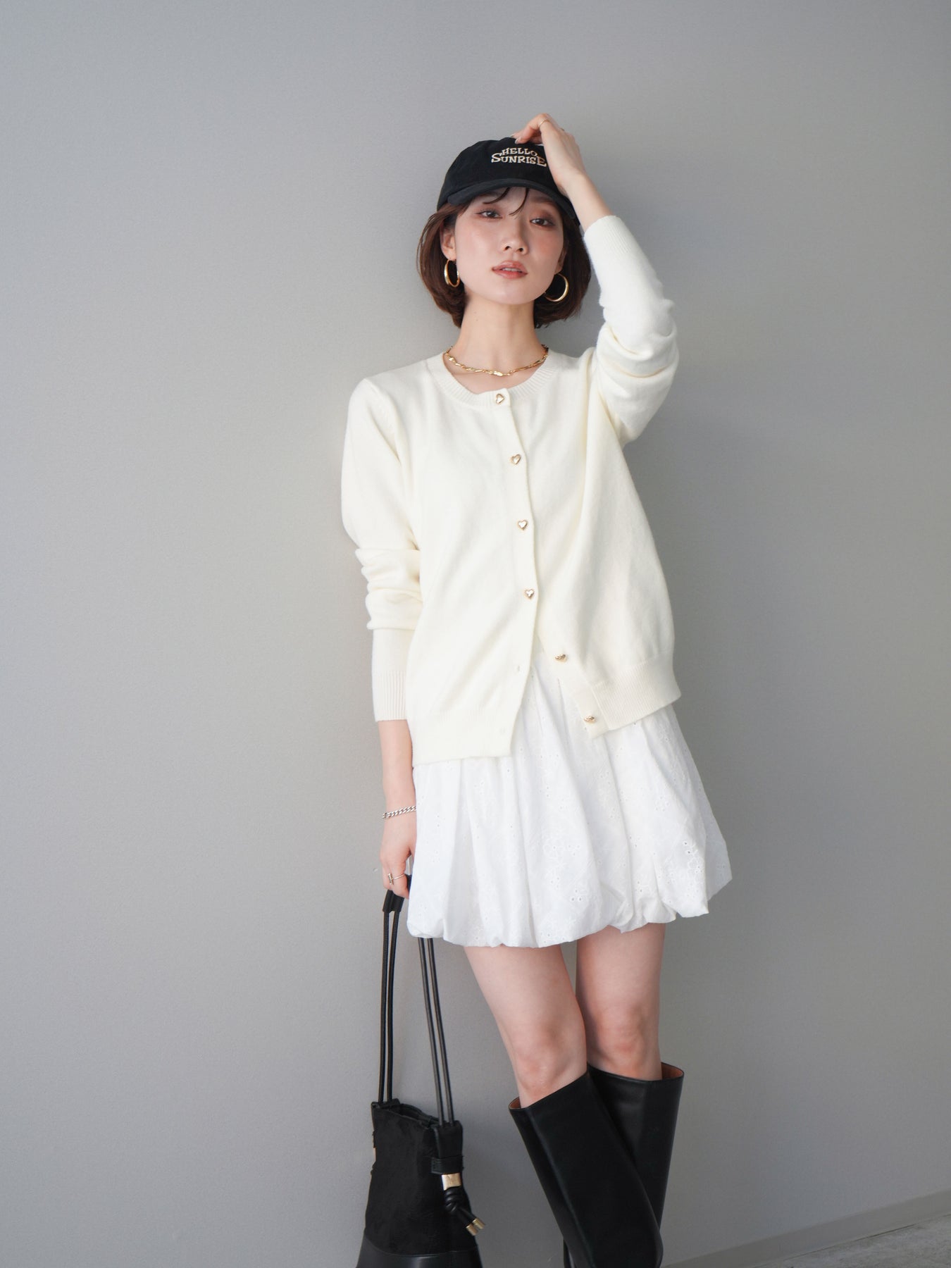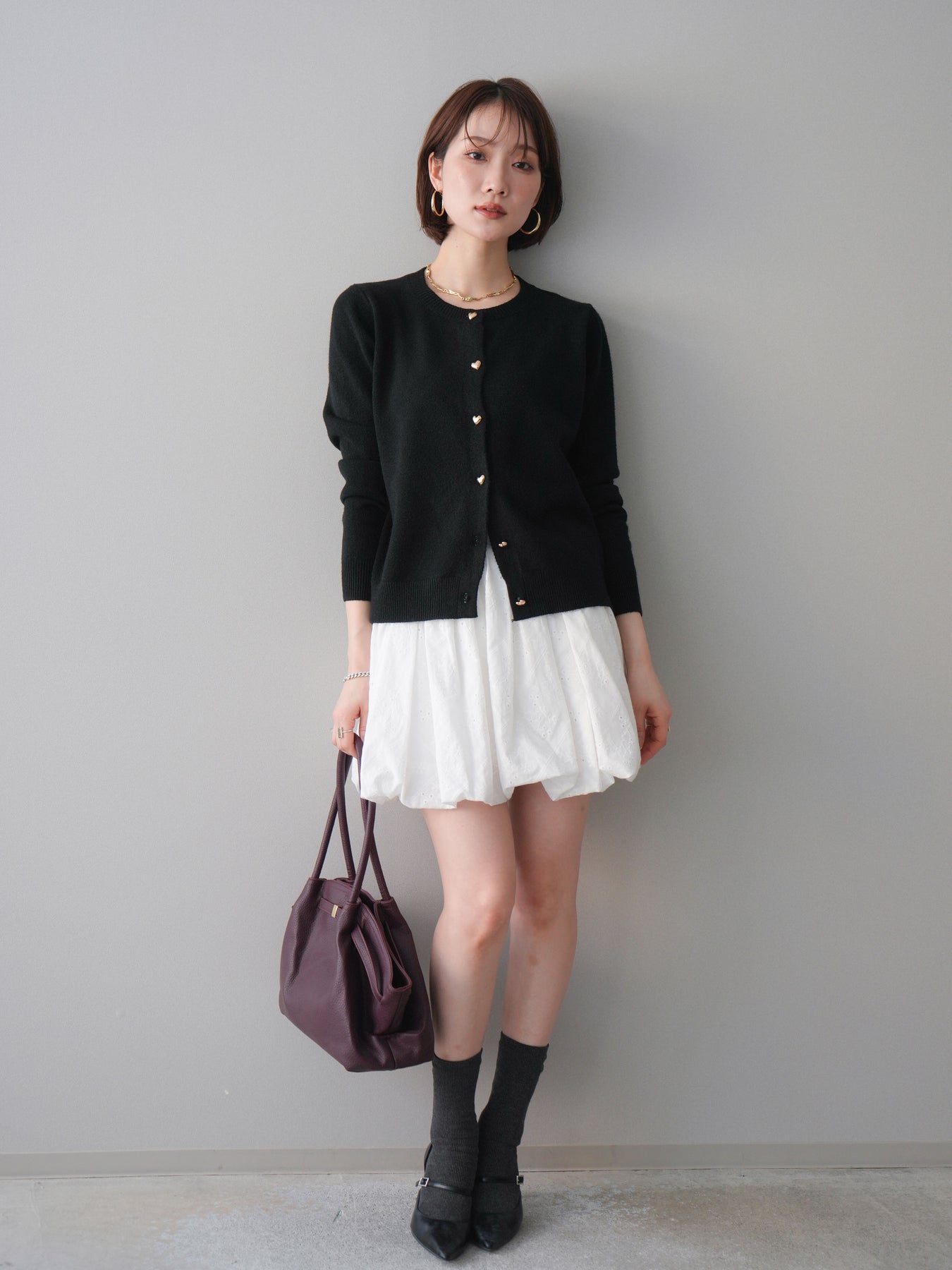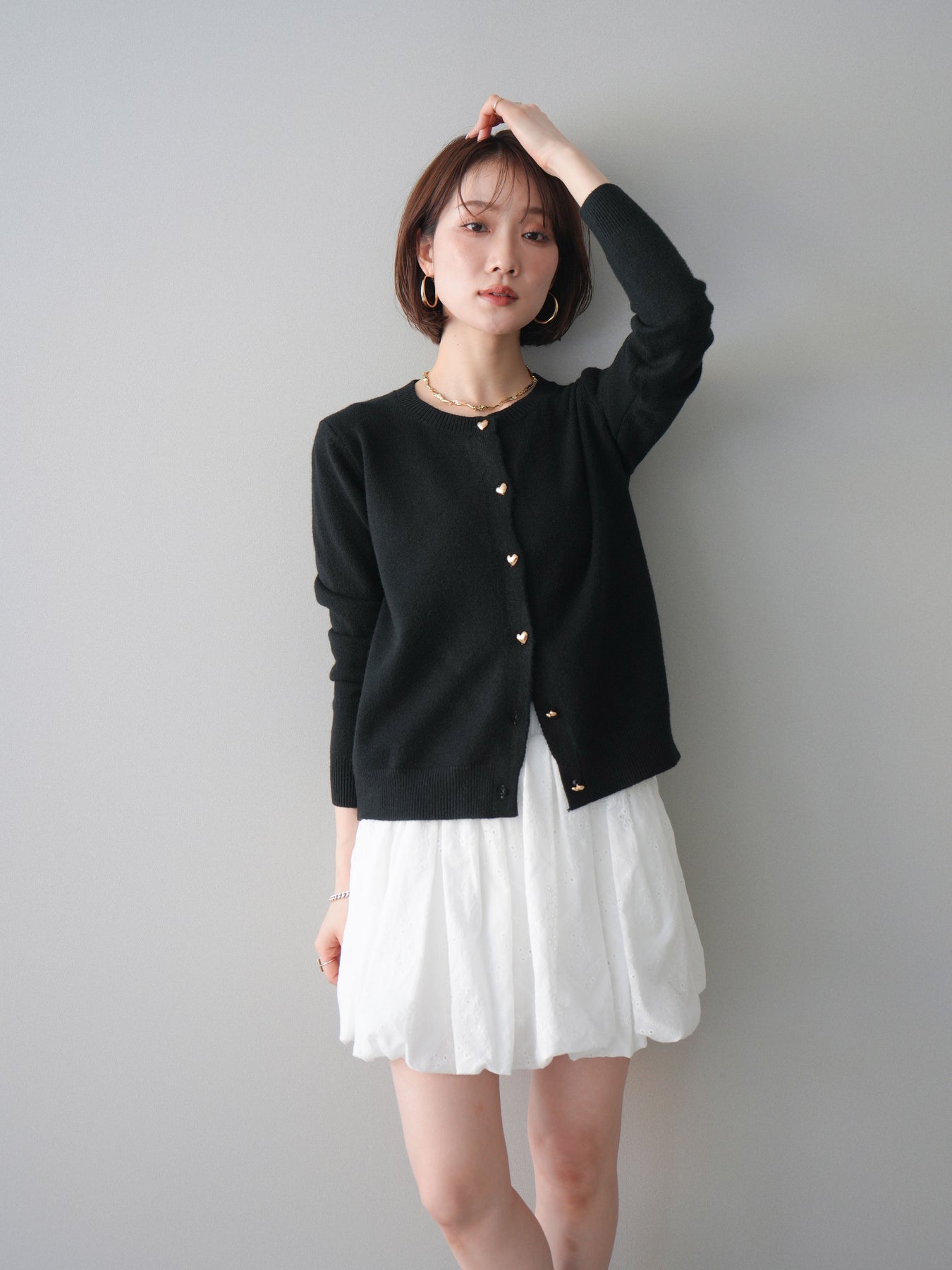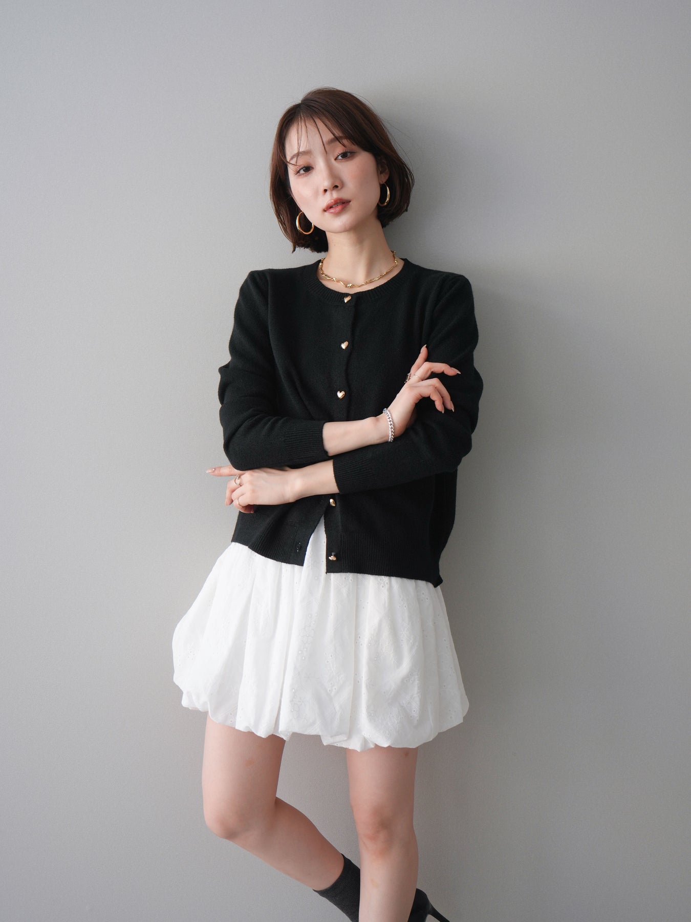 [SET]ハートボタンニットカーディガン+コットンライクレースバルーンミニスカート(2set)