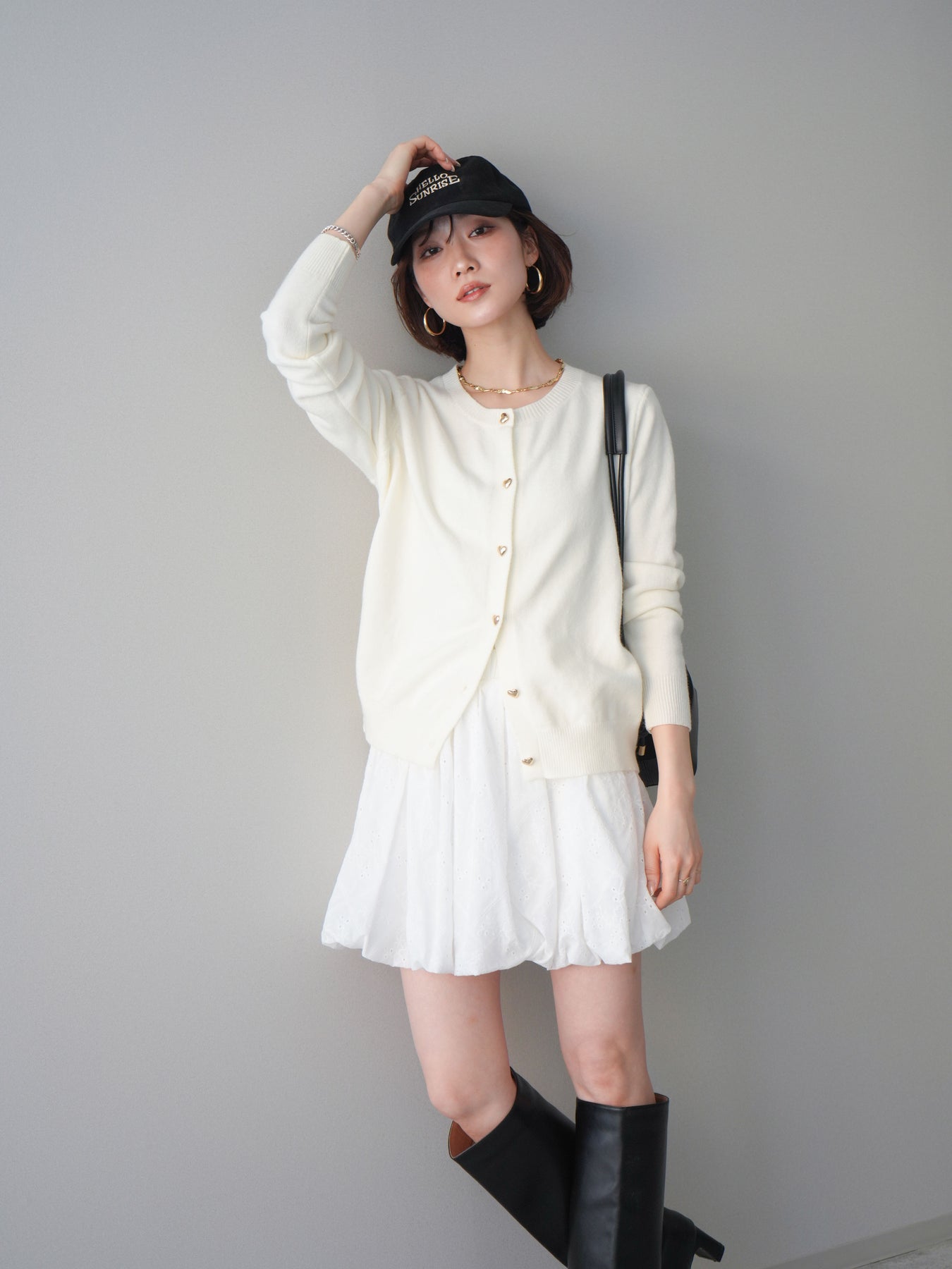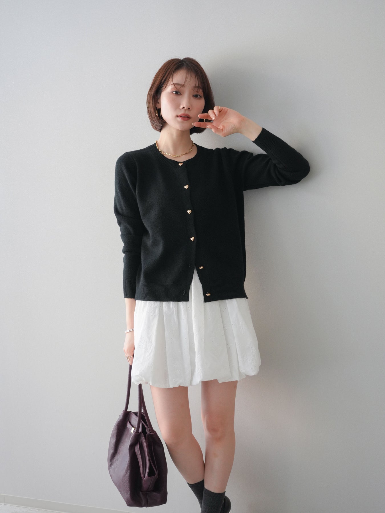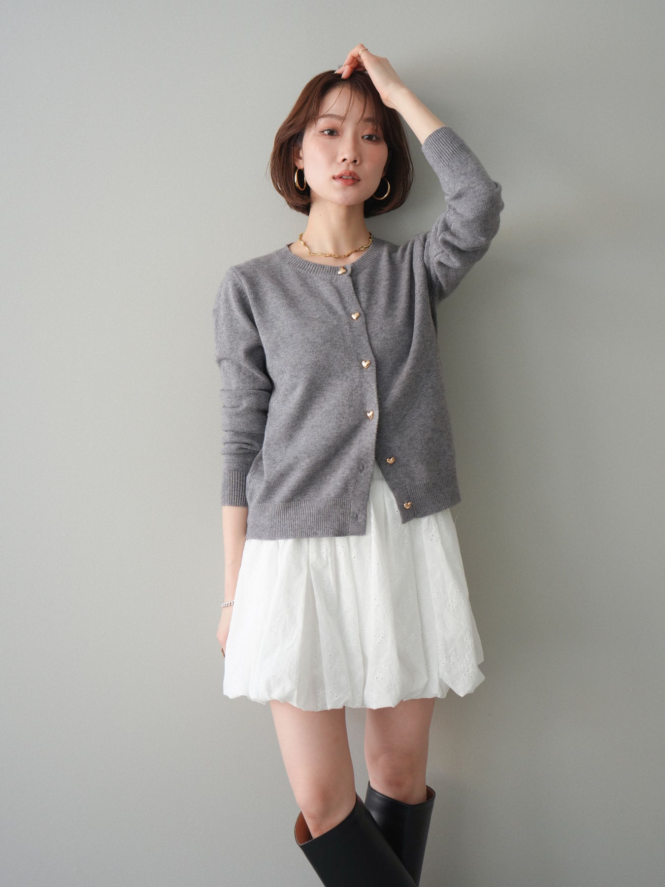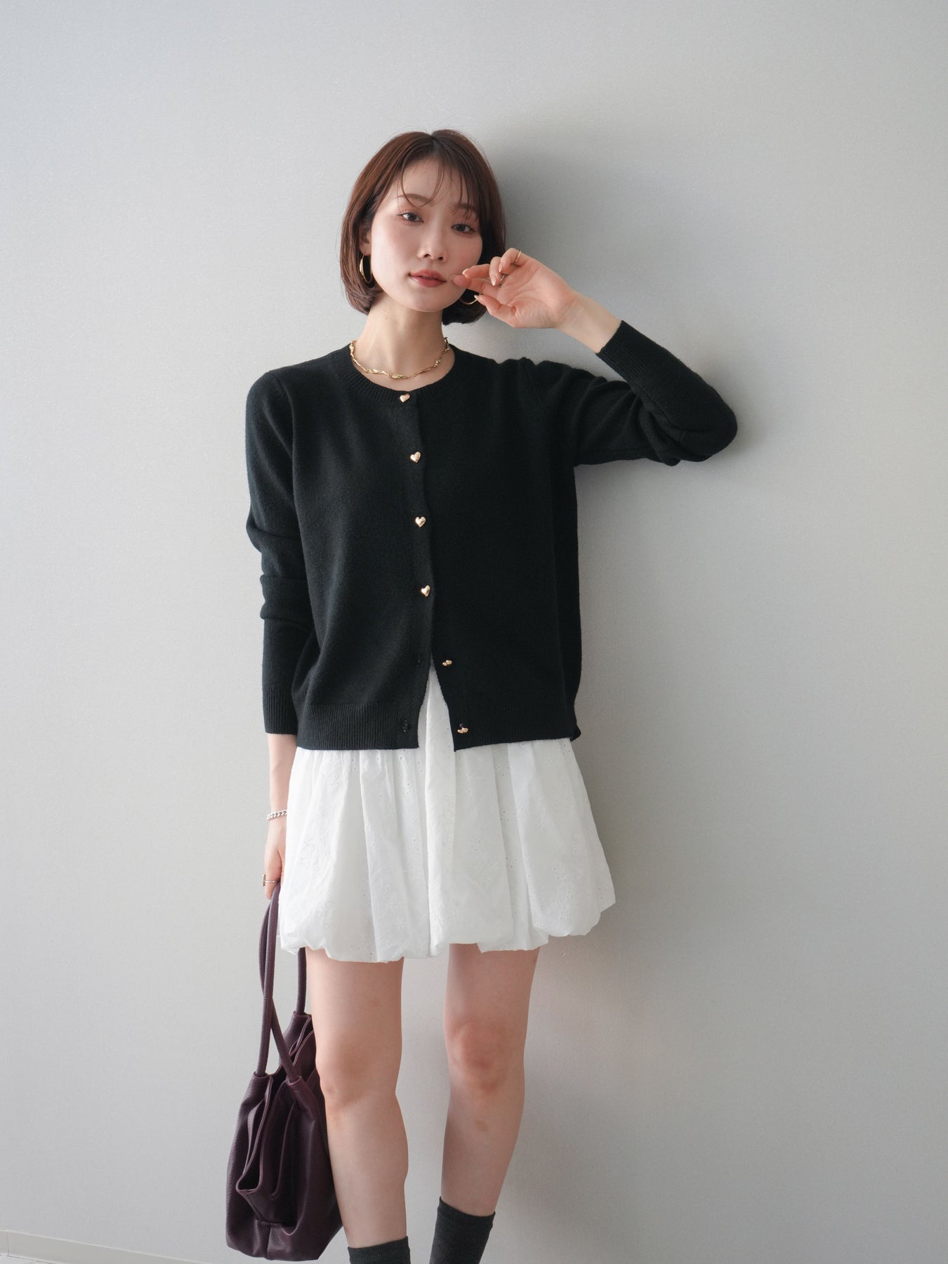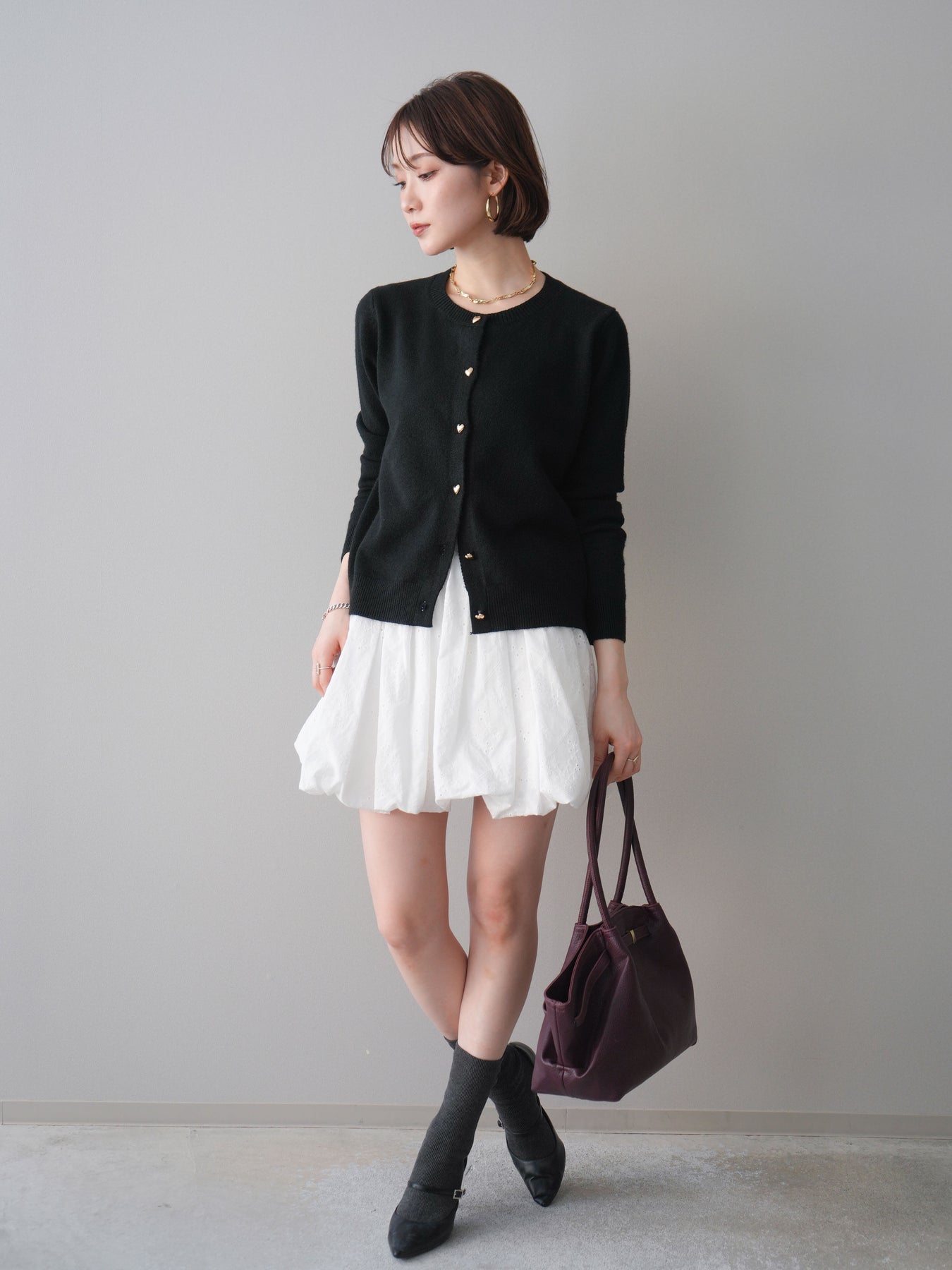 [SET]ハートボタンニットカーディガン+コットンライクレースバルーンミニスカート(2set)