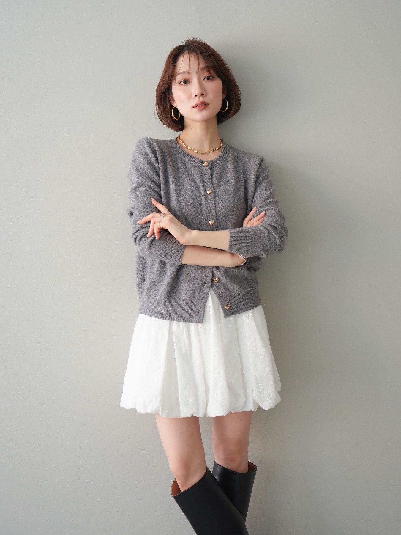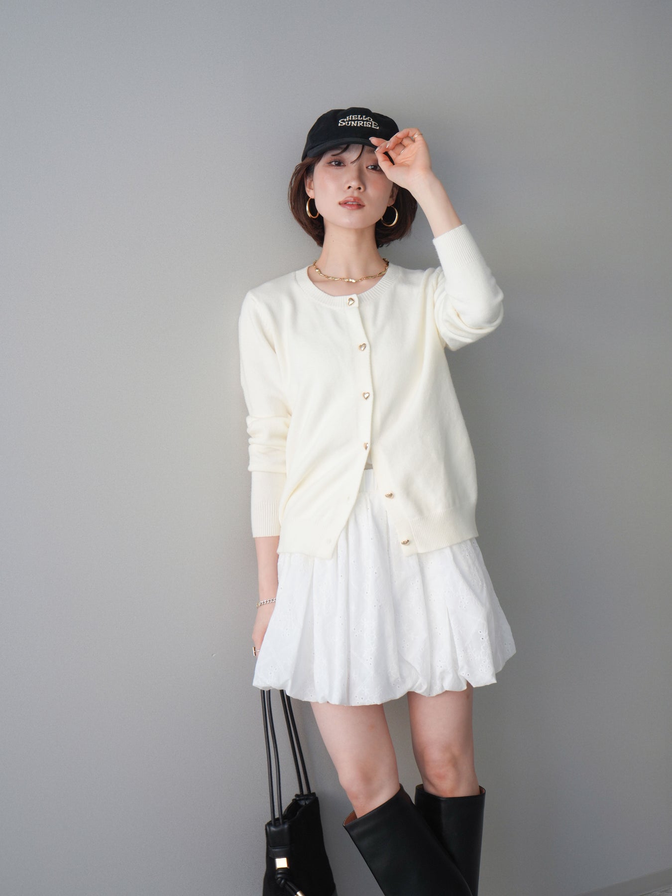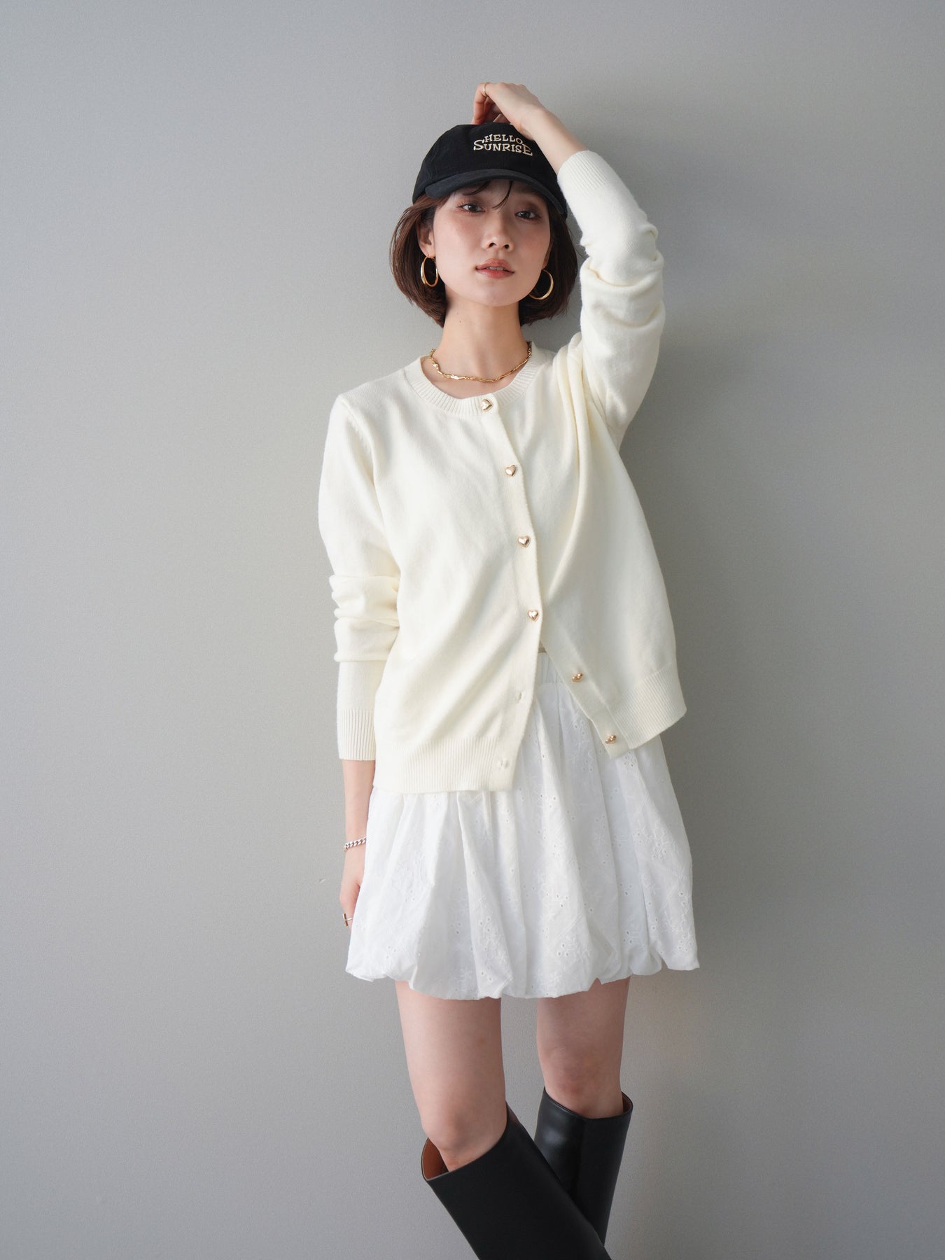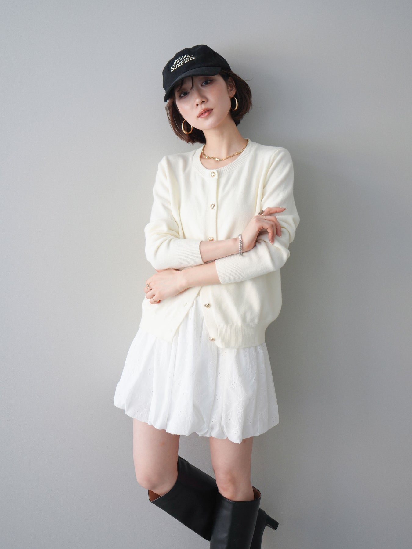 [SET]ハートボタンニットカーディガン+コットンライクレースバルーンミニスカート(2set)