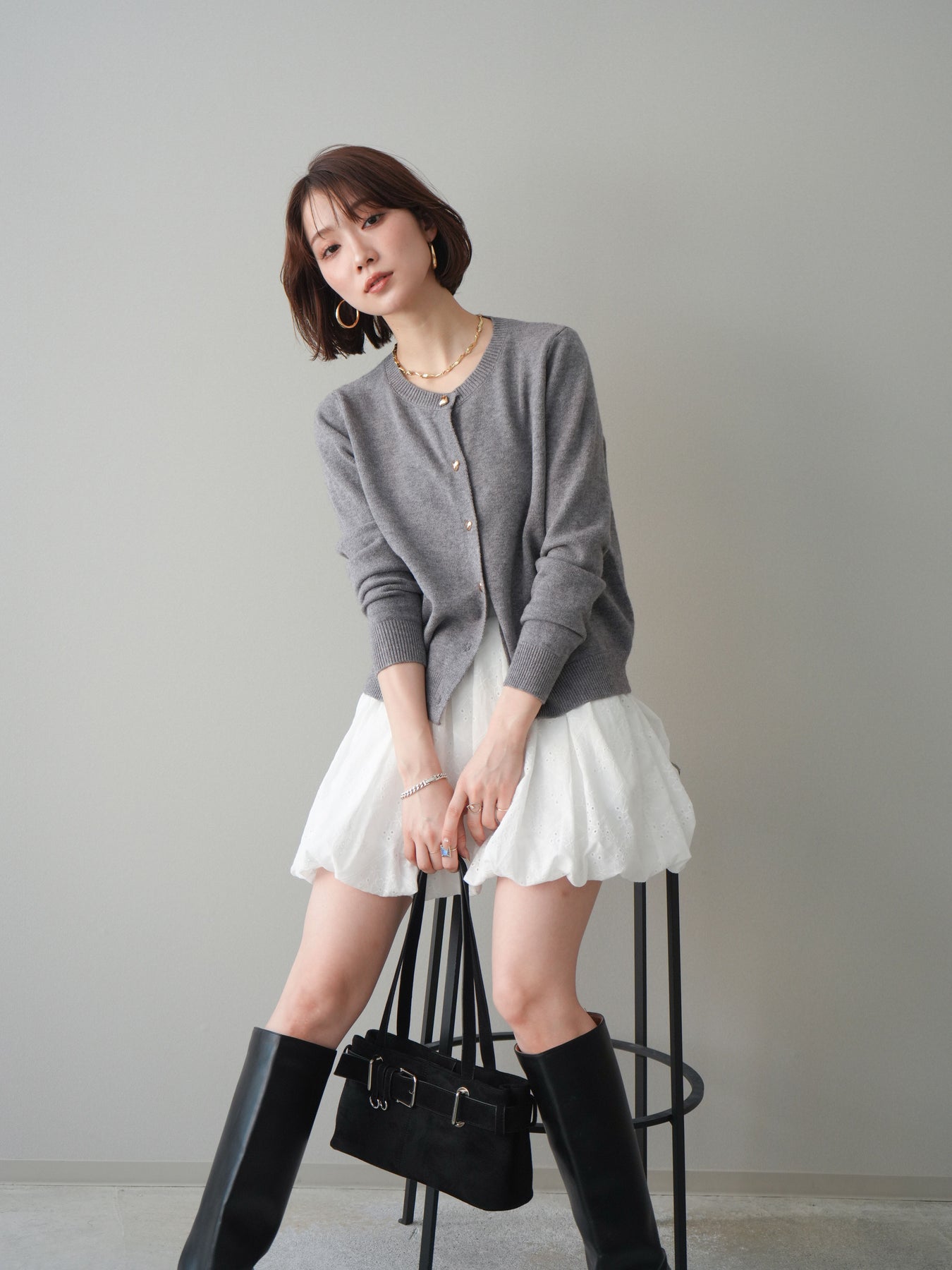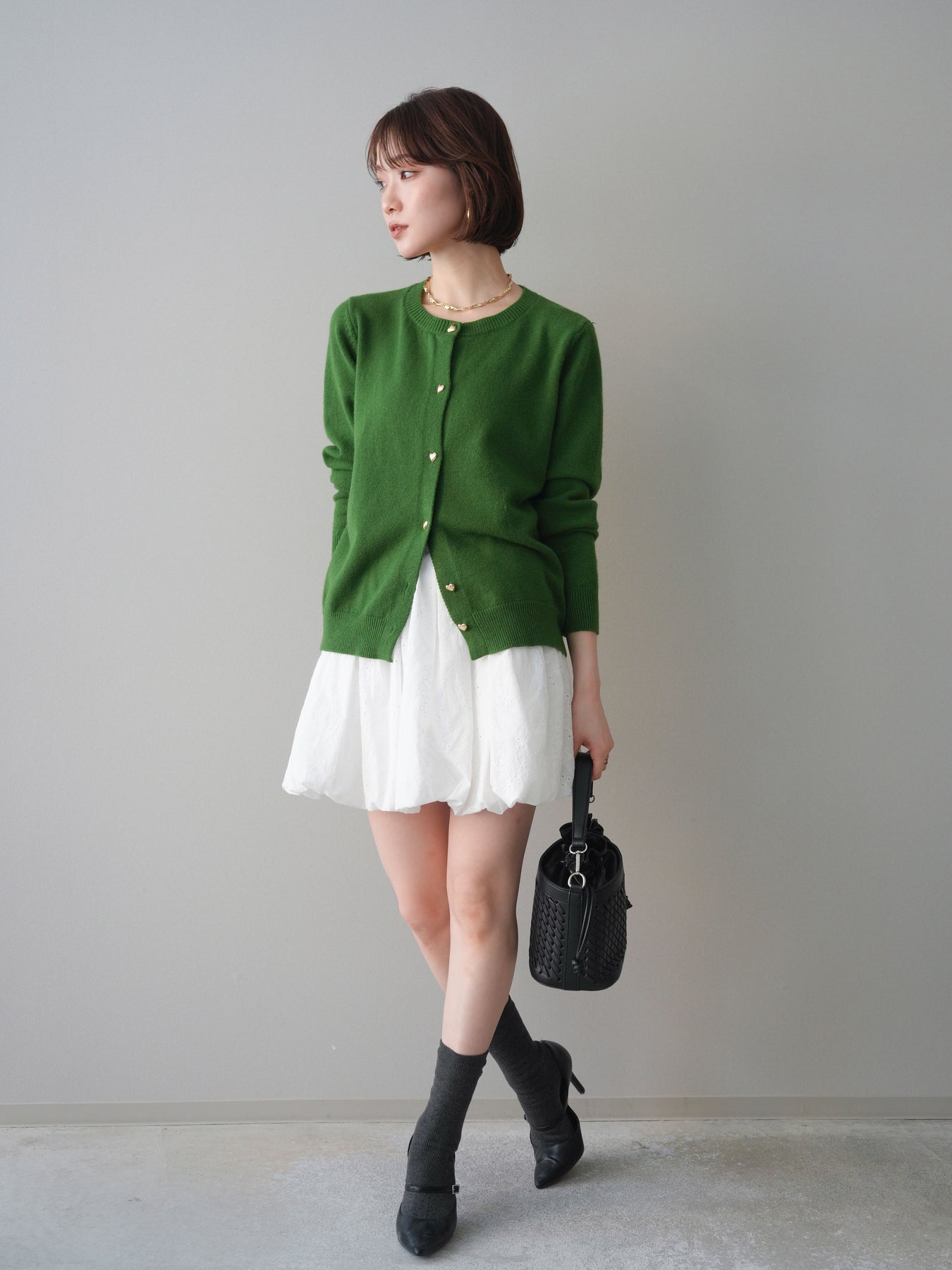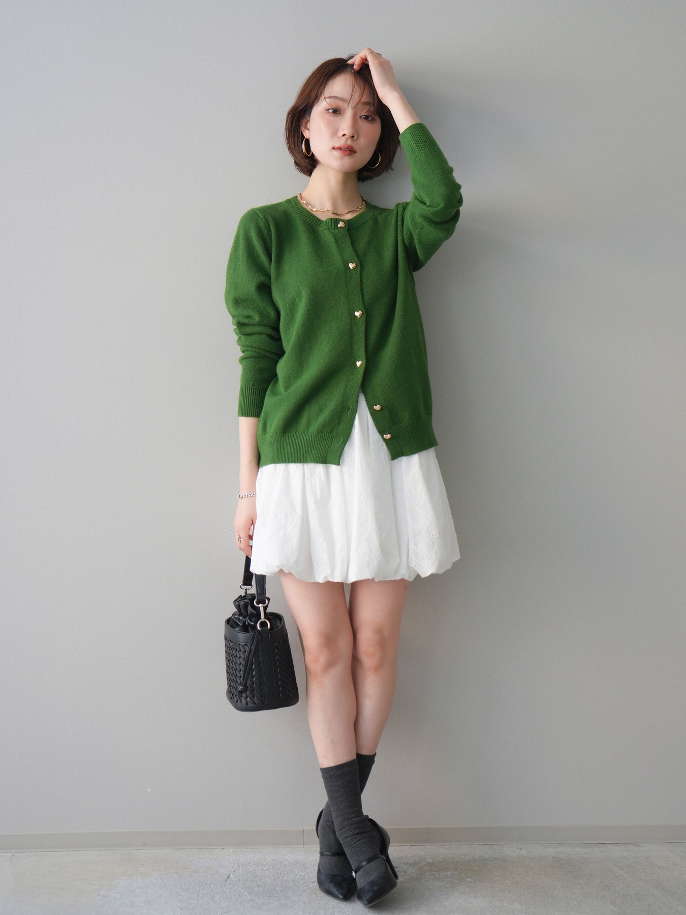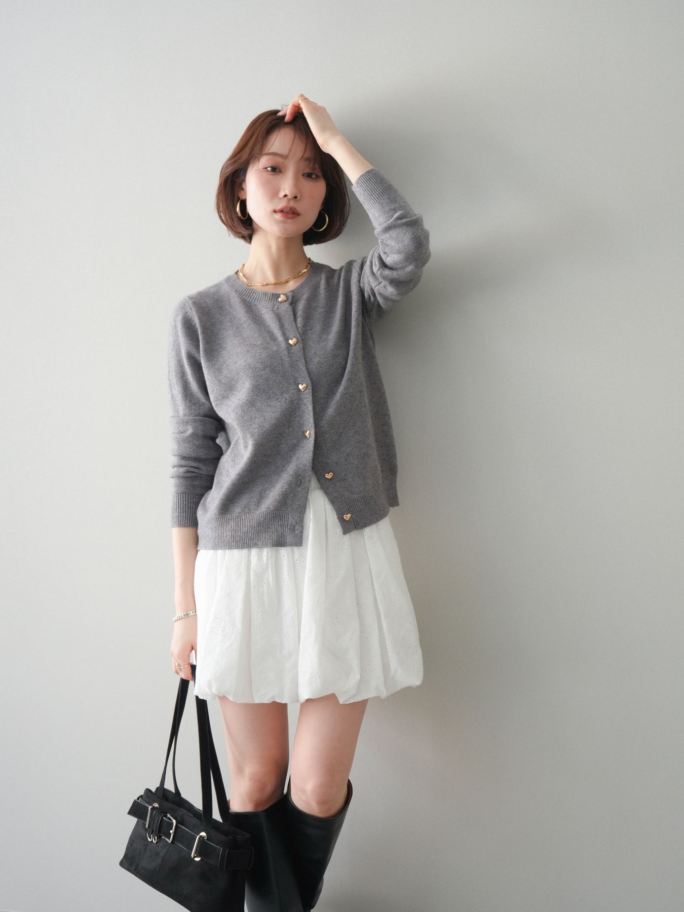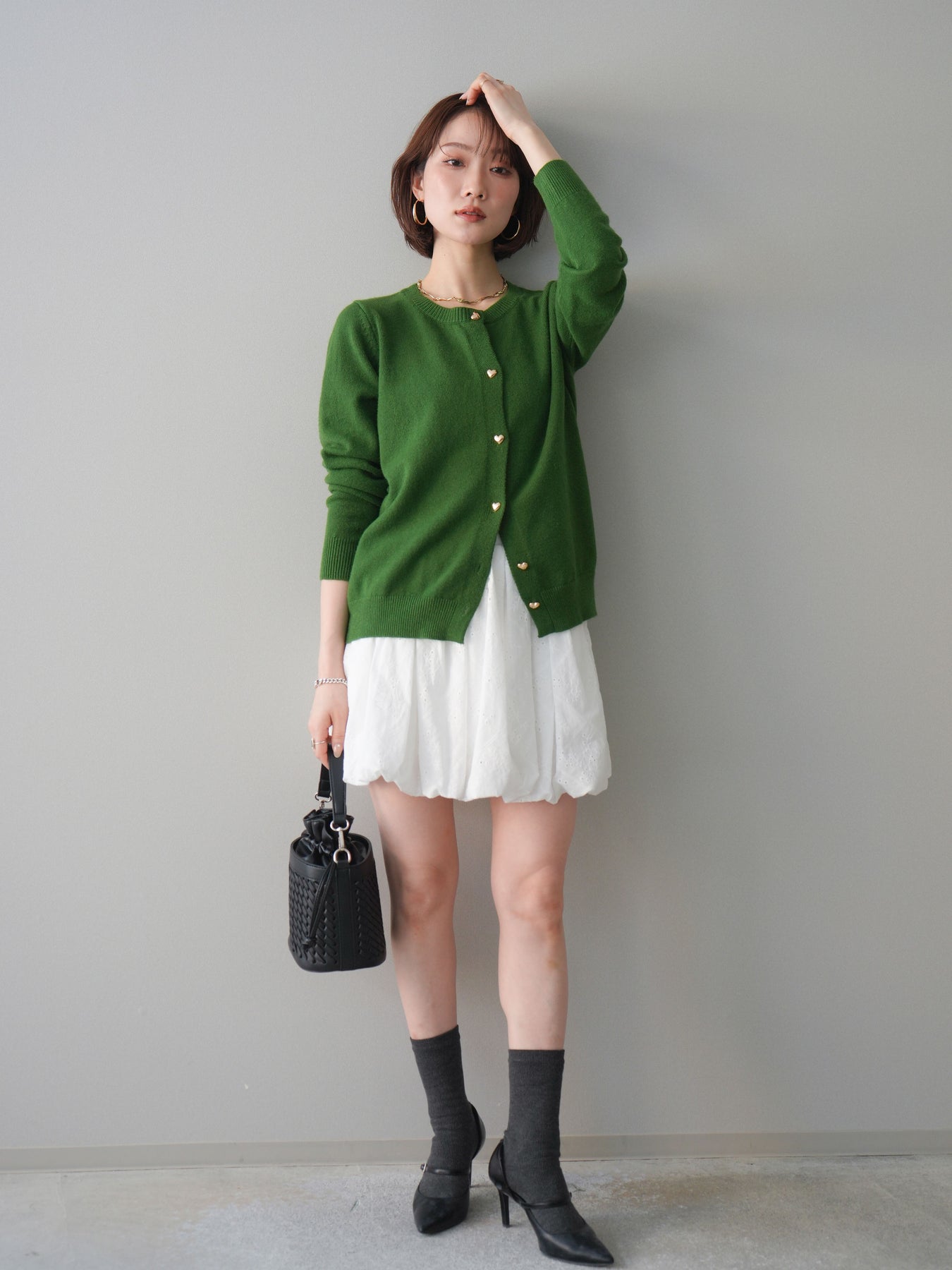 [SET]ハートボタンニットカーディガン+コットンライクレースバルーンミニスカート(2set)