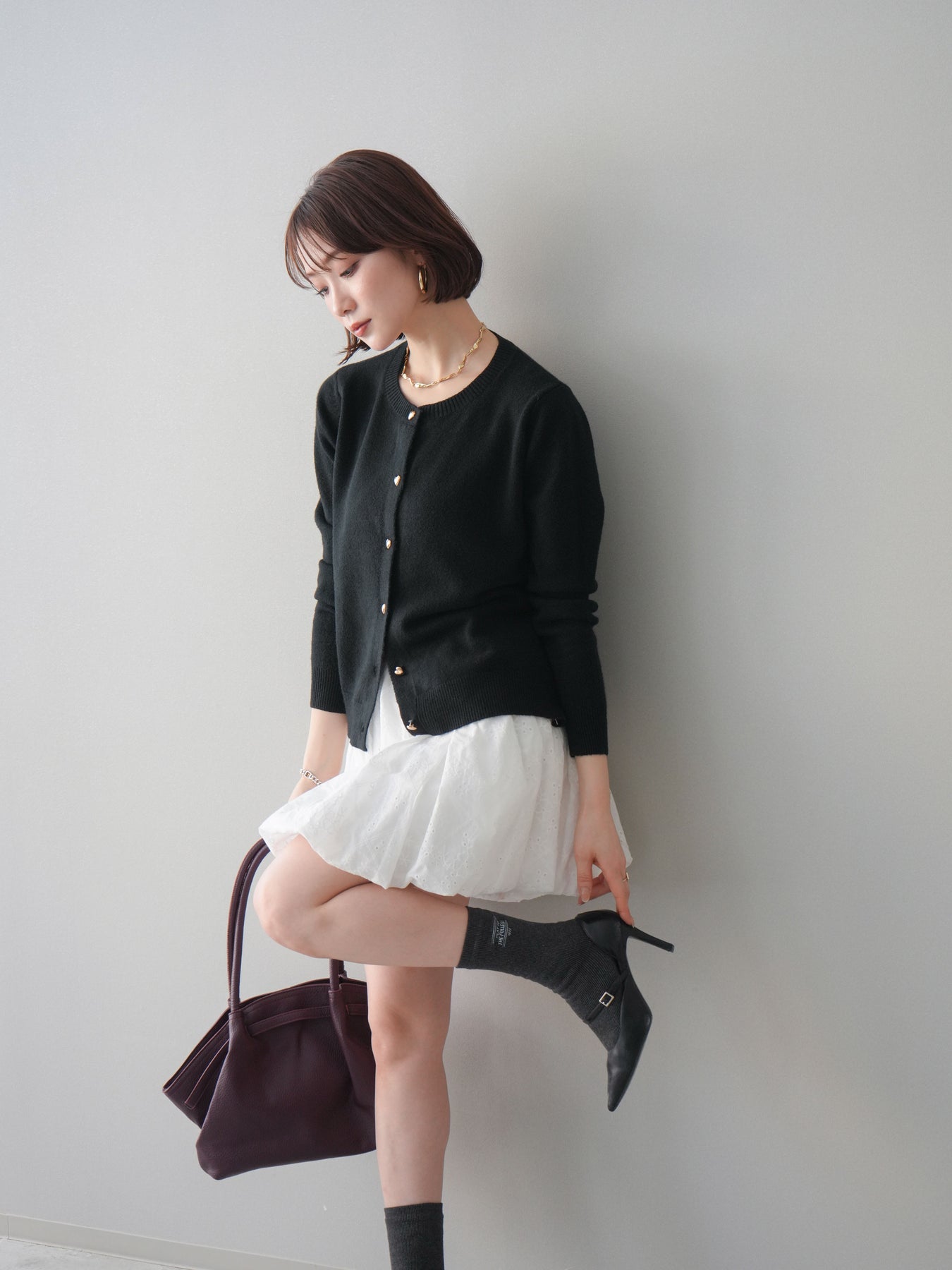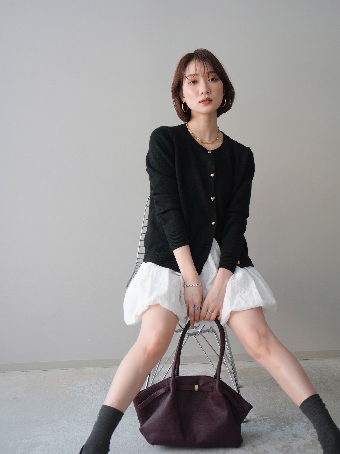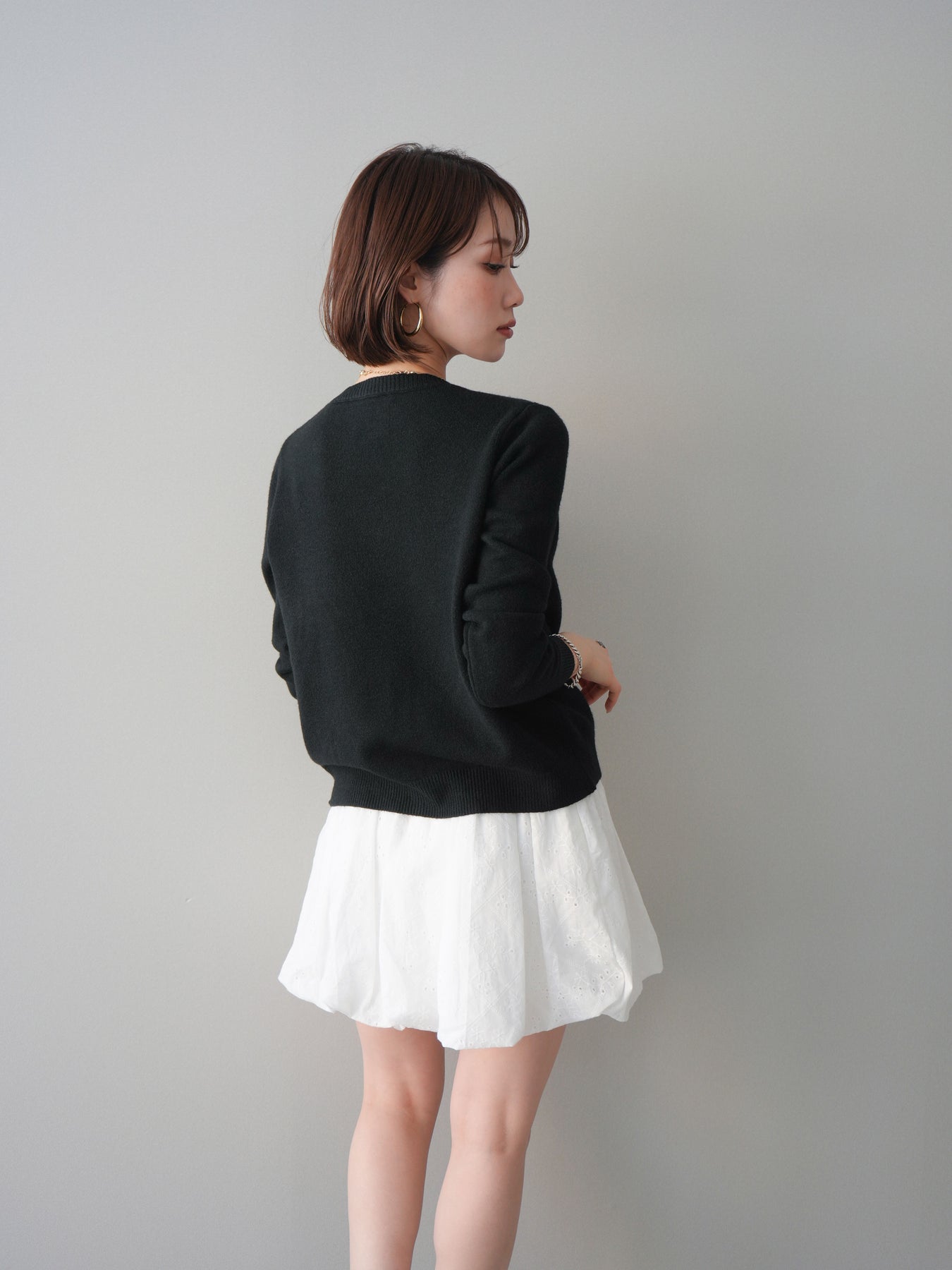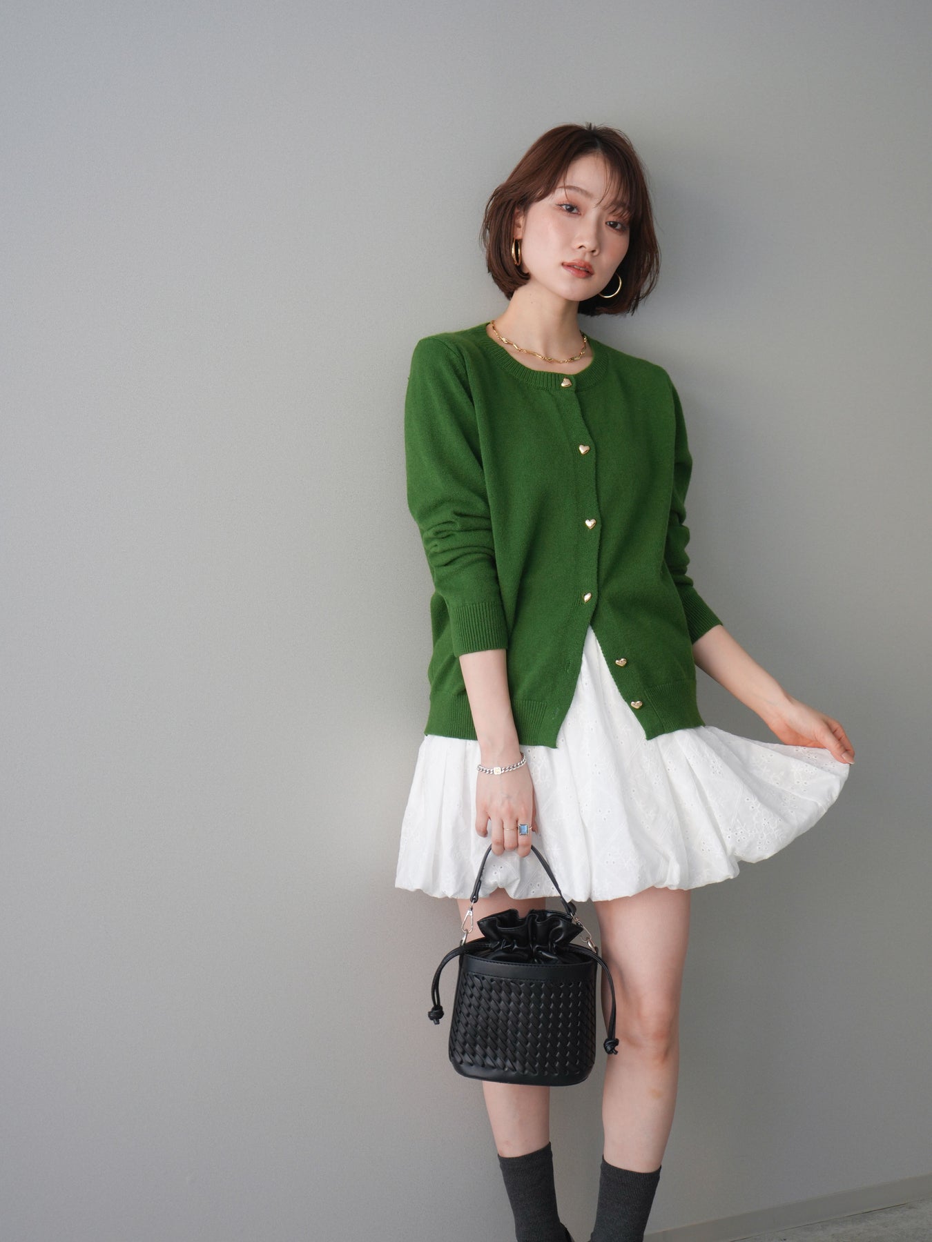[SET]ハートボタンニットカーディガン+コットンライクレースバルーンミニスカート(2set)