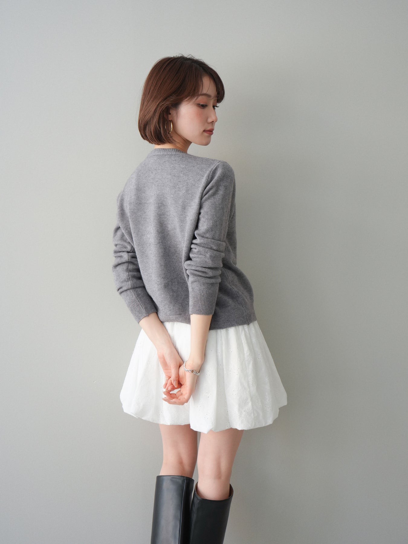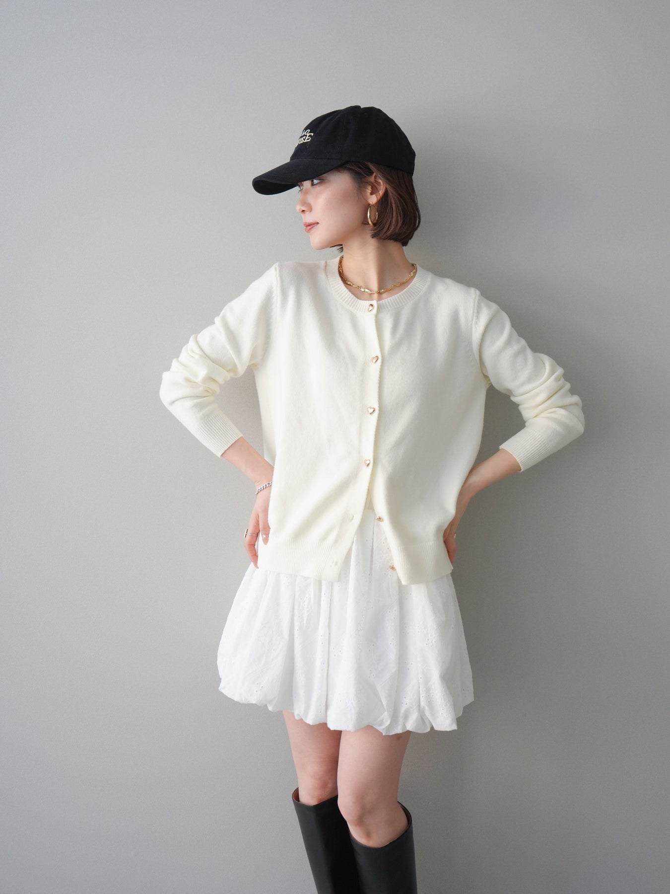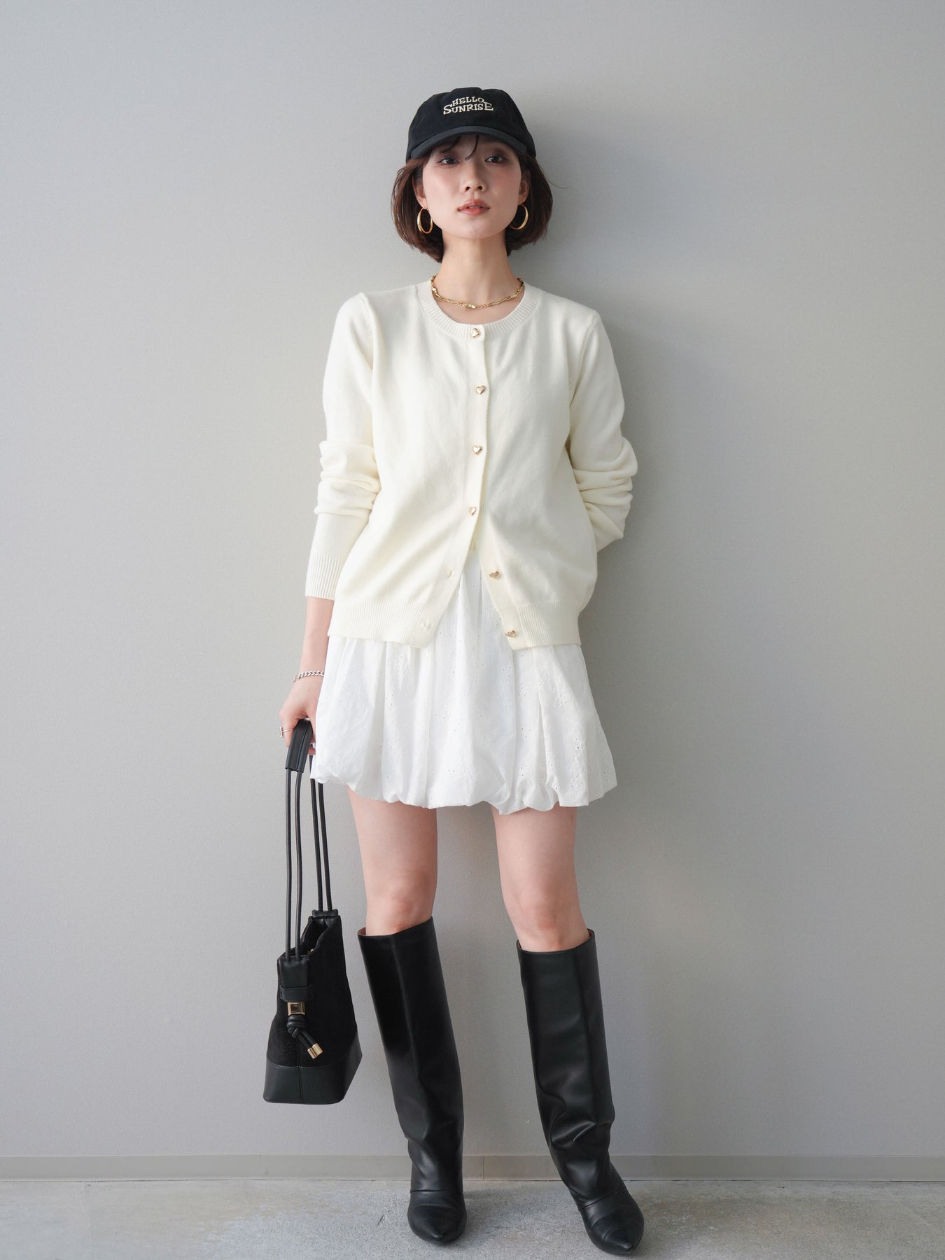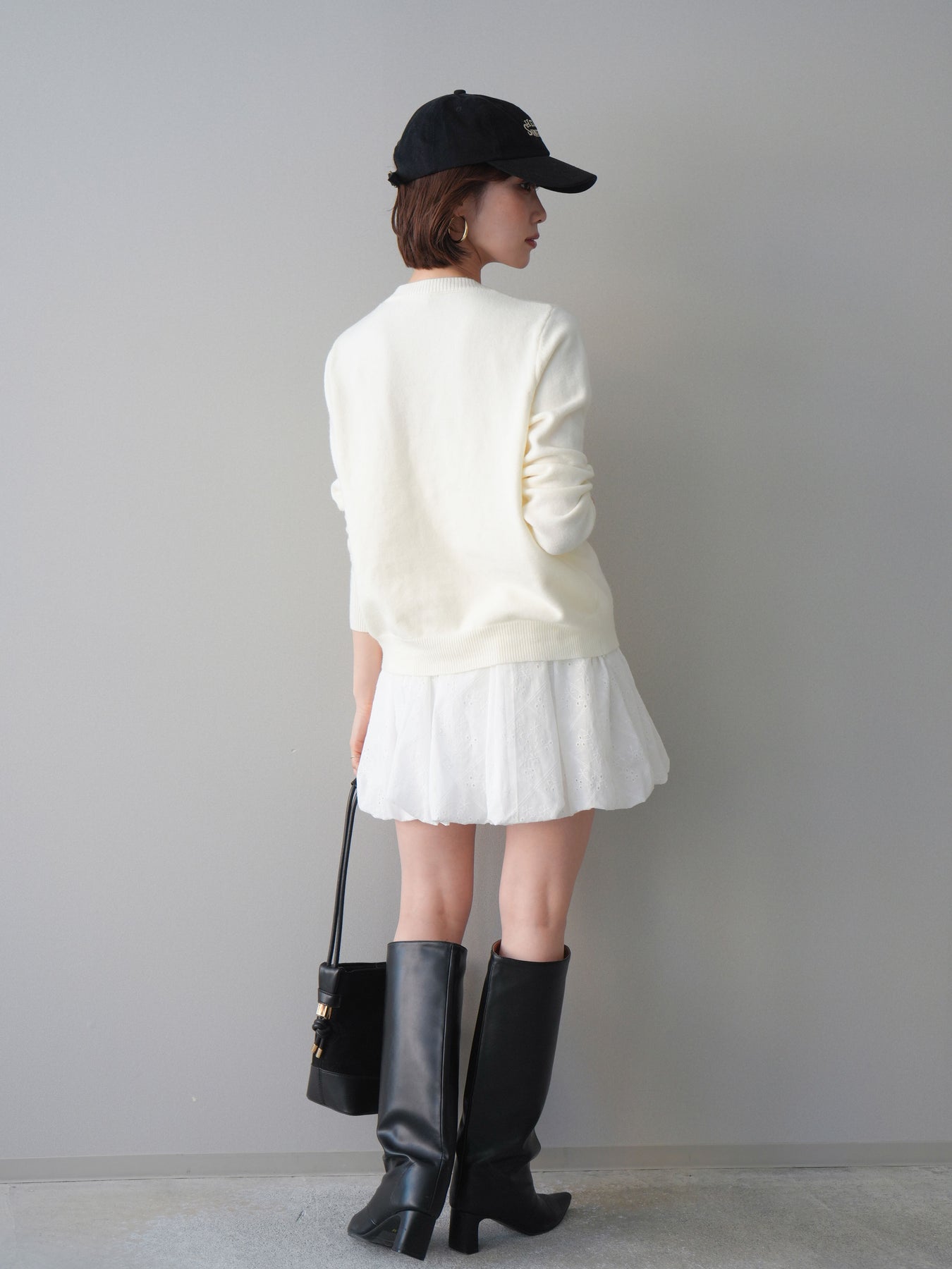 ナチュラルな風合いのコットンレースを贅沢に使用したバルーンミニスカート。ふんわりと丸みを帯びたシルエットが愛らしく、軽やかな印象を与えます。繊細なレース柄がスタイリングに華やかさをプラスし、シンプルなトップスと合わせるだけでコーディネートが完成。ウエストはイージー仕様で、快適な着心地も魅力の一着です。