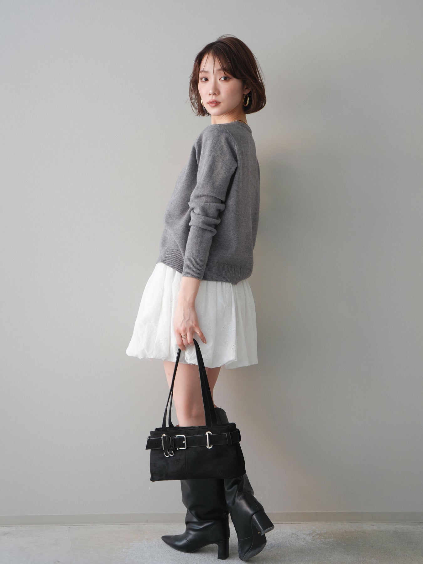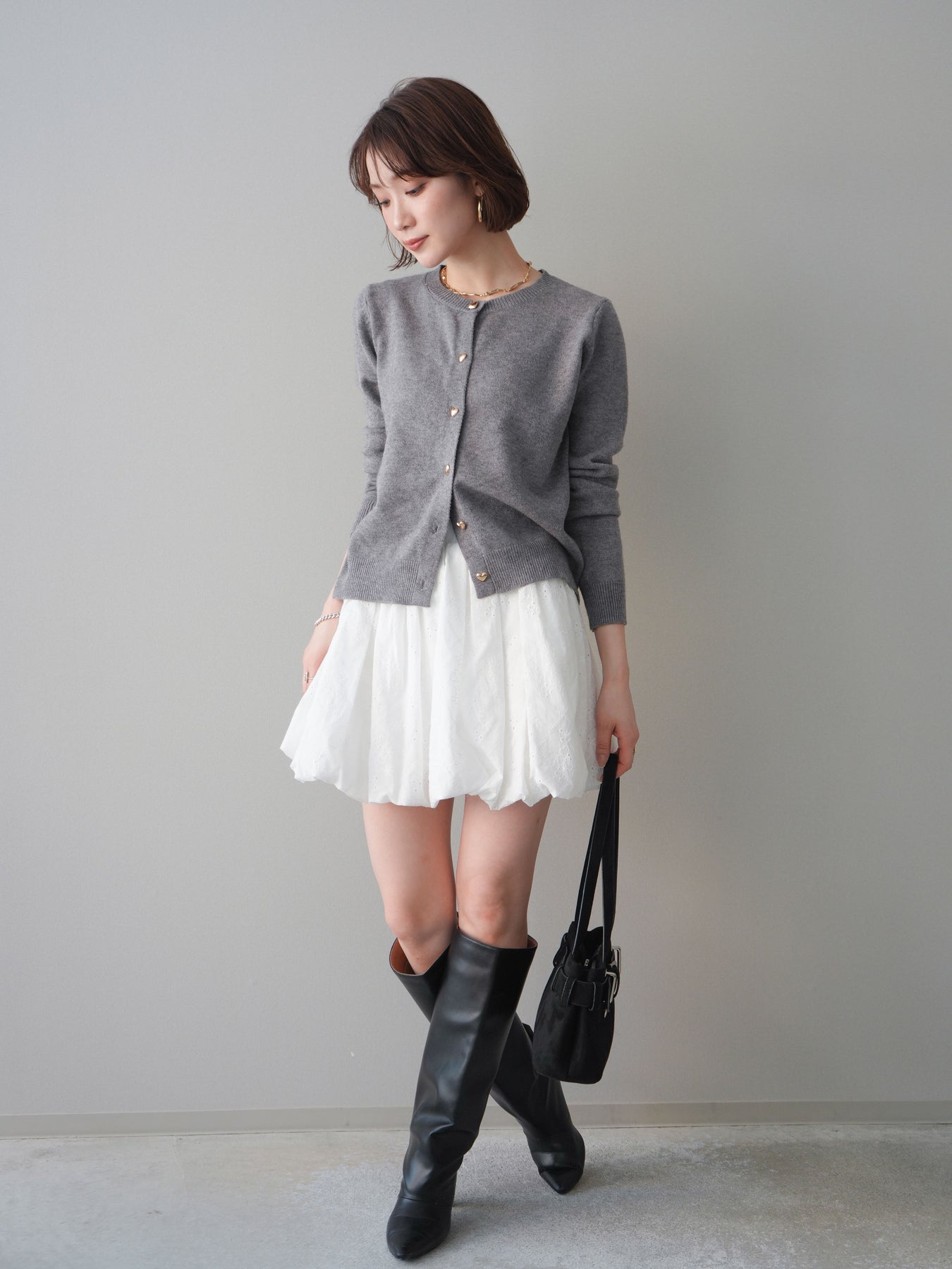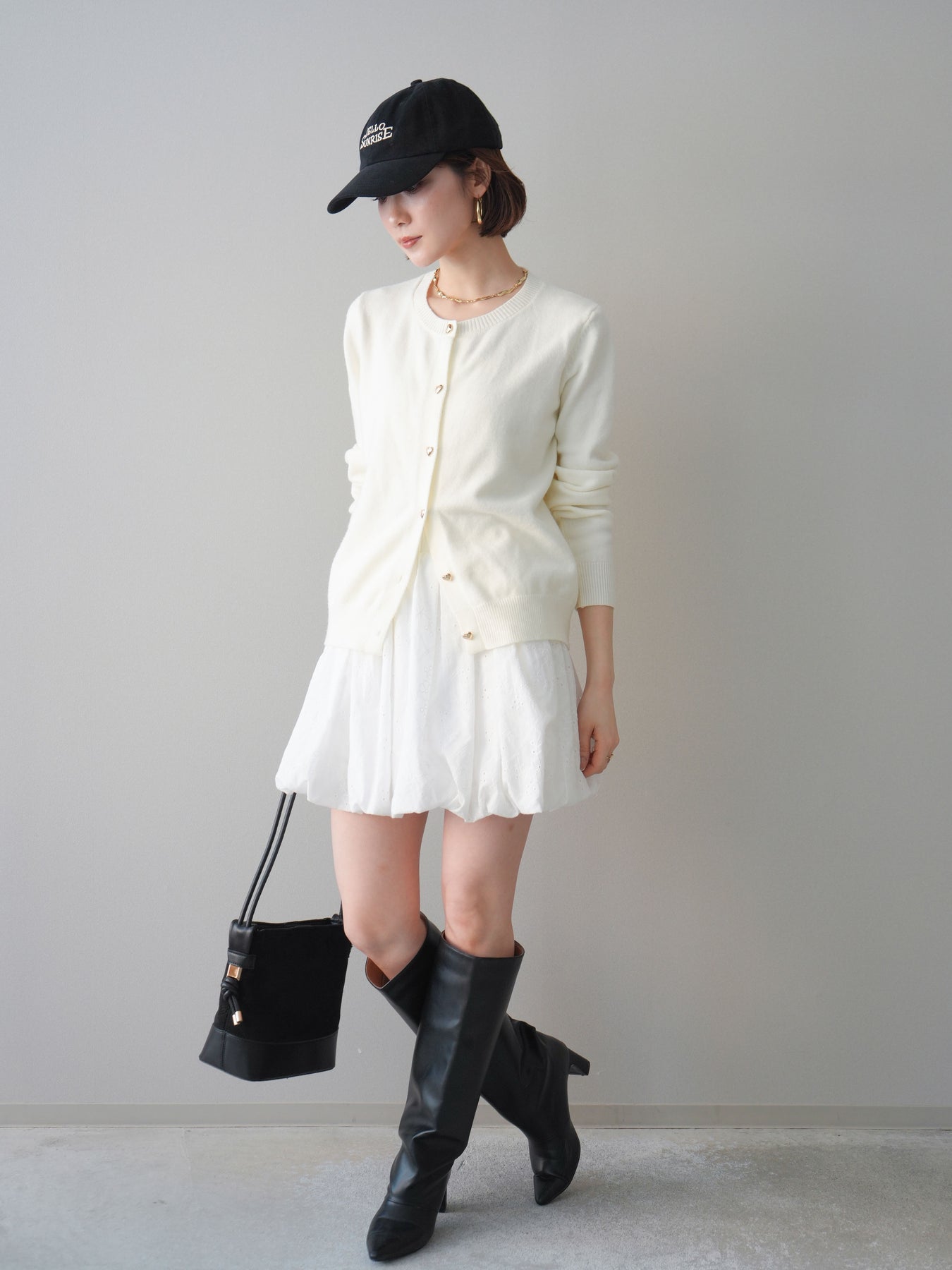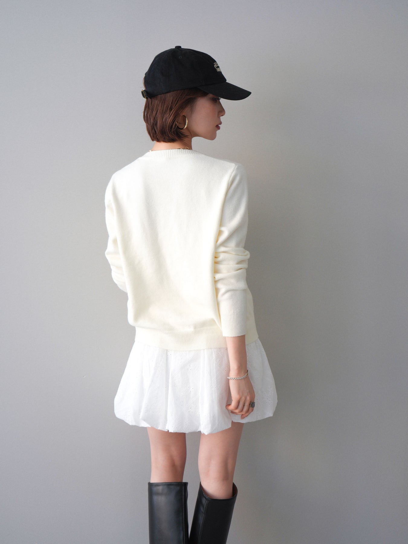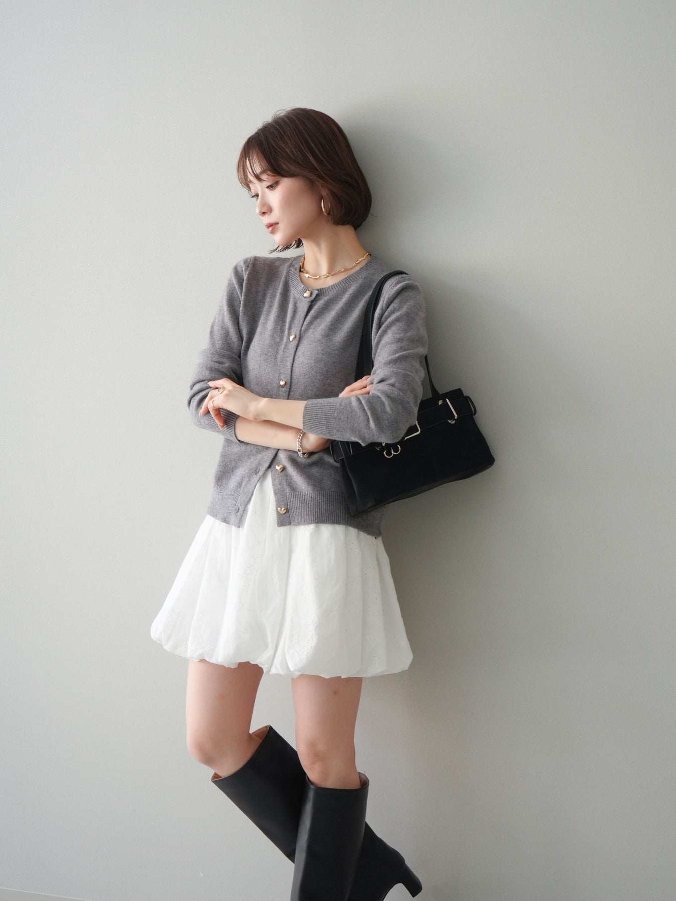ナチュラルな風合いのコットンレースを贅沢に使用したバルーンミニスカート。ふんわりと丸みを帯びたシルエットが愛らしく、軽やかな印象を与えます。繊細なレース柄がスタイリングに華やかさをプラスし、シンプルなトップスと合わせるだけでコーディネートが完成。ウエストはイージー仕様で、快適な着心地も魅力の一着です。