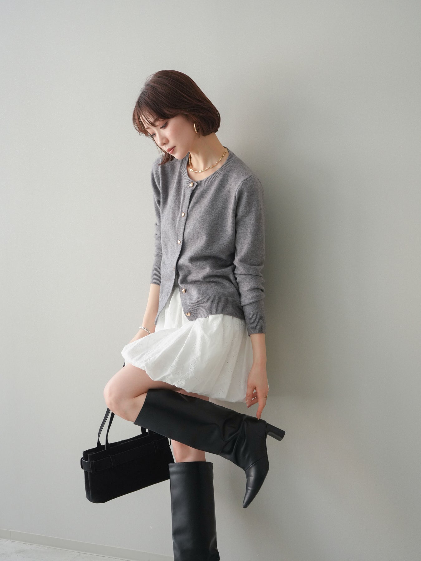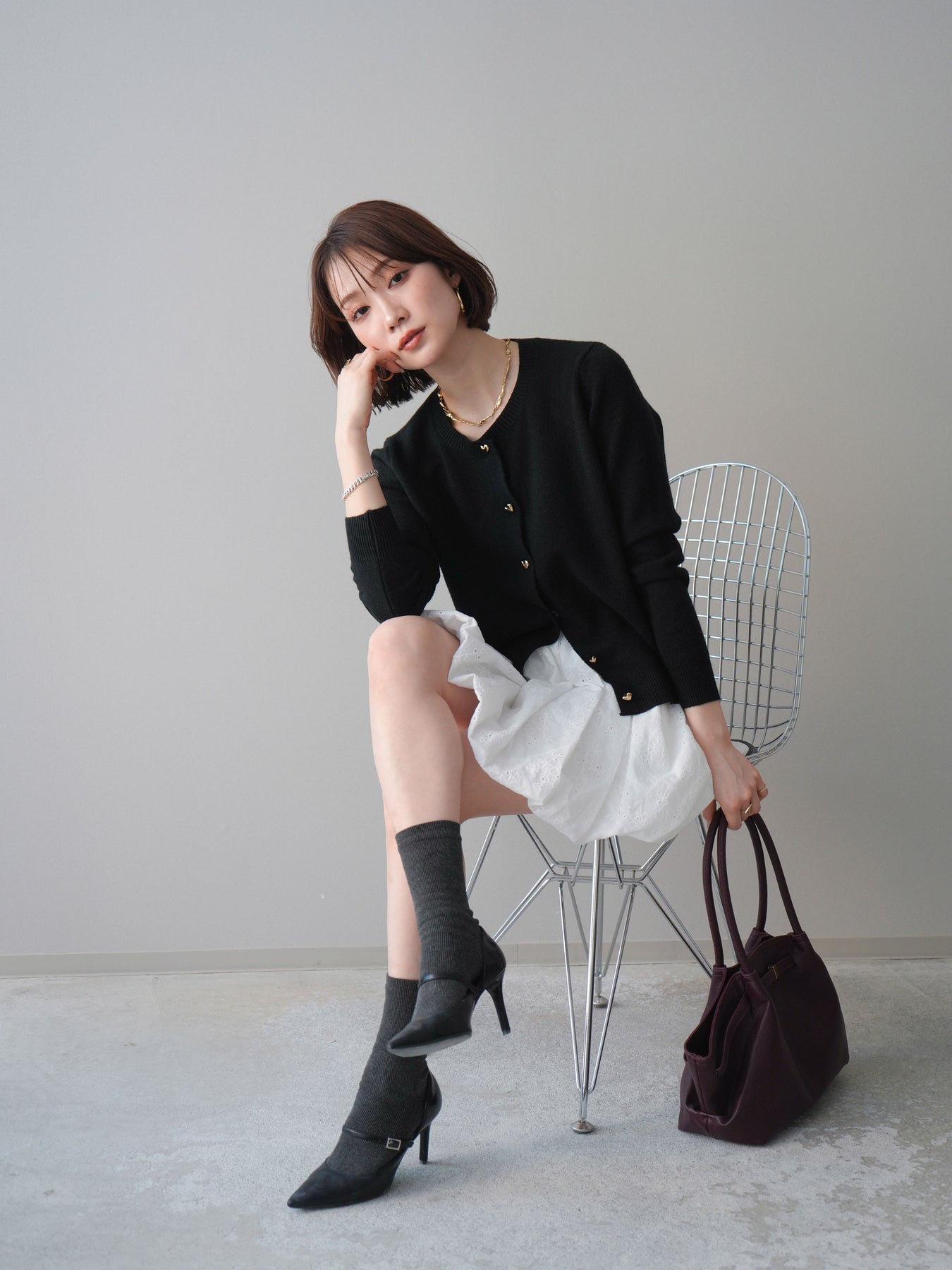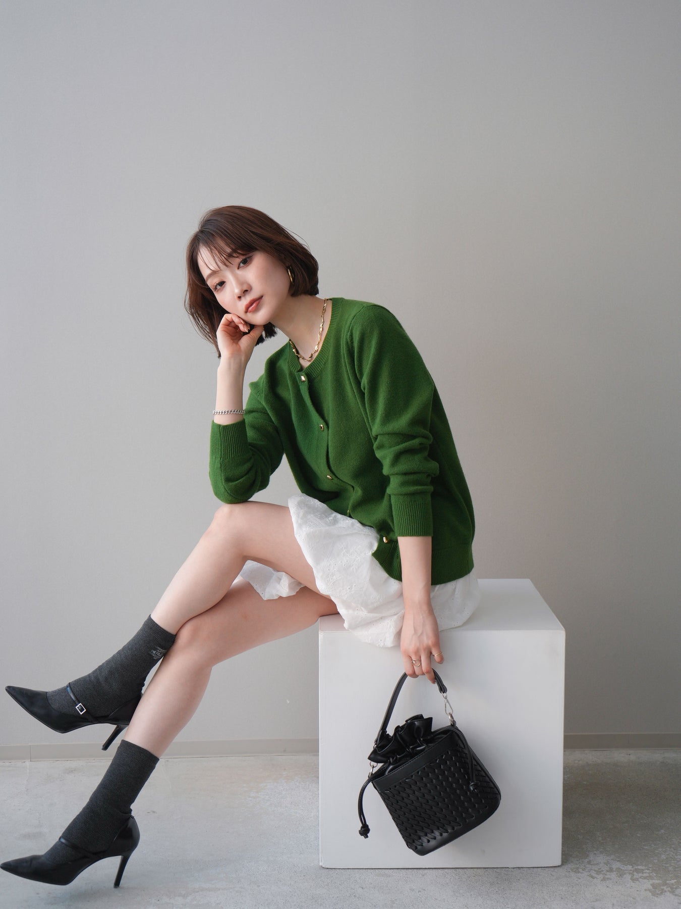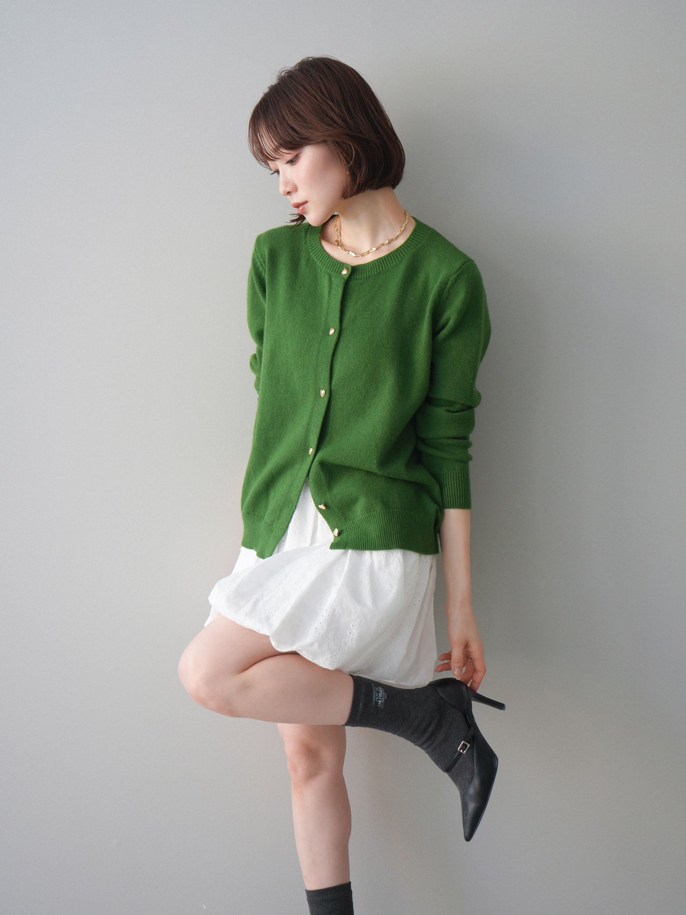 フロントにあしらったハートボタンが目を引くニットカーディガン。シンプルなクルーネックデザインにさりげない甘さをプラスし、コーディネートのアクセントになります。程よくゆとりのあるシルエットで、トップスとしても羽織りとしても着回しやすい一着。デニムやスラックスはもちろん、ワンピースに重ねたスタイリングもおすすめです。 ※ボトムス、キャミソール(インナー)以外の商品は一律でインナーは付属していません。