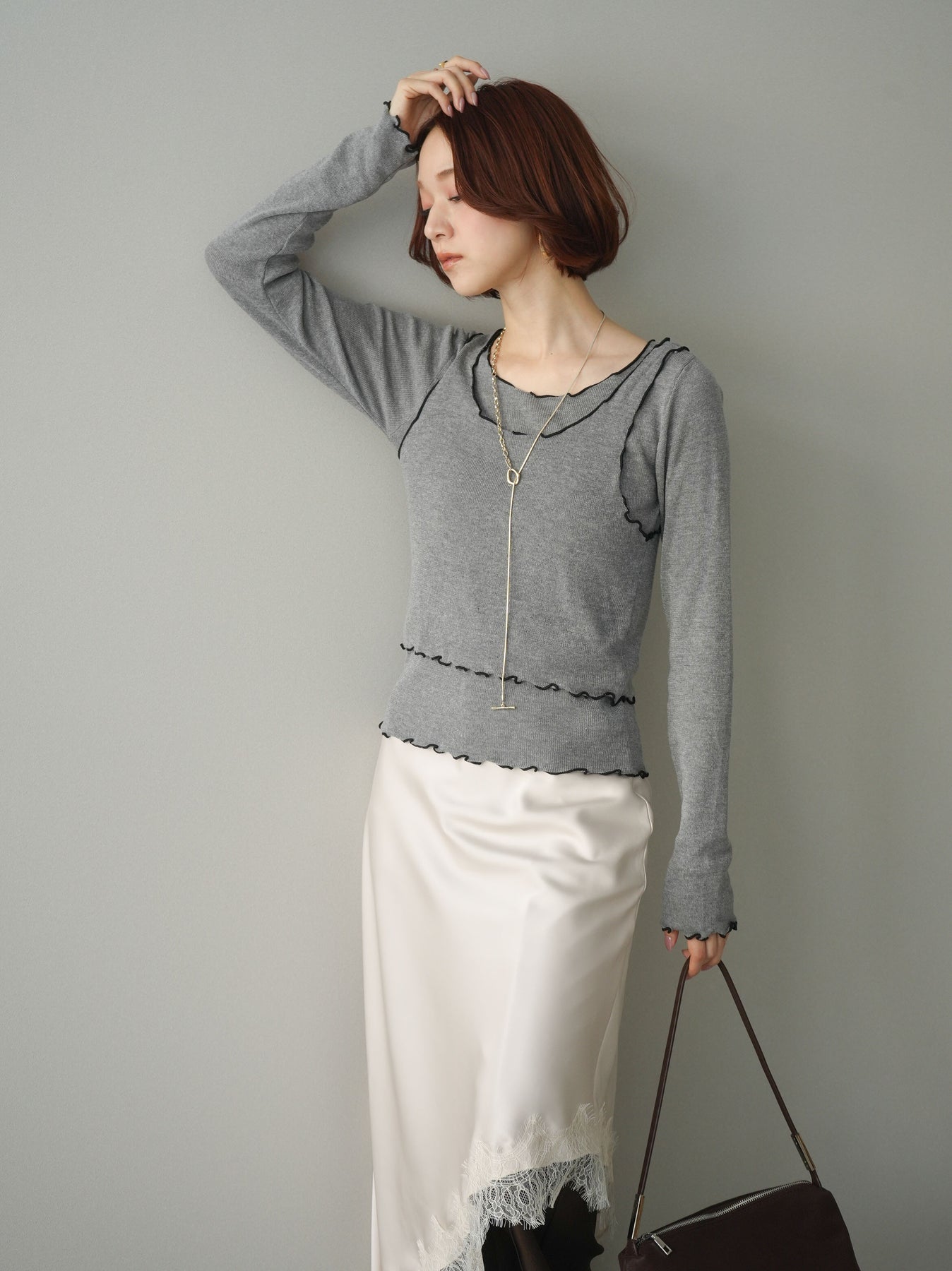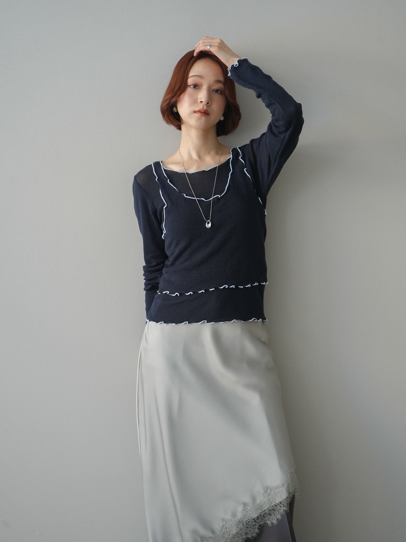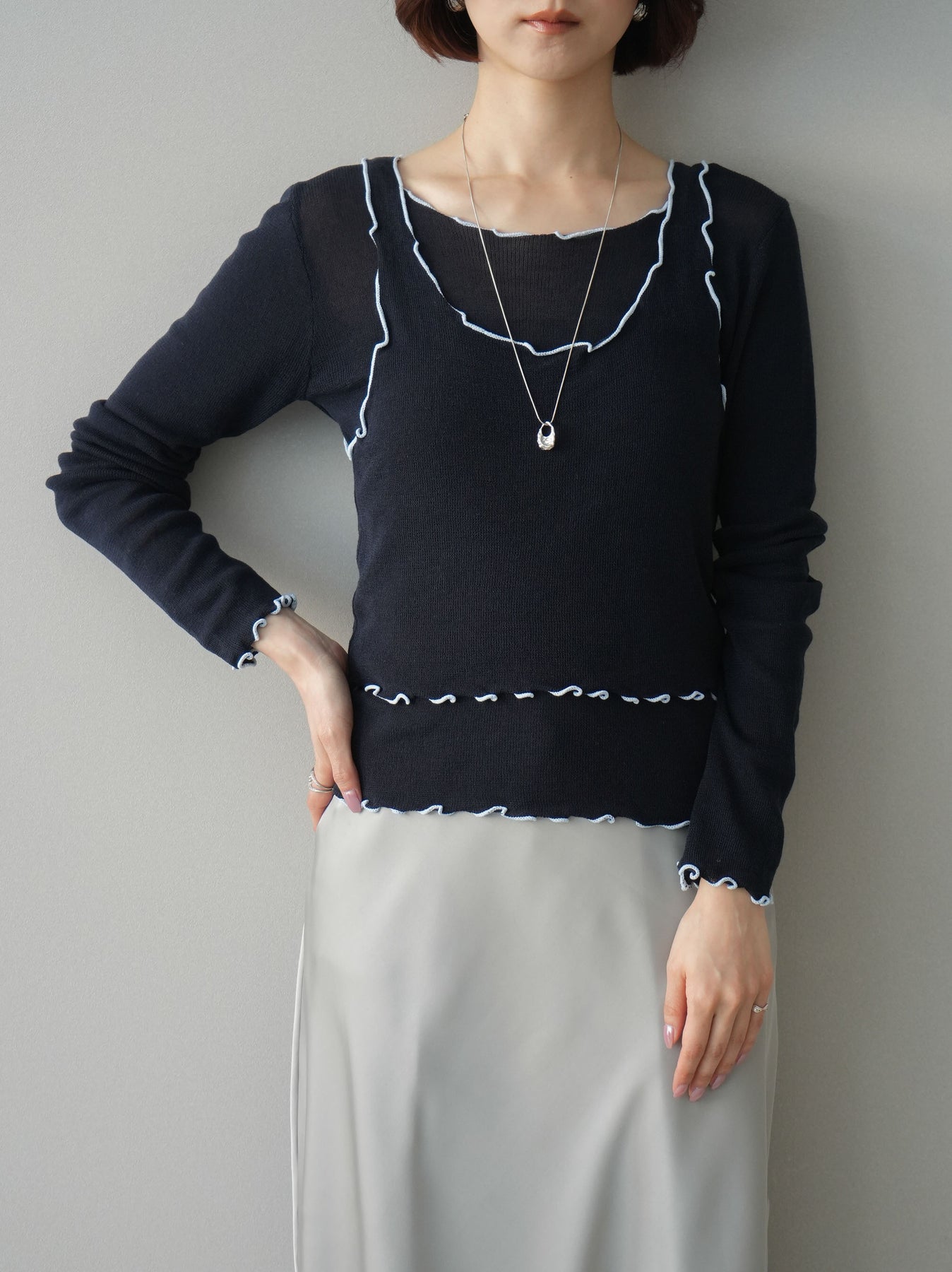 ◆ [予約]バイカラーメローアンサンブルシアーニットトップス