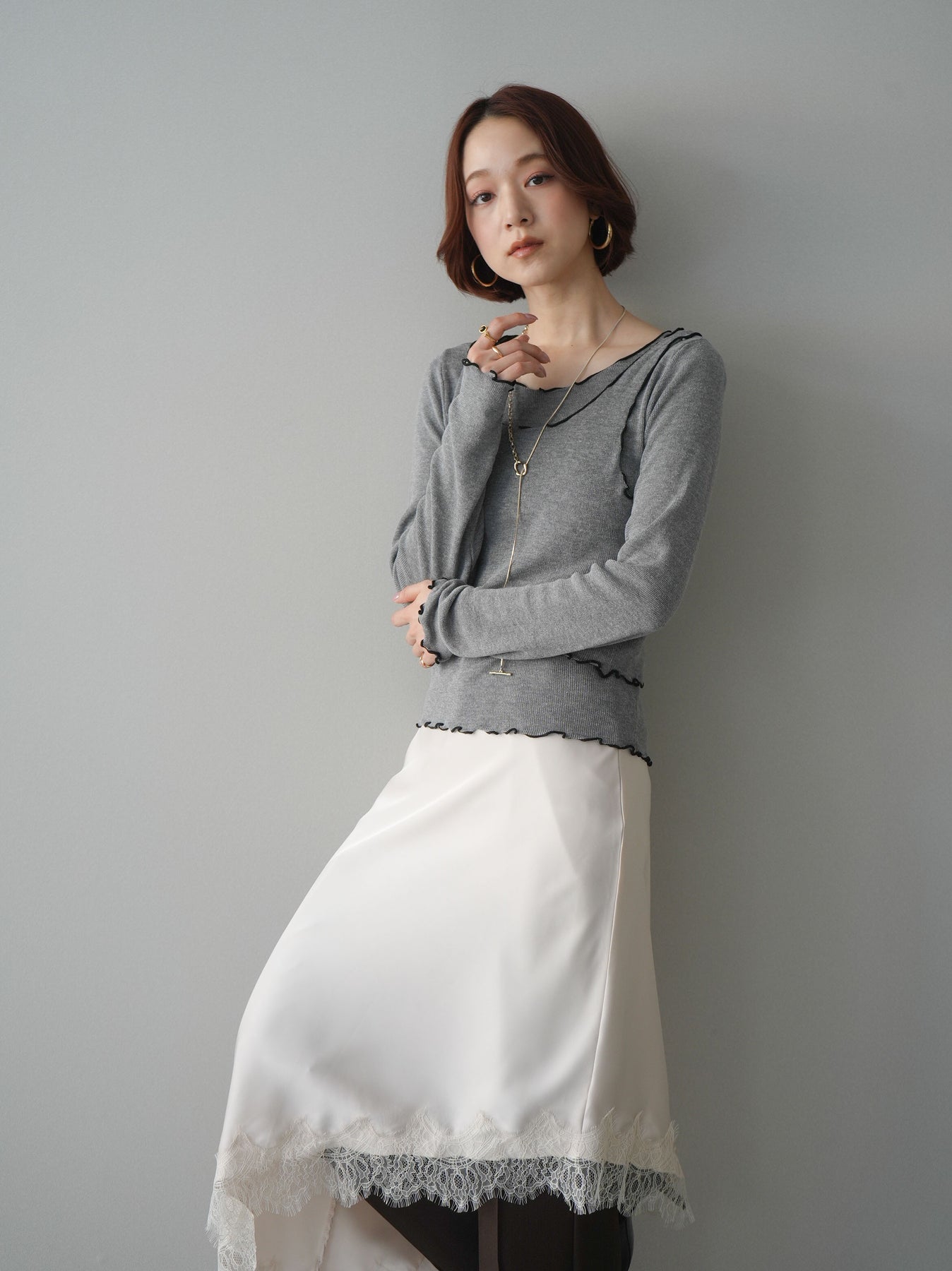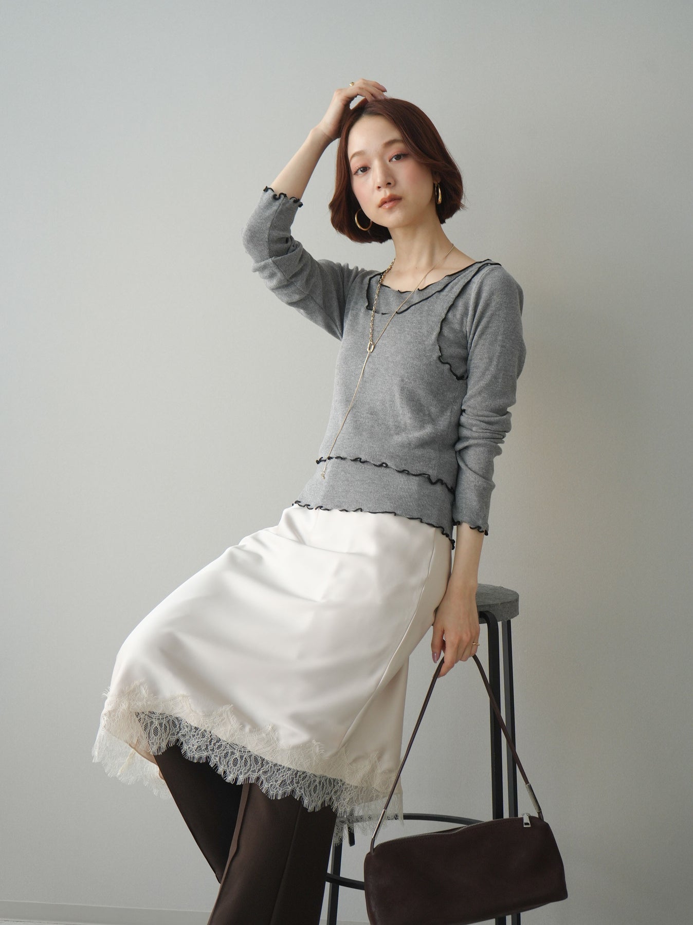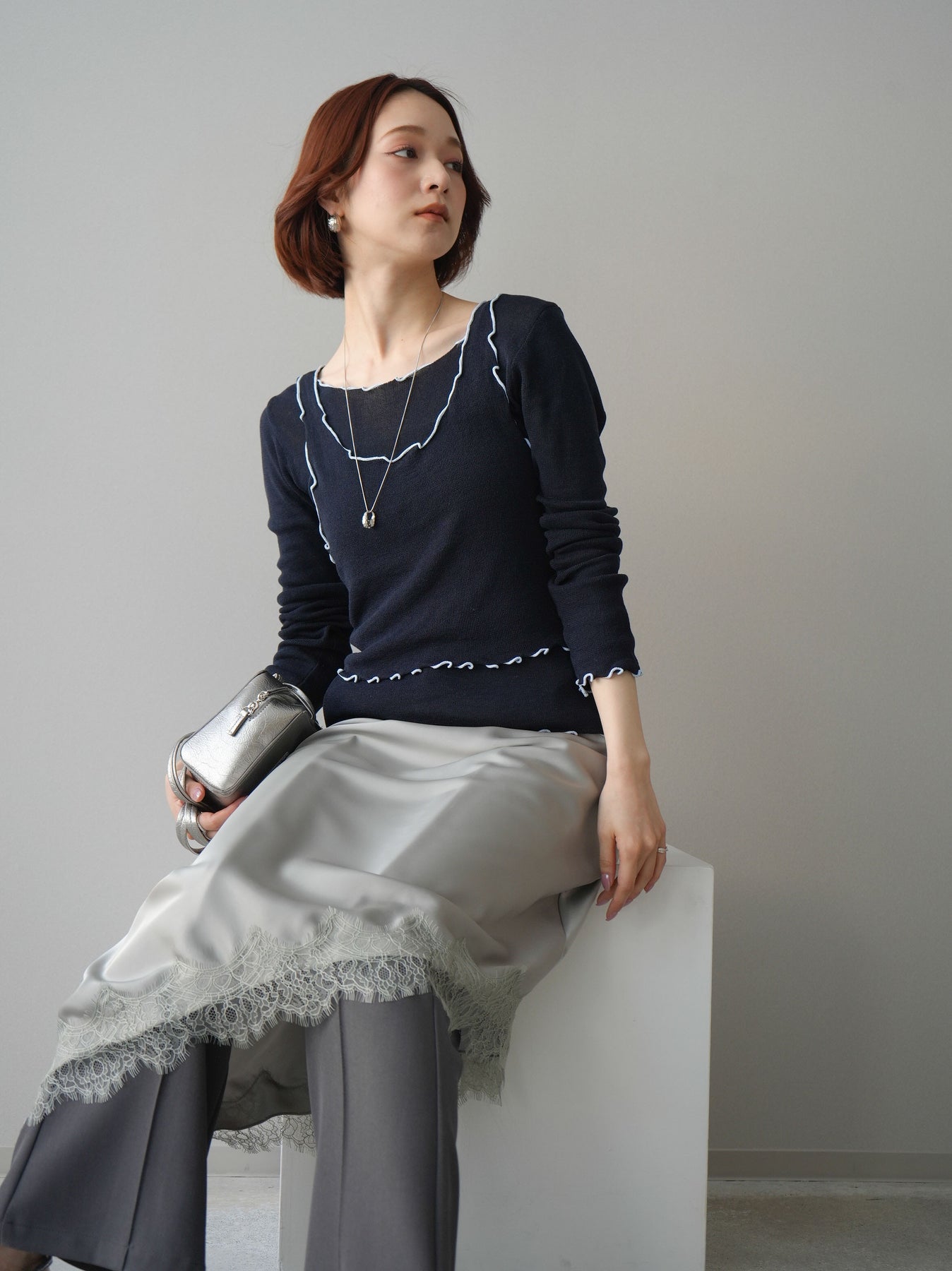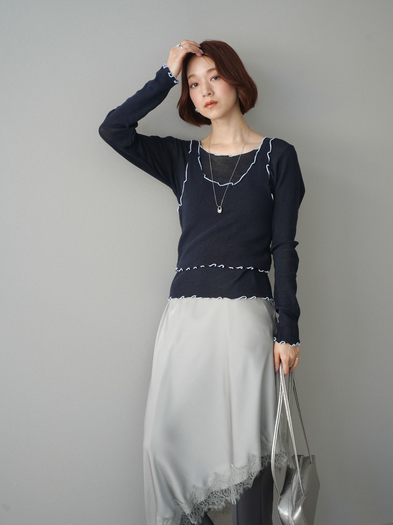 ◆ [予約]バイカラーメローアンサンブルシアーニットトップス