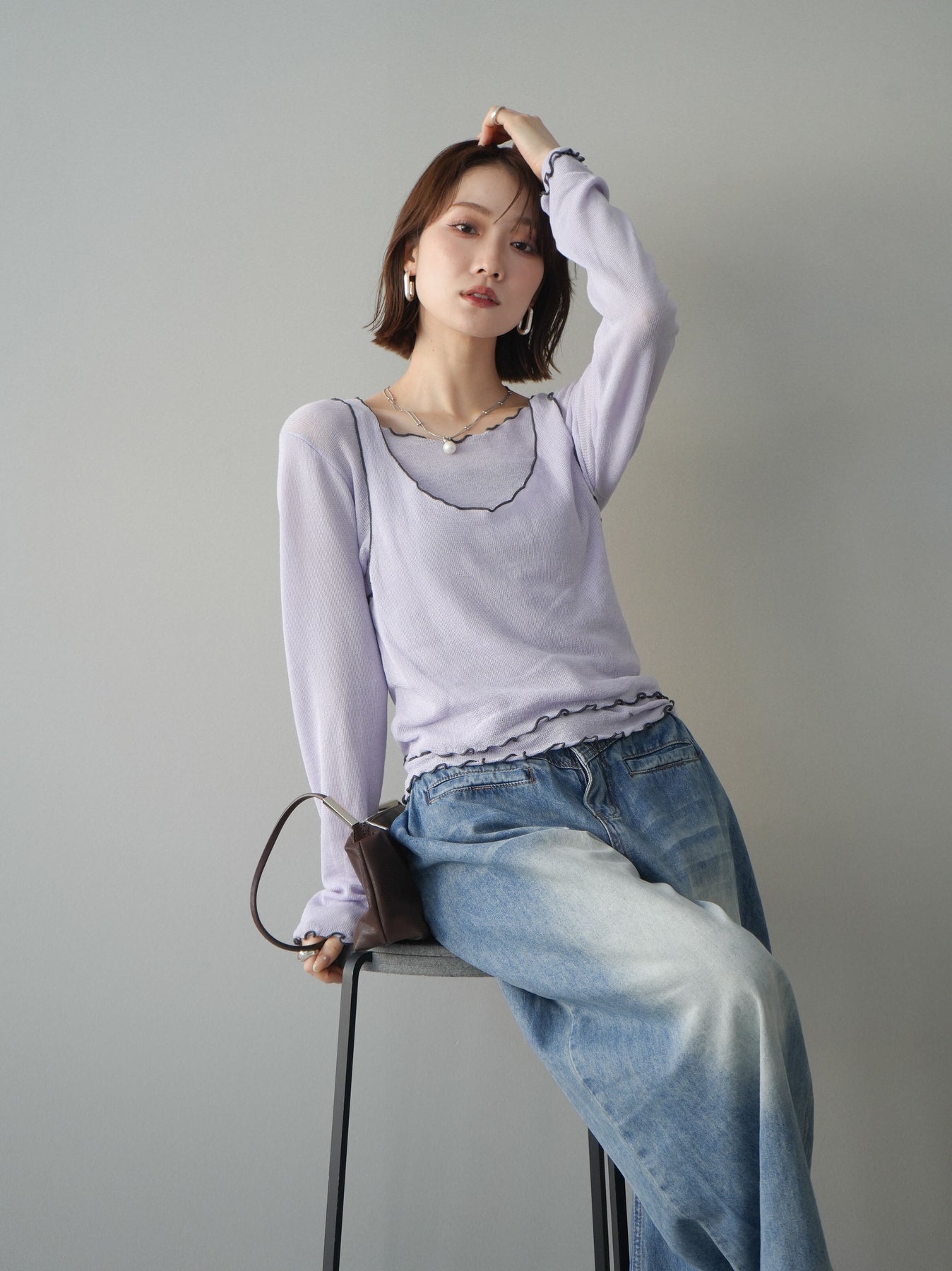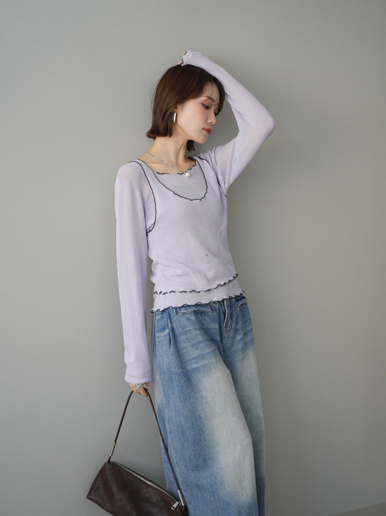 ◆ [予約]バイカラーメローアンサンブルシアーニットトップス