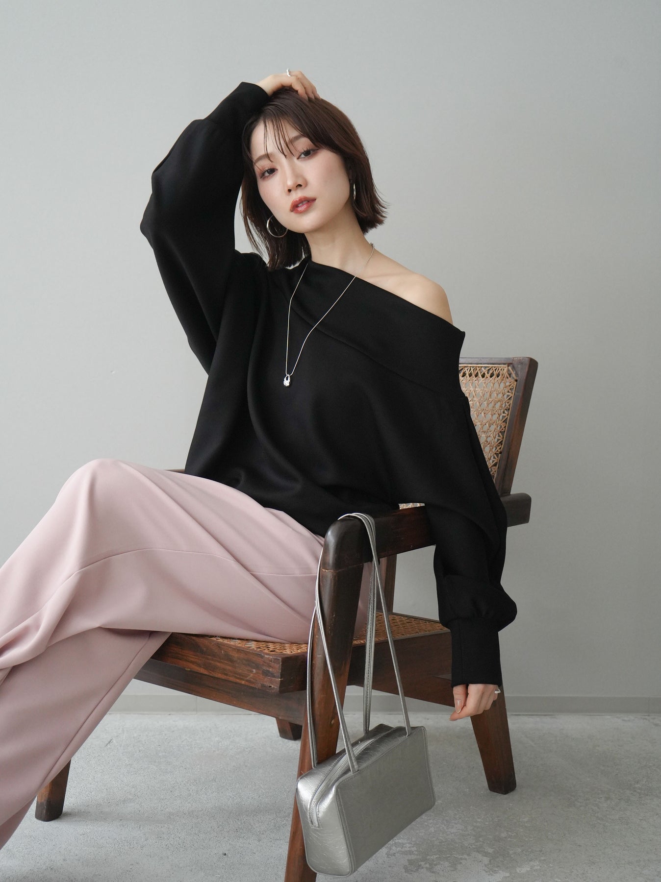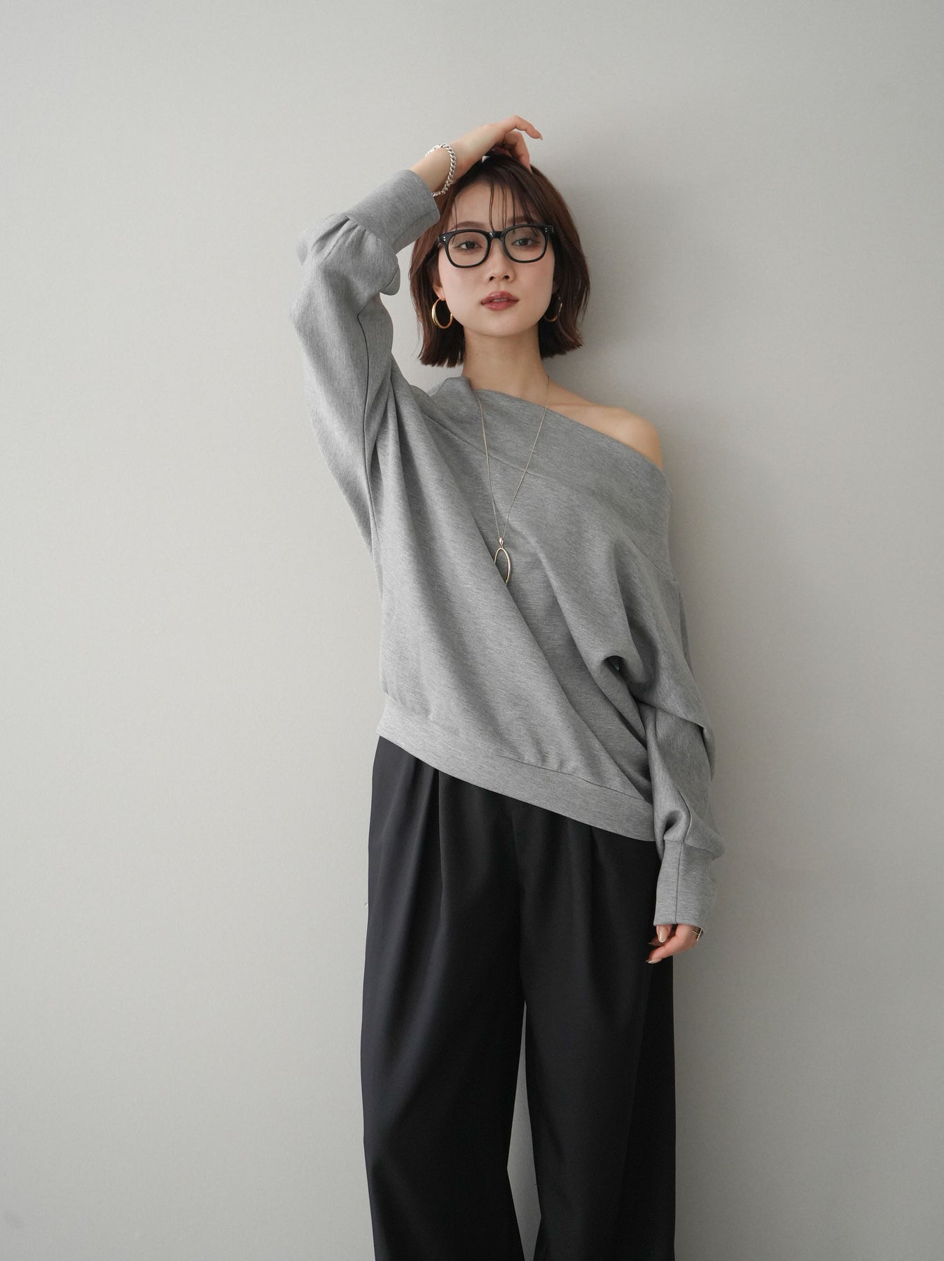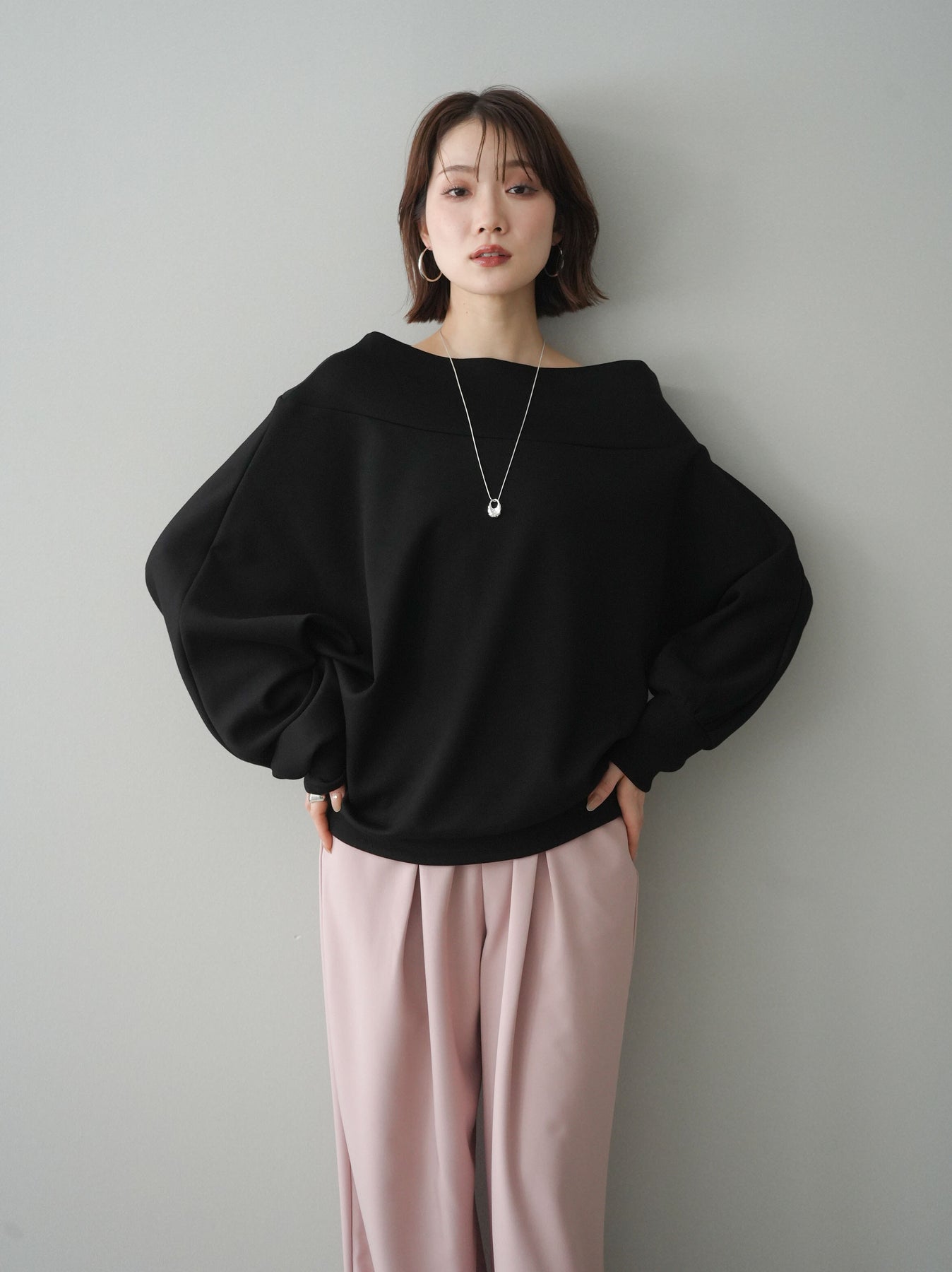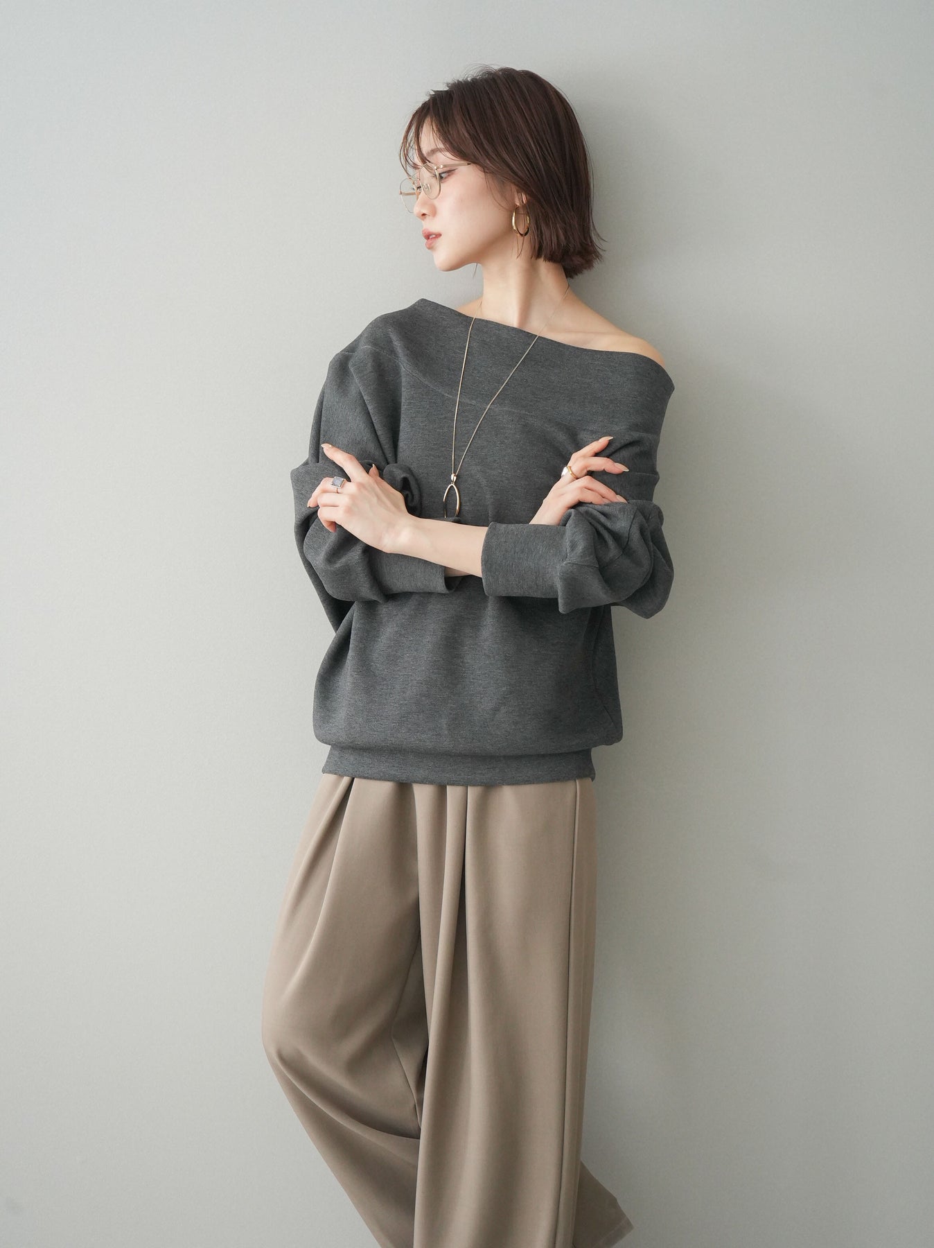 [SET]アシンメトリーオフショルポンチプルオーバー+選べるアクセセット(2set)
