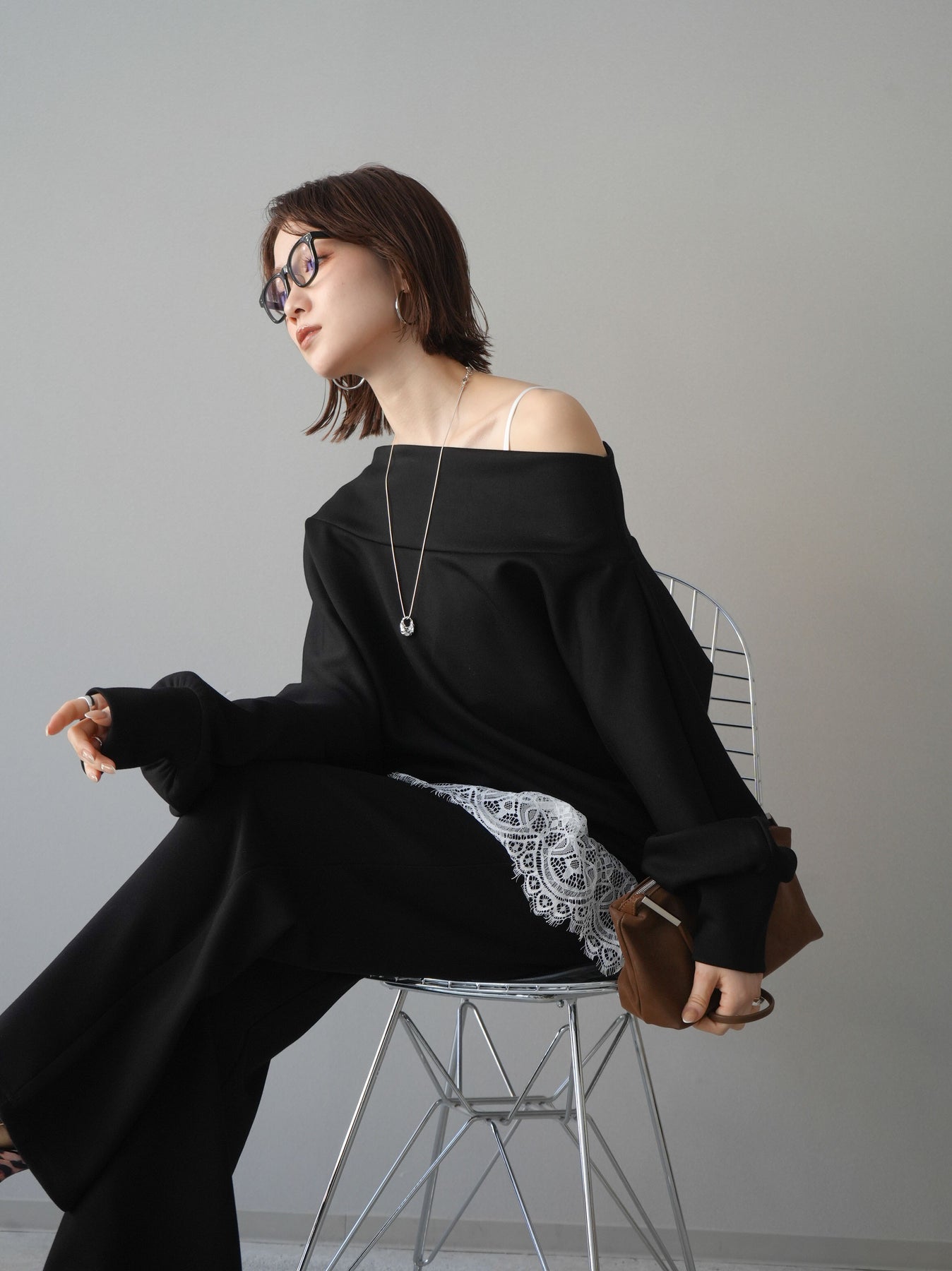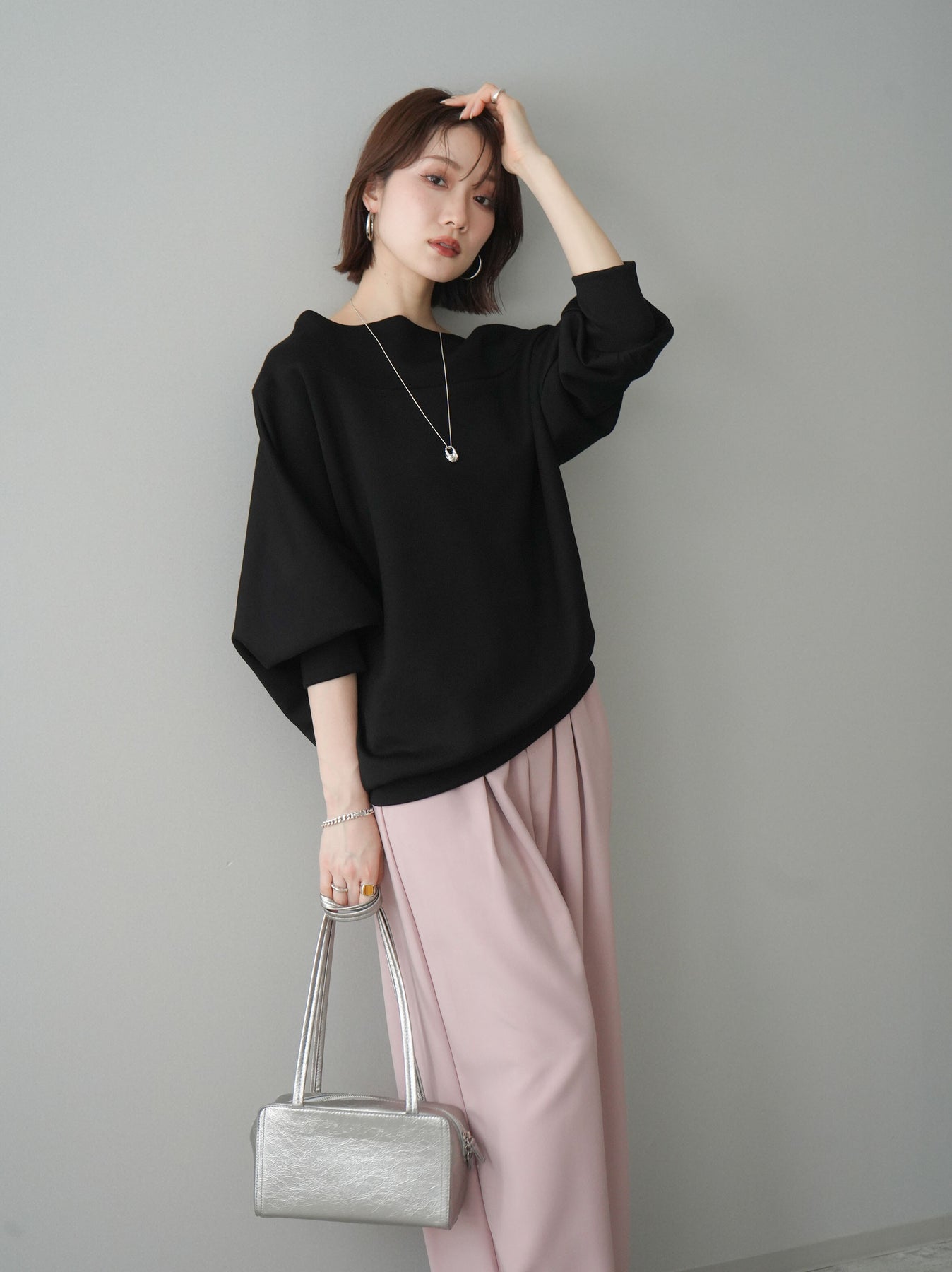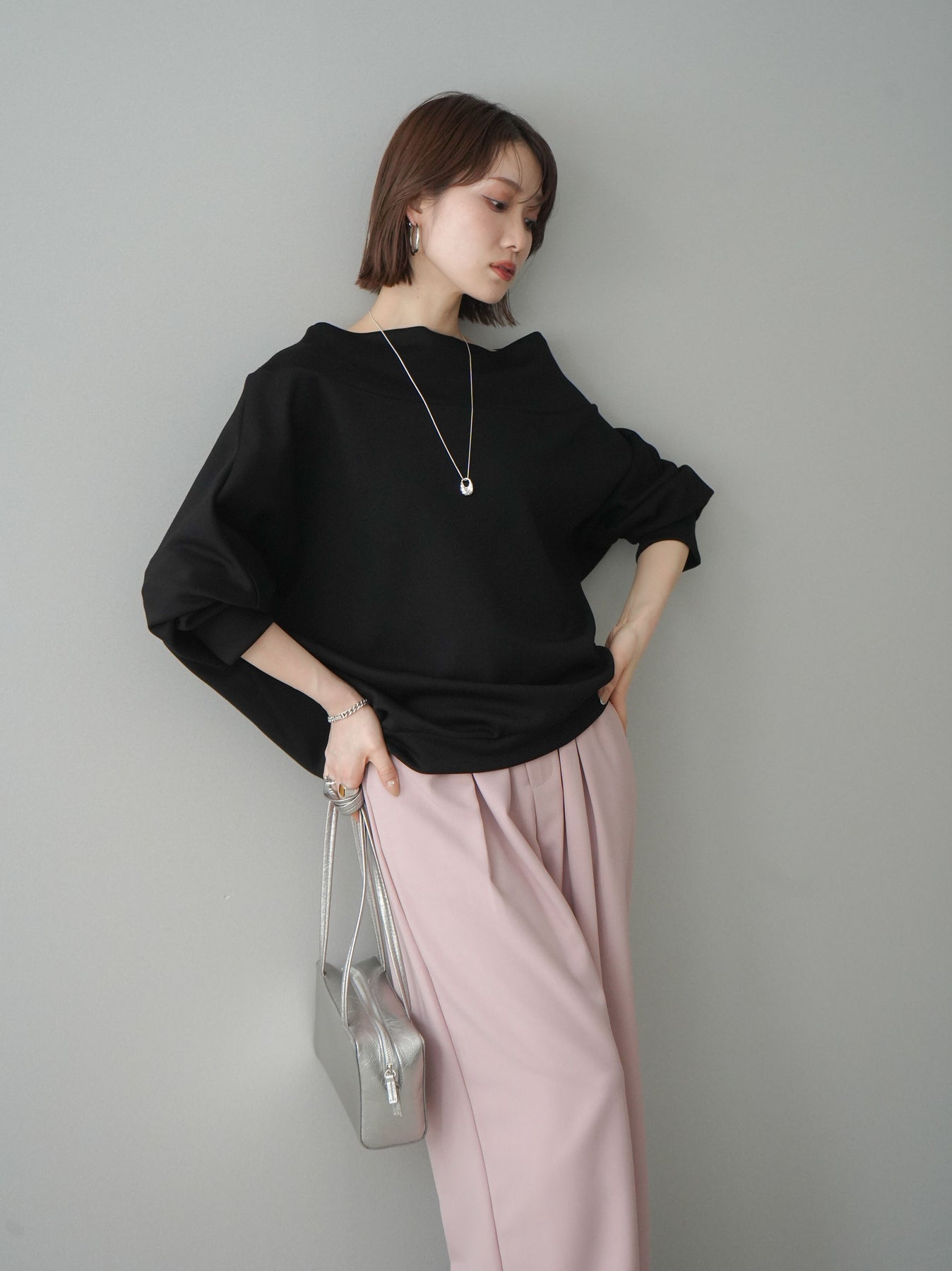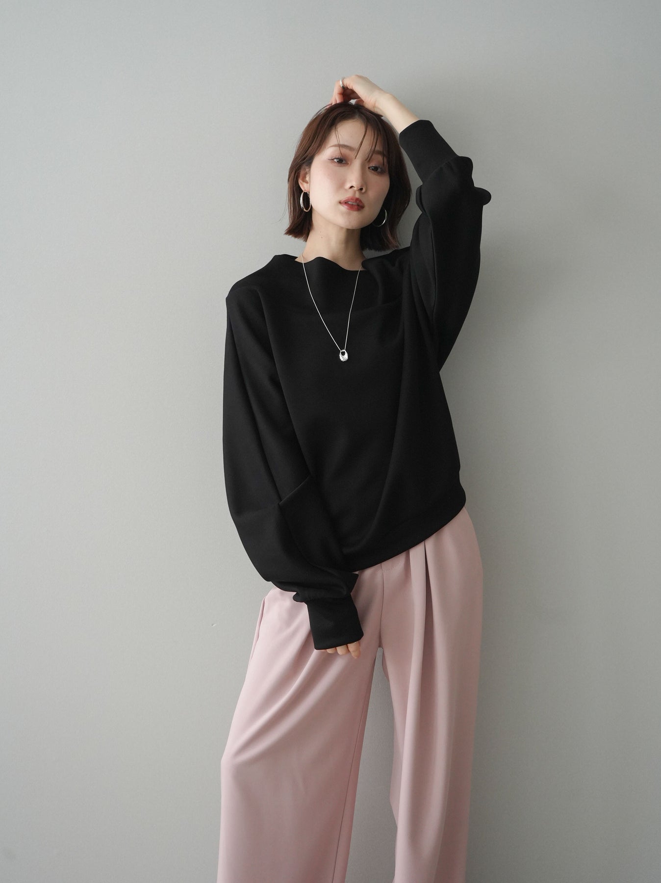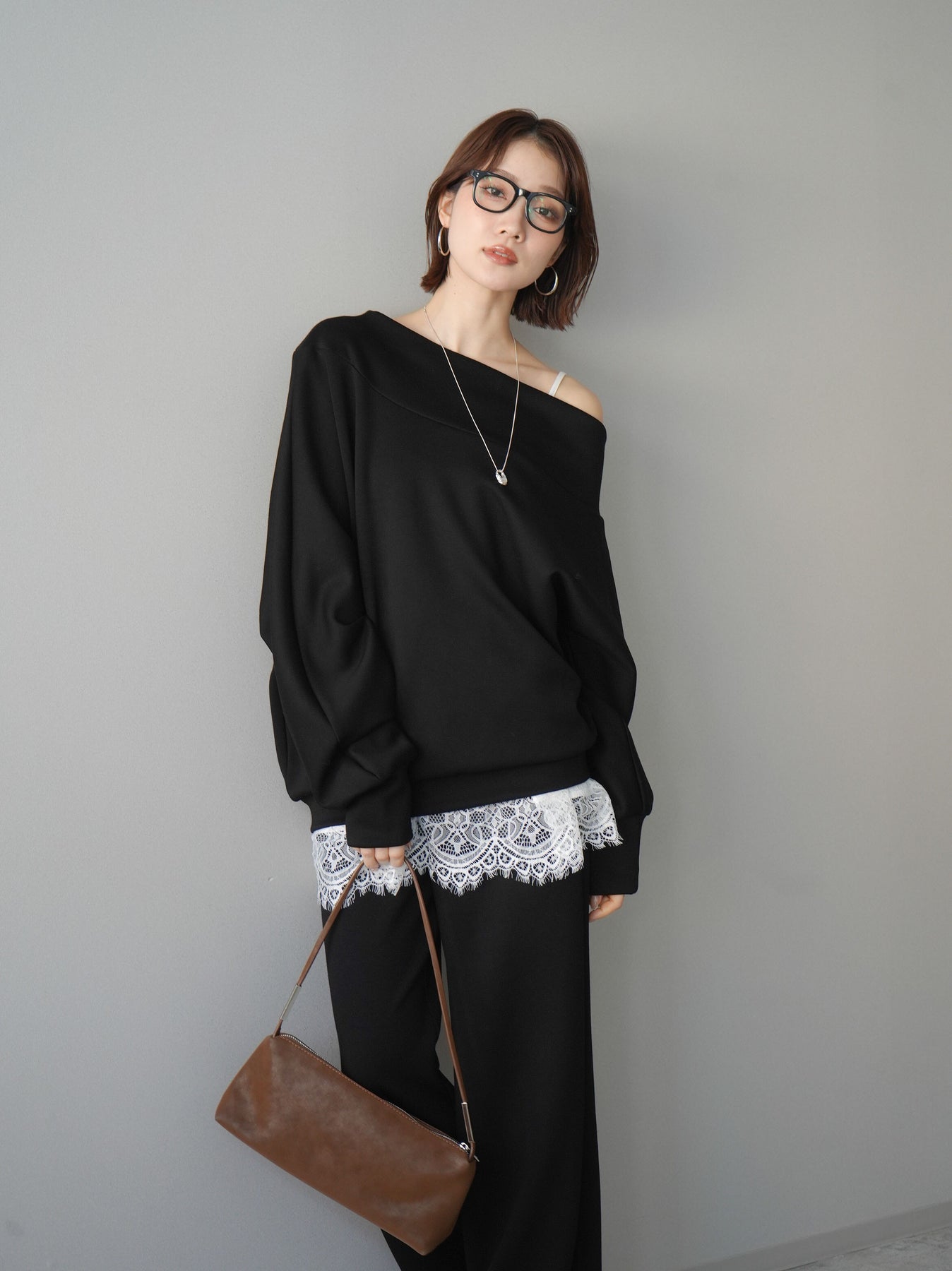 [SET]アシンメトリーオフショルポンチプルオーバー+選べるアクセセット(2set)
