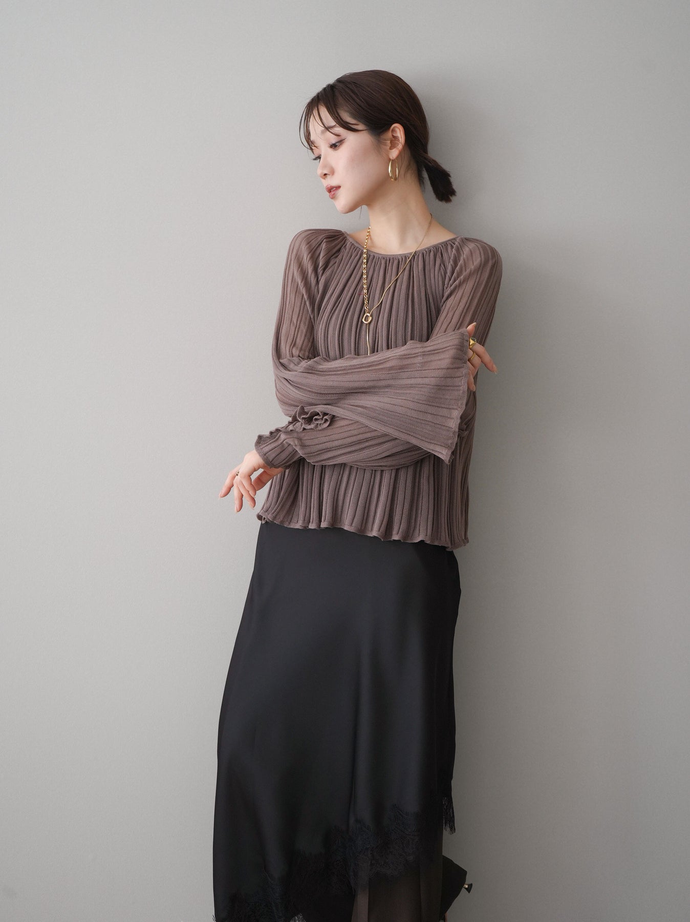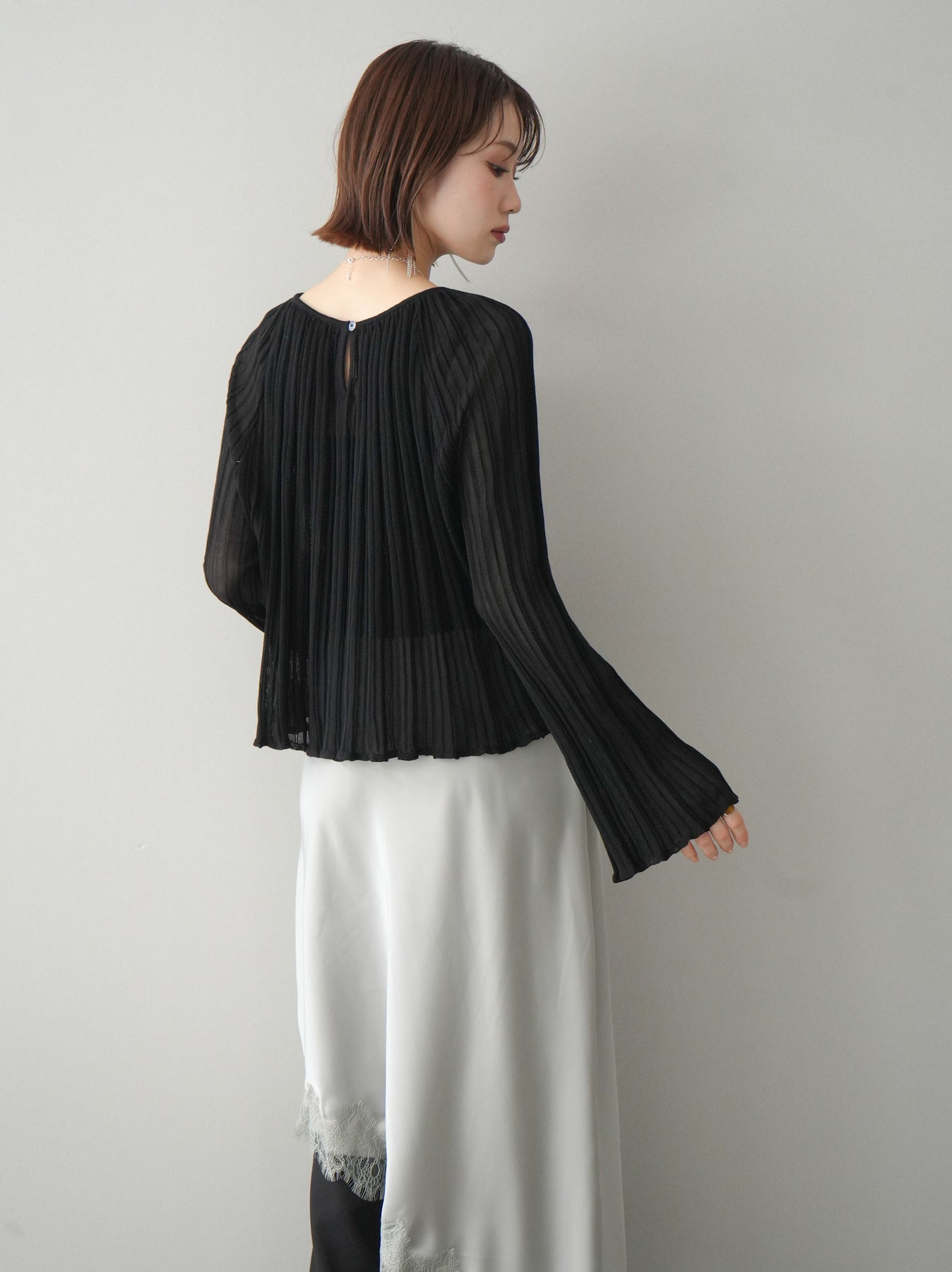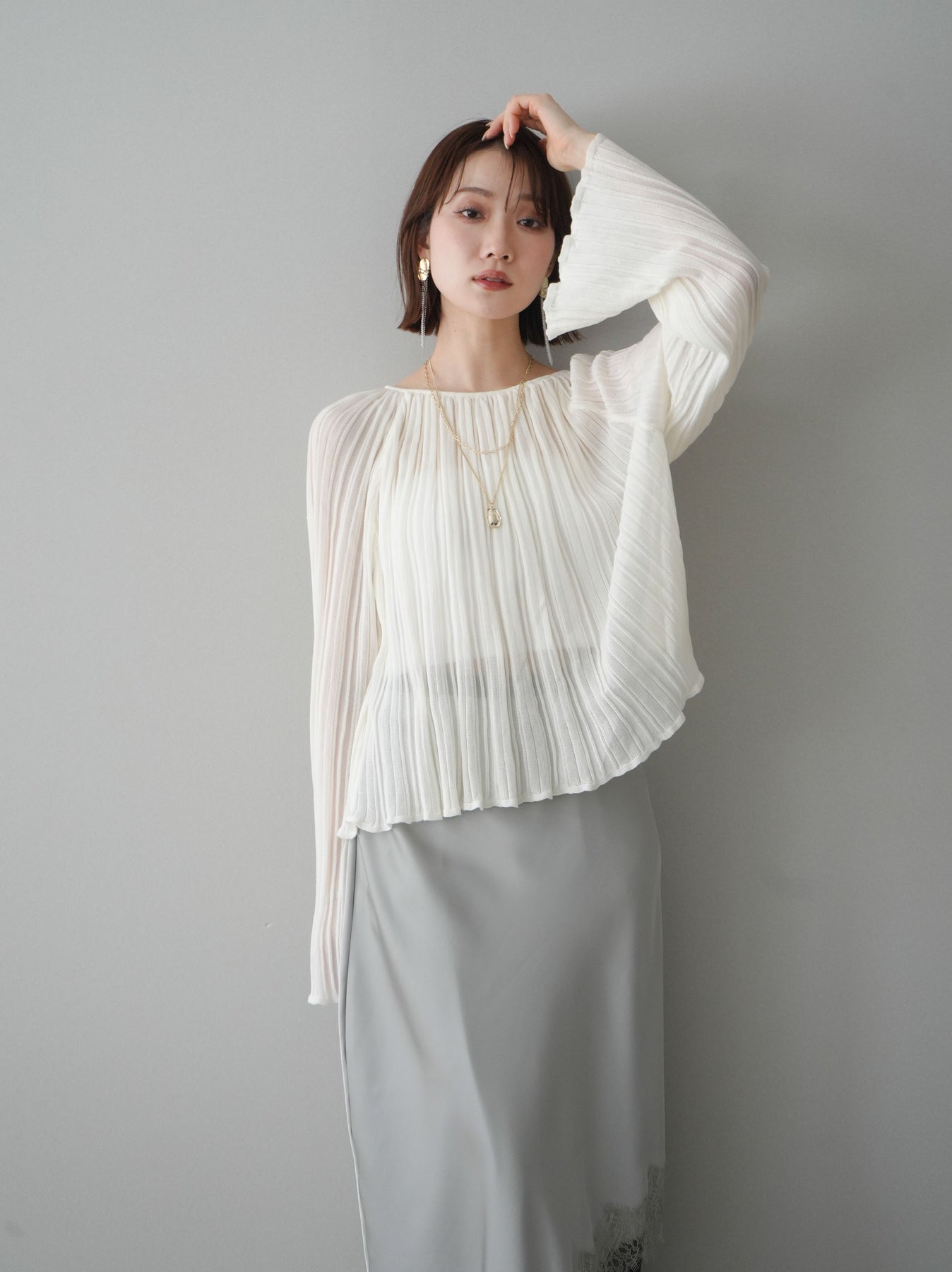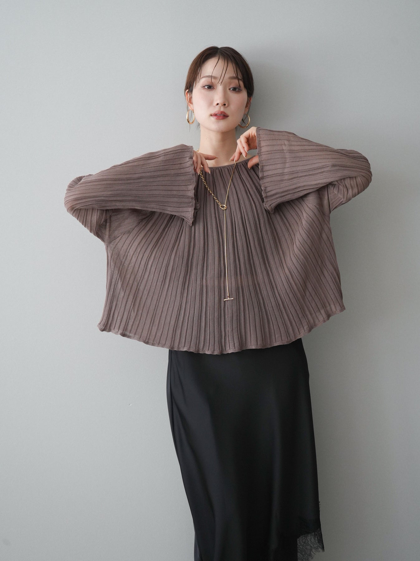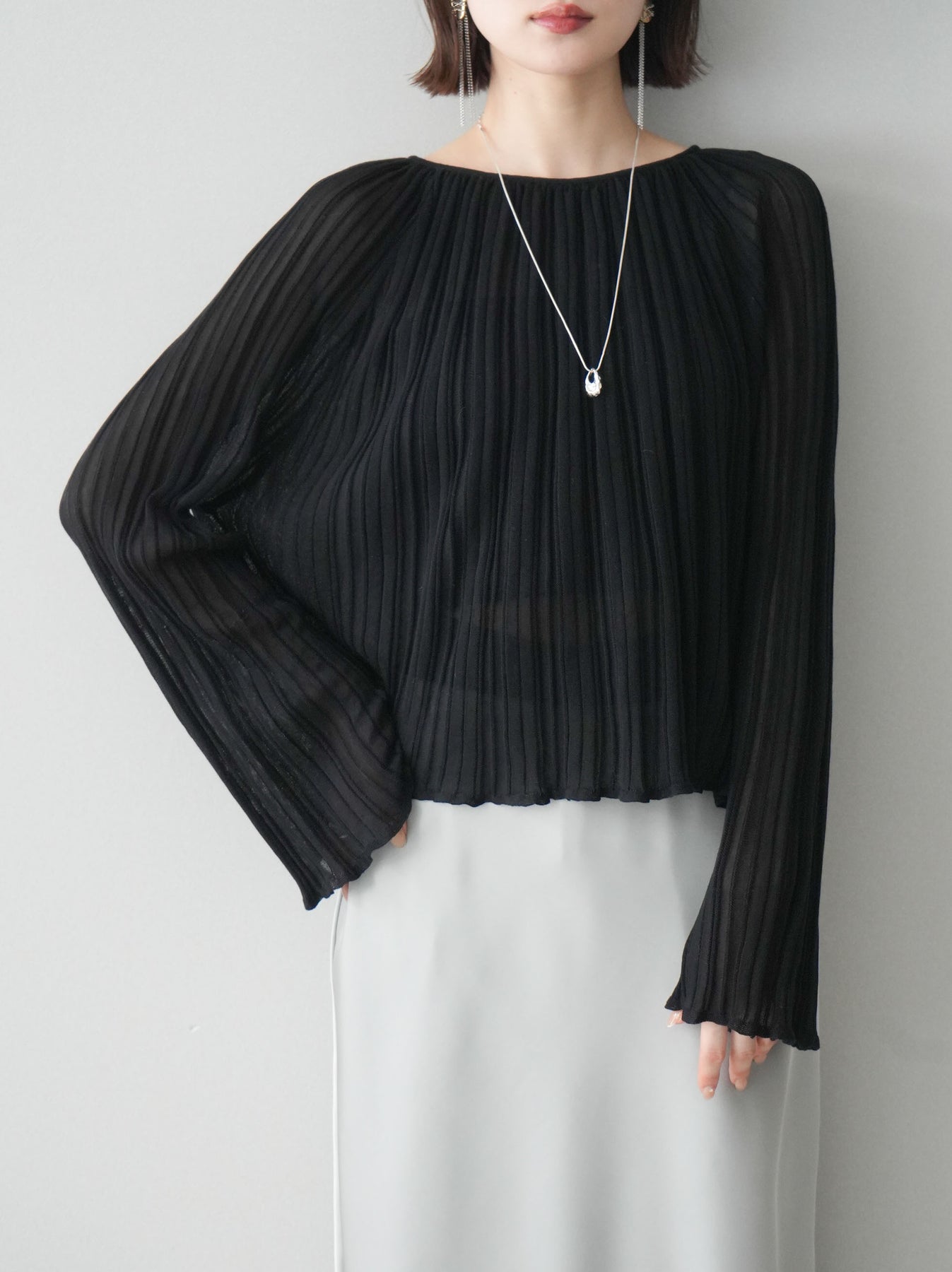 [SET]プリーツシアーフレアスリーブニットトップス+選べるアクセセット(2set)