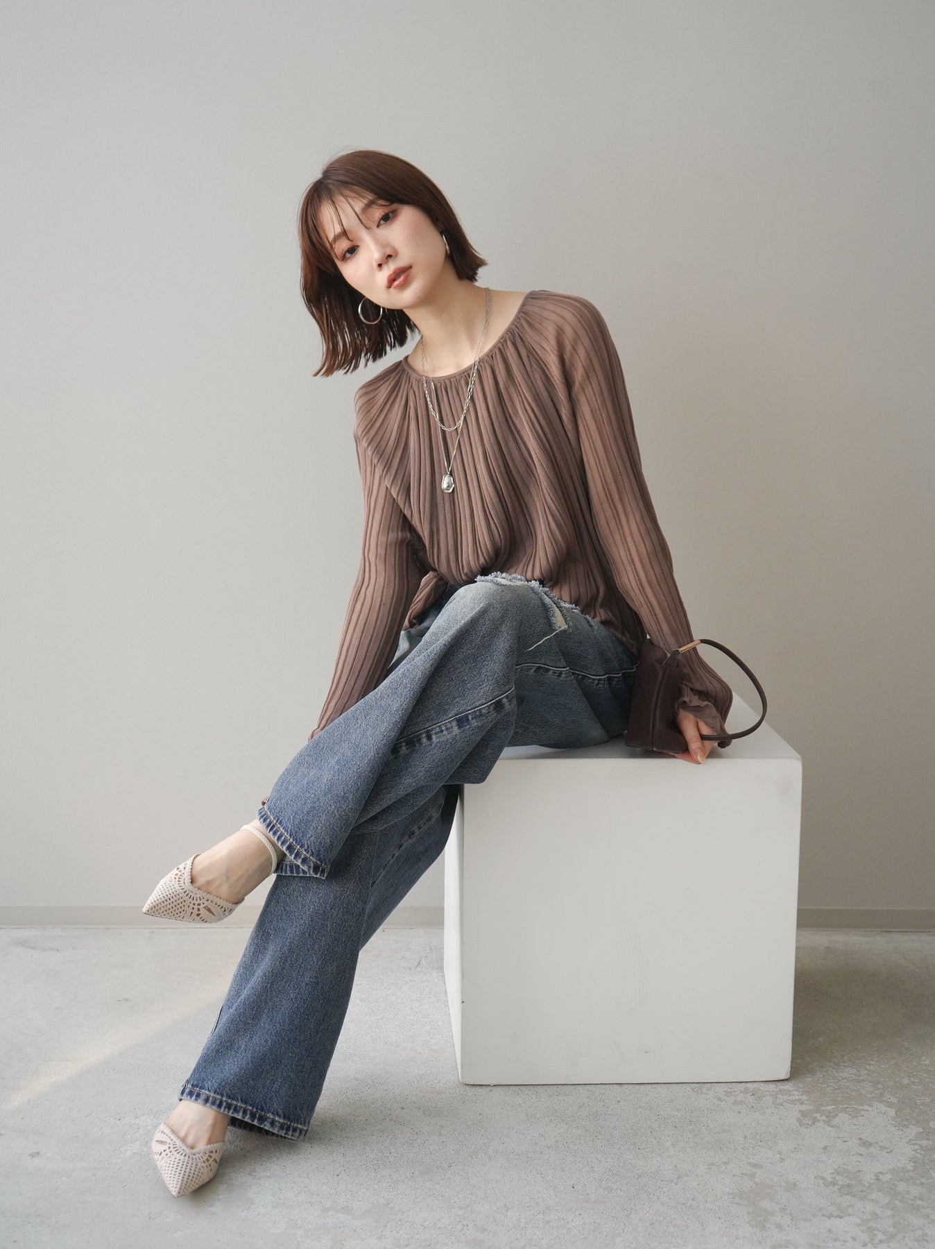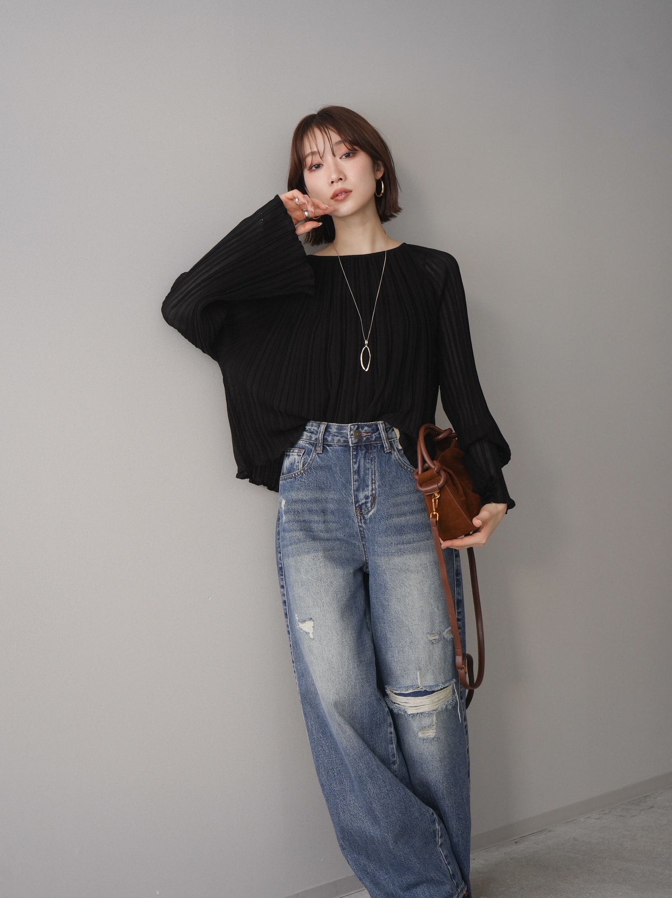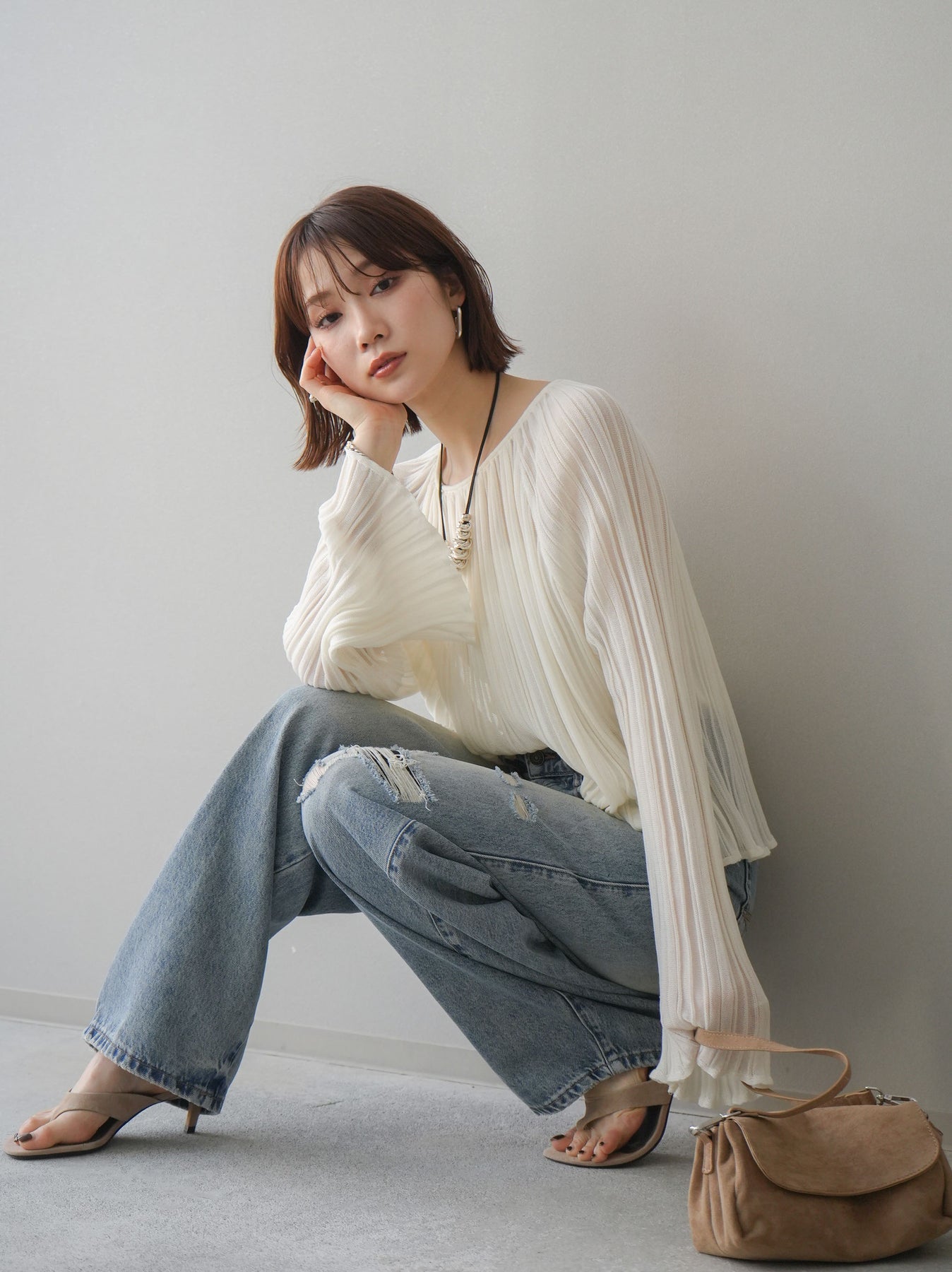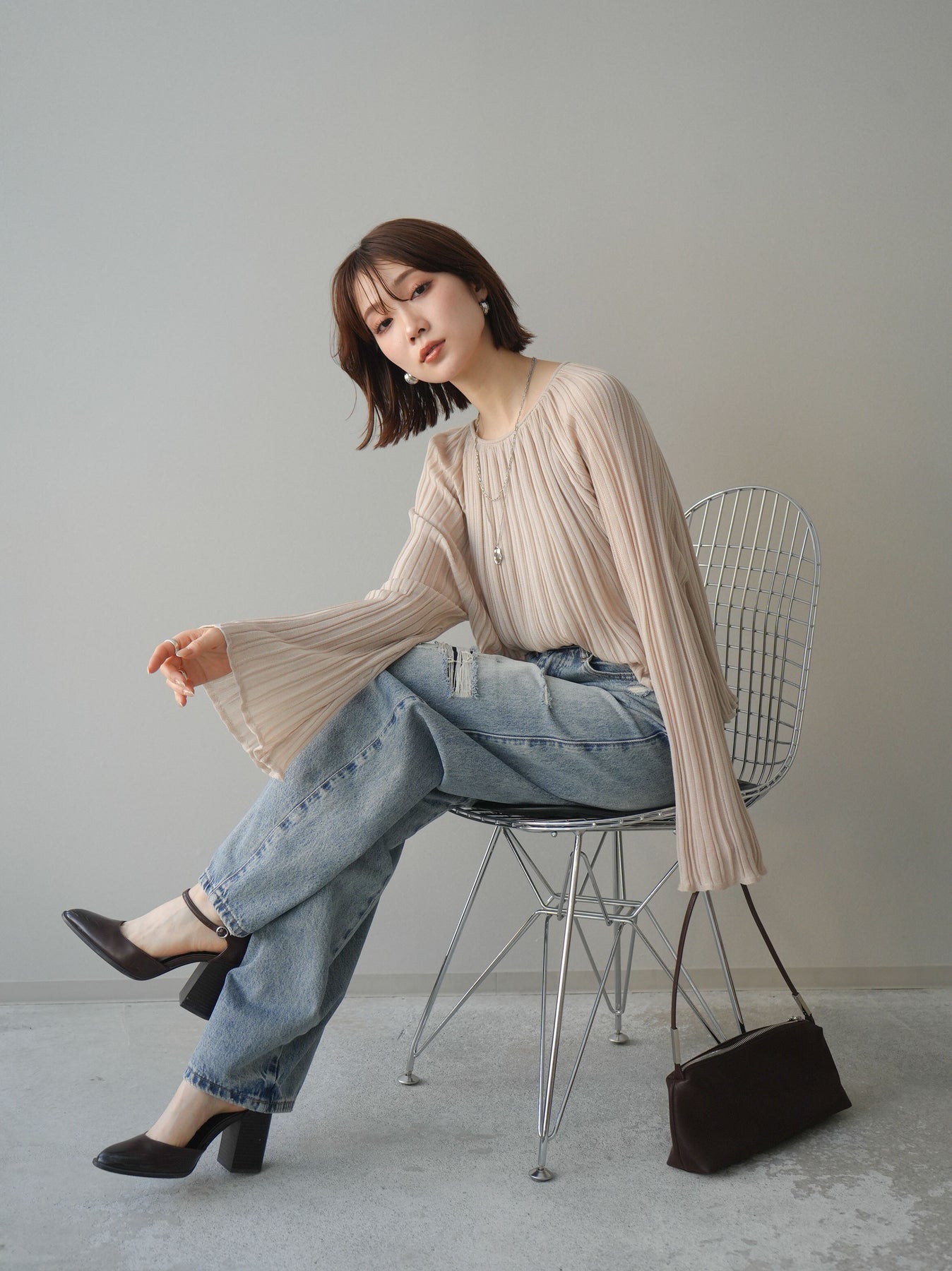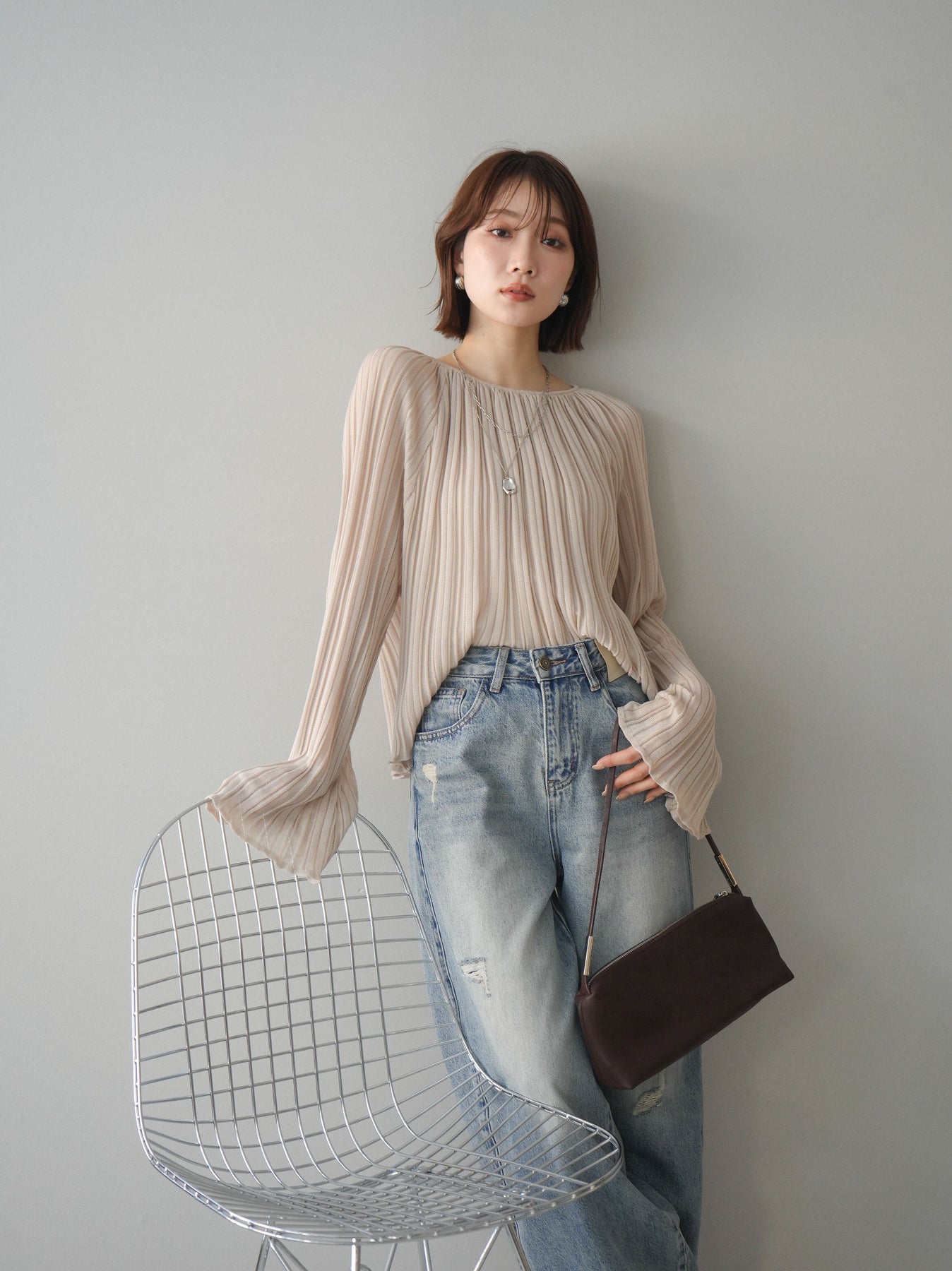 [SET]プリーツシアーフレアスリーブニットトップス+選べるアクセセット(2set)