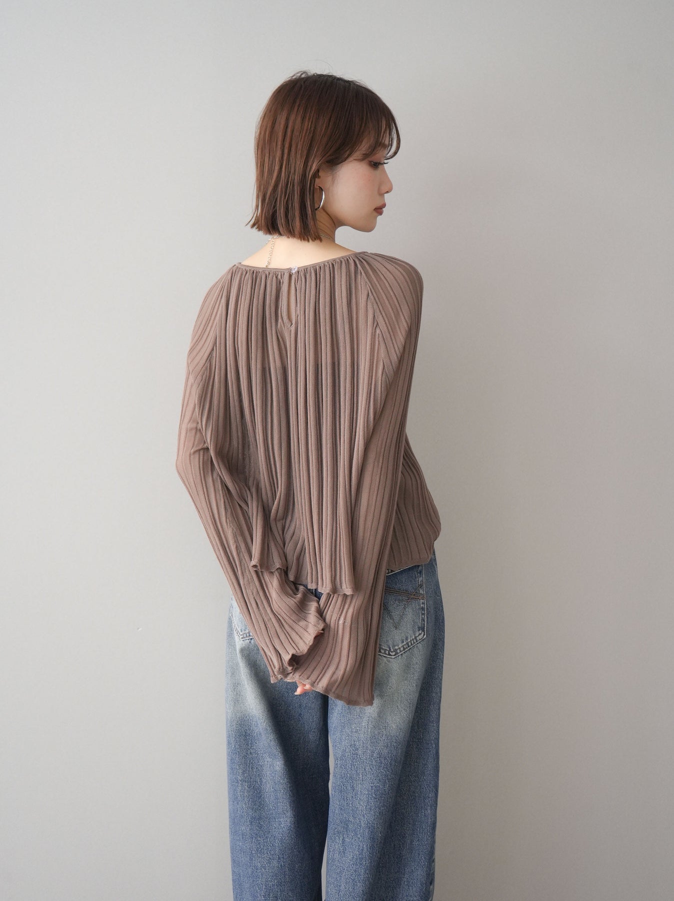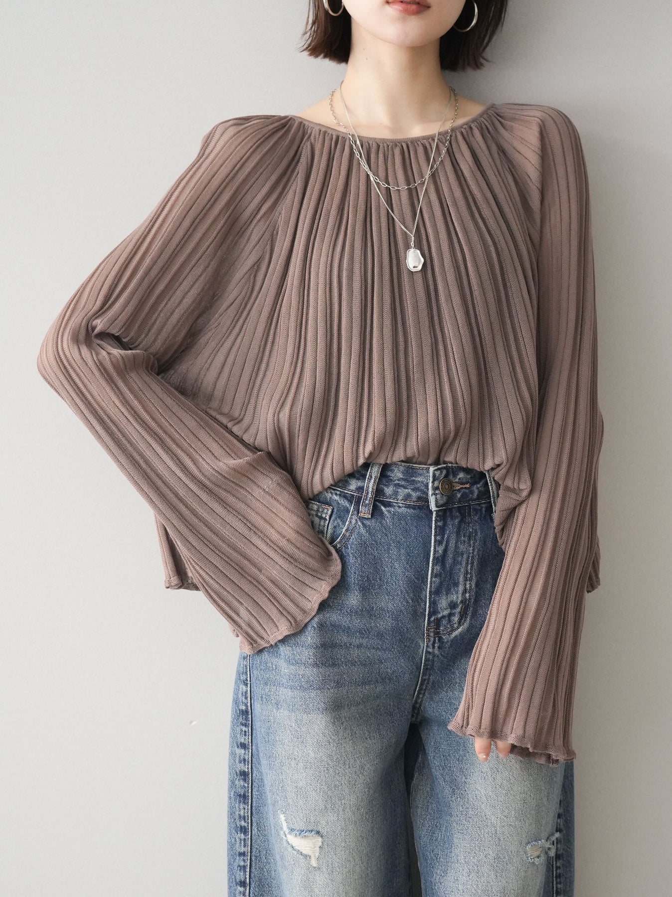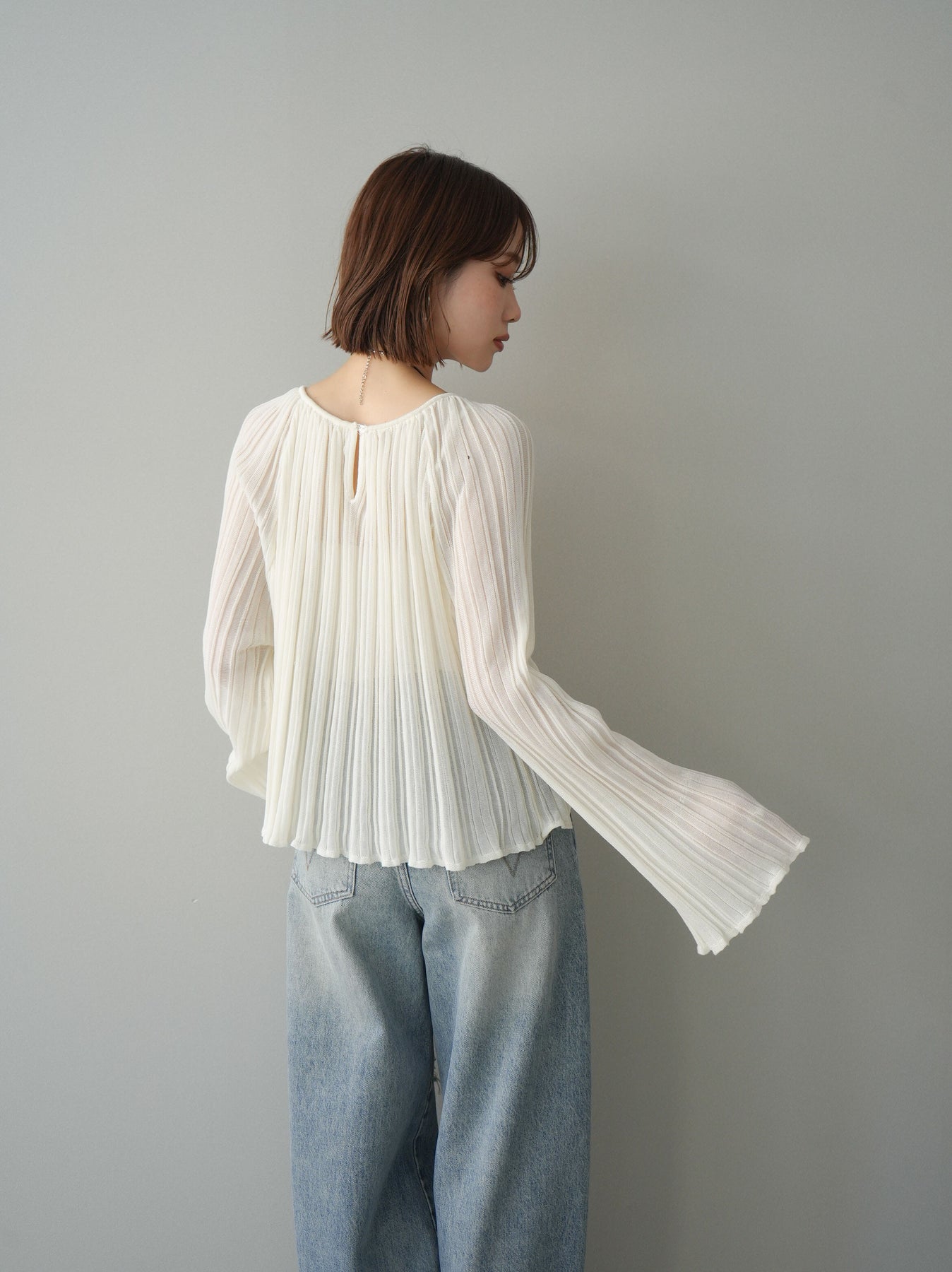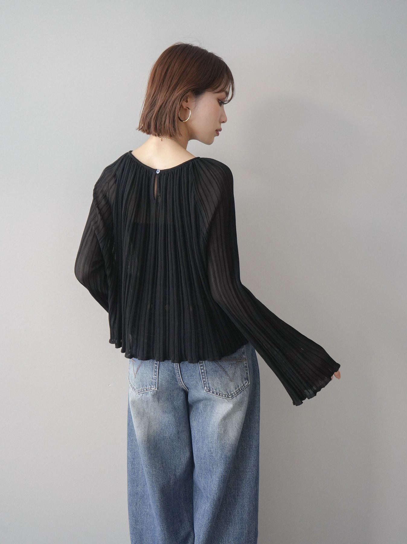 ◆ [予約]プリーツシアーフレアスリーブニットトップス