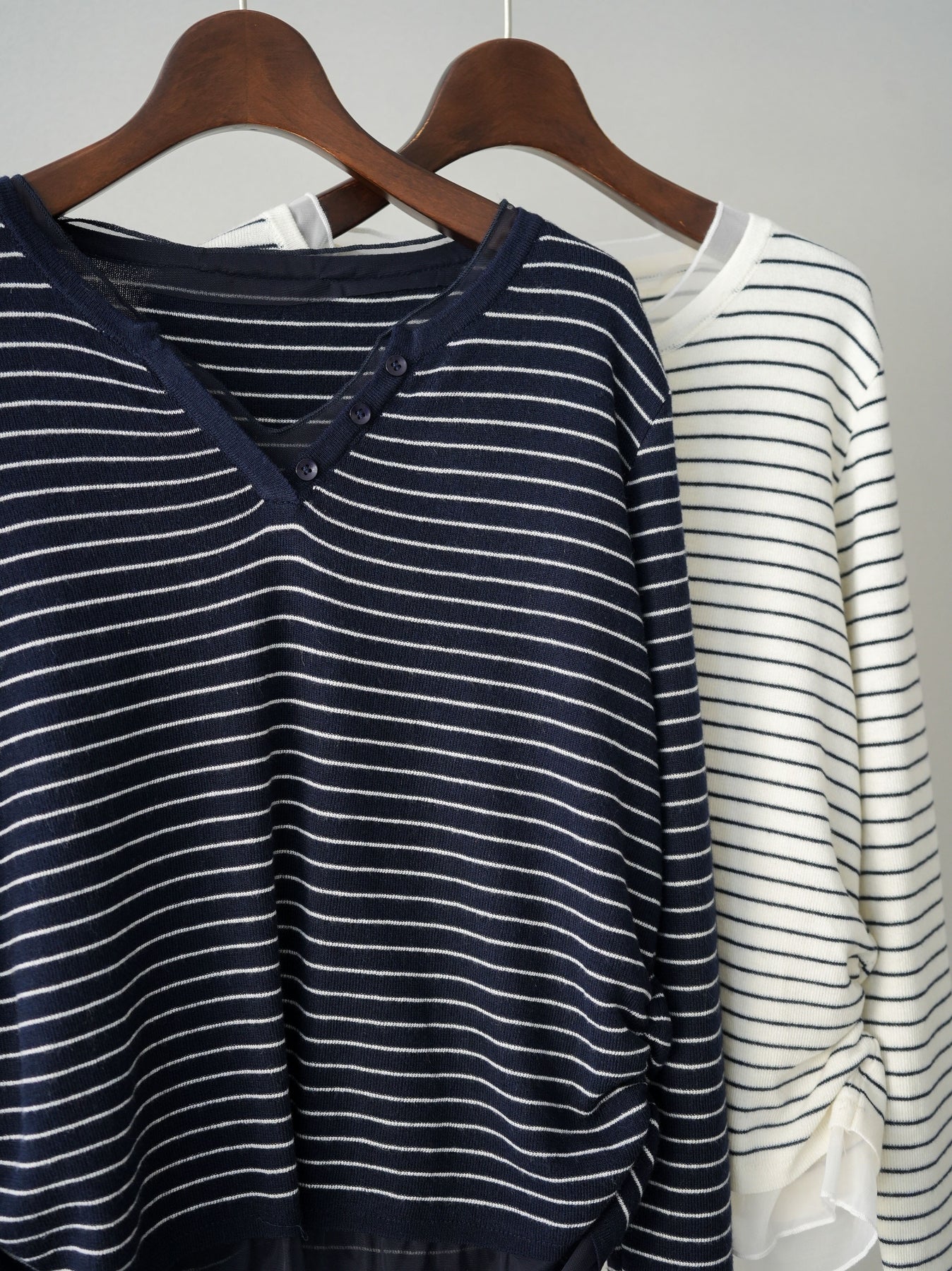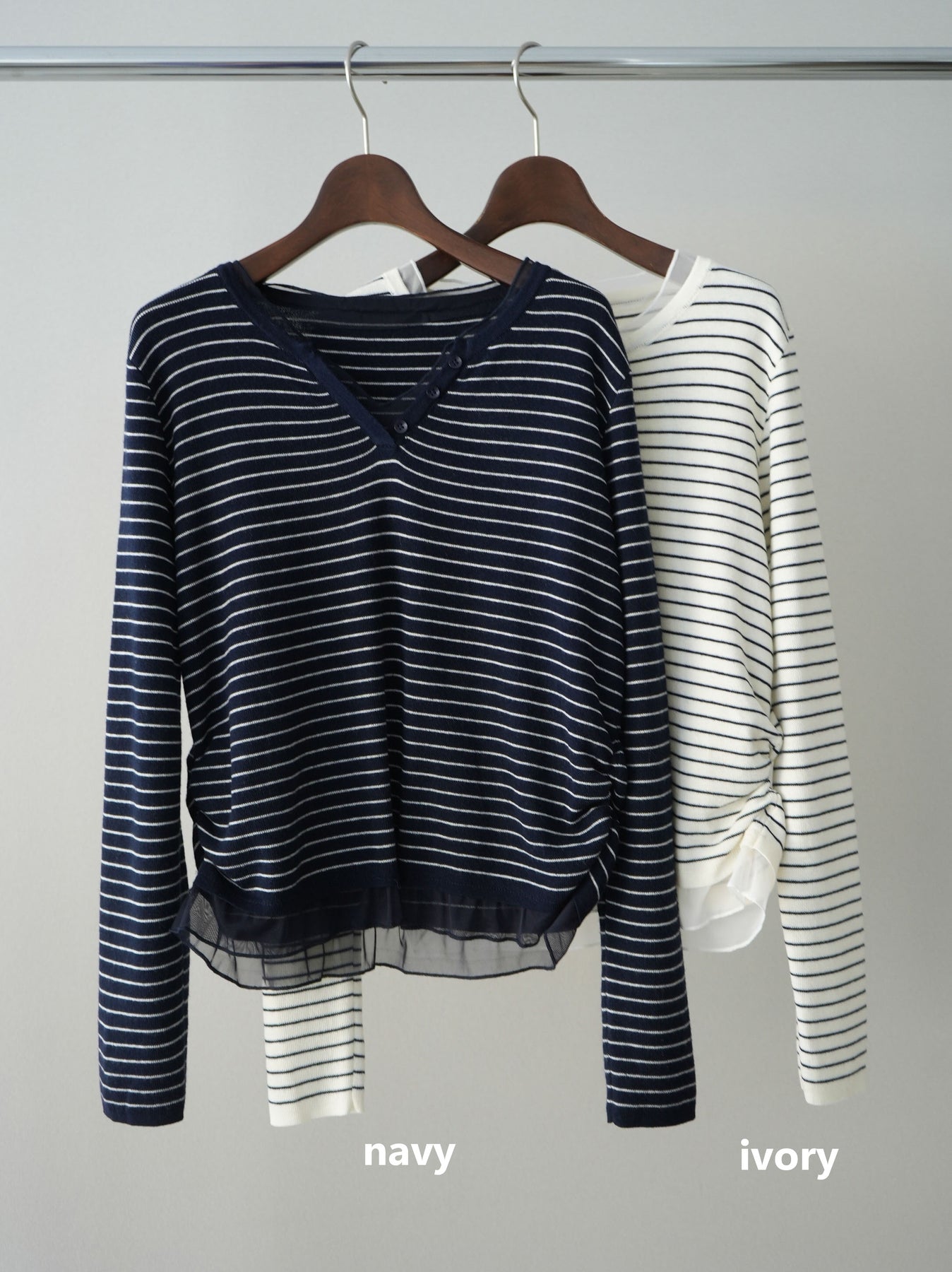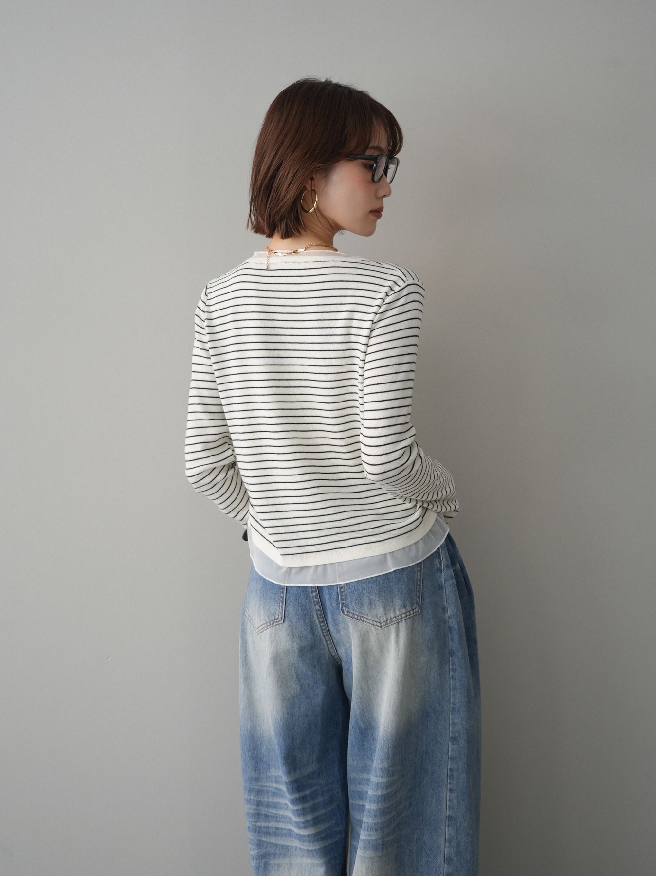 ◆ [予約]チュールレイヤードデザインボーダーニットトップス