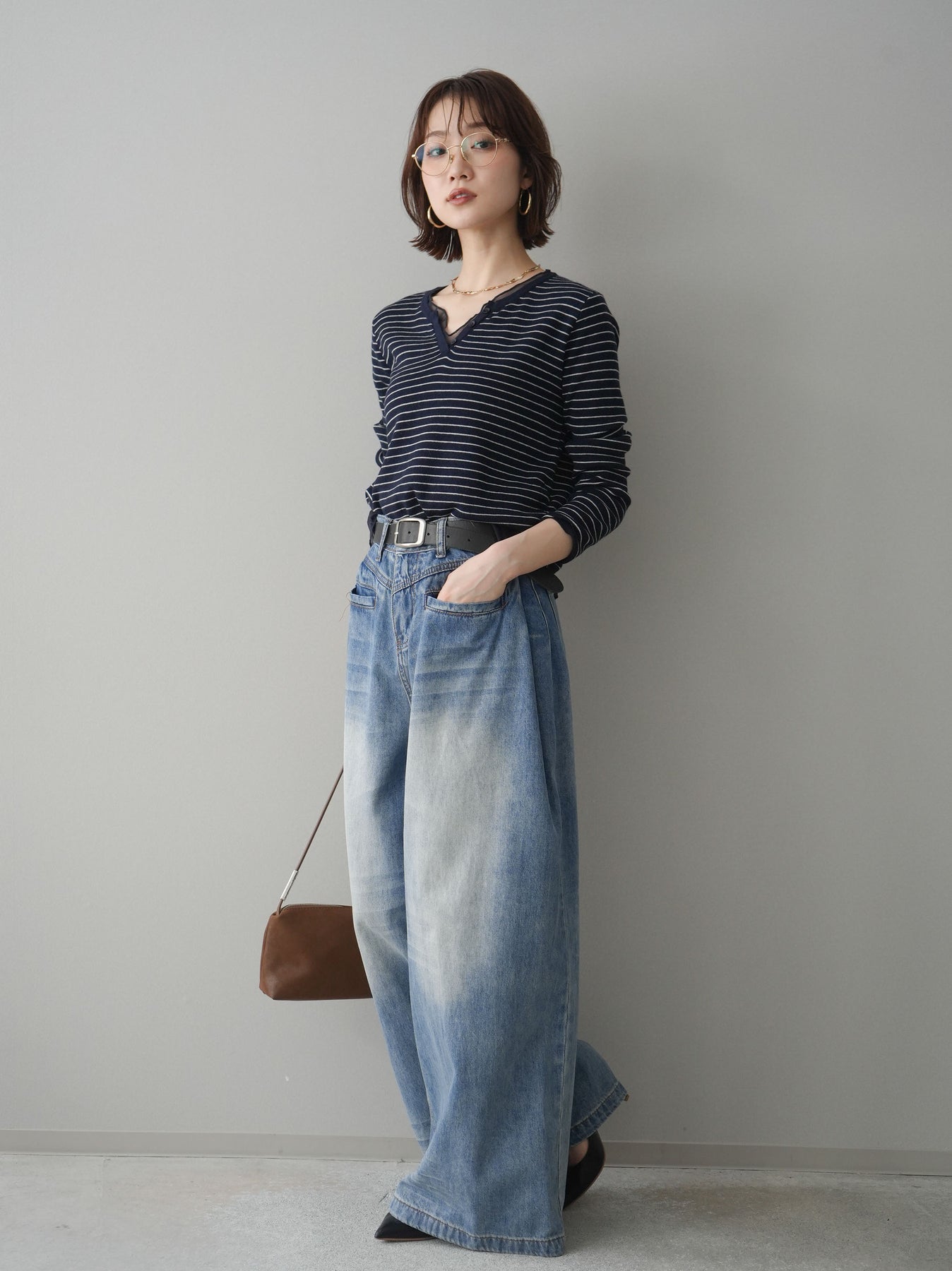 ◆ [予約]フロントポケットサイドタックワイドデニム