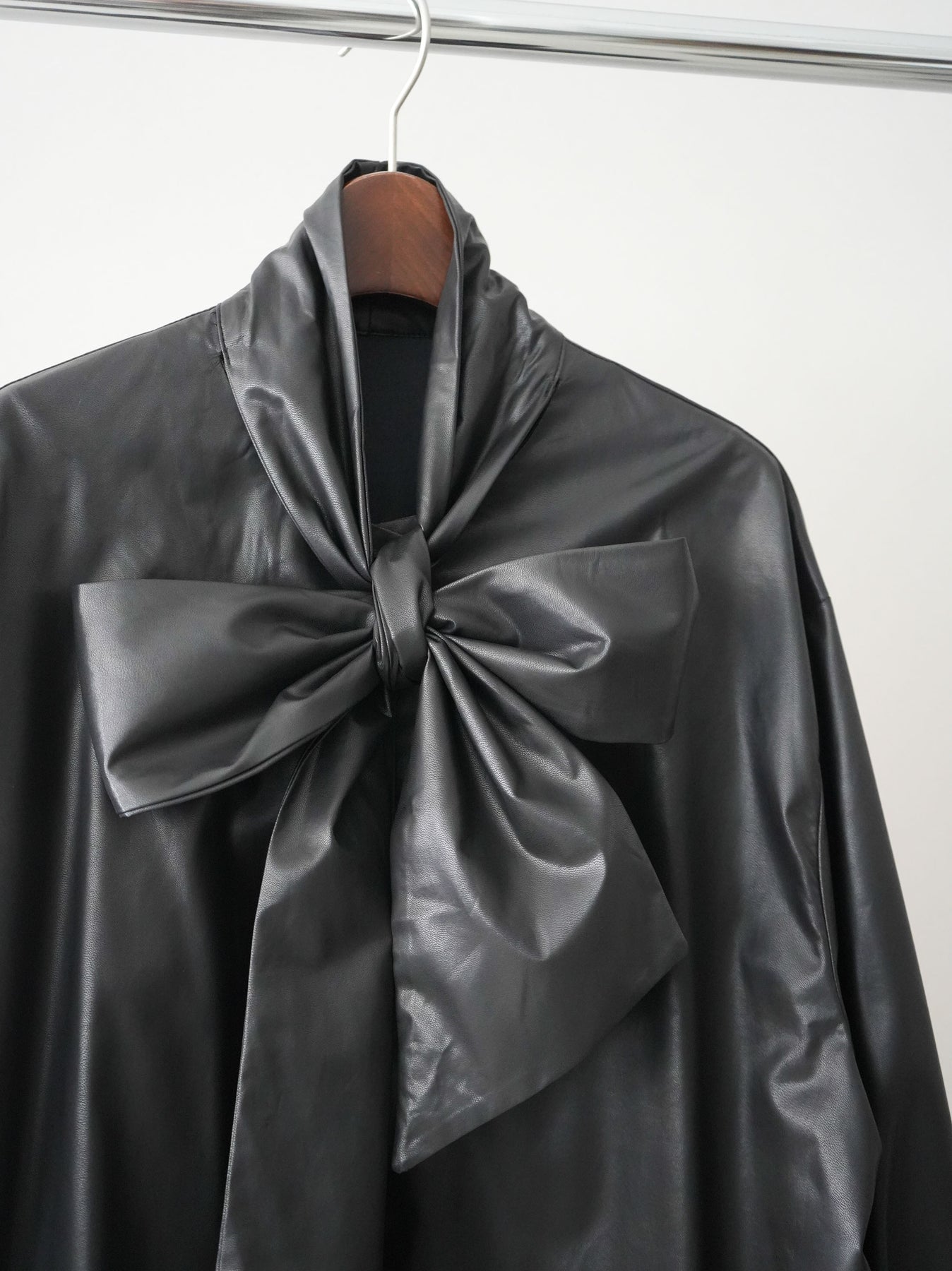 肩幅49cm バスト130cm アームホール50cm 袖丈55cm 袖口22cm フロント着丈72cm バック着丈82cm リボン長さ片側84cm 透け感なし 伸縮性なし