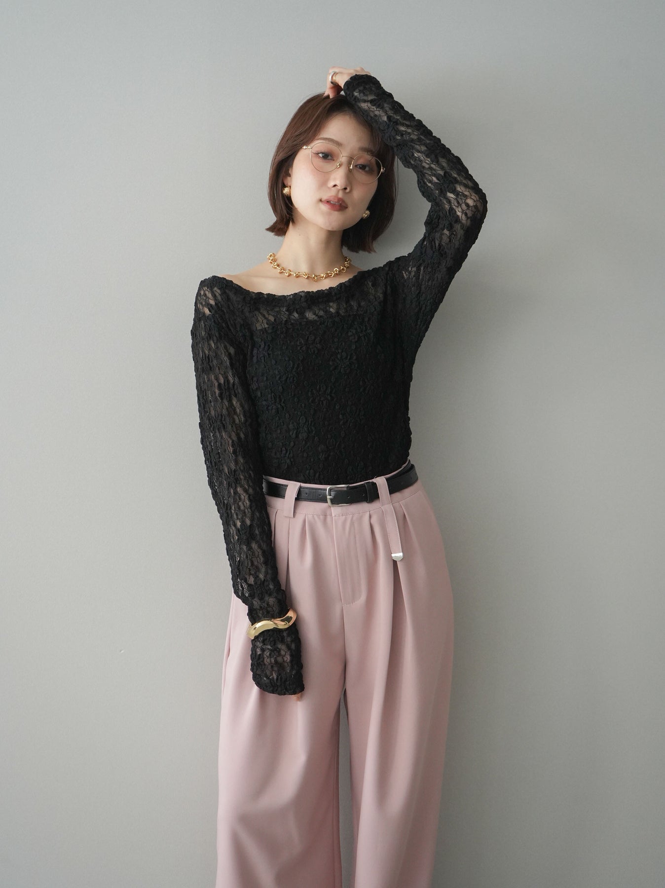 [予約]サイドギャザーレーストップス + [予約]サイドギャザーレーストップス