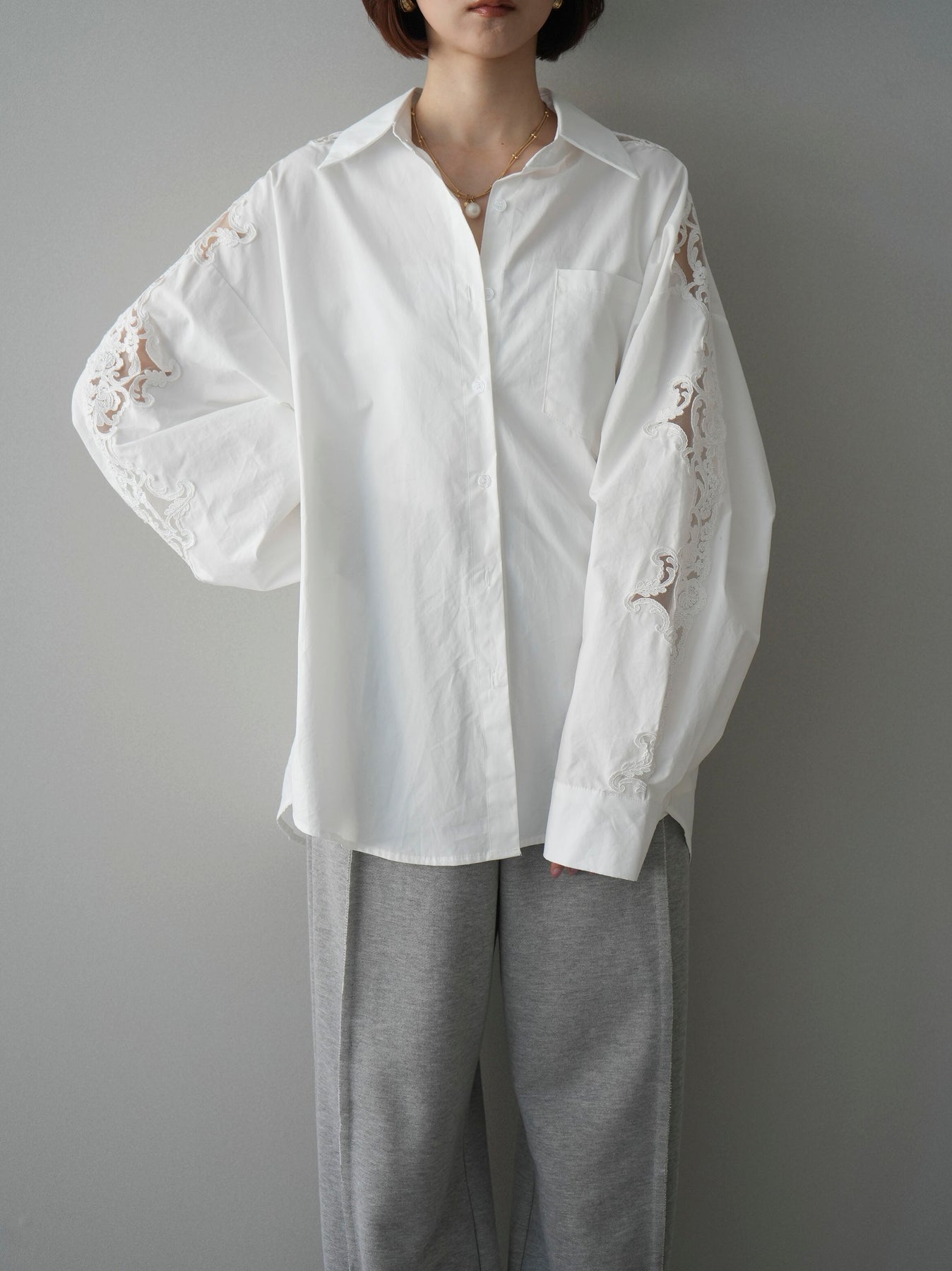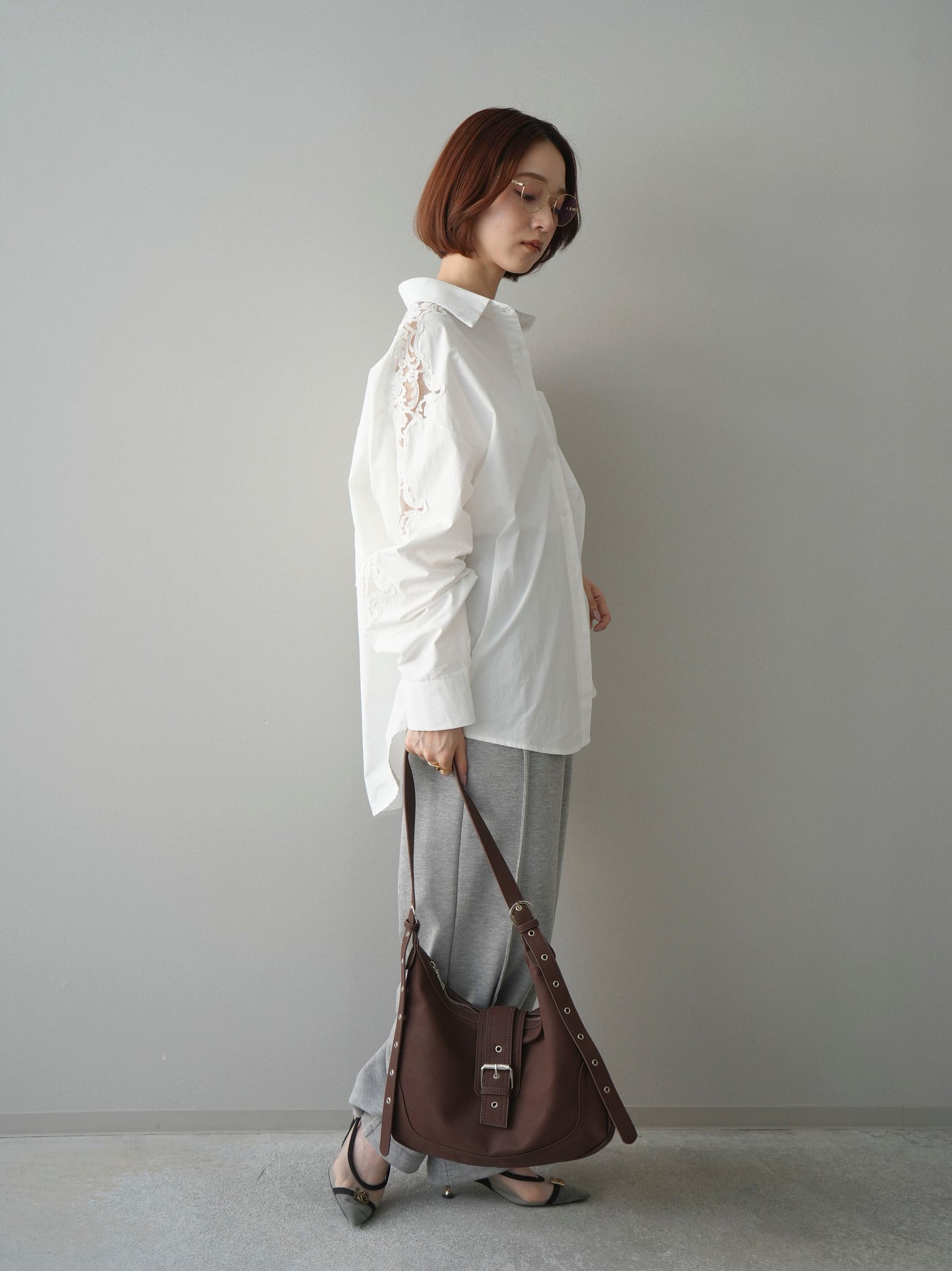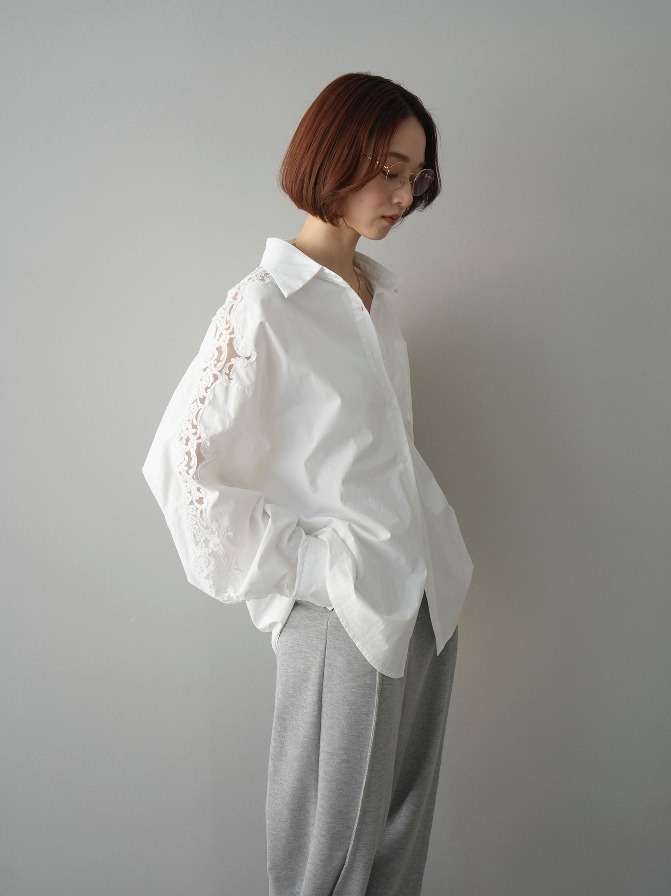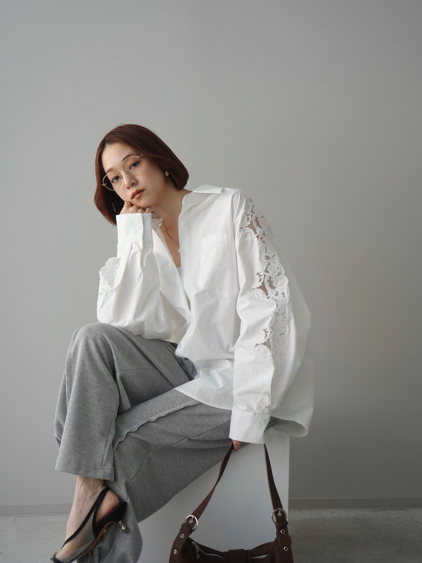 上品なシャツデザインに袖のレース切り替えが映えるブラウス。肩から袖にかけてあしらわれた繊細なレースが、シンプルなシルエットにさりげない華やかさをプラスします。程よくゆとりのあるフォルムで、きれいめにもカジュアルにも合わせやすく、1枚ではもちろんレイヤードスタイルにも活躍。デイリーからオケージョンまで幅広いシーンで取り入れやすいアイテムです。 ※ボトムス、キャミソール(インナー)以外の商品は一律でインナーは付属していません