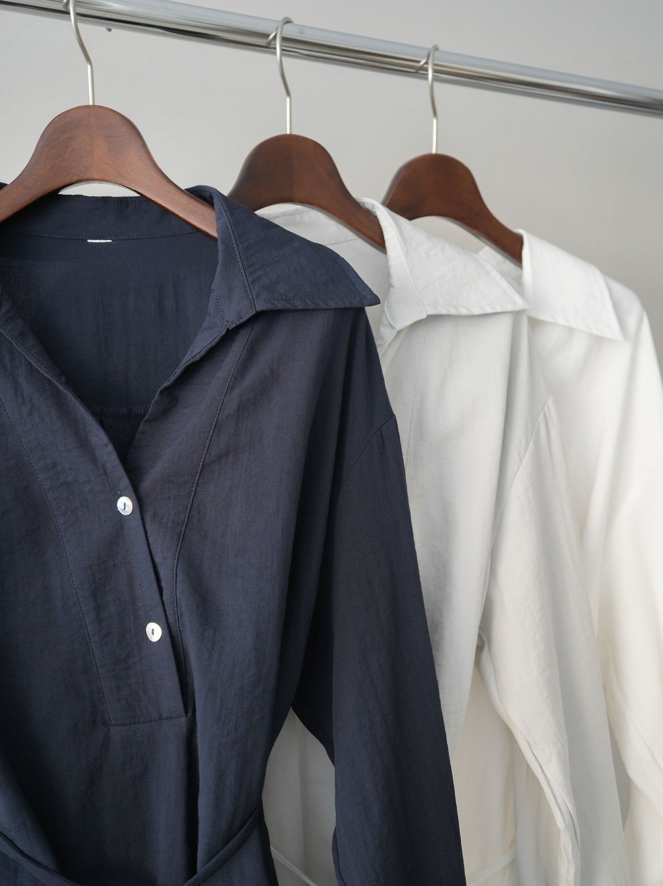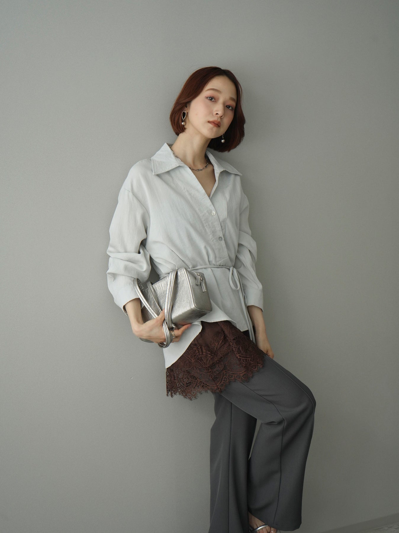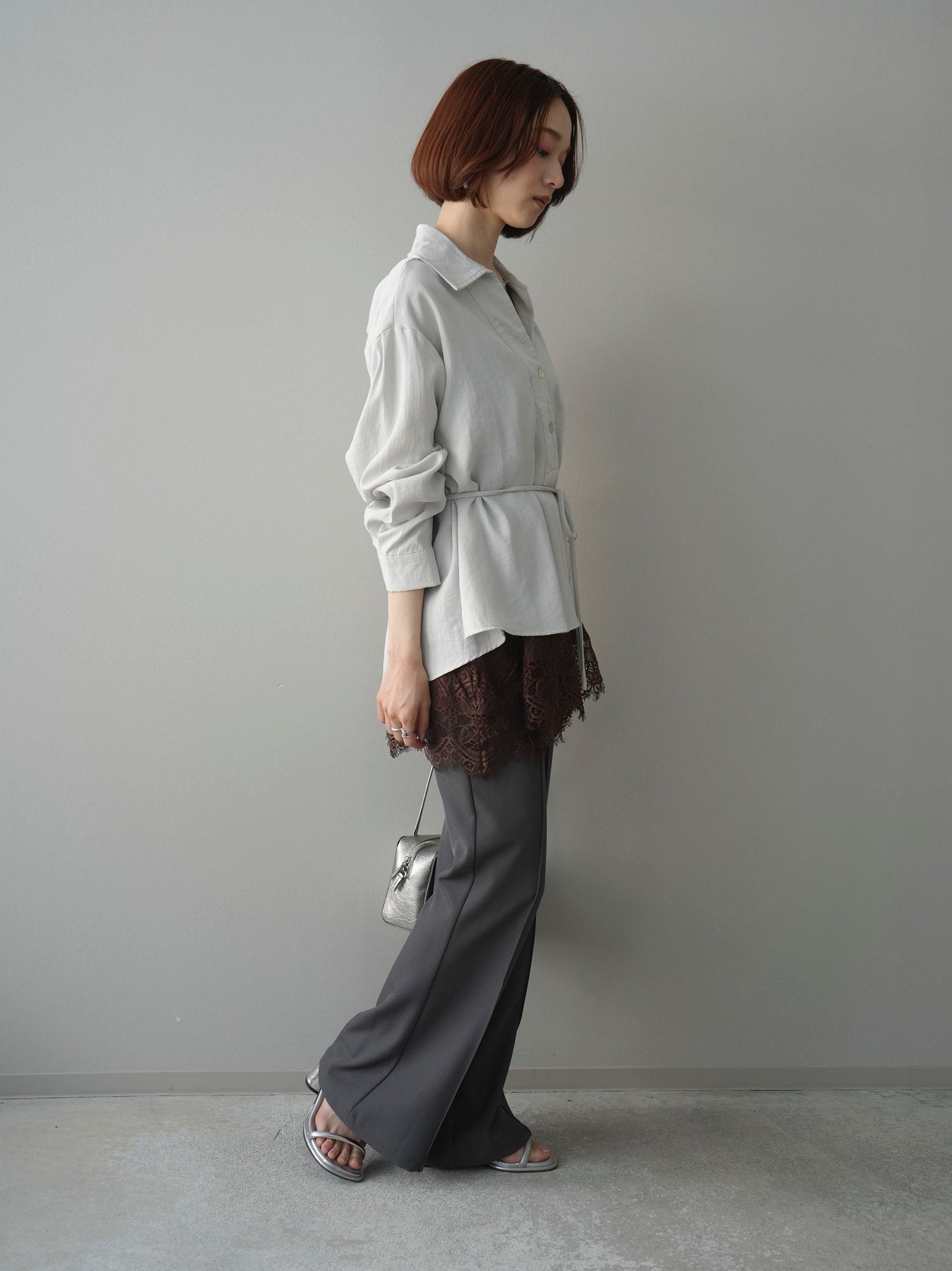 抜け感のあるスキッパーデザインが顔まわりをすっきりと見せてくれるシャツ。程よく落ち感のある素材で、さらりと軽やかな着心地に仕上げました。ウエストリボンでシルエットのアレンジができ、前を開けて羽織としても活躍。きれいめからカジュアルまで幅広いスタイリングに馴染む、着回し力の高い一枚です。 ※ボトムス、キャミソール(インナー)以外の商品は一律でインナーは付属していません